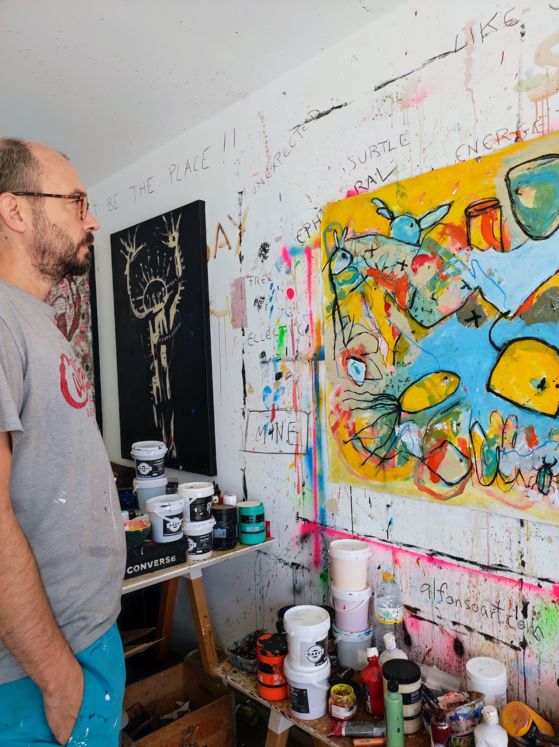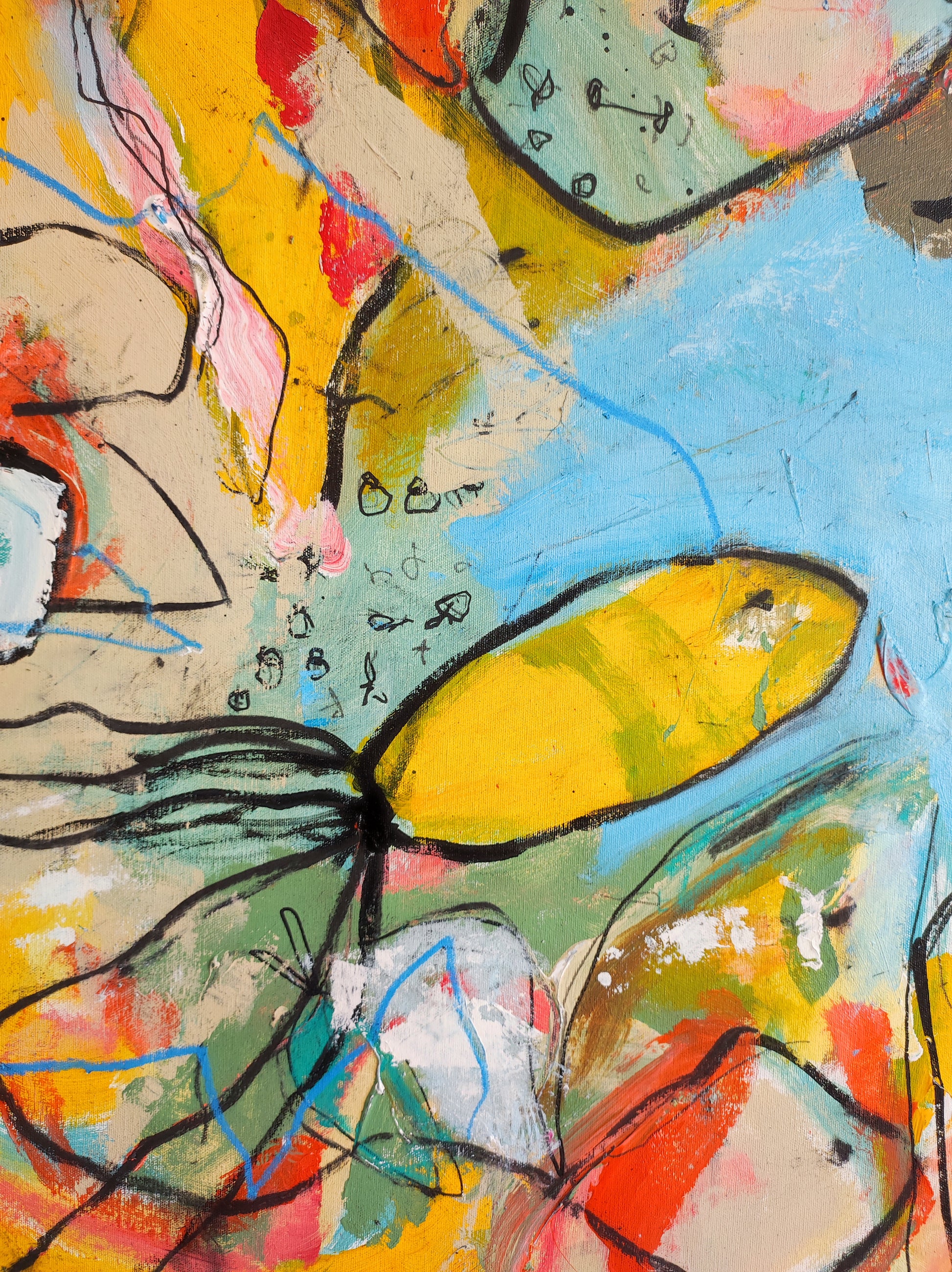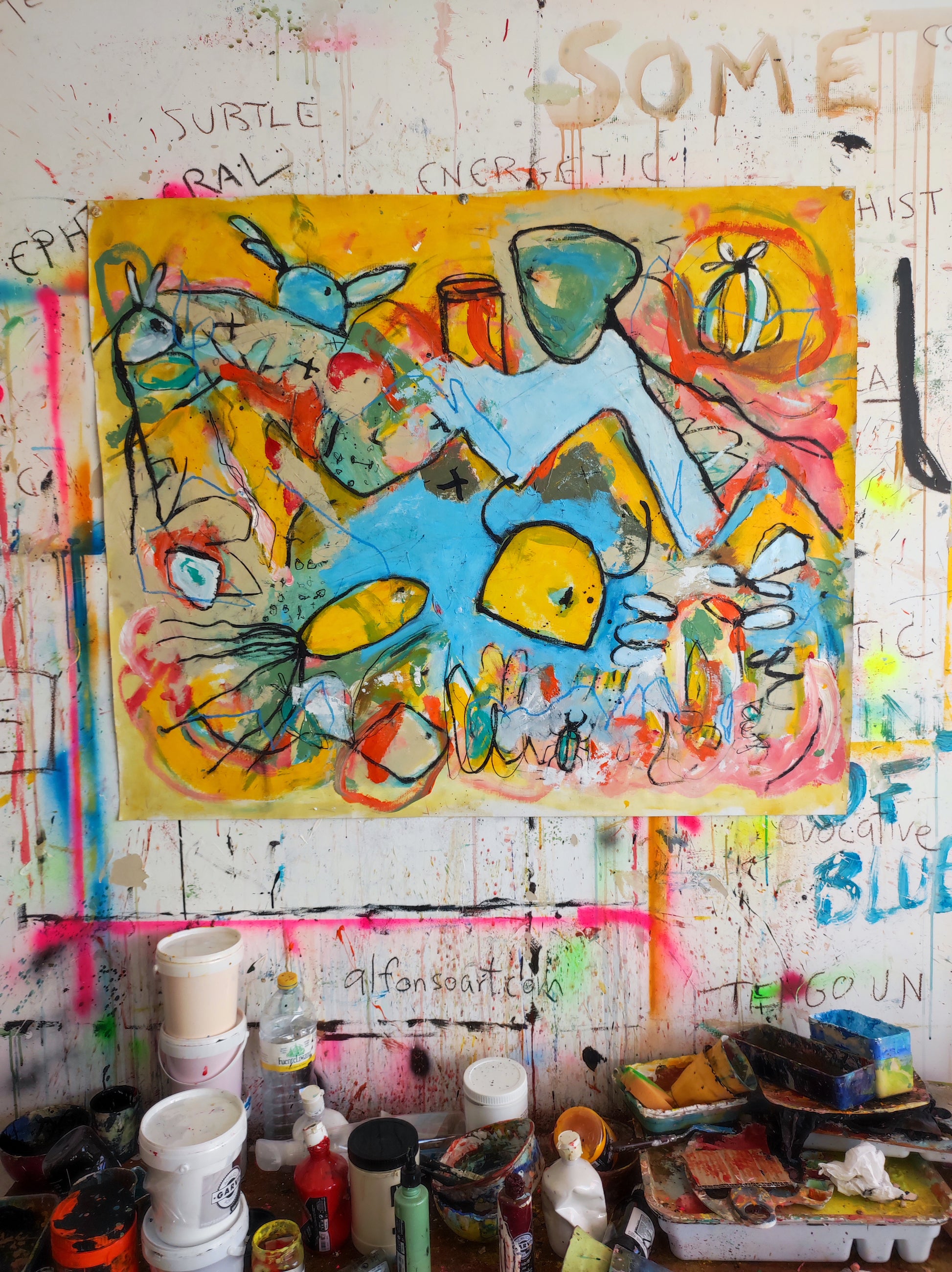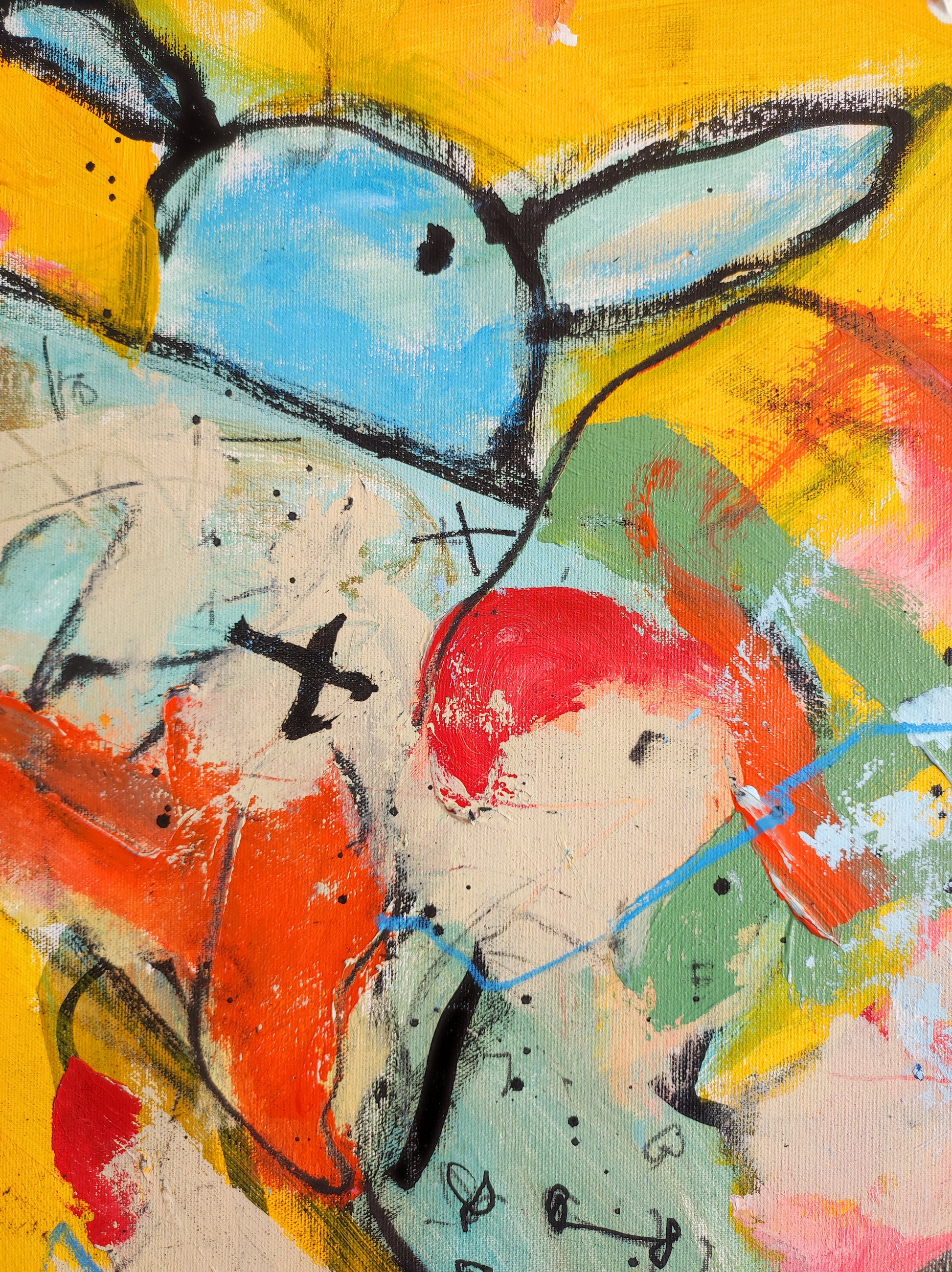 Técnica: mixed media: acrílico, tinta china, gesso, ceras y carboncillo.
