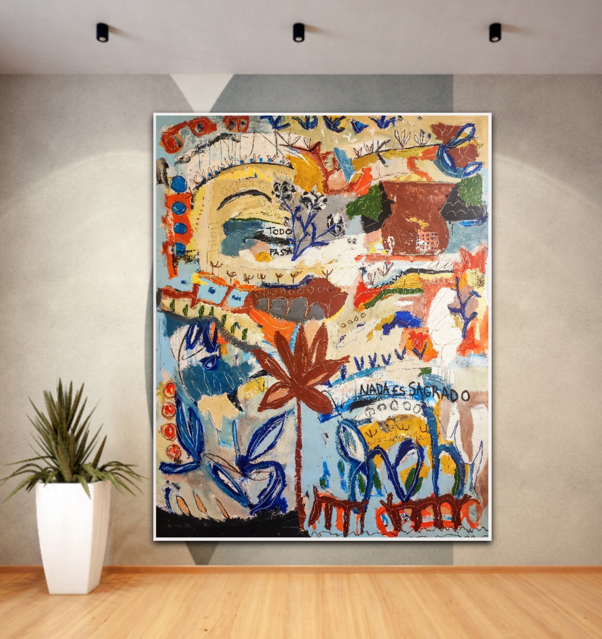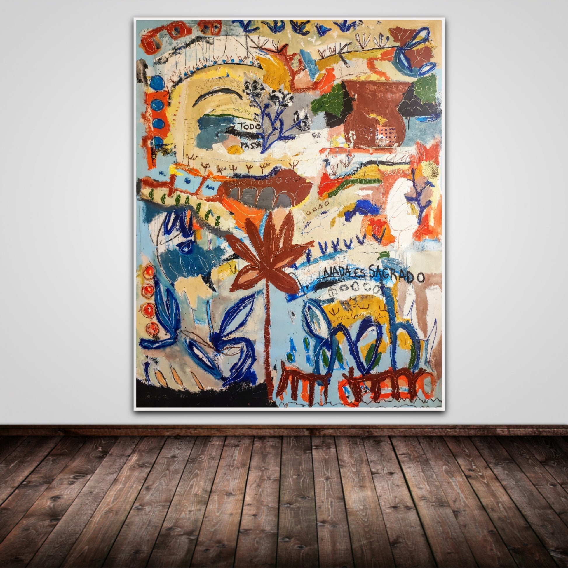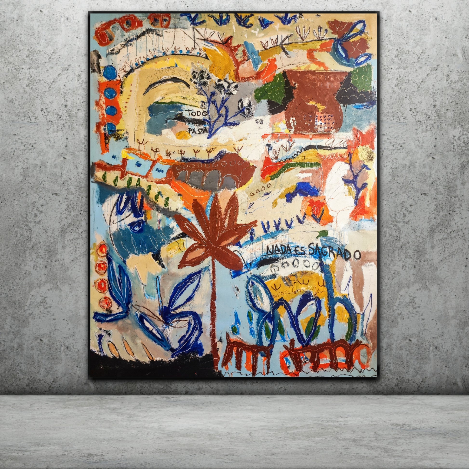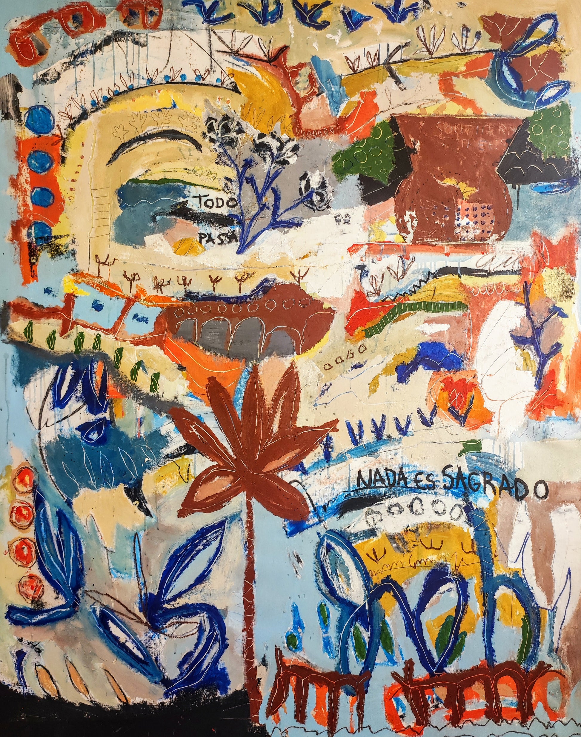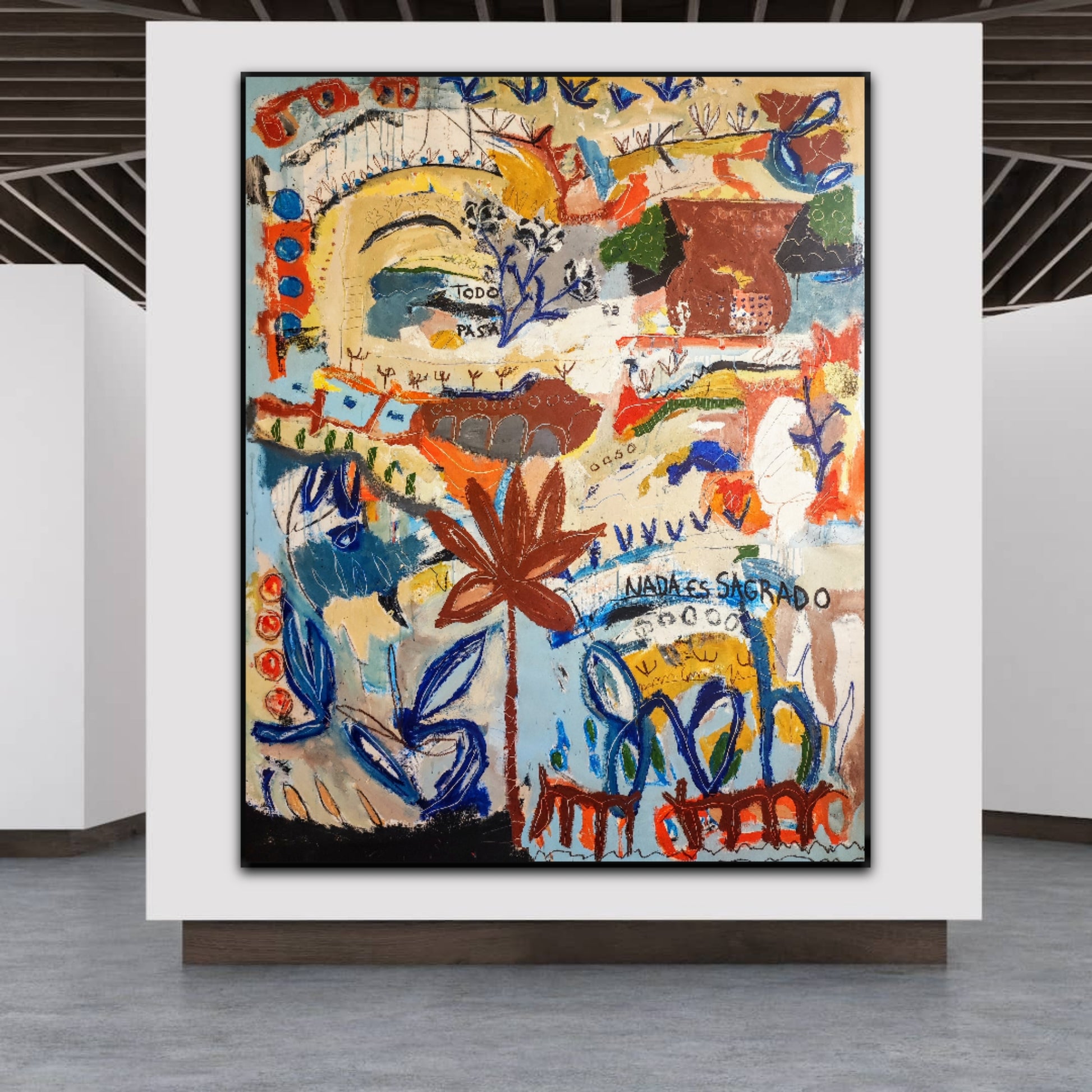 Técnica: acrílico, pigmentos, ceras, gesso, tinta china y lápiz.