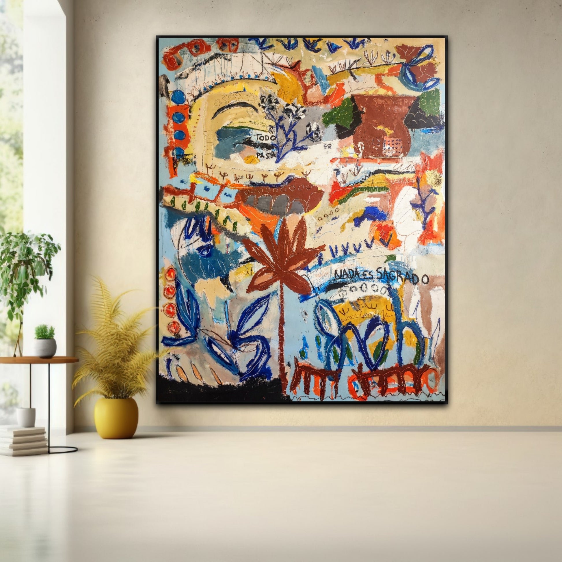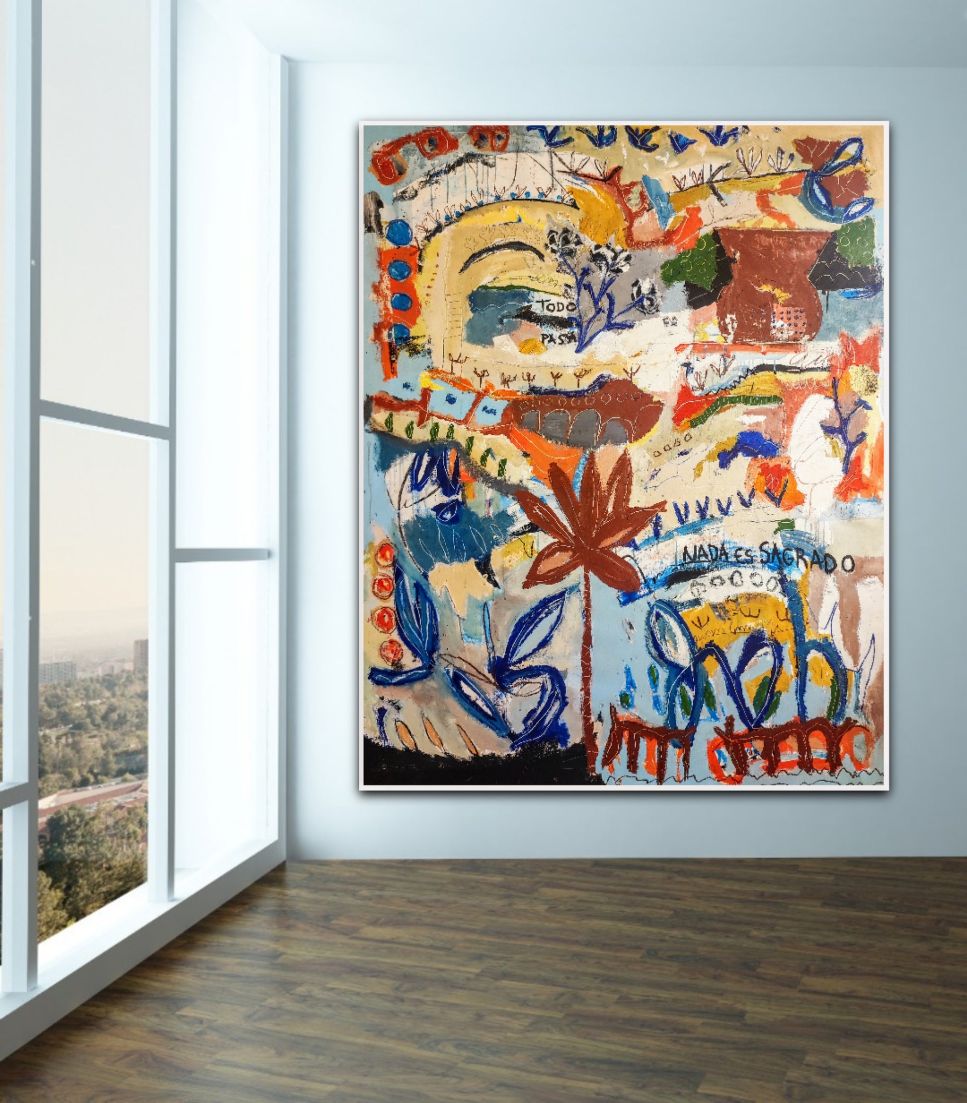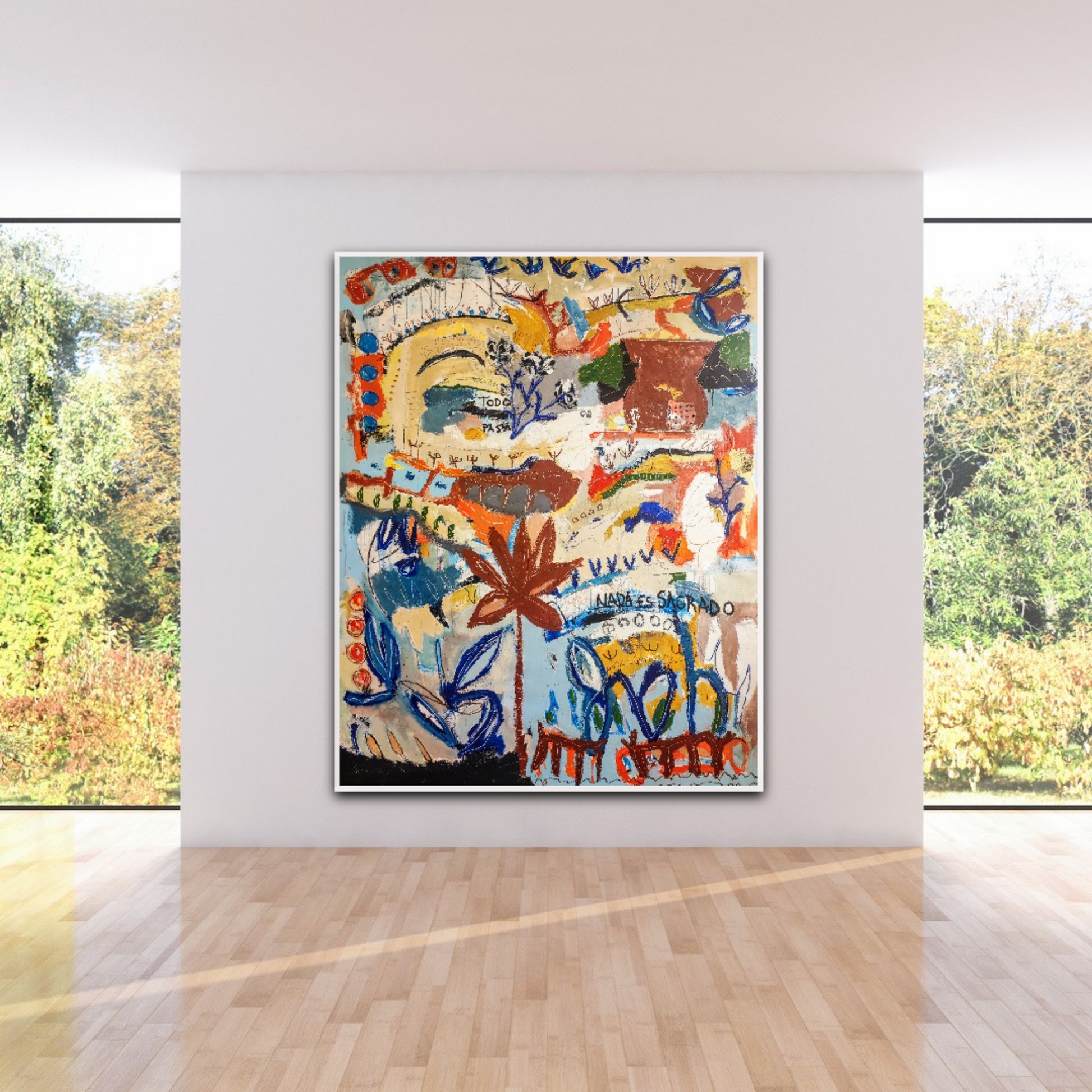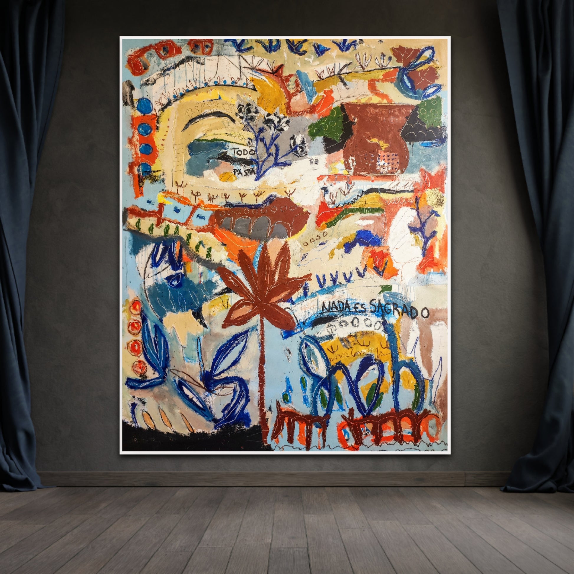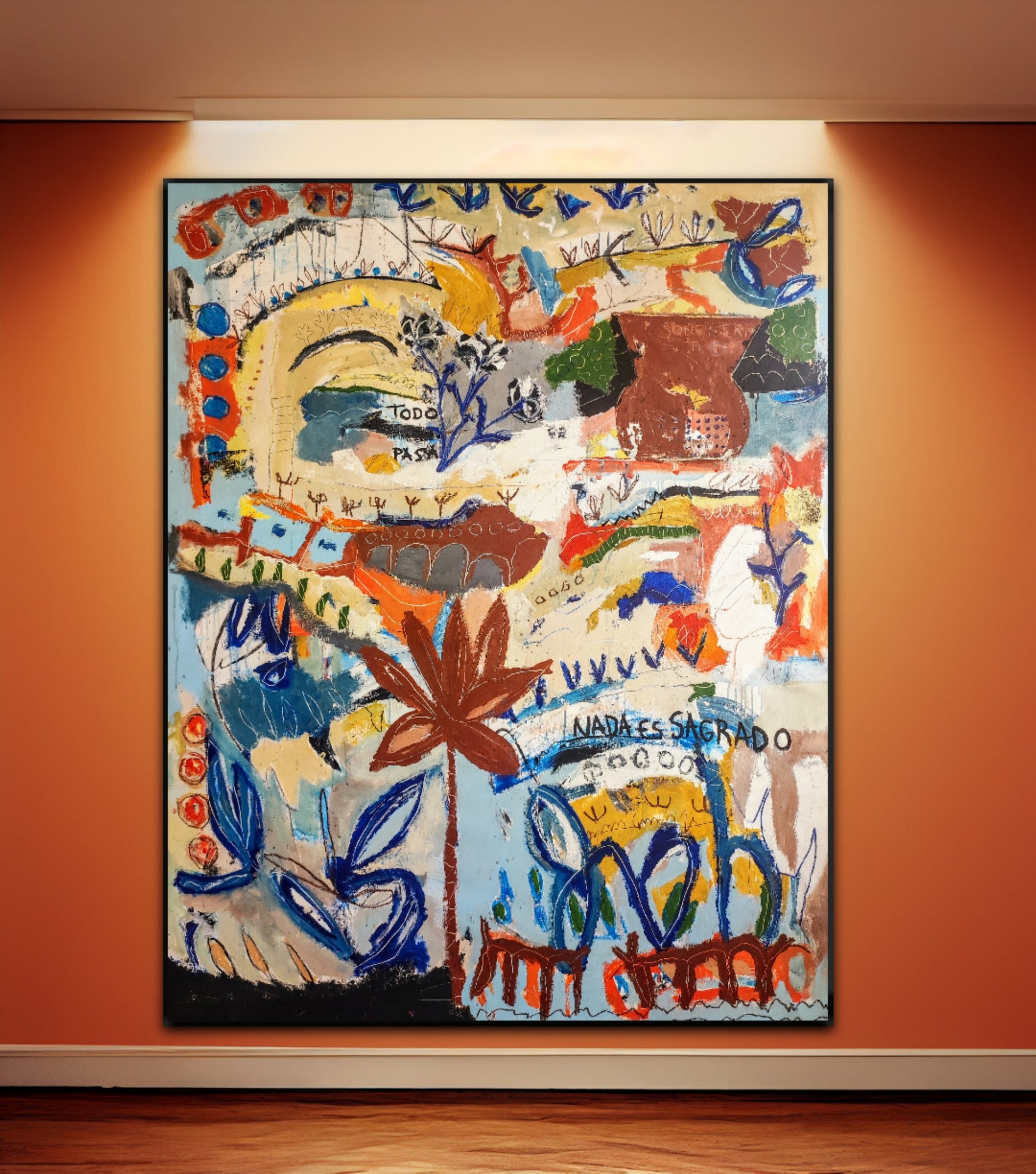 Técnica: acrílico, pigmentos, ceras, gesso, tinta china y lápiz.