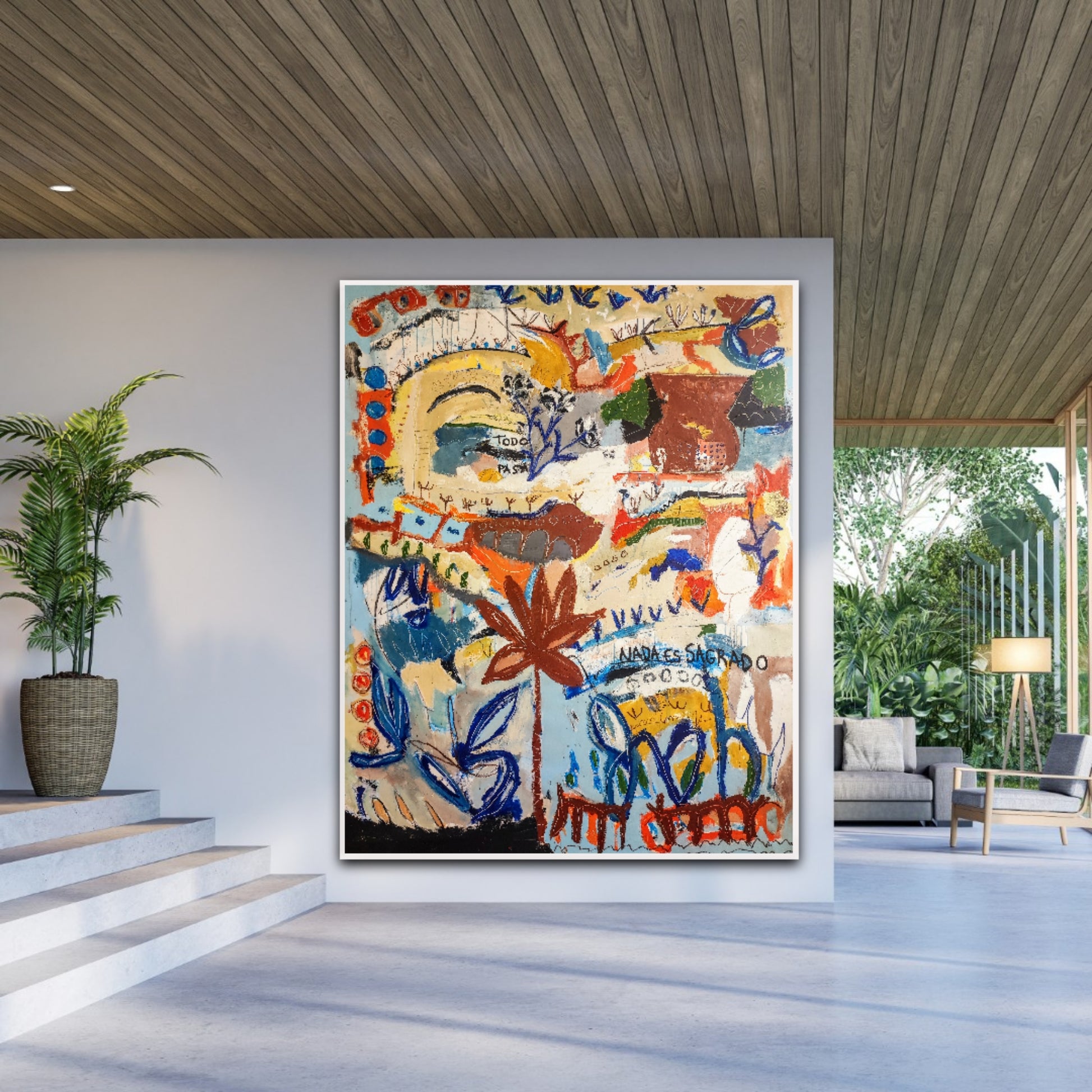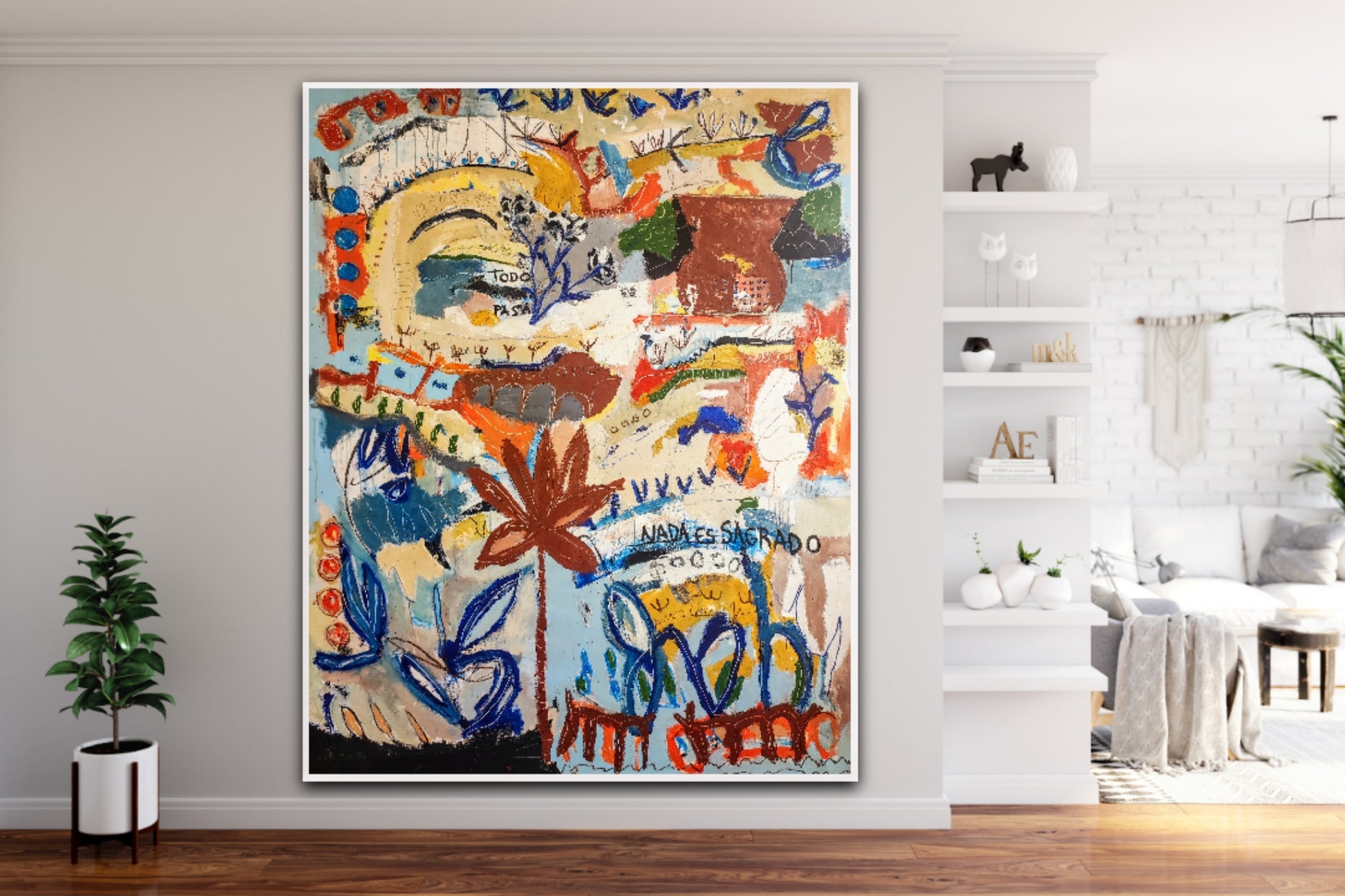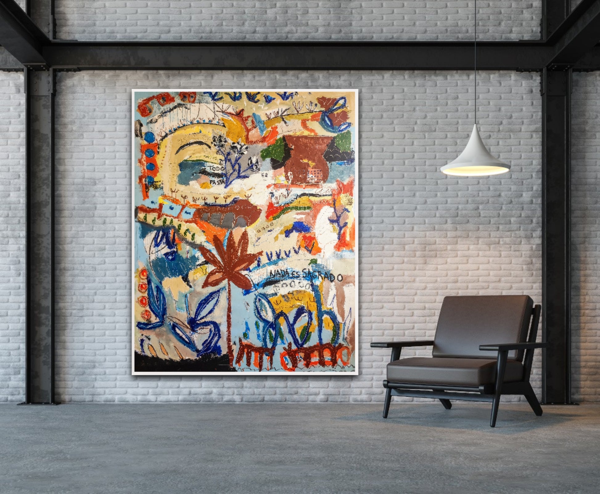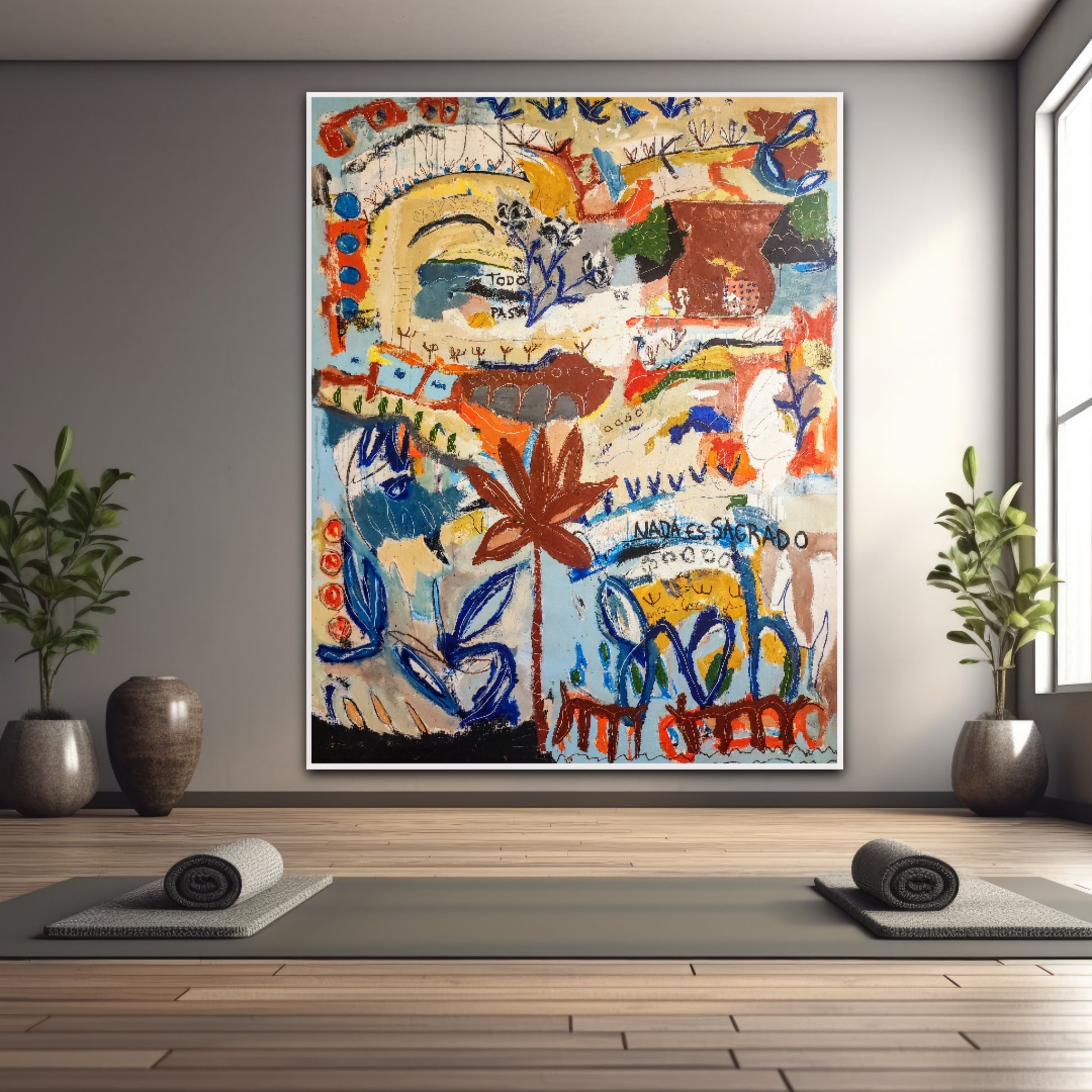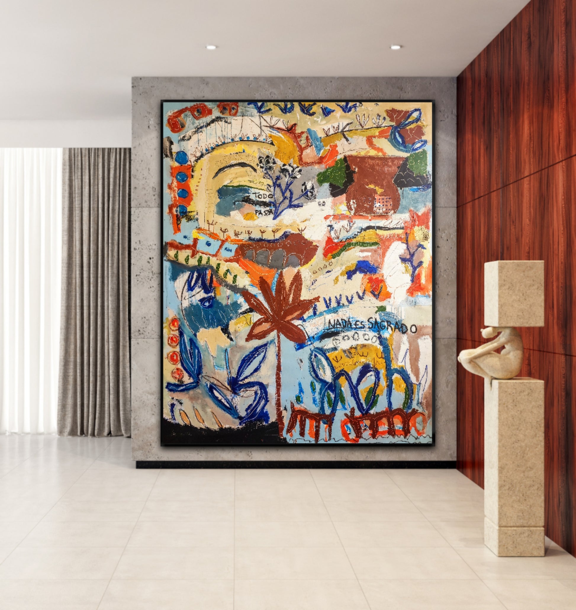 Técnica: acrílico, pigmentos, ceras, gesso, tinta china y lápiz.