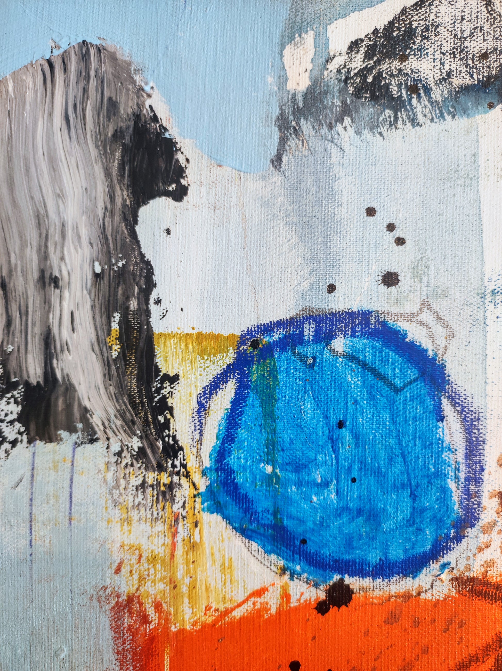 Cuadro trabajado desde la improvisación libre. Action painting con música de Clogs.