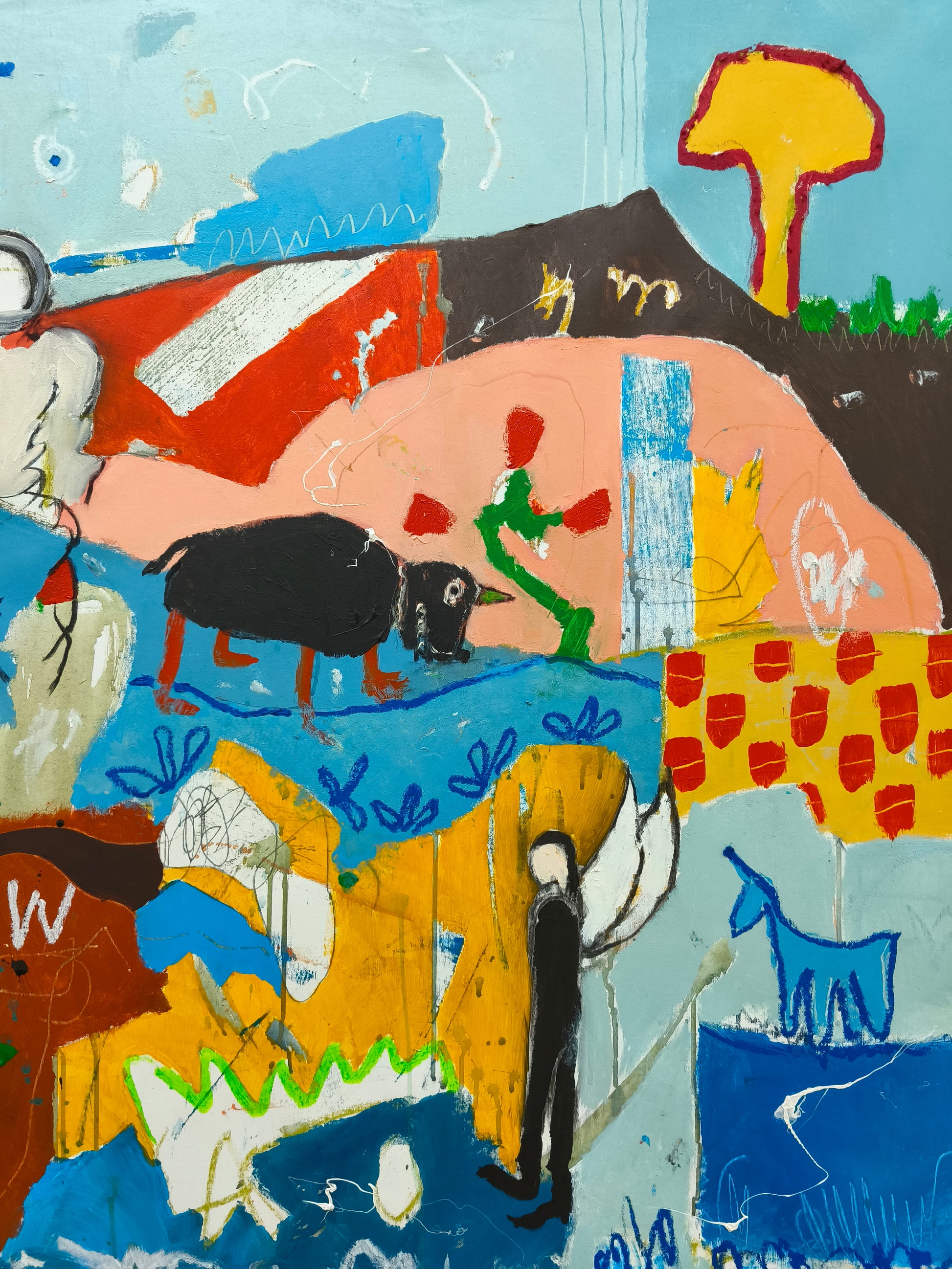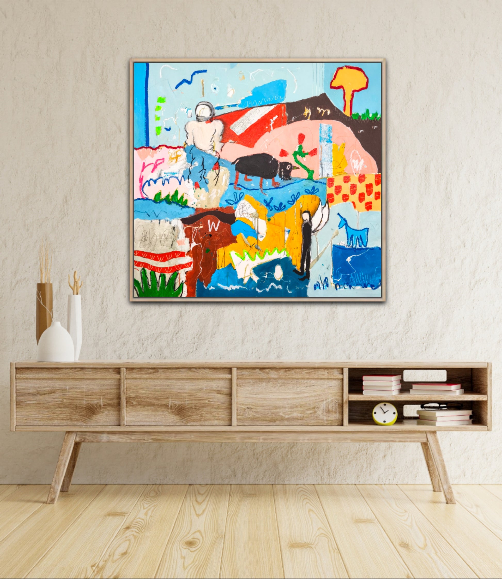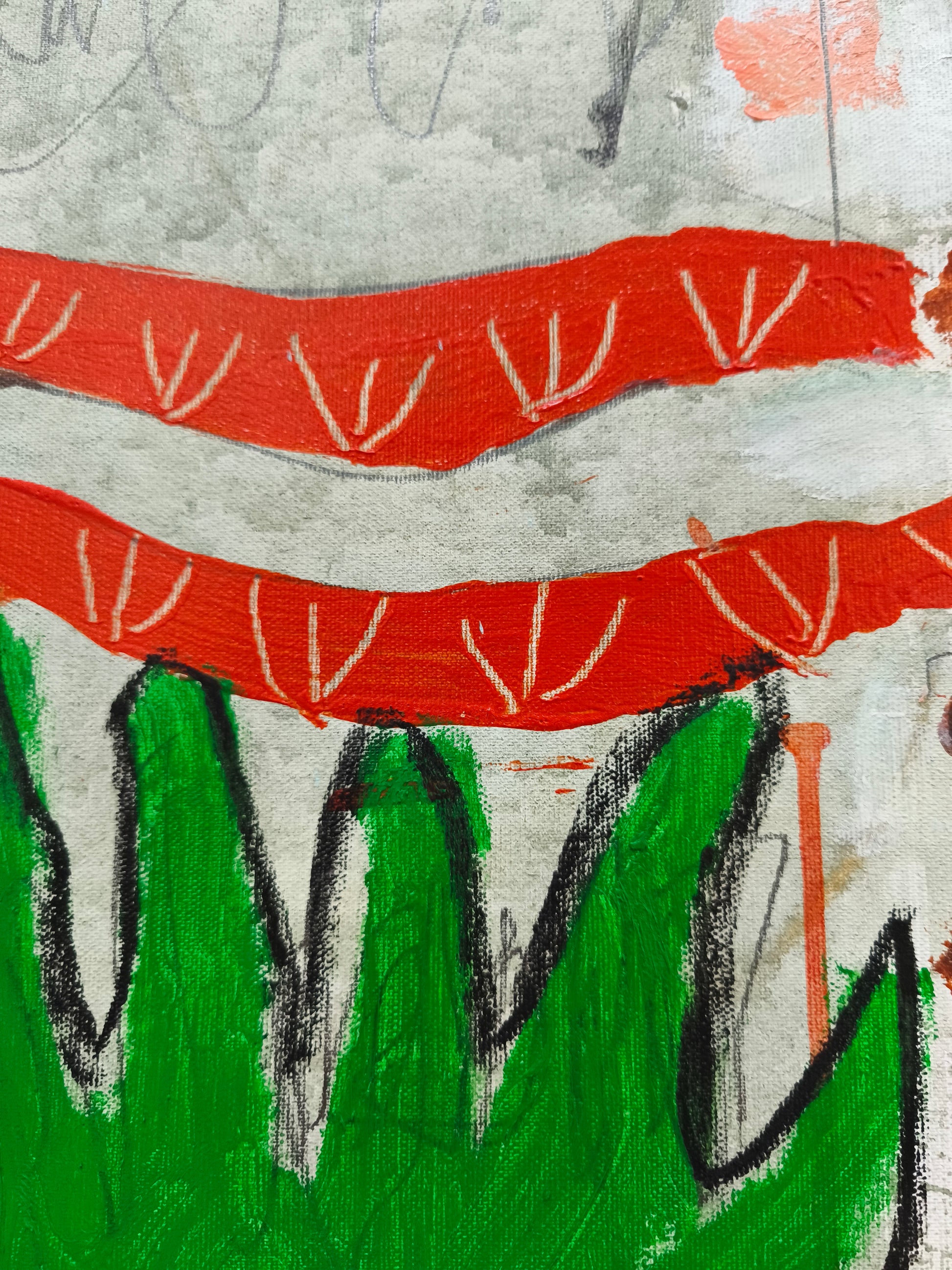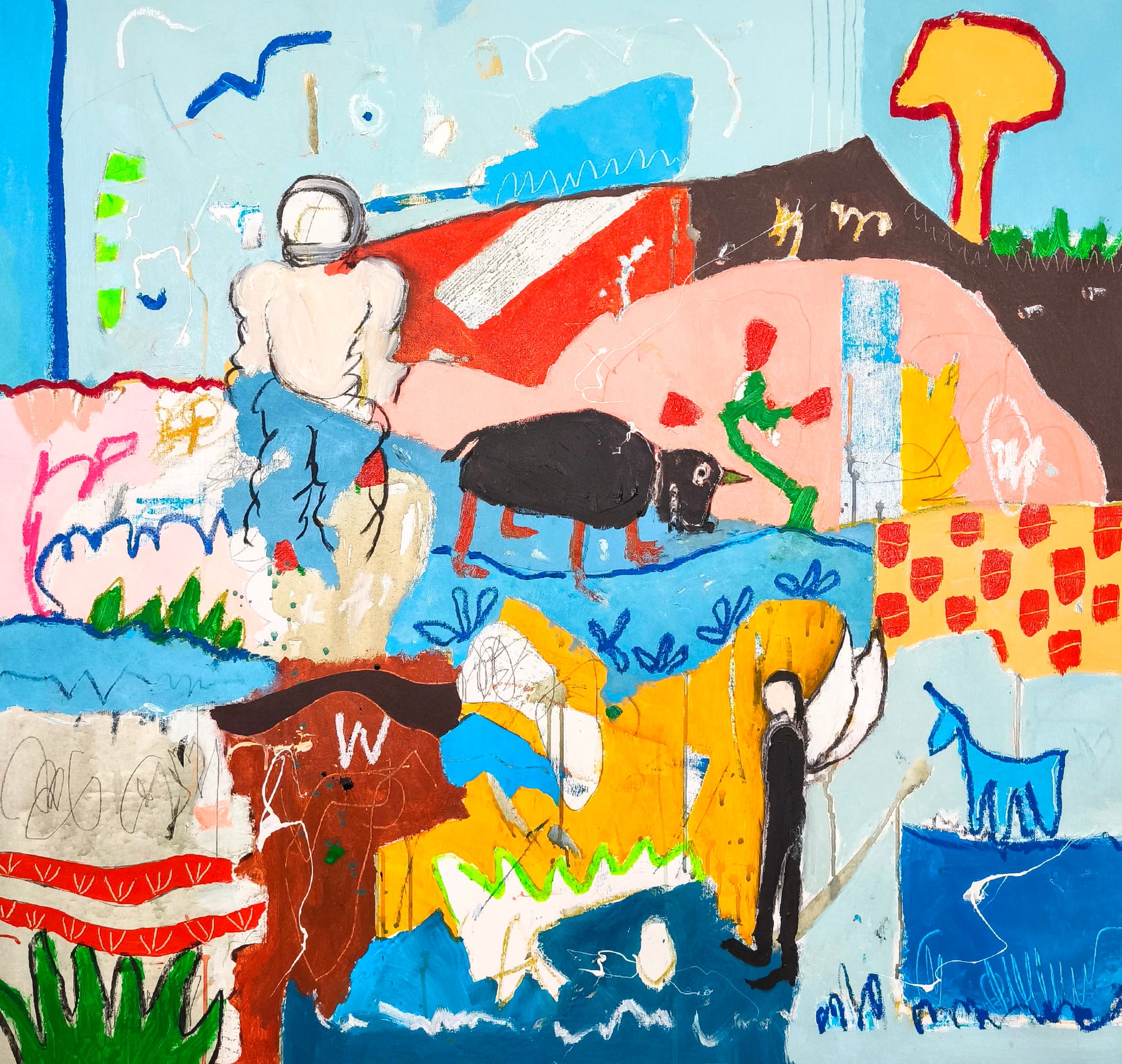 Técnica: acrílico, pigmentos, oil stick, lápiz, tinta china y carboncillo.