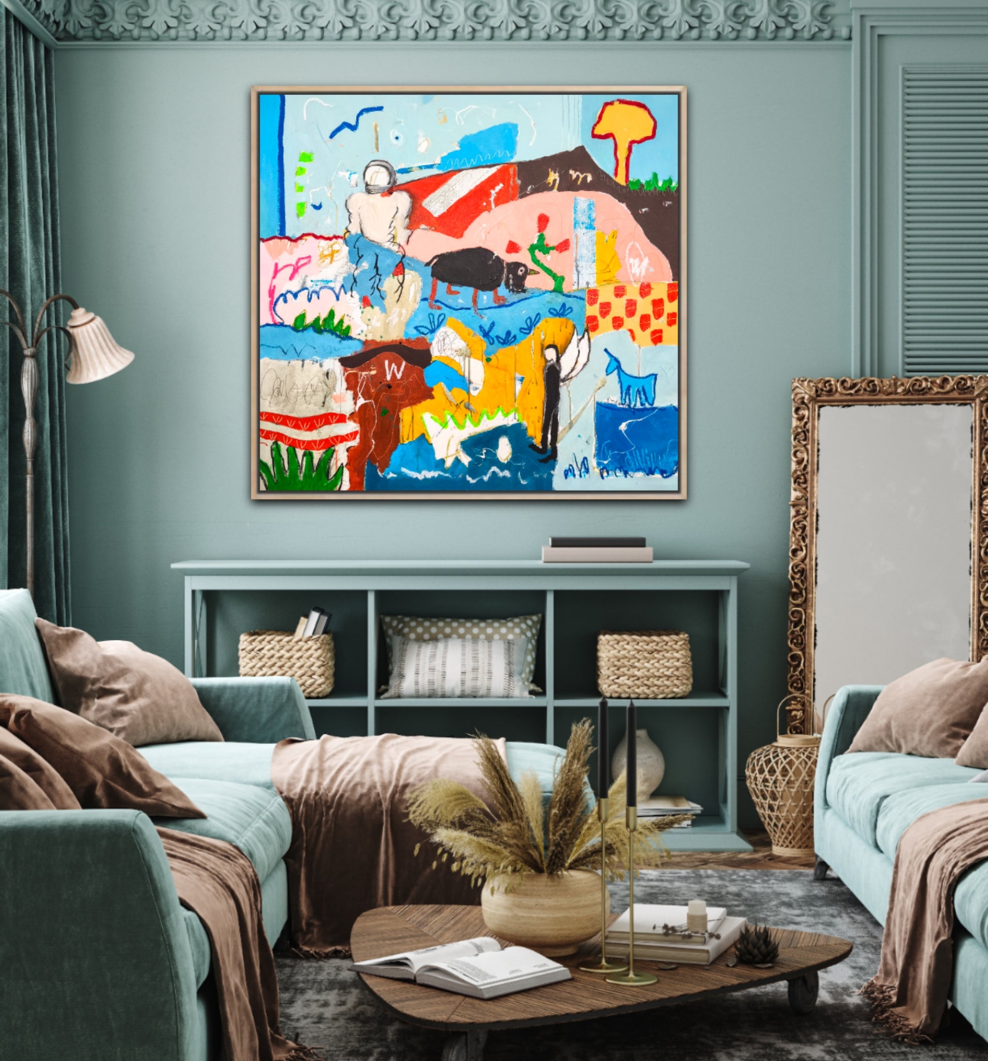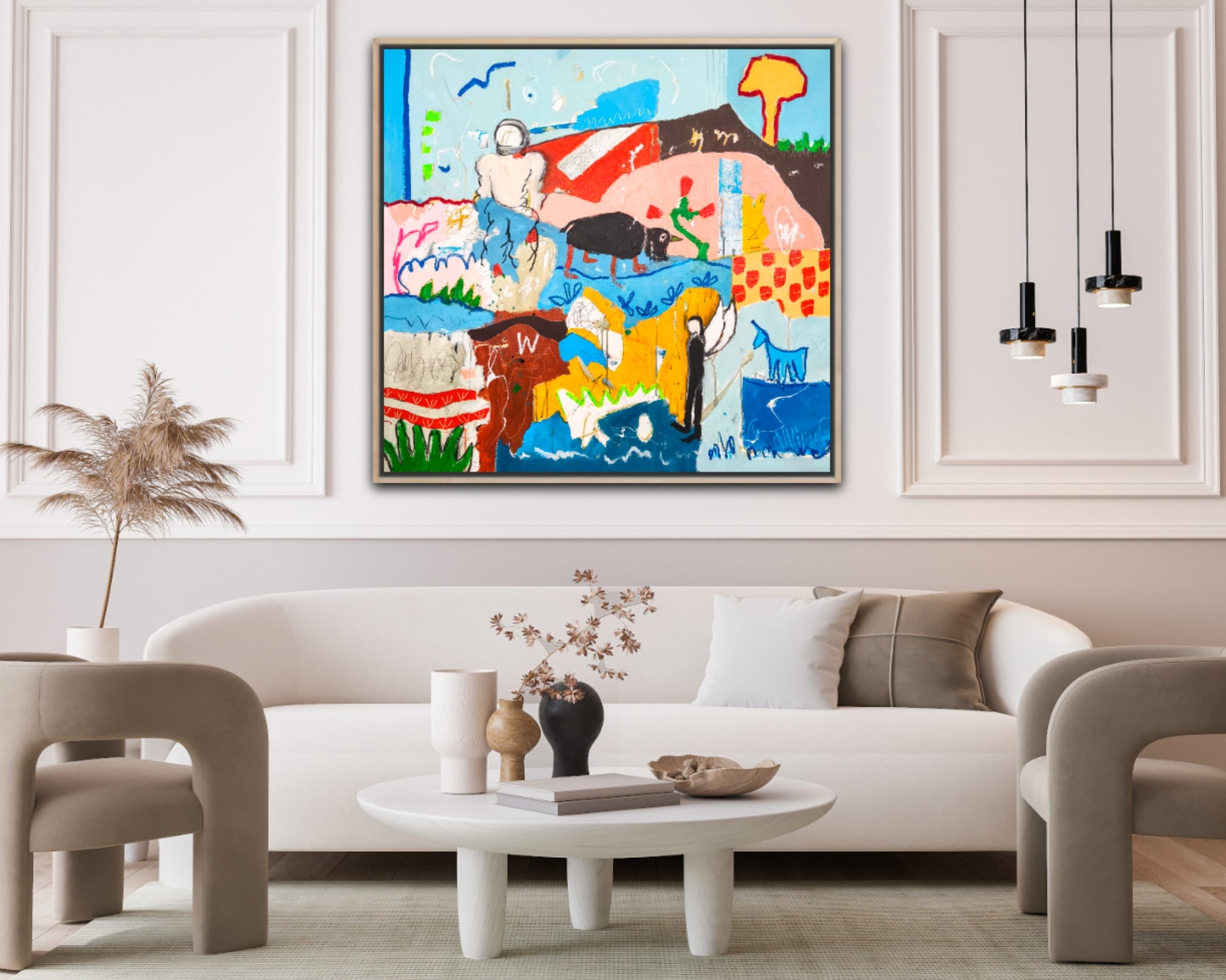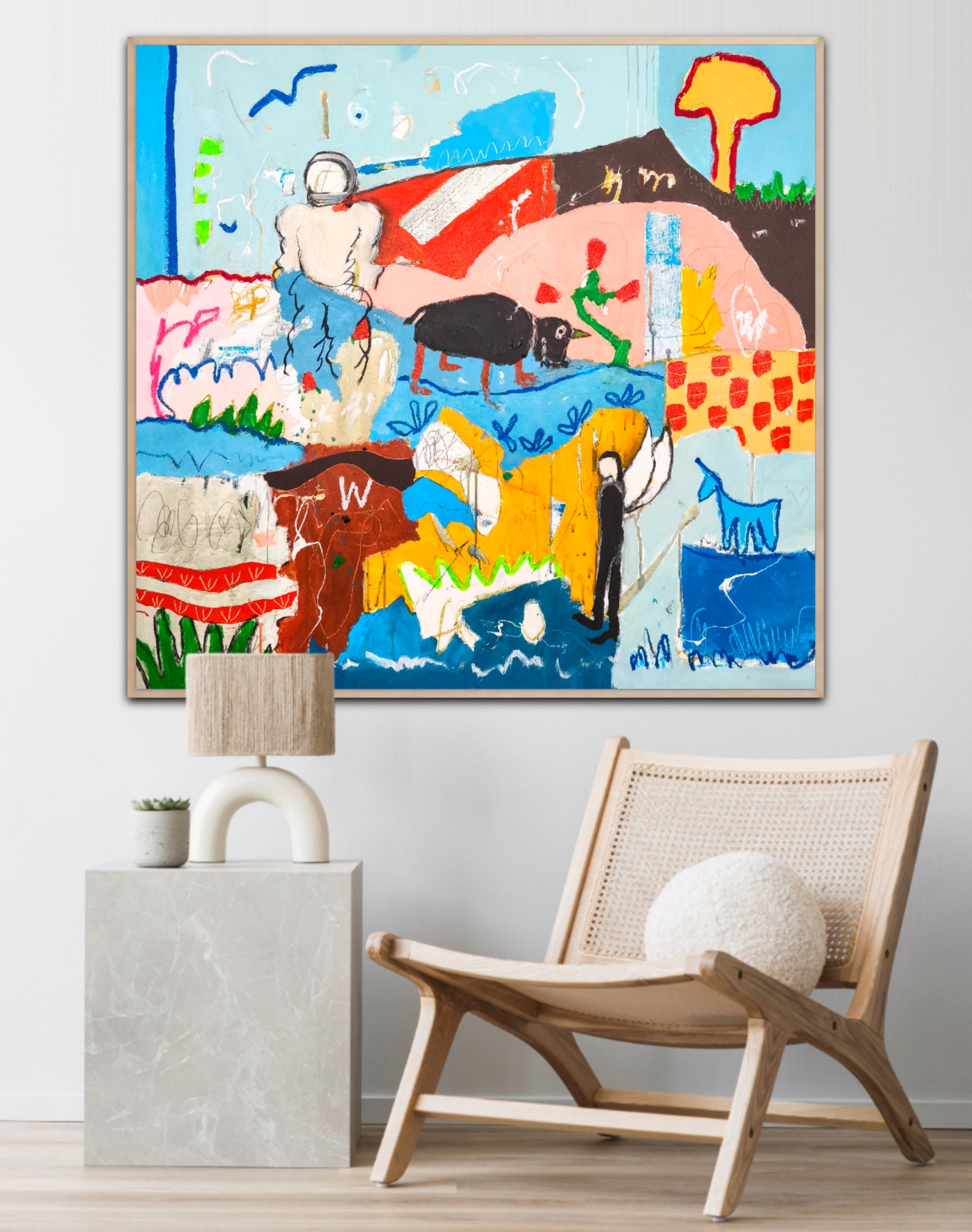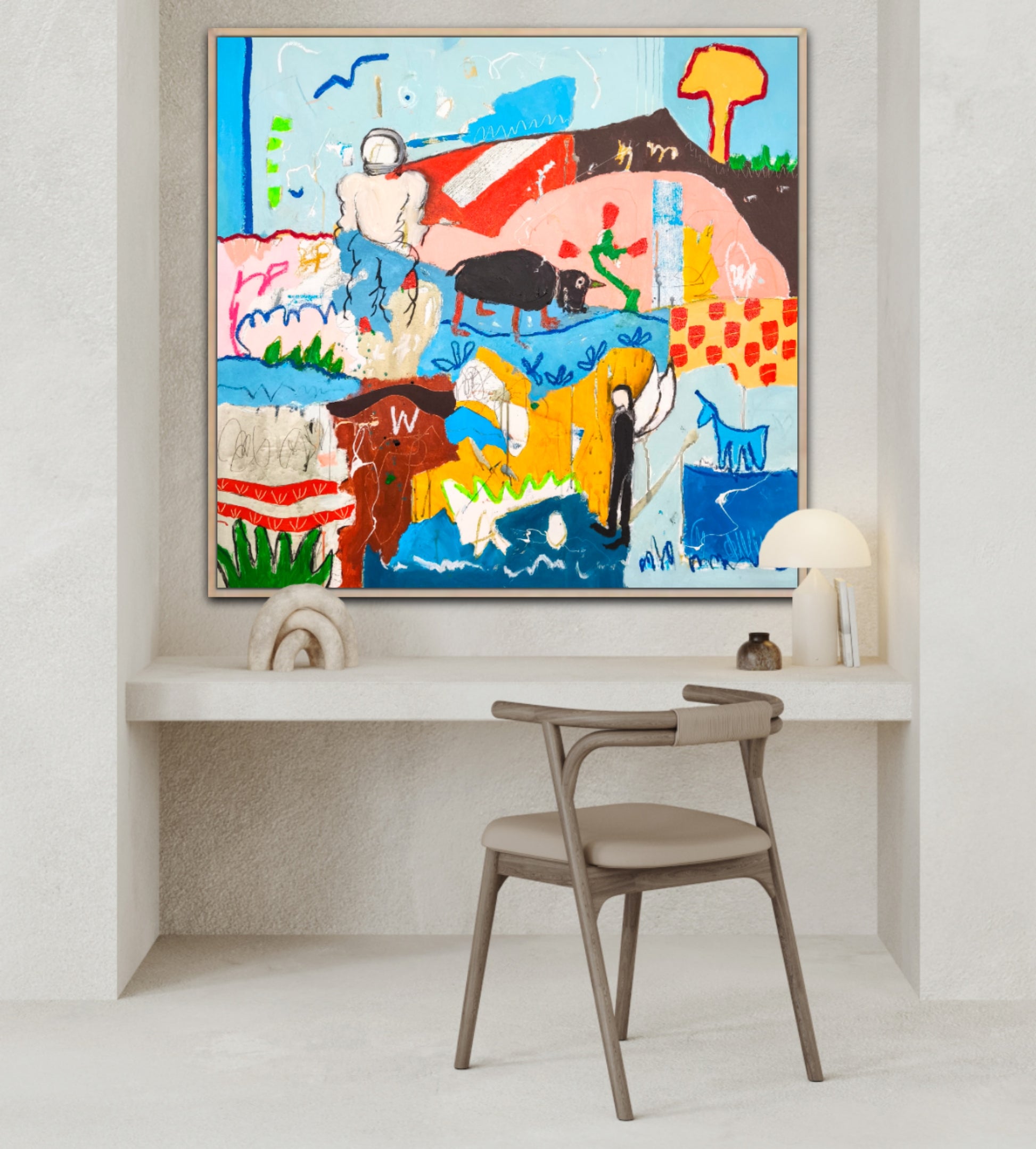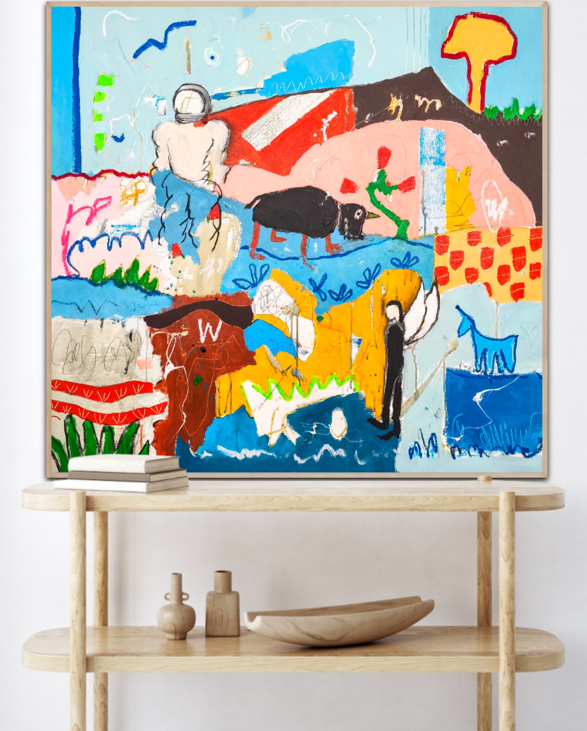 Técnica: acrílico, pigmentos, oil stick, lápiz, tinta china y carboncillo.