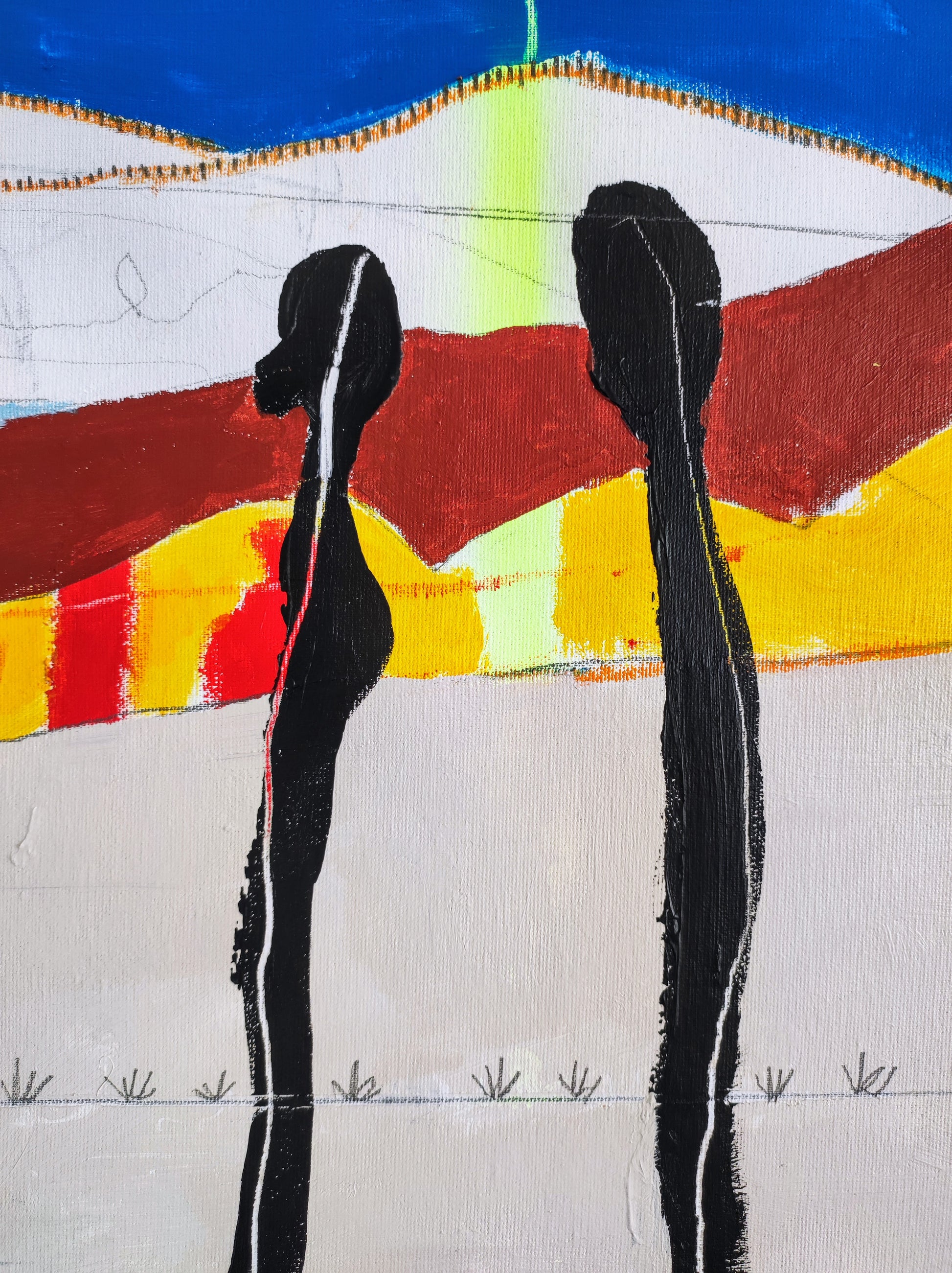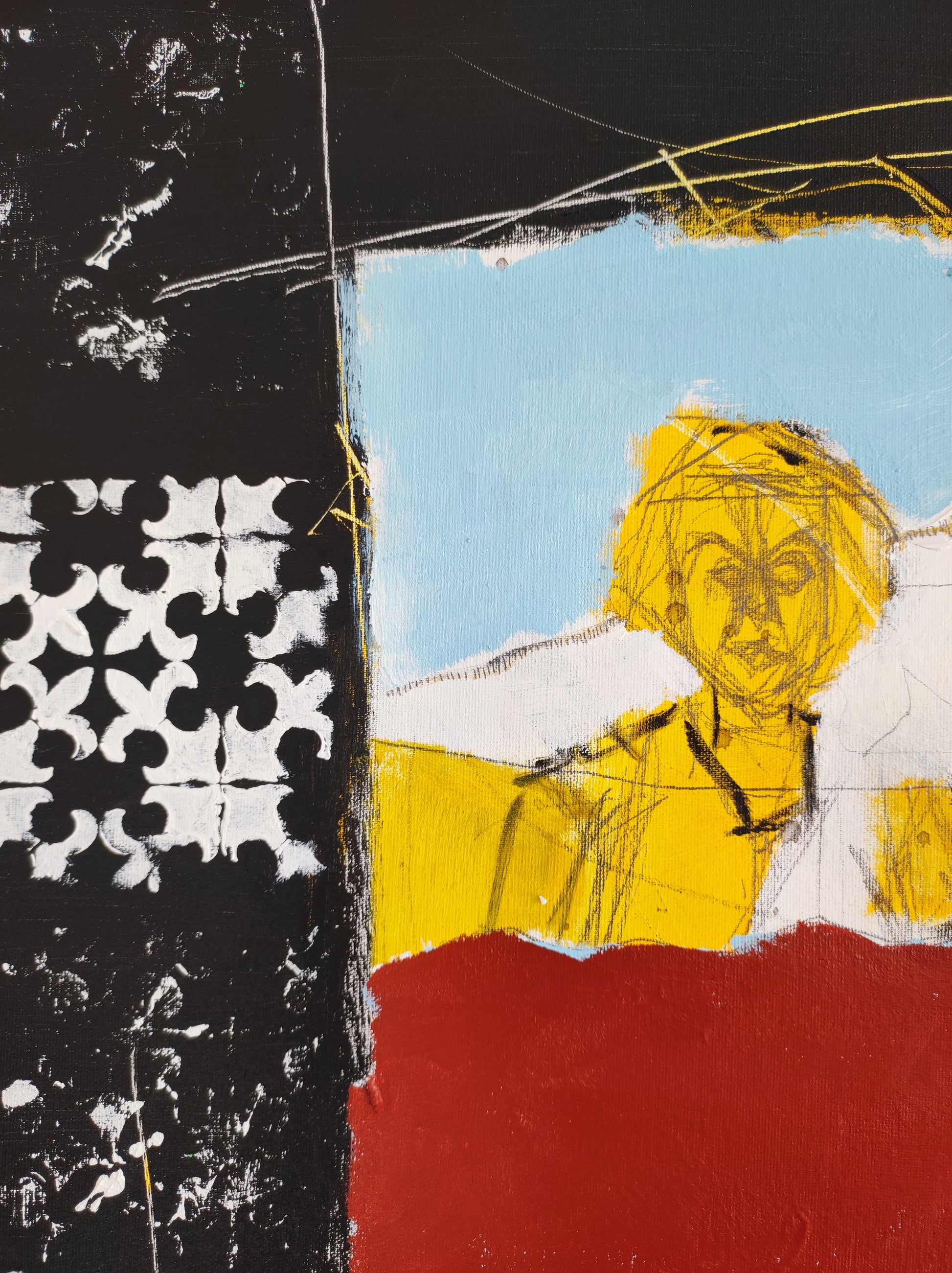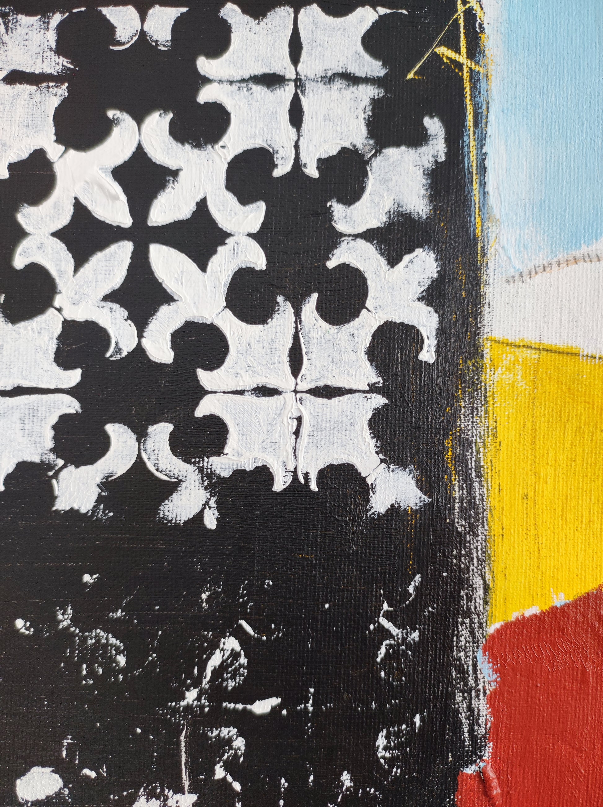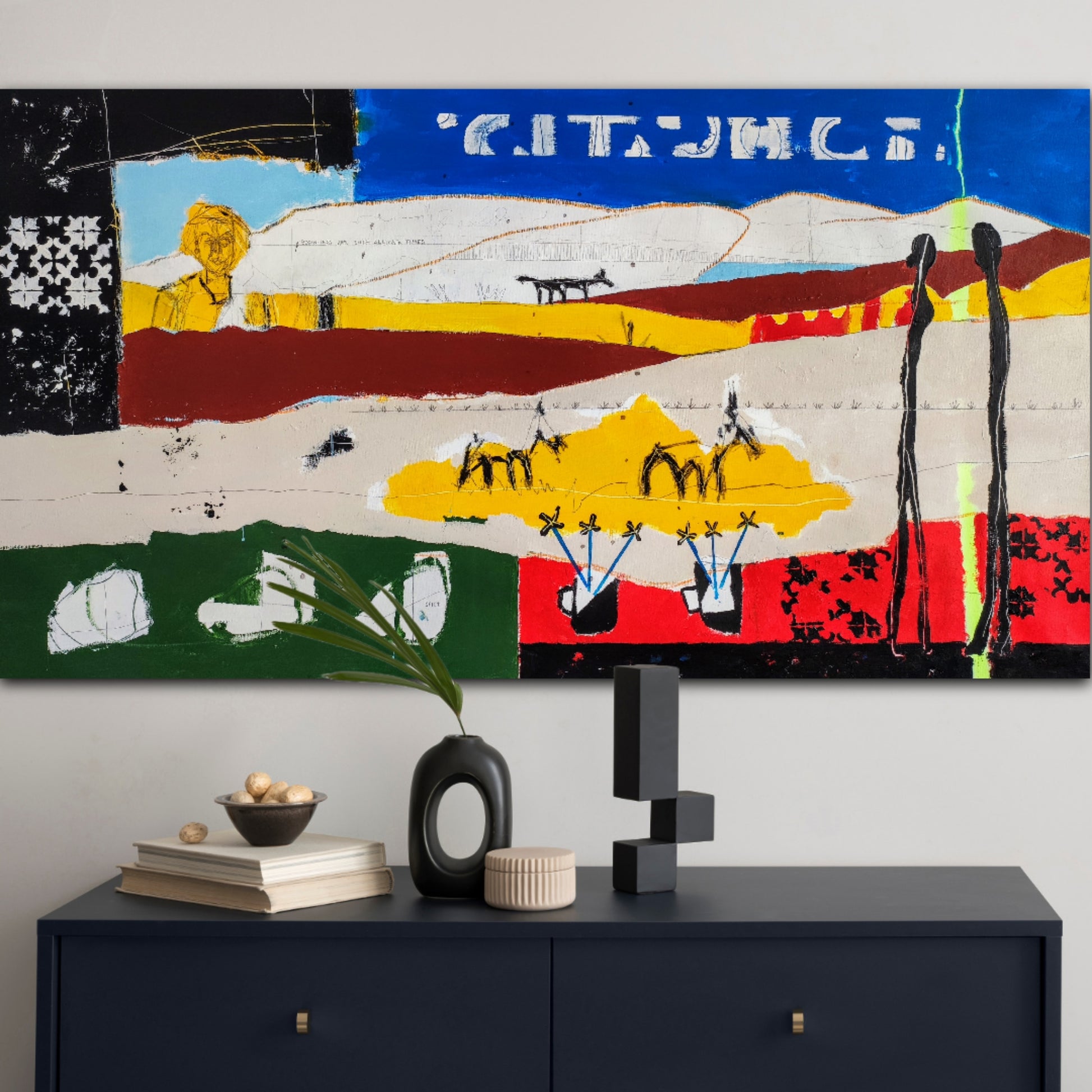 Técnica: acrílico, pigmentos, gesso, pintura en spray y lápiz.