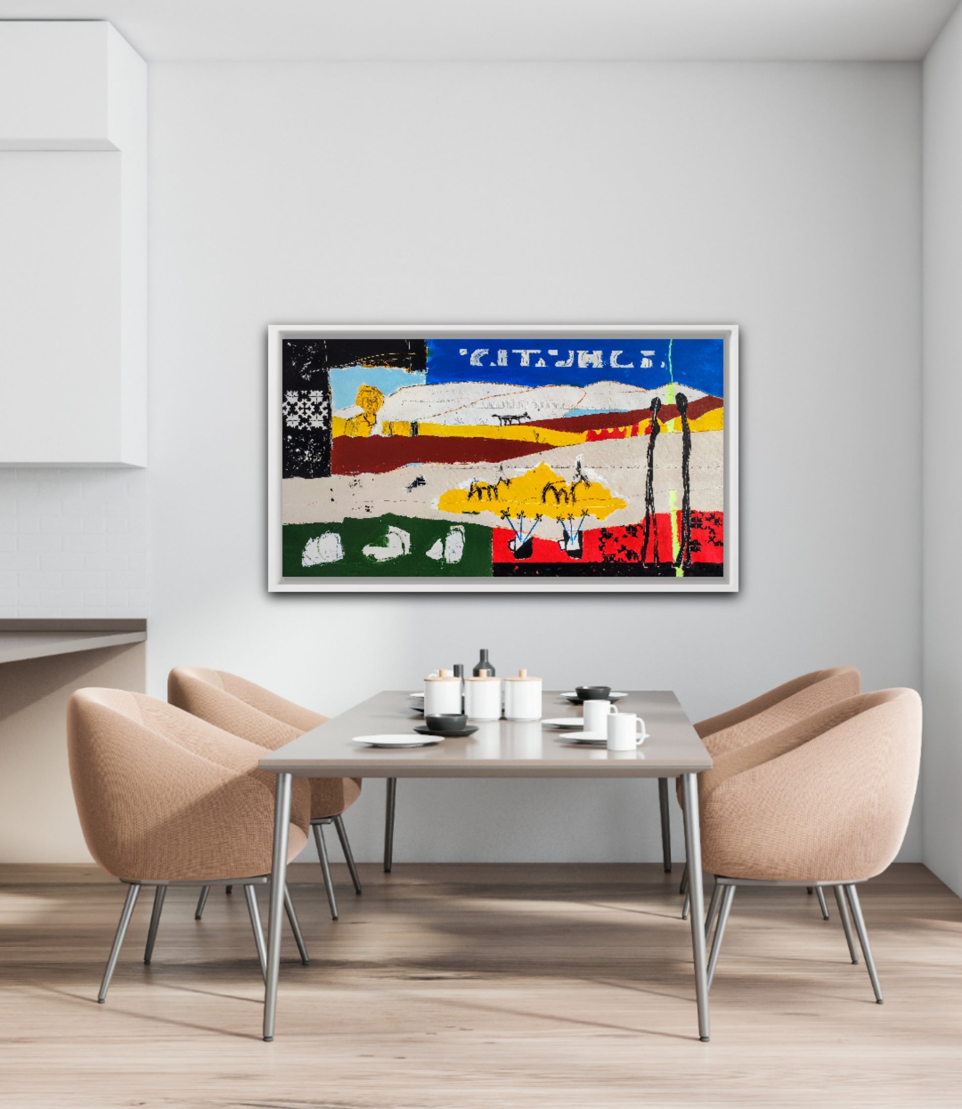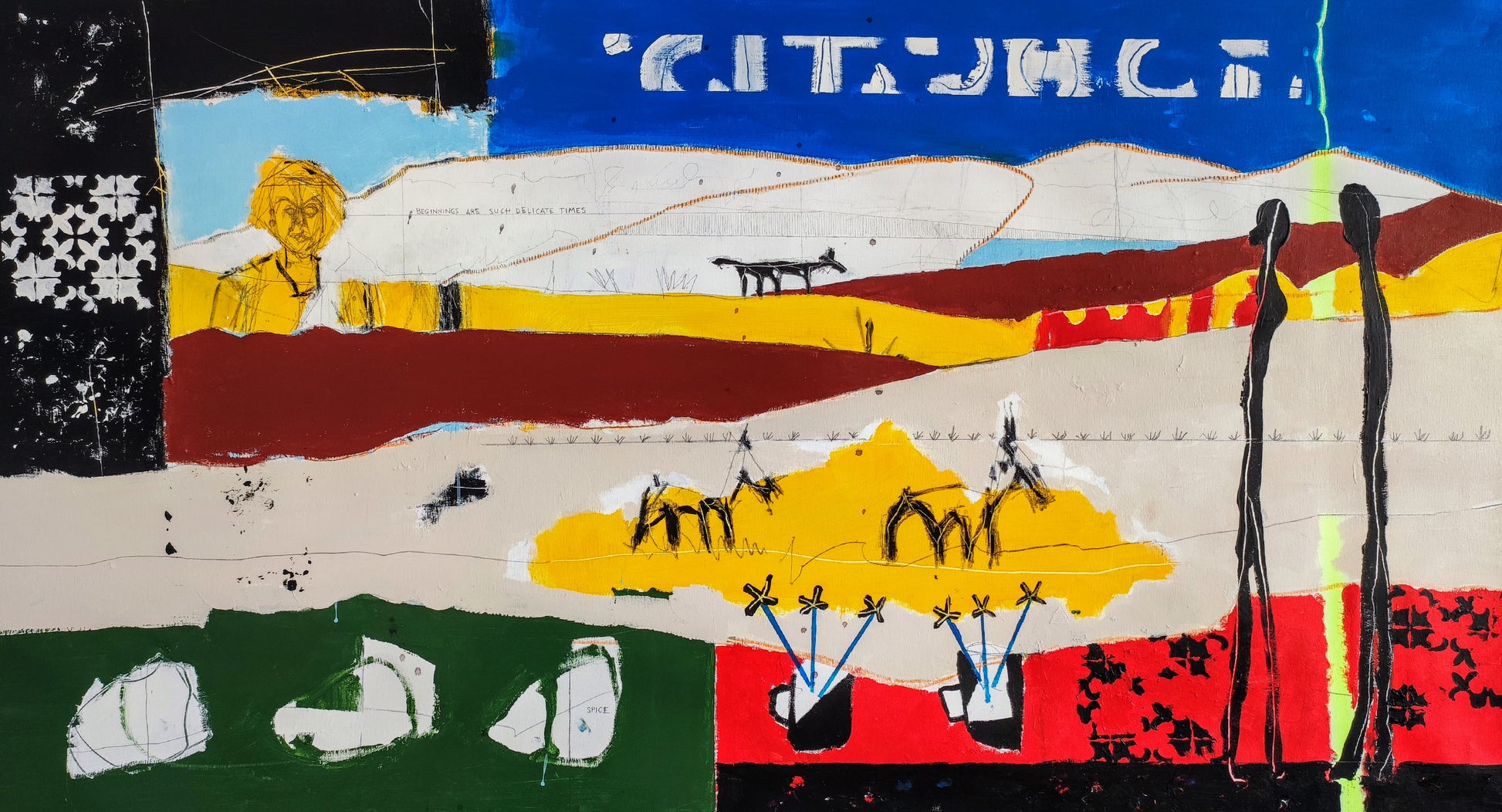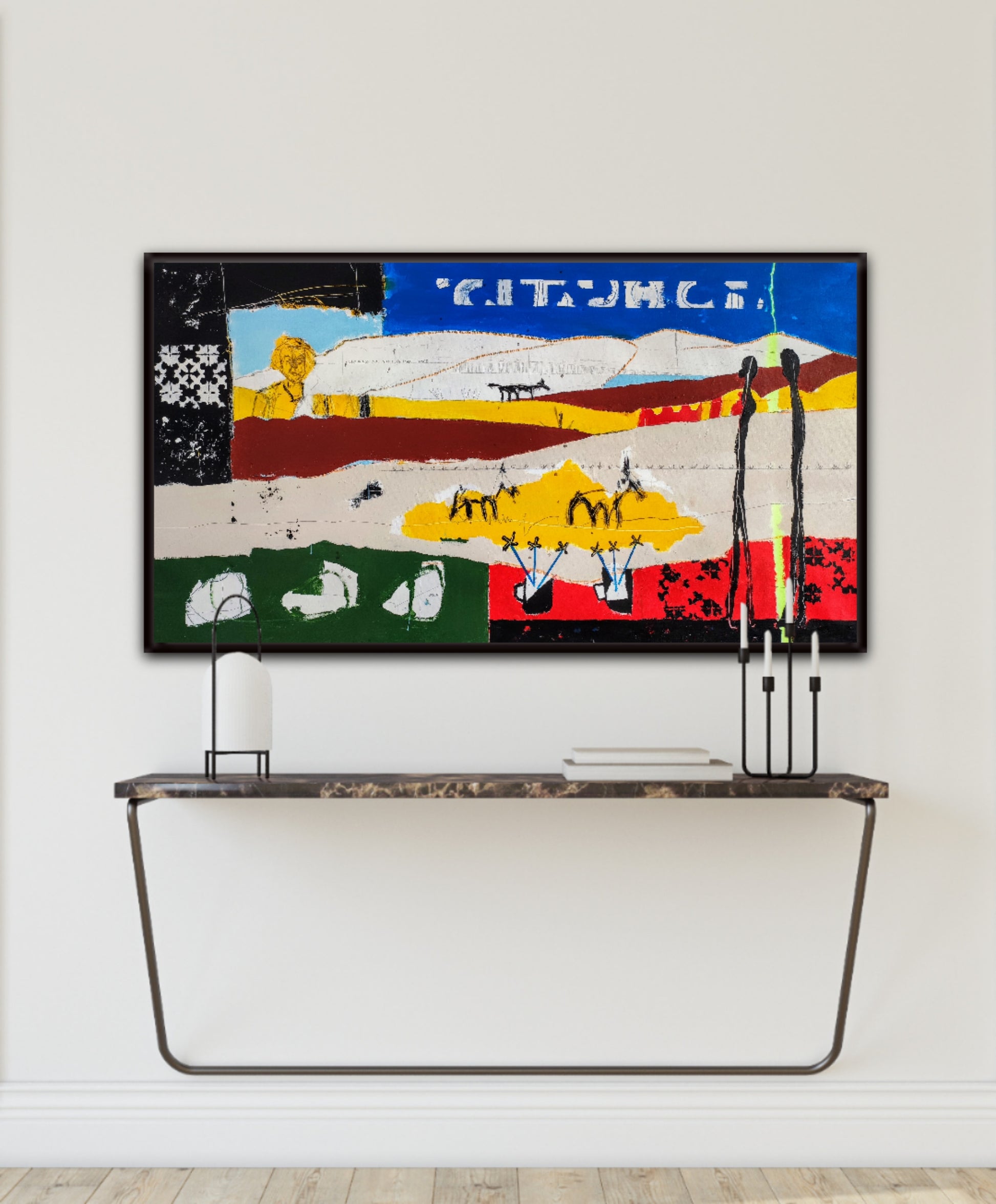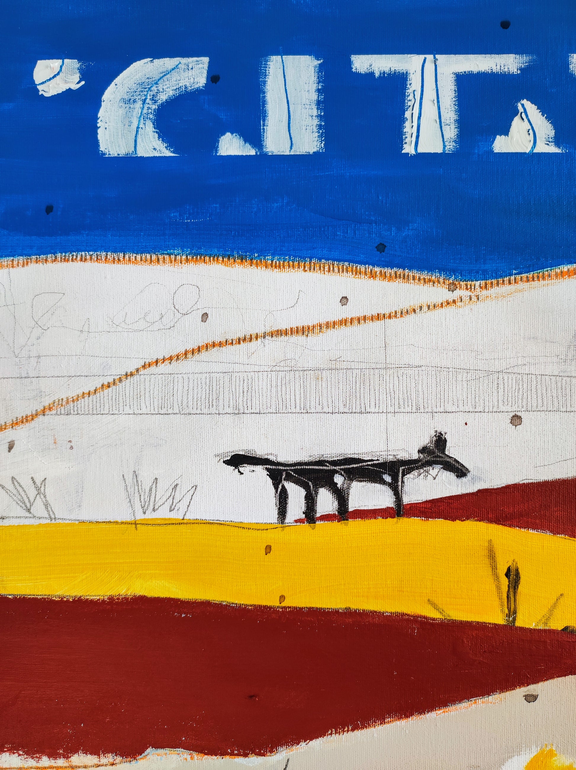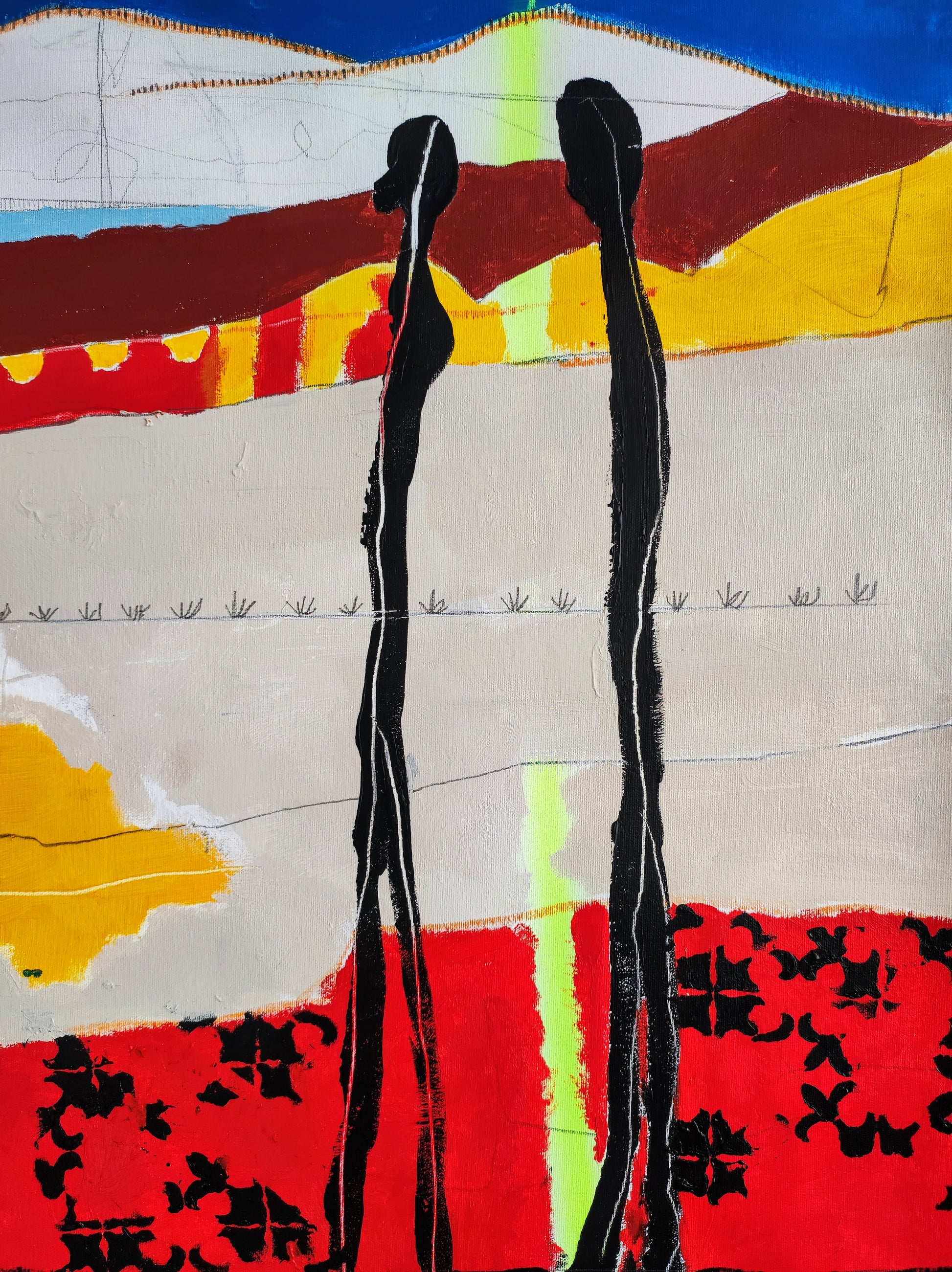 Técnica: acrílico, pigmentos, gesso, pintura en spray y lápiz.