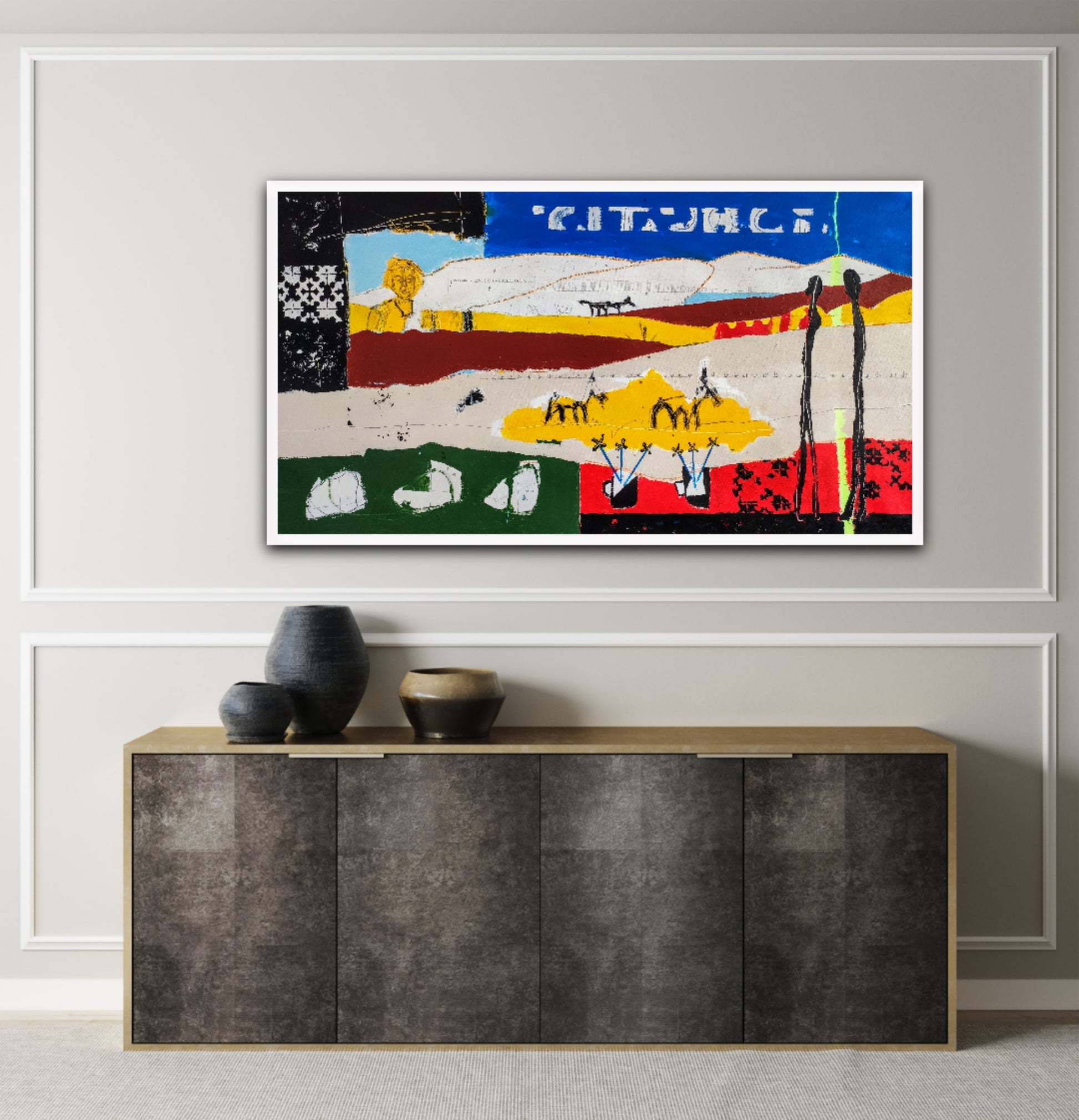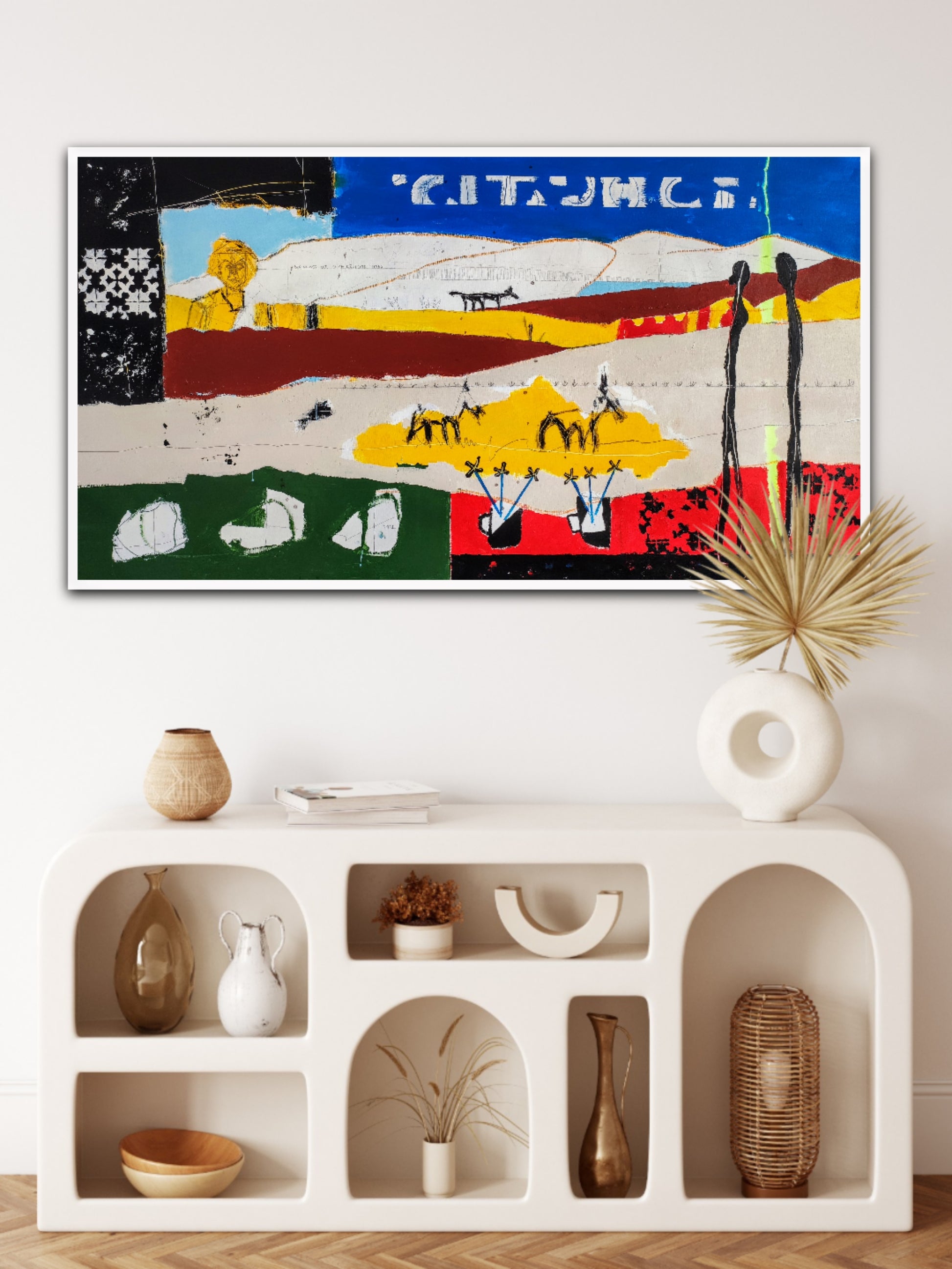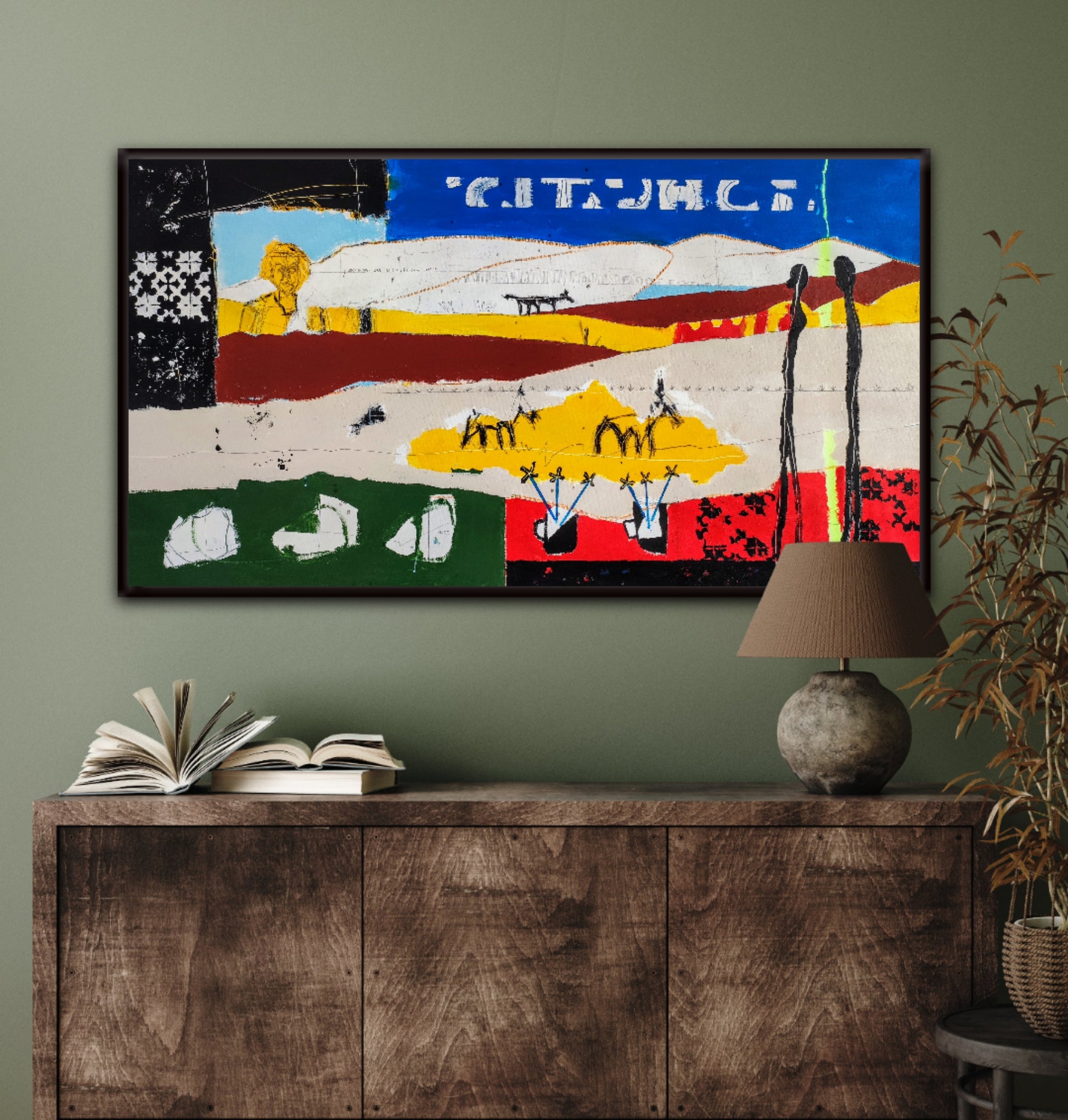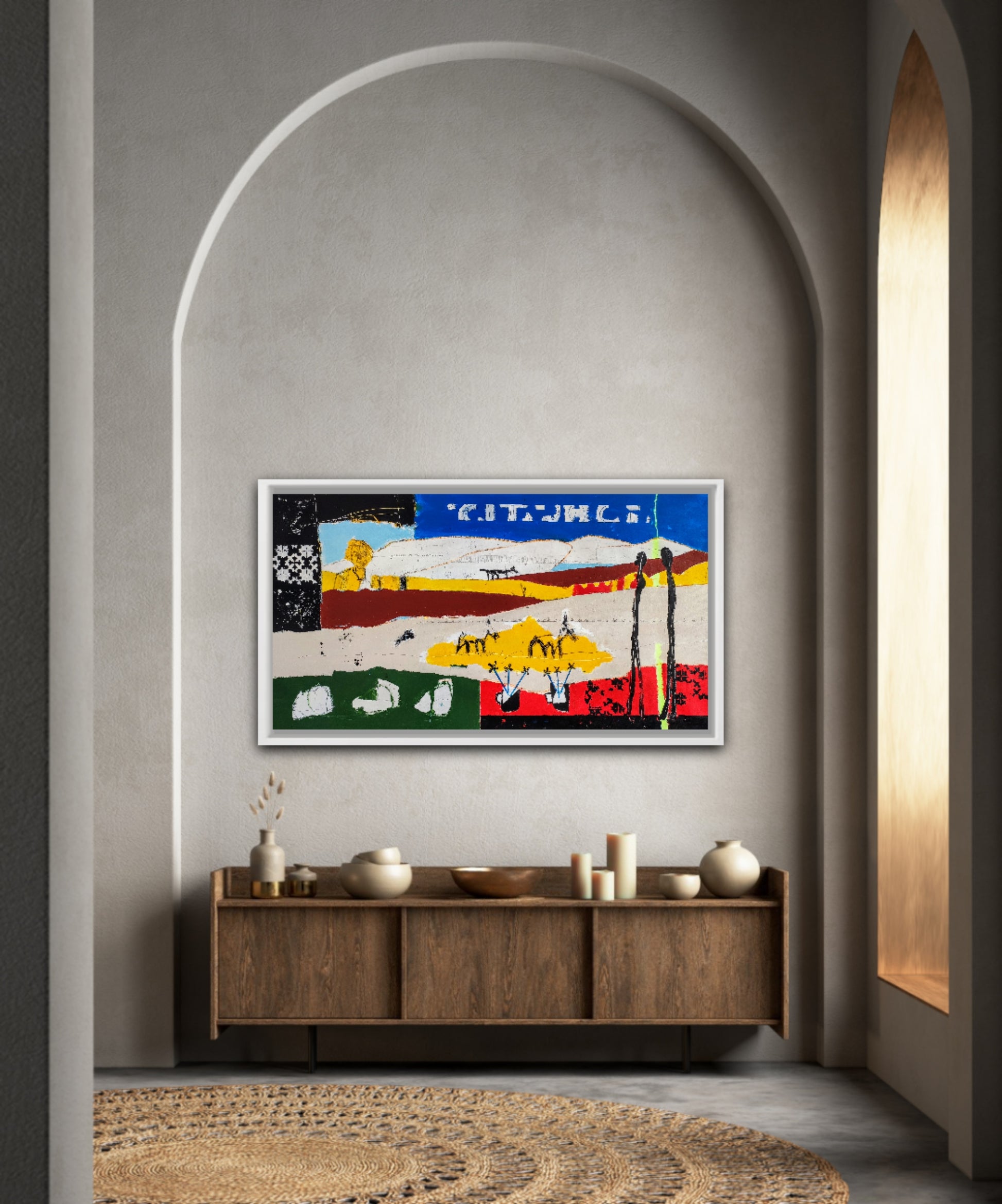 Técnica: acrílico, pigmentos, gesso, pintura en spray y lápiz.