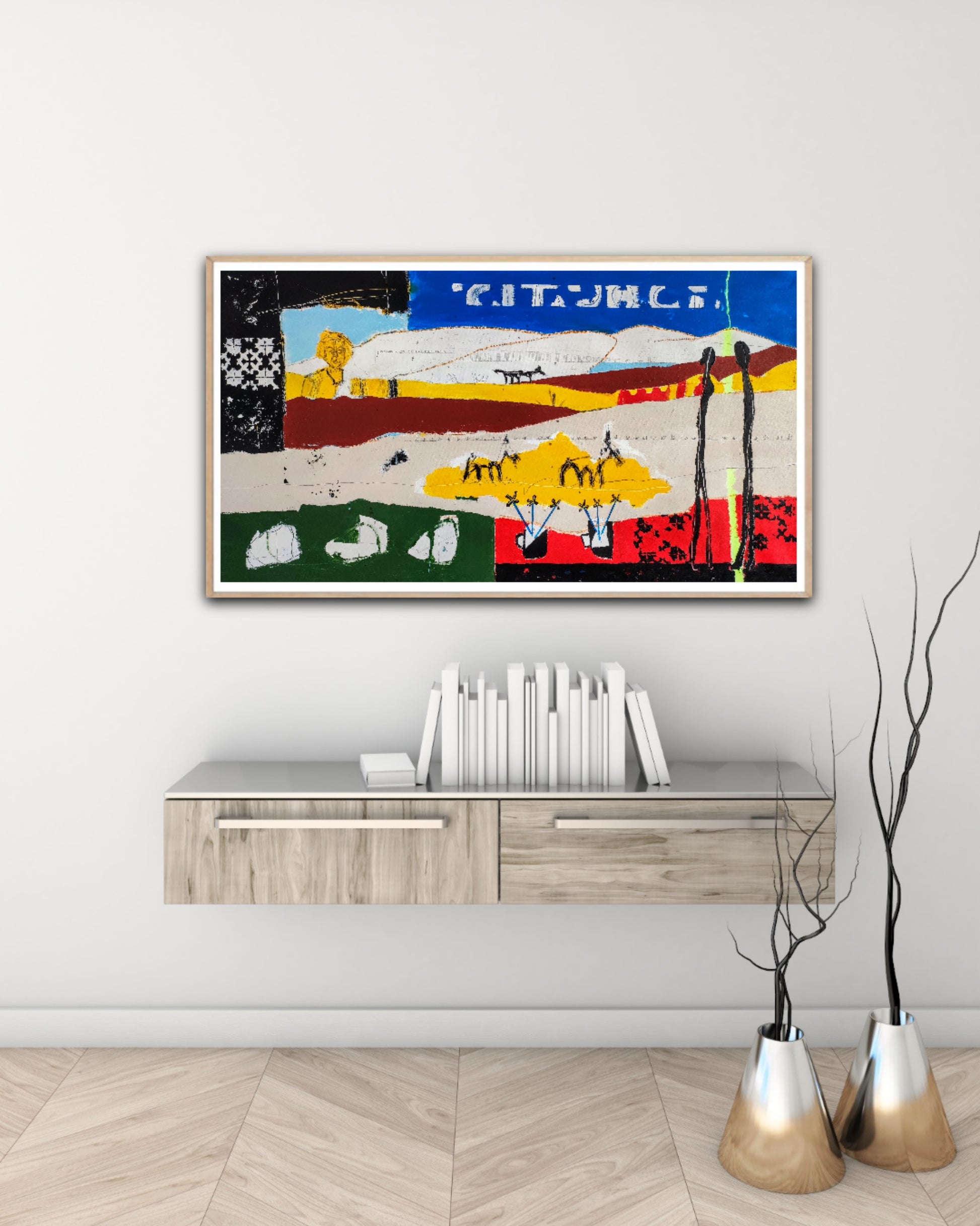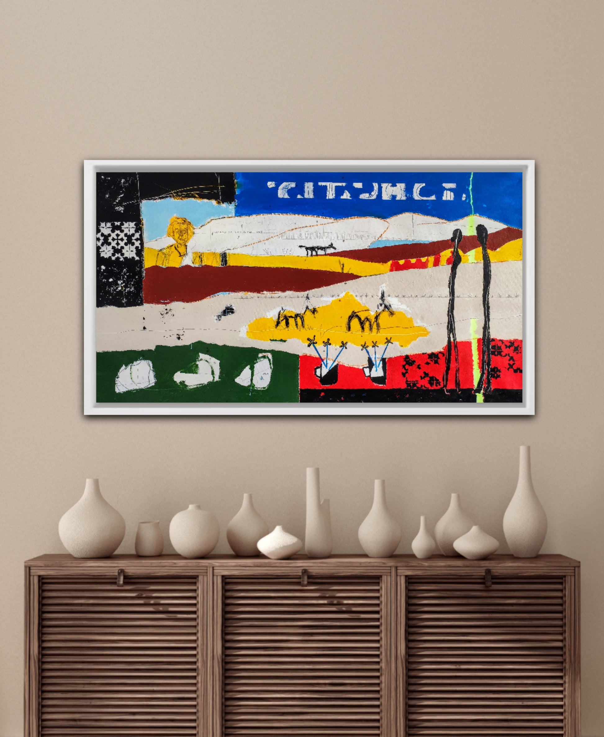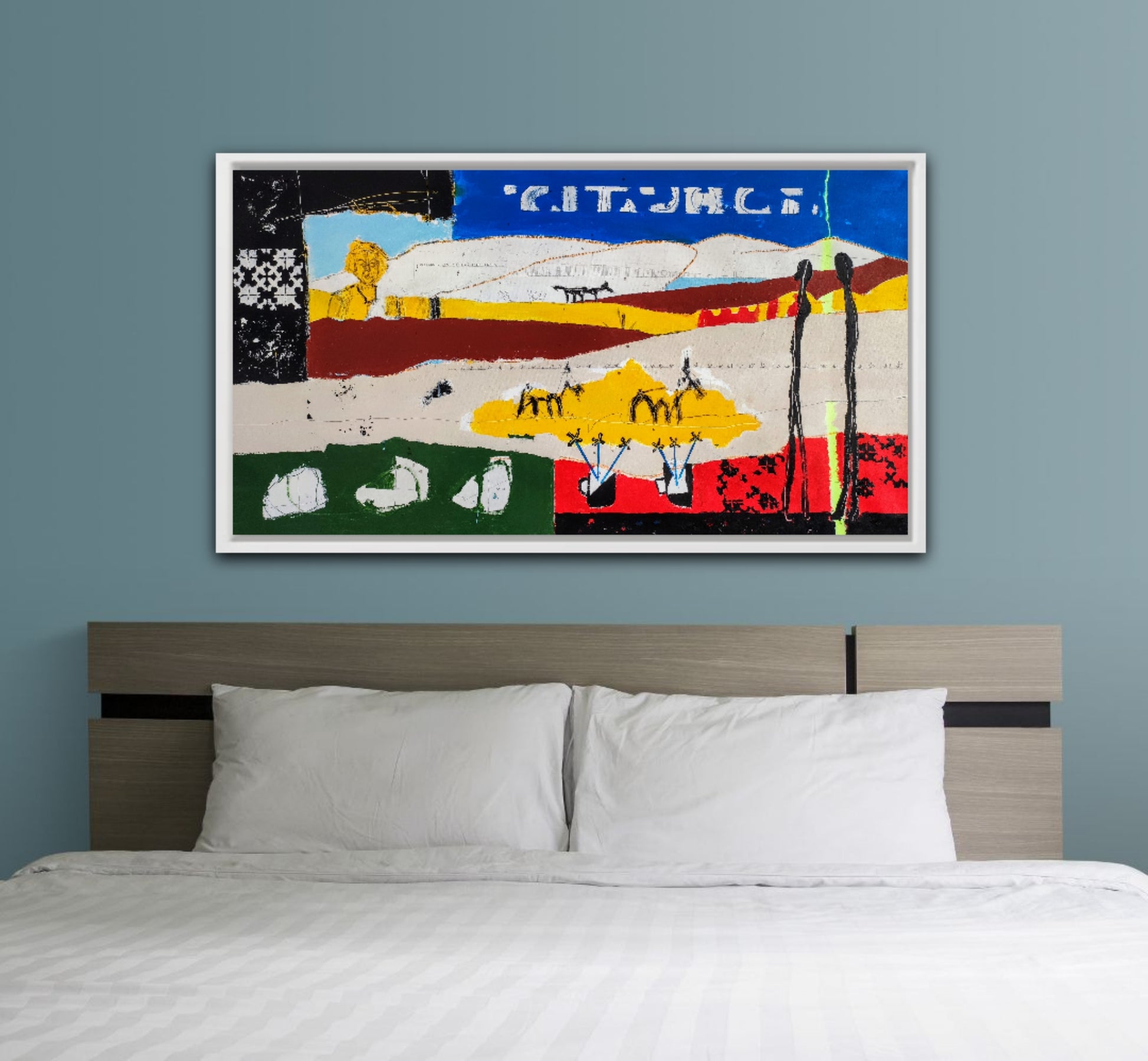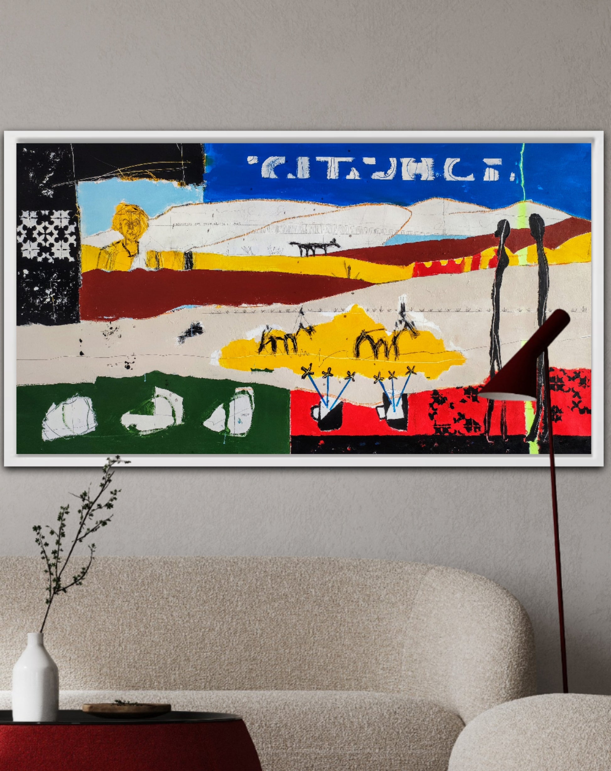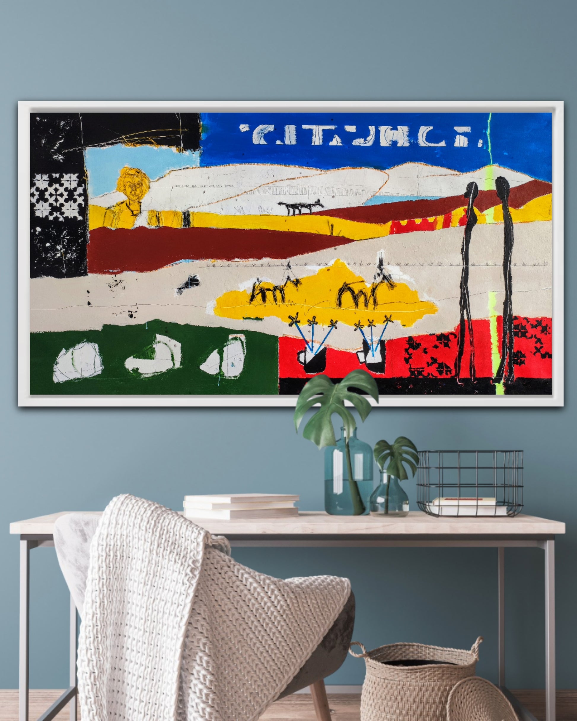 Técnica: acrílico, pigmentos, gesso, pintura en spray y lápiz.