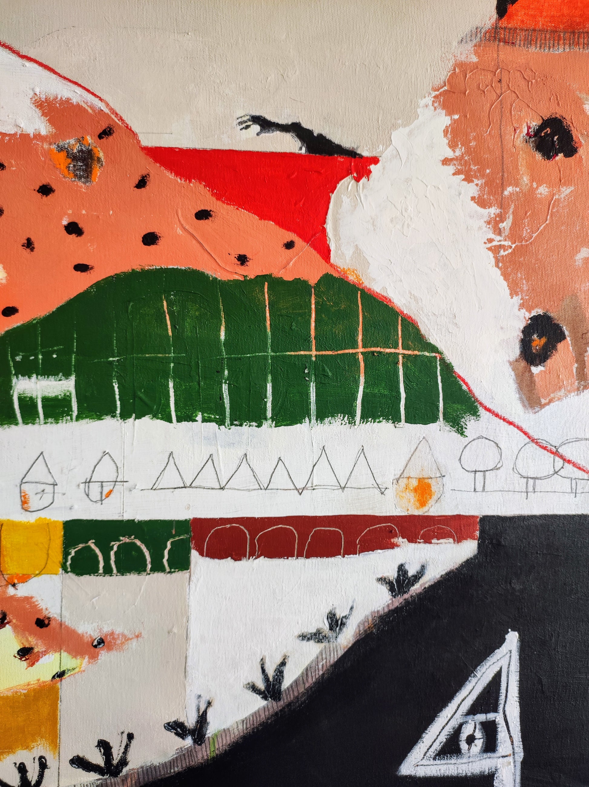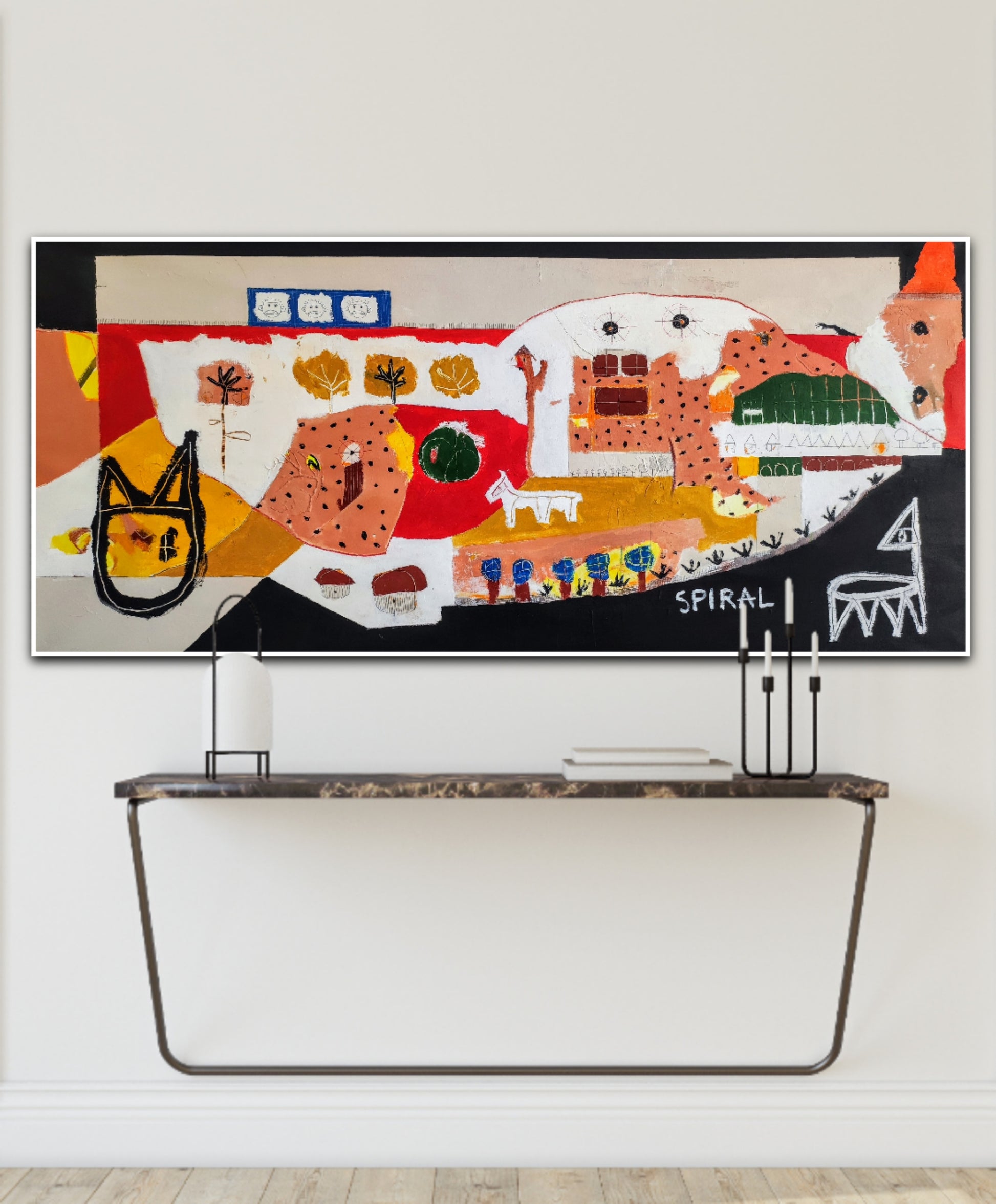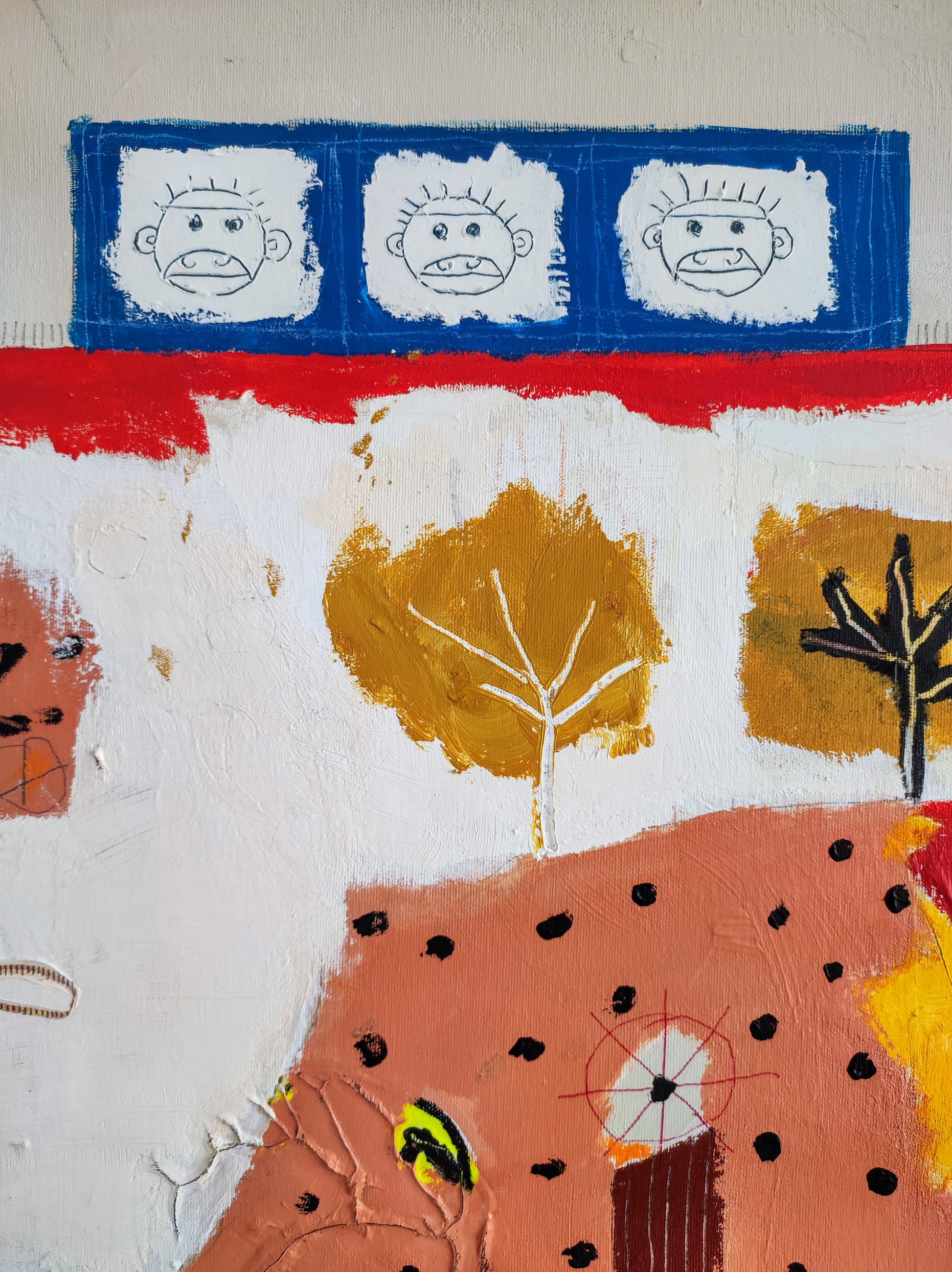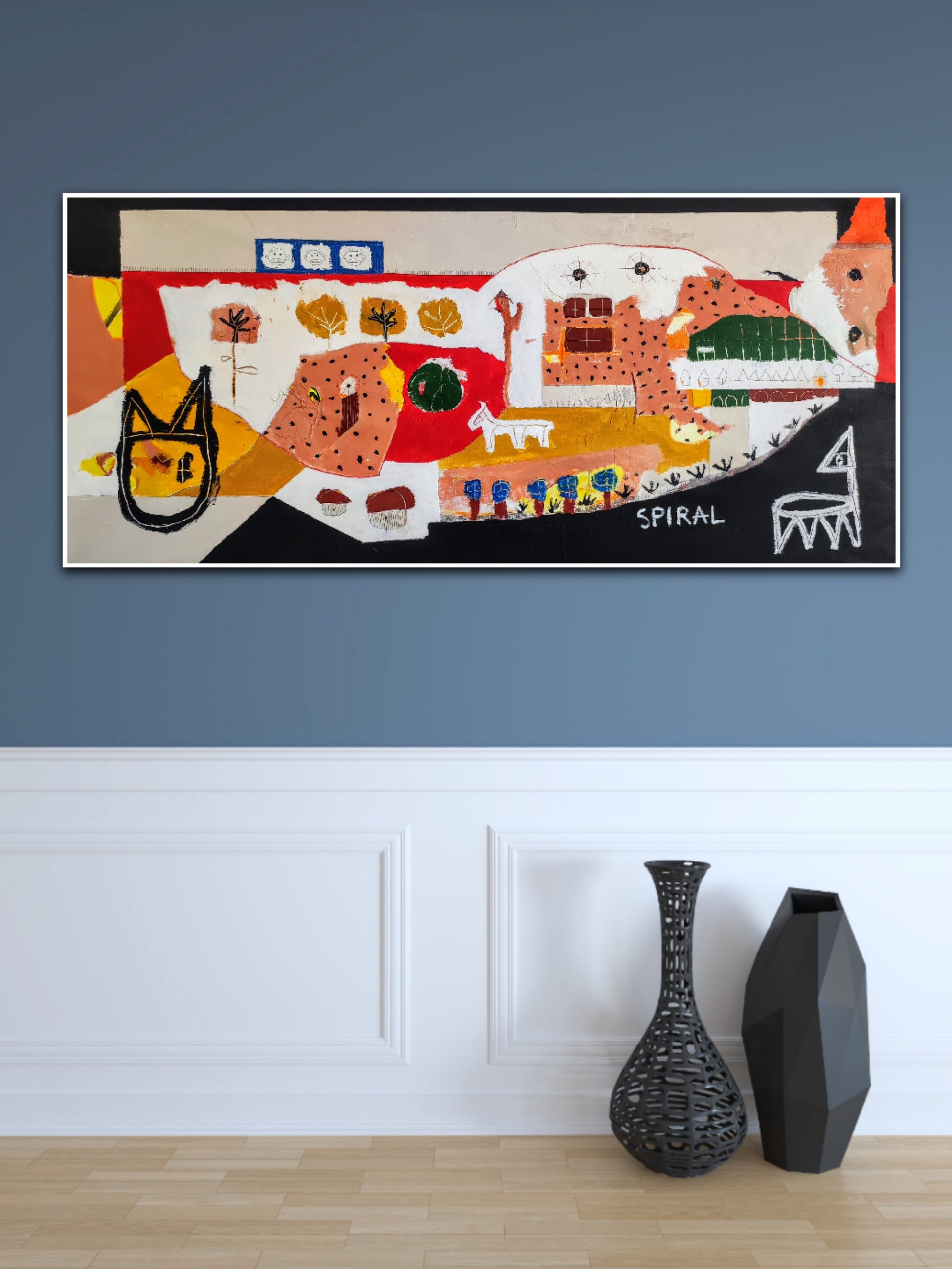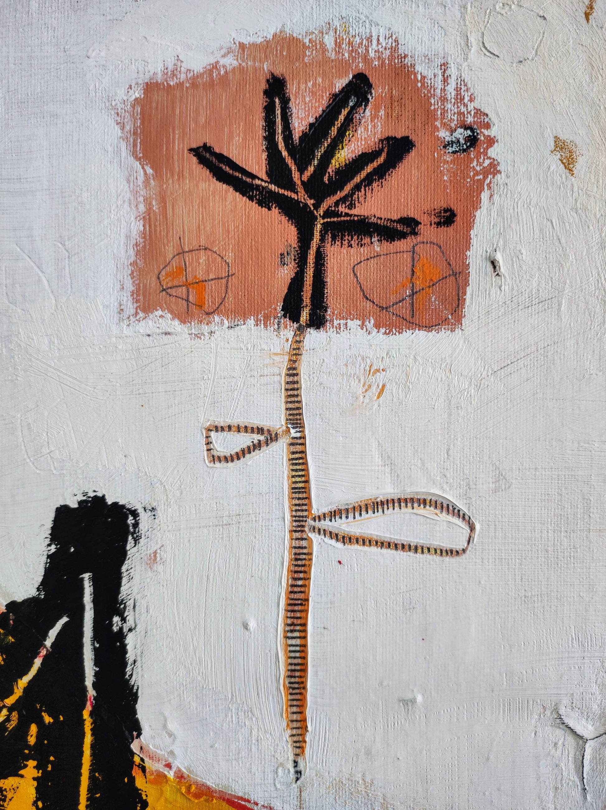 Técnica: acrílico, pigmentos, gesso, ceras, carboncillo y lápiz.