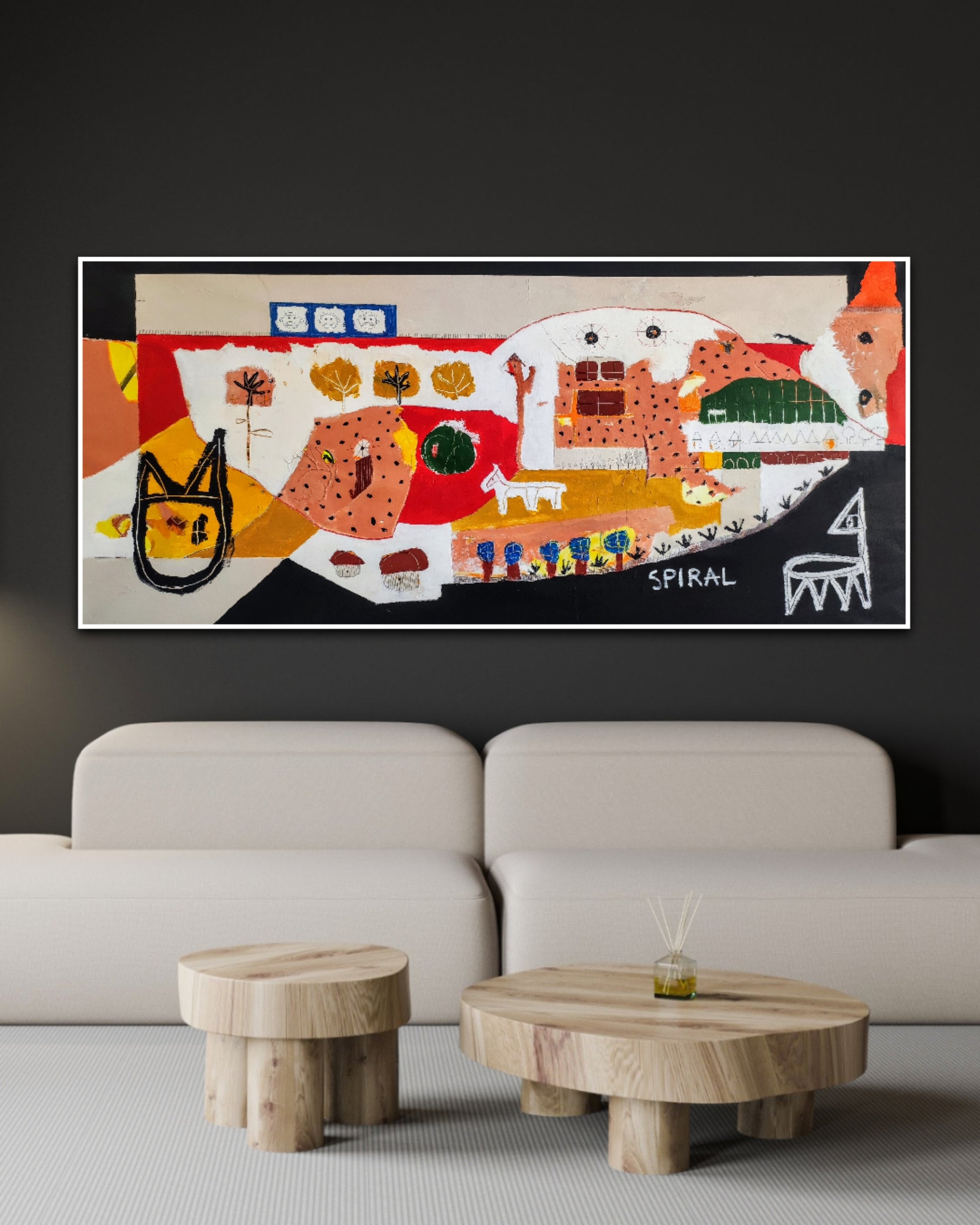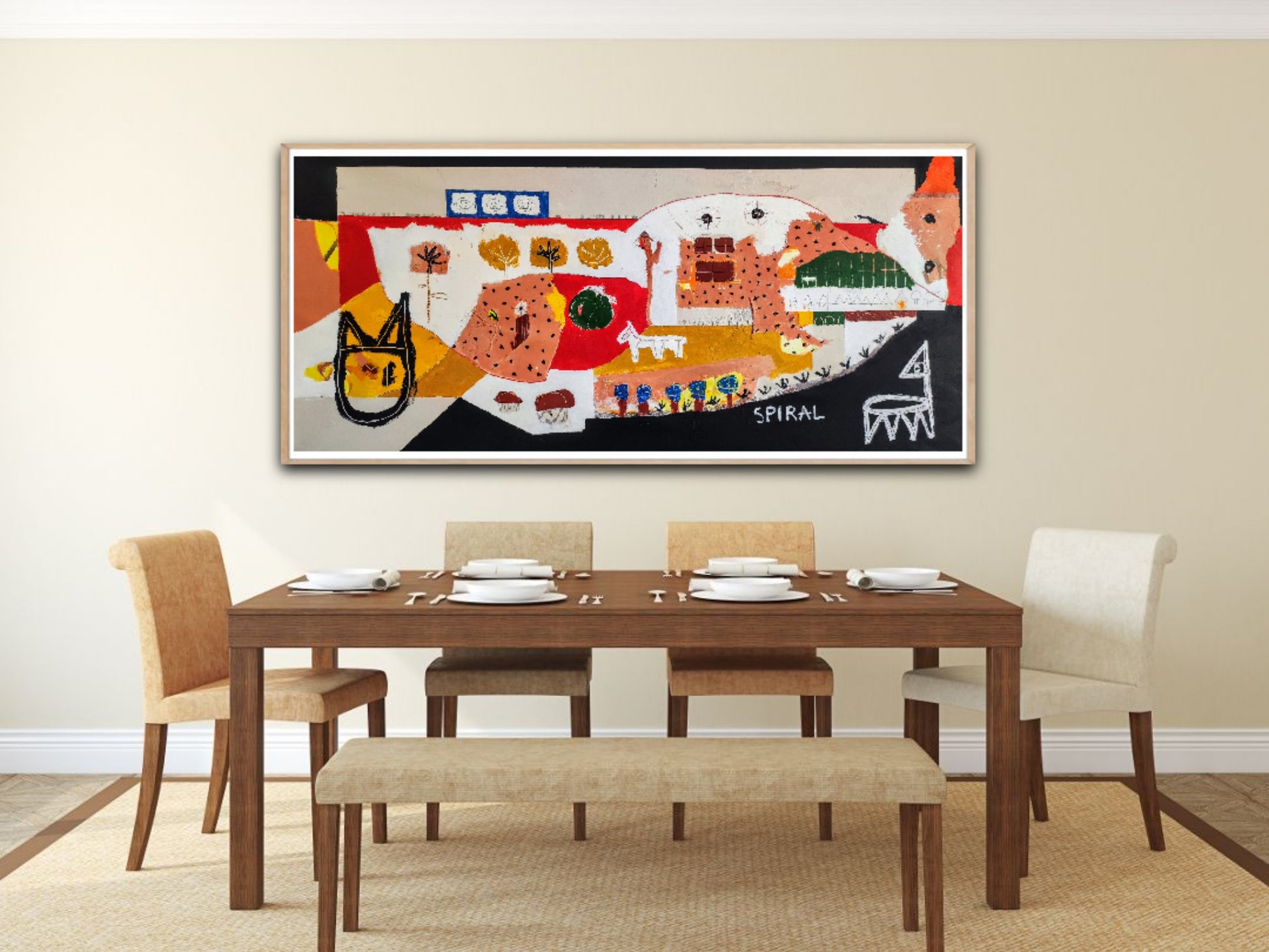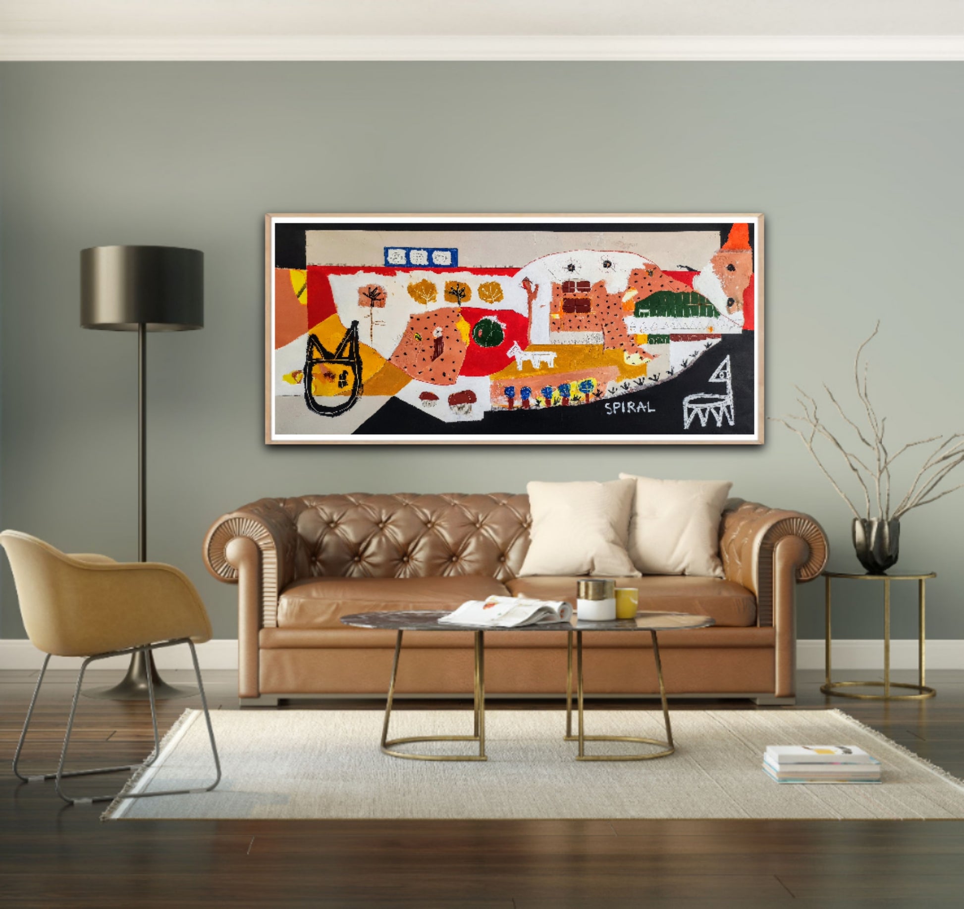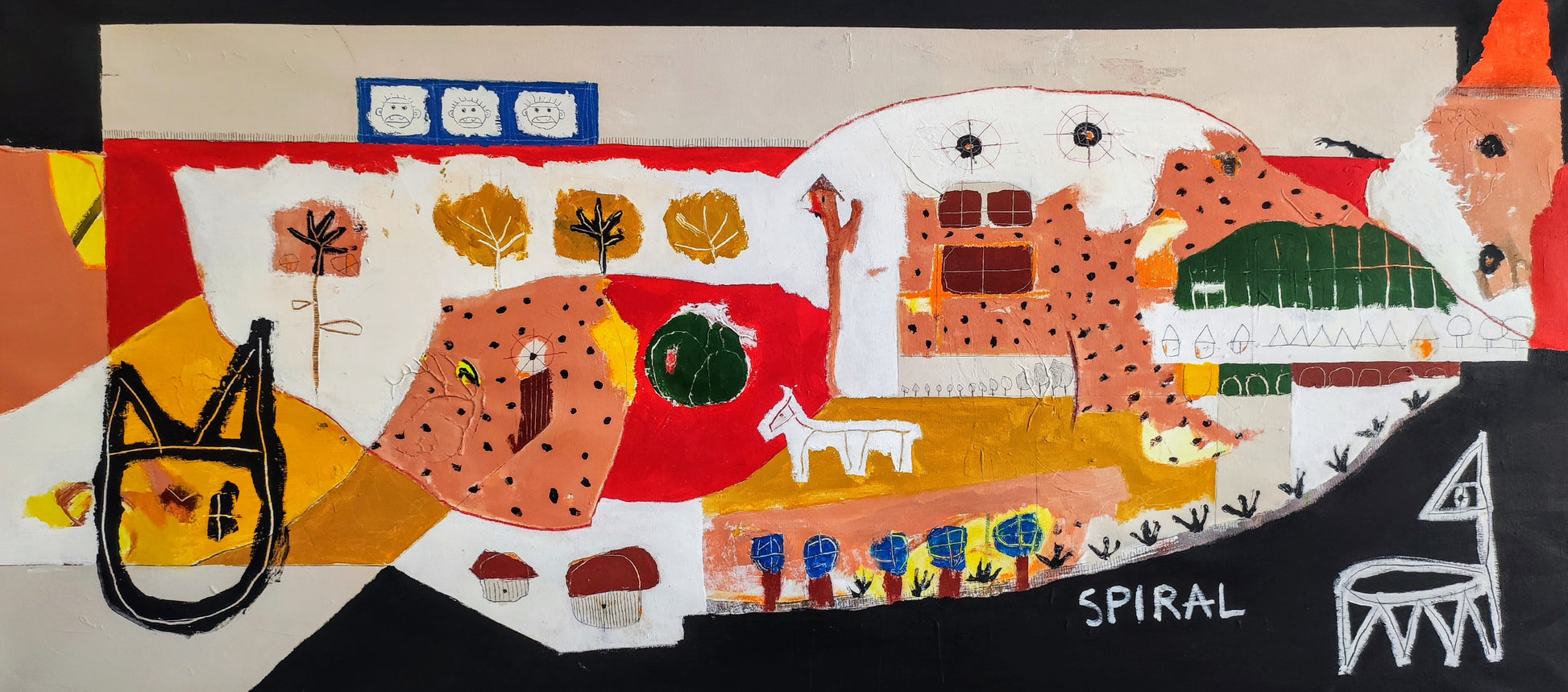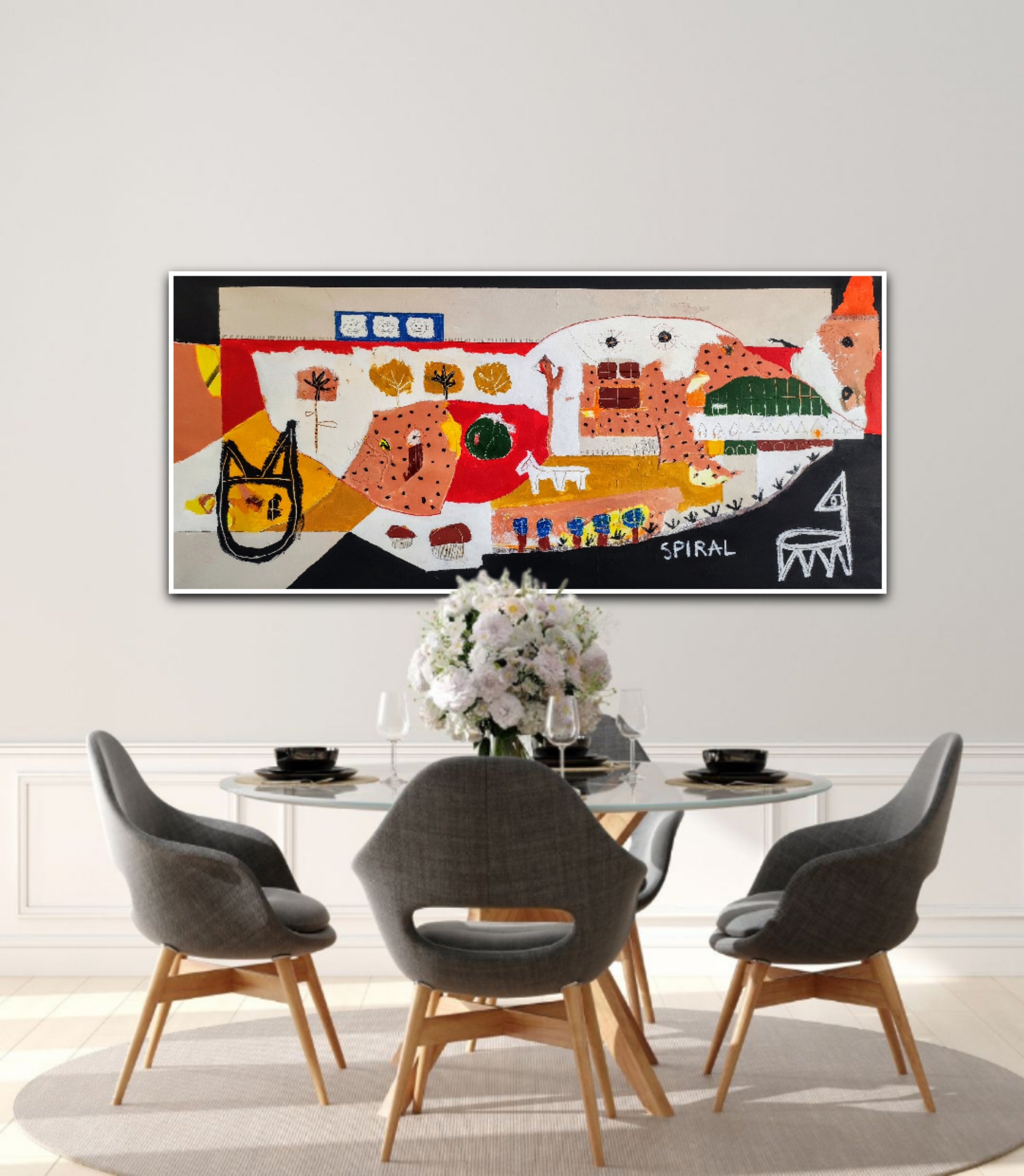Técnica: acrílico, pigmentos, gesso, ceras, carboncillo y lápiz.