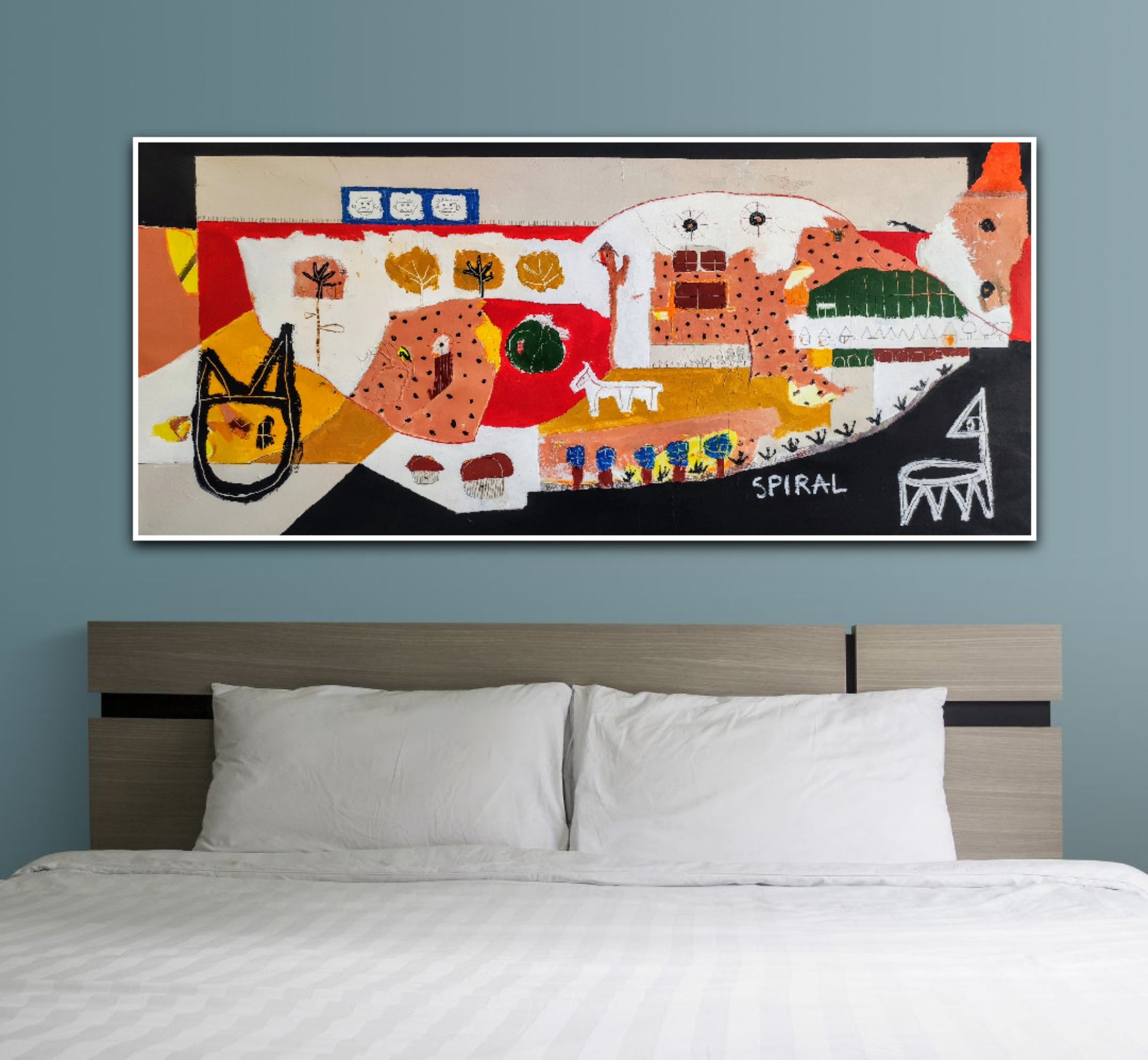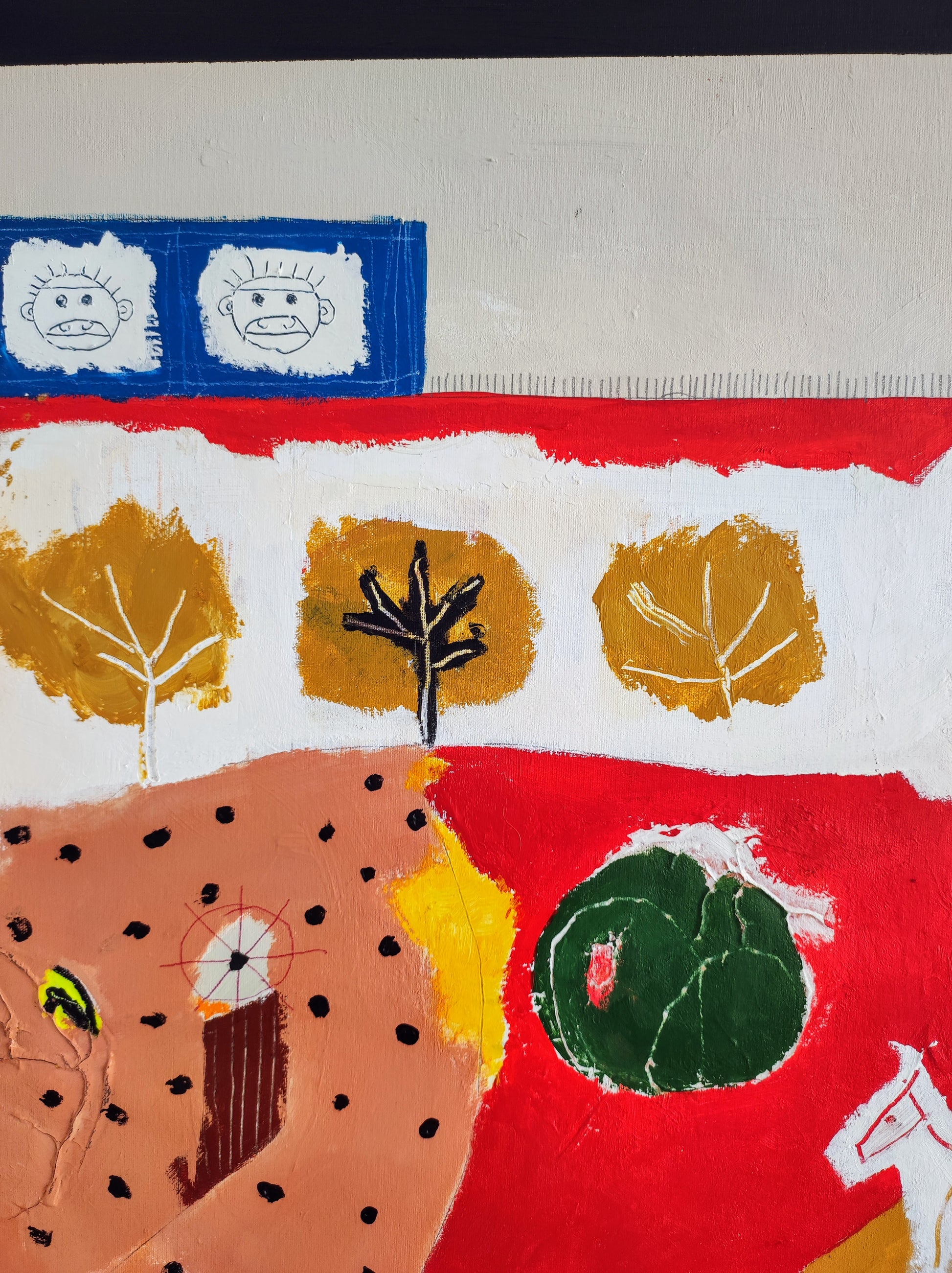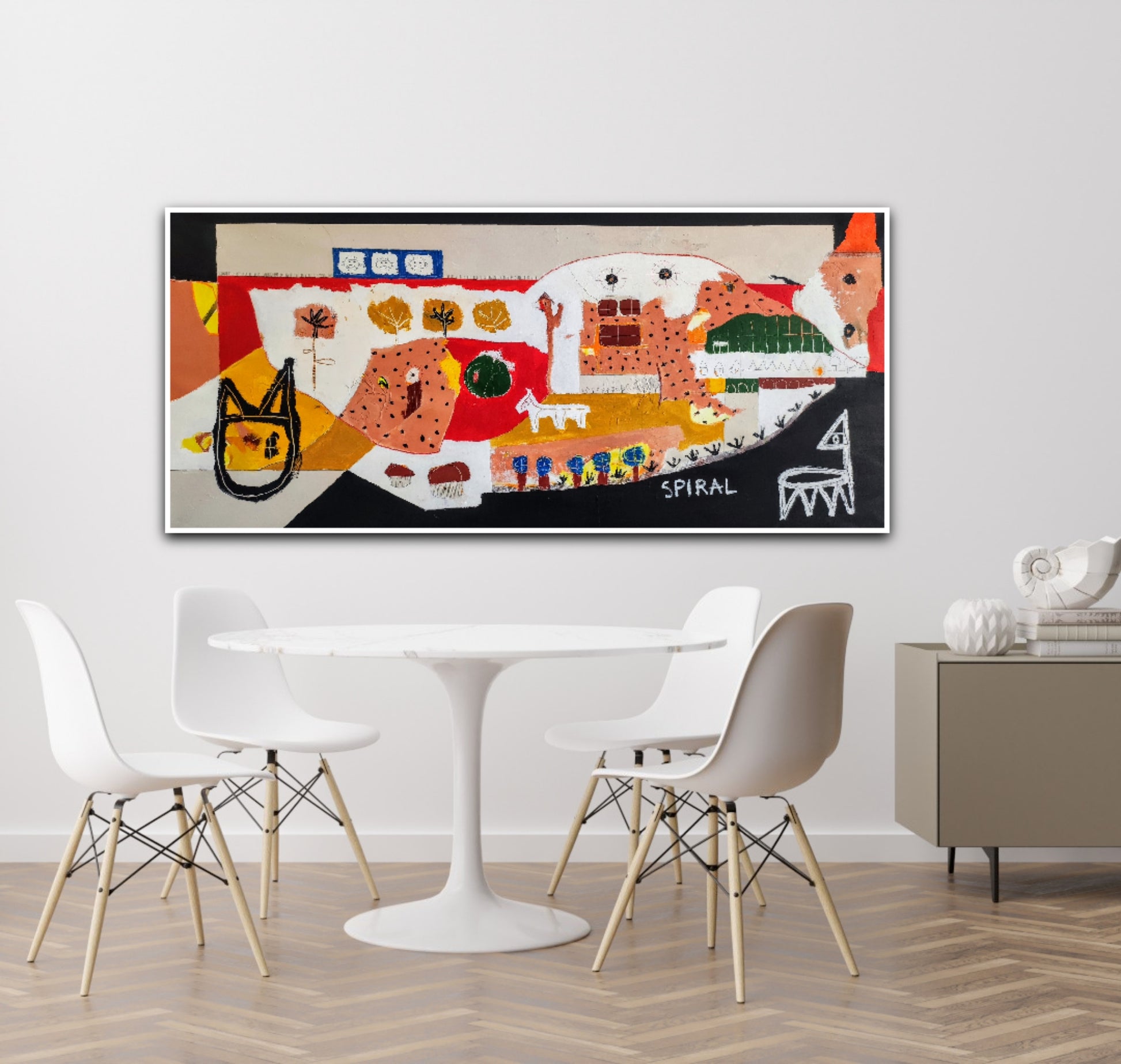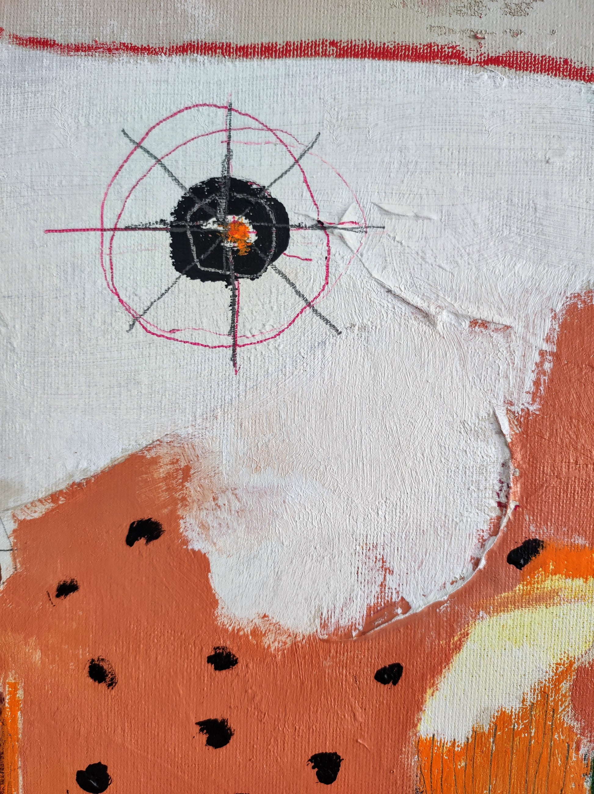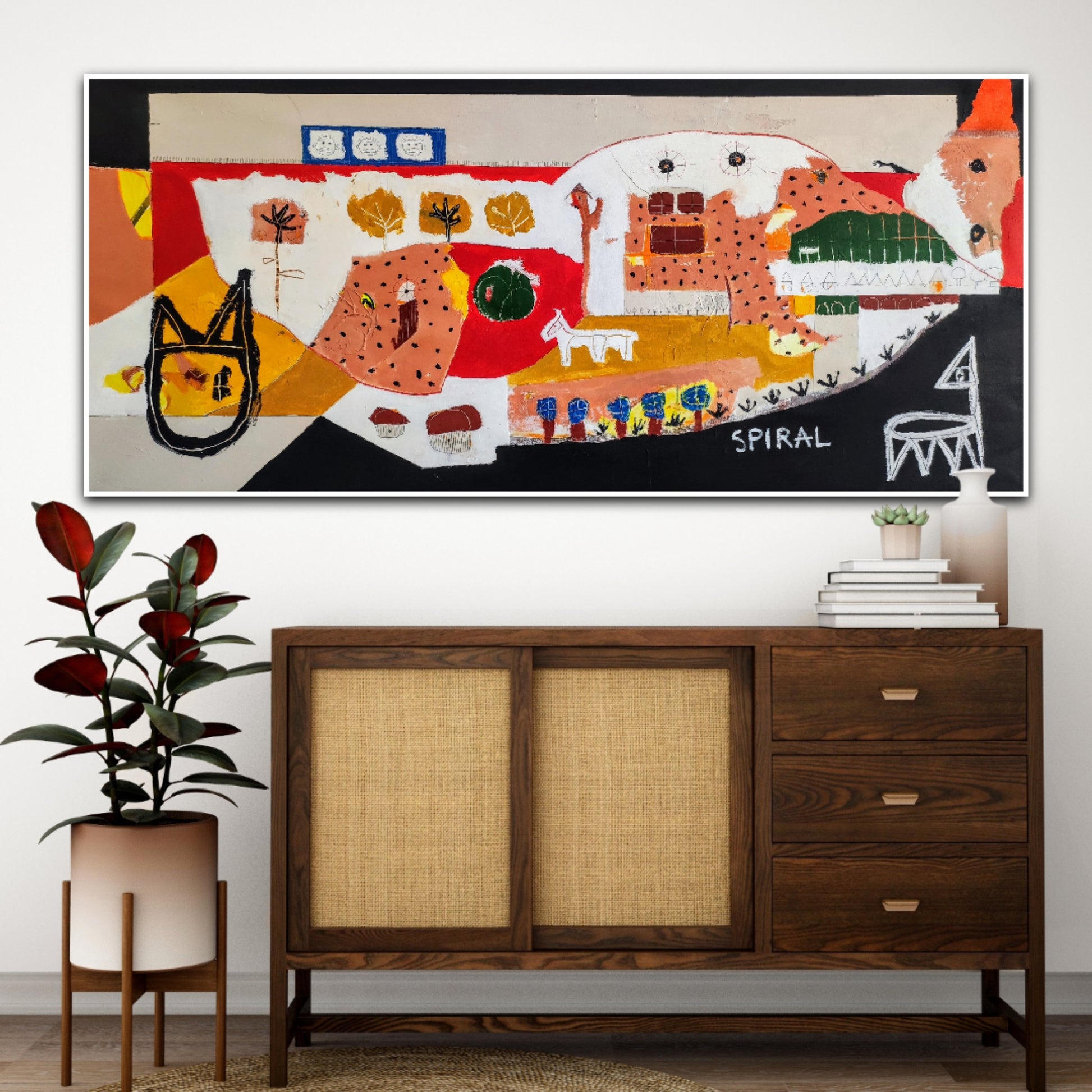 Técnica: acrílico, pigmentos, gesso, ceras, carboncillo y lápiz.