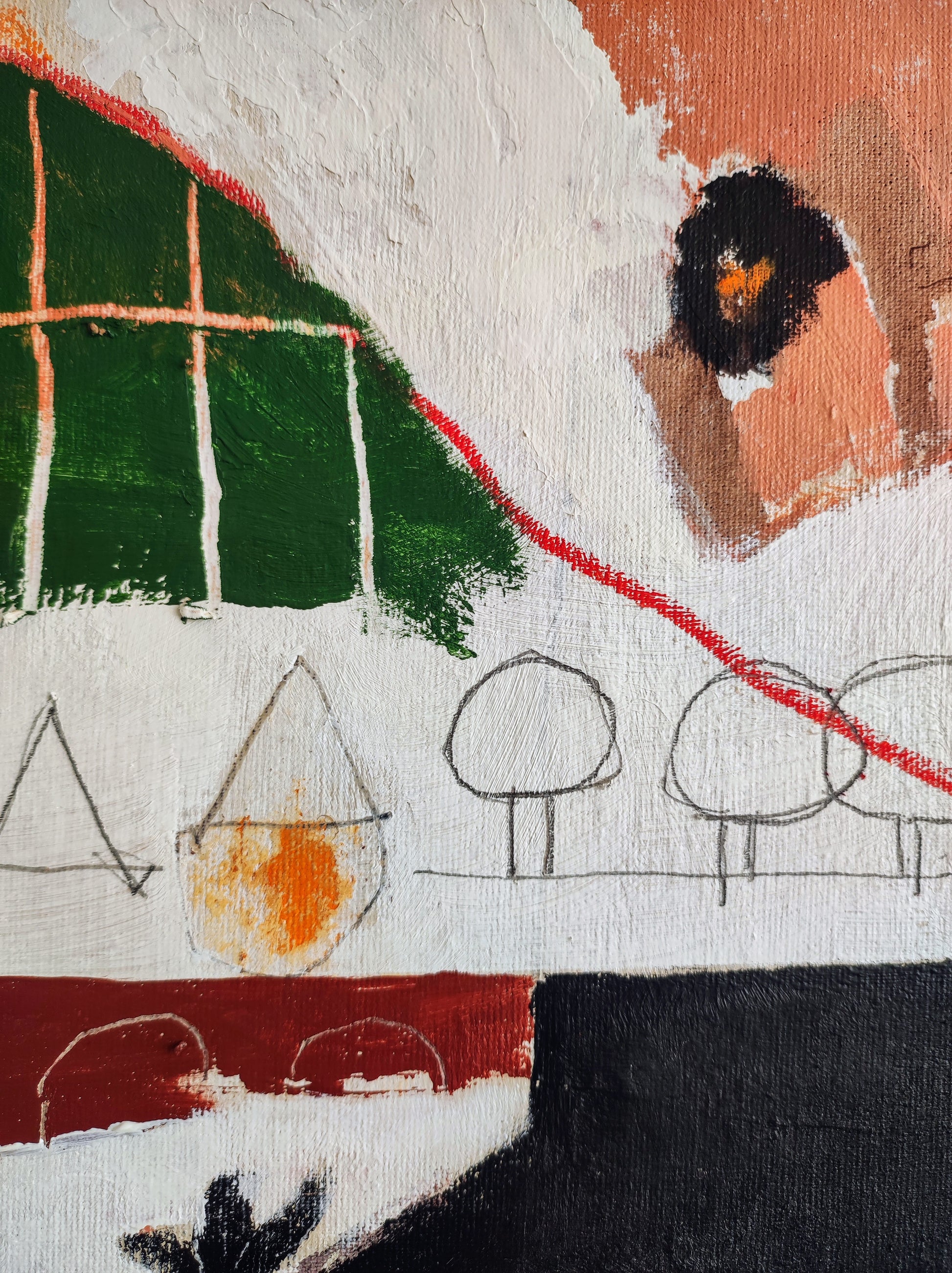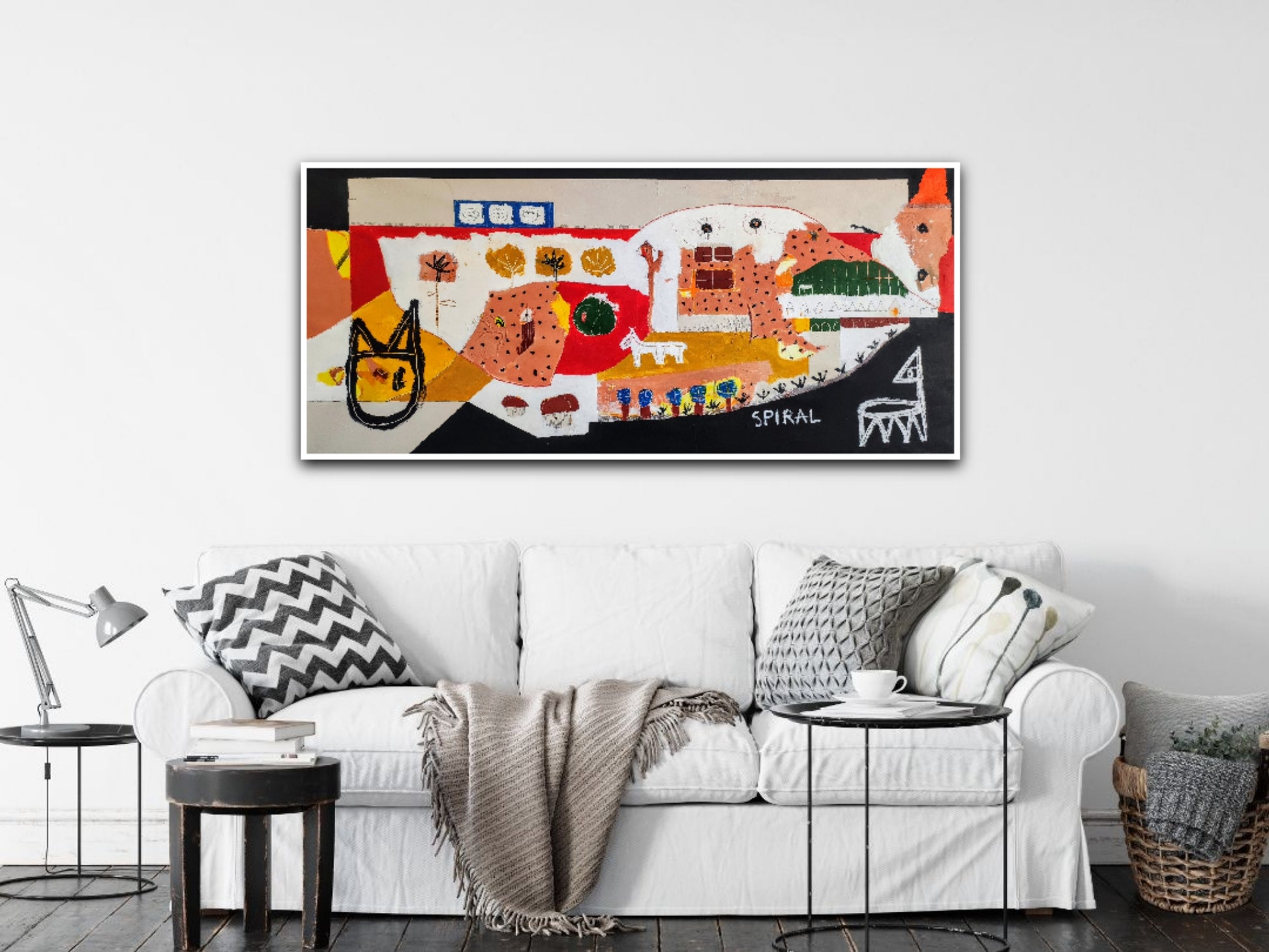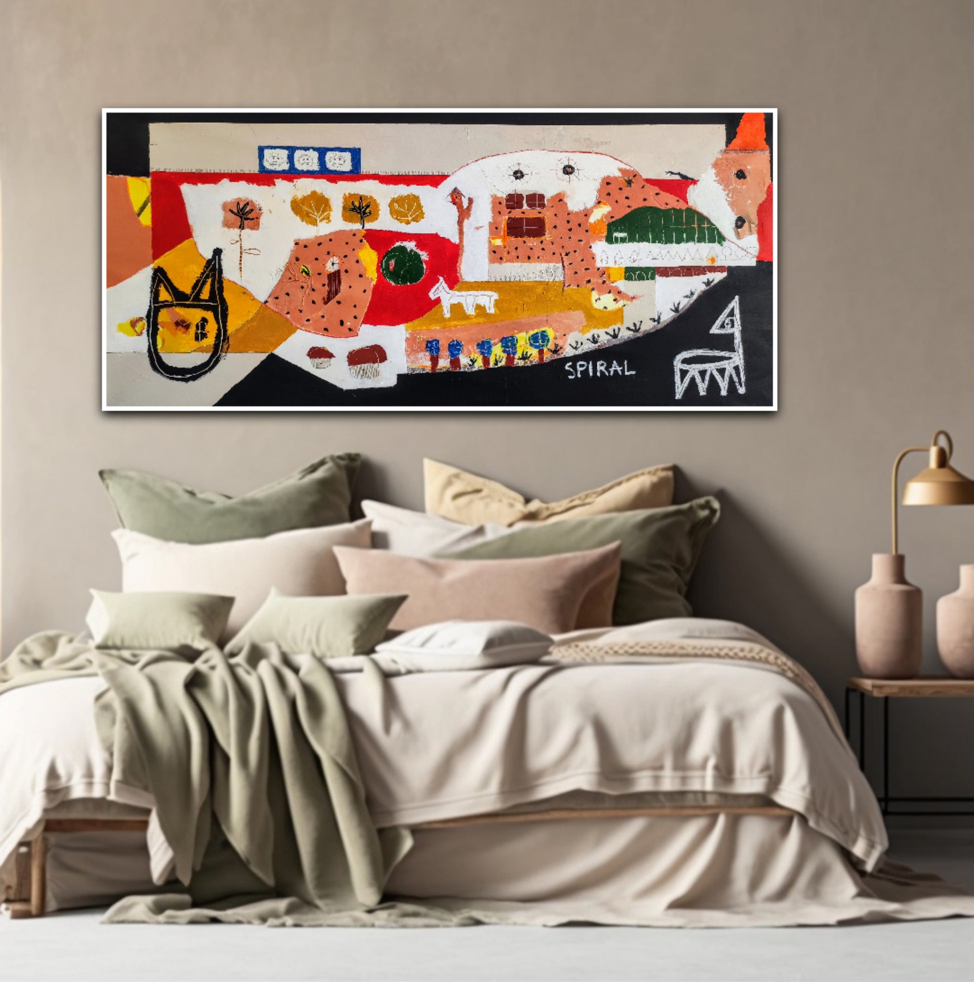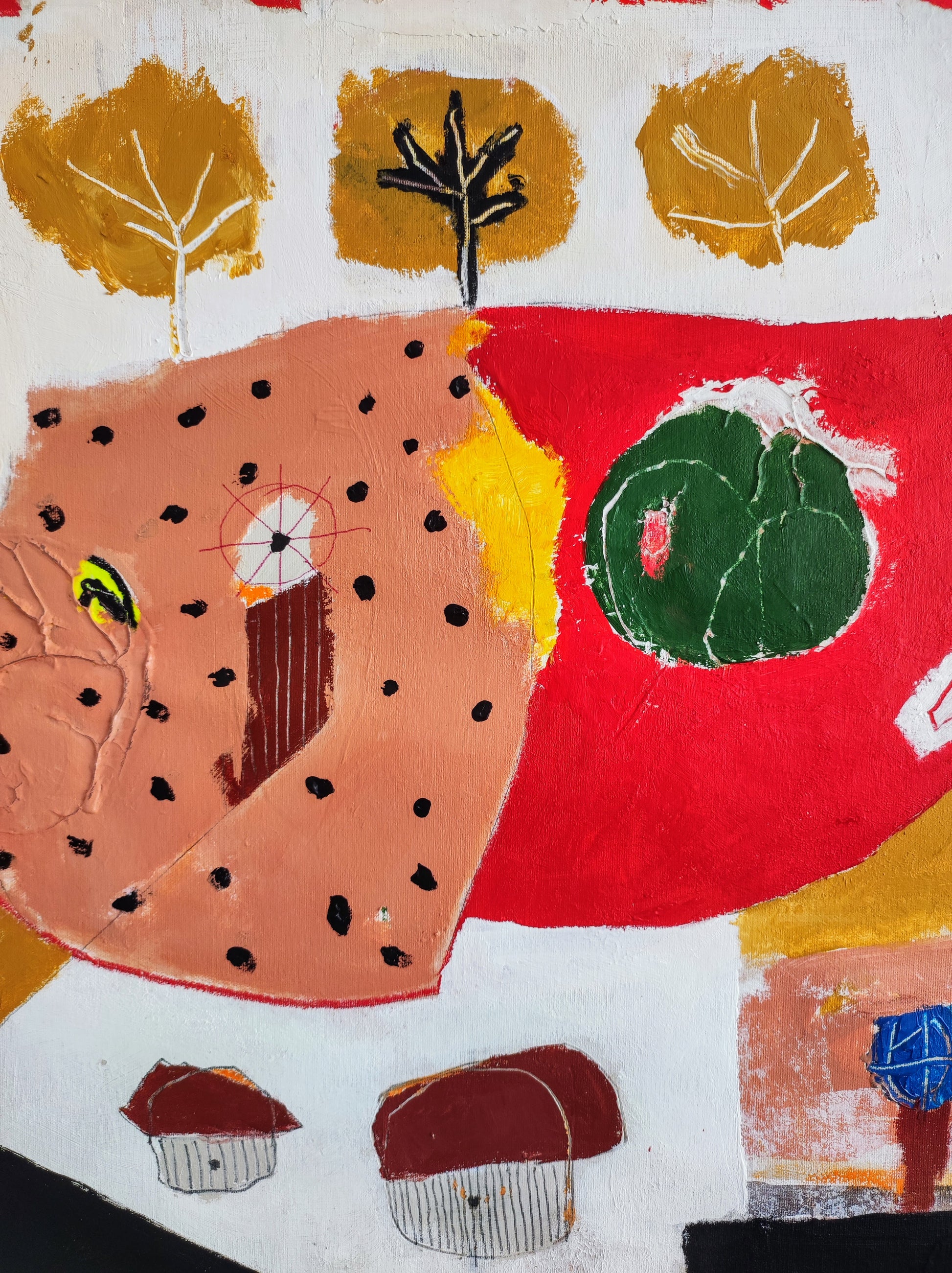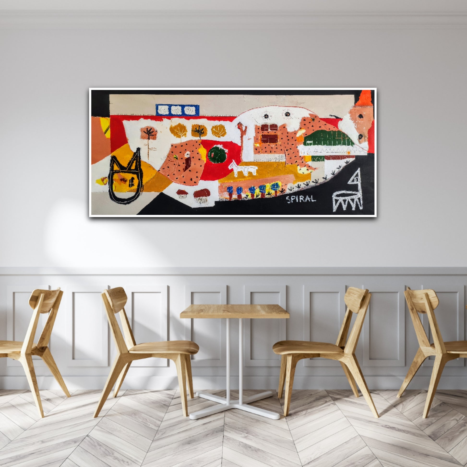 Técnica: acrílico, pigmentos, gesso, ceras, carboncillo y lápiz.