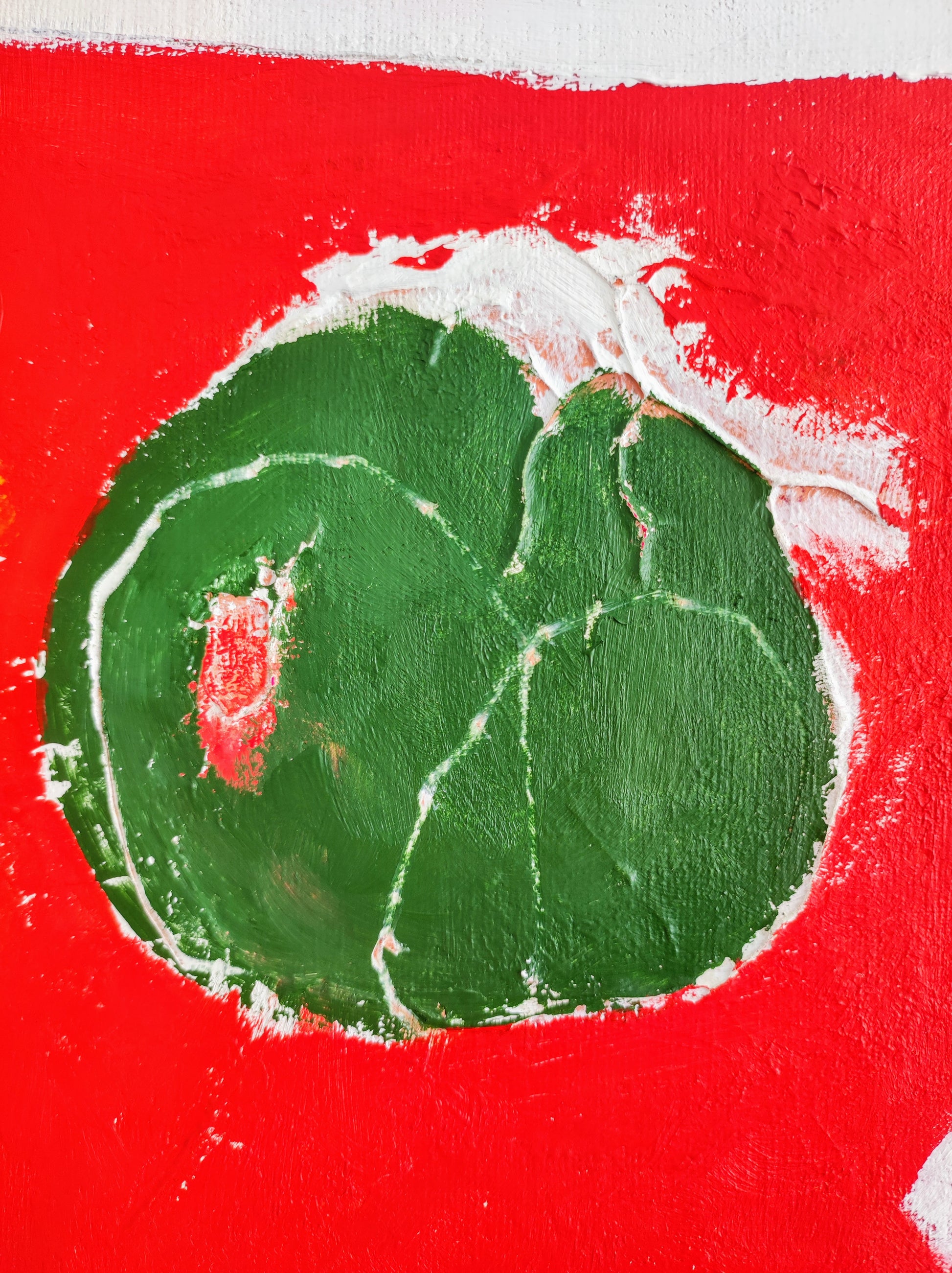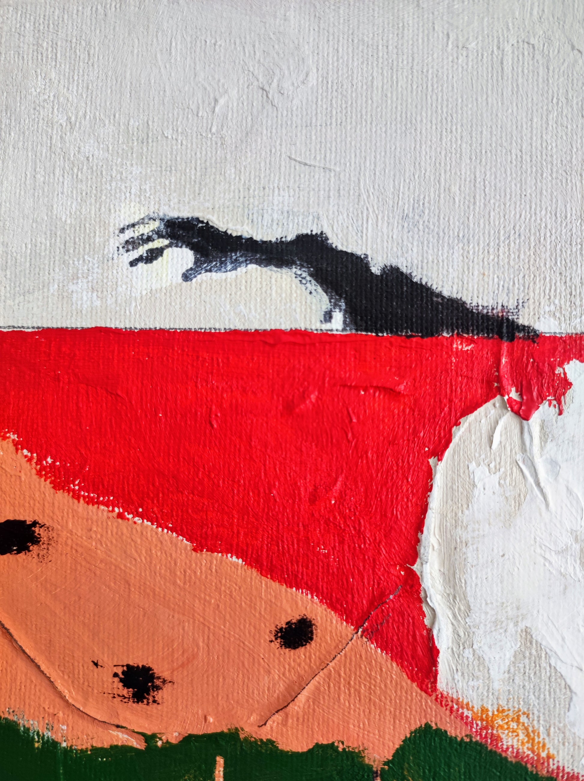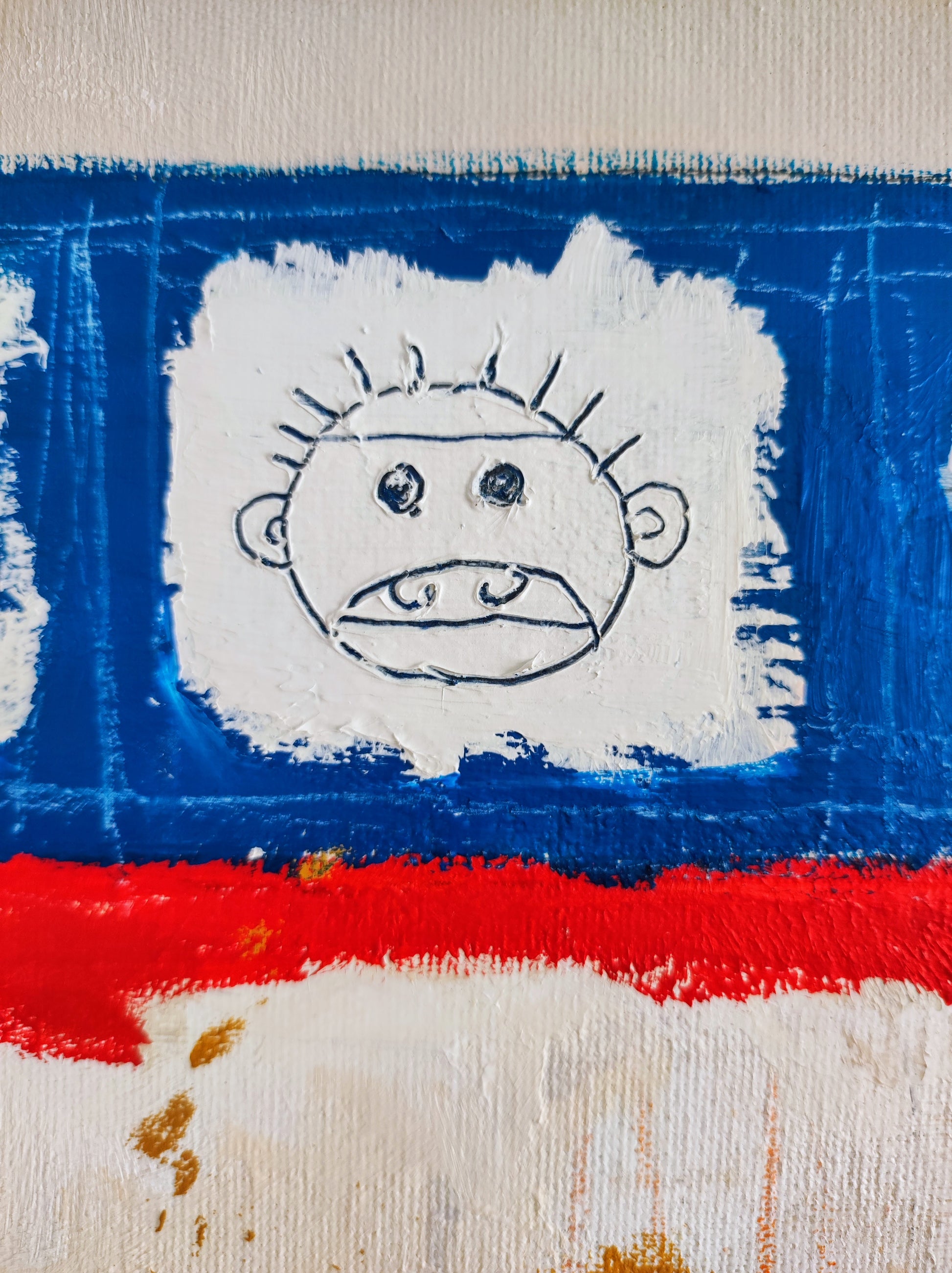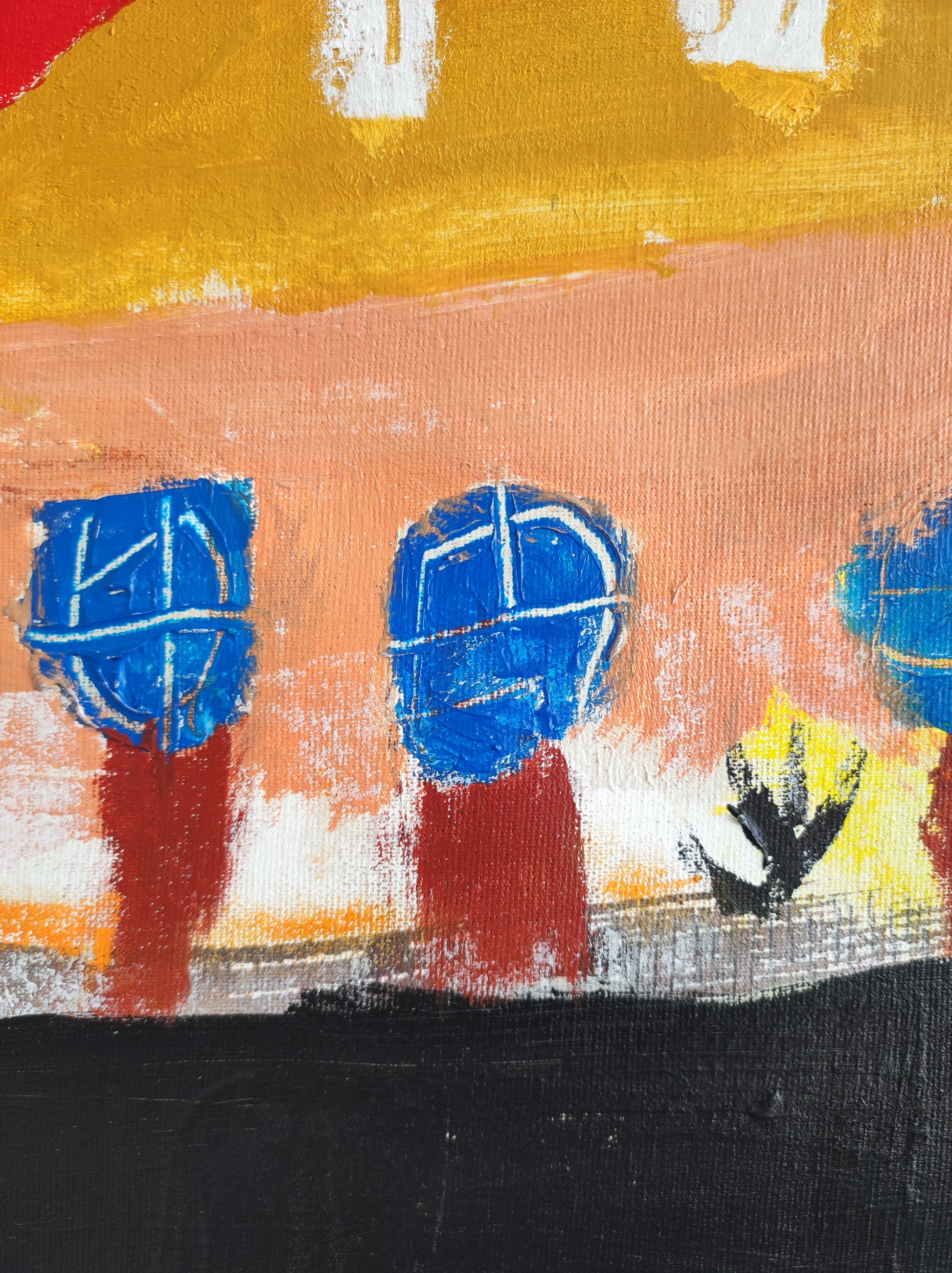 Cuadro trabajado desde la improvisación libre. Action painting con música de Vangelis (en las últimas fases del cuadro el tema Spiral sonaba en bucle).