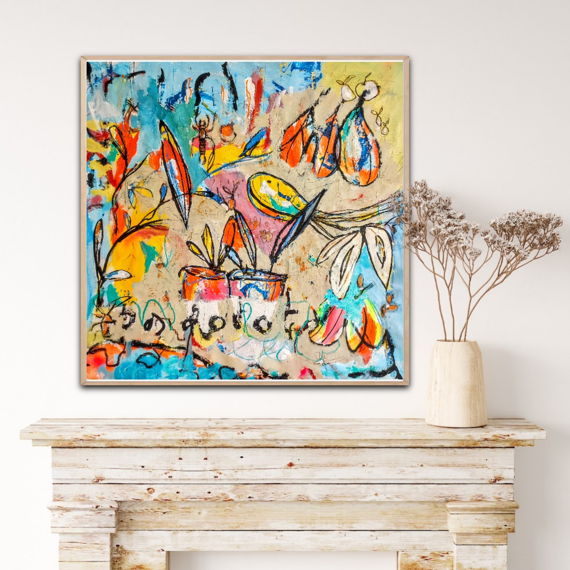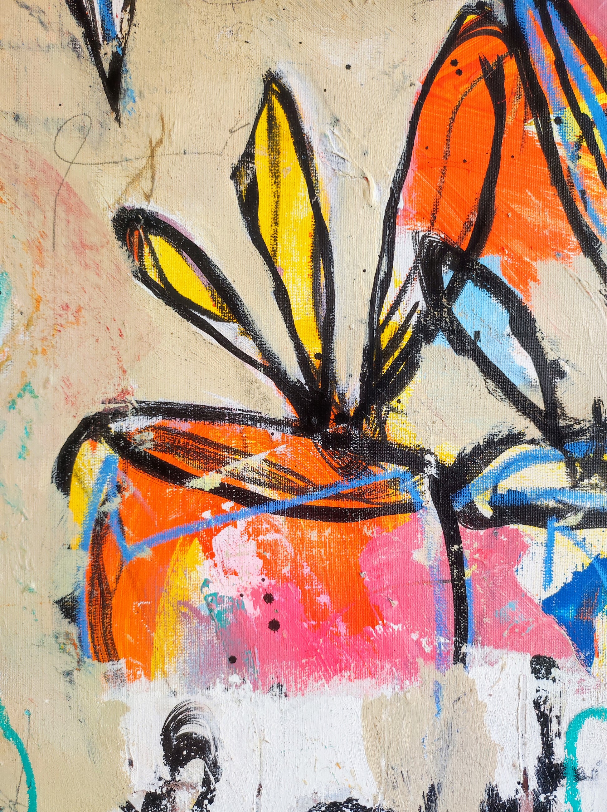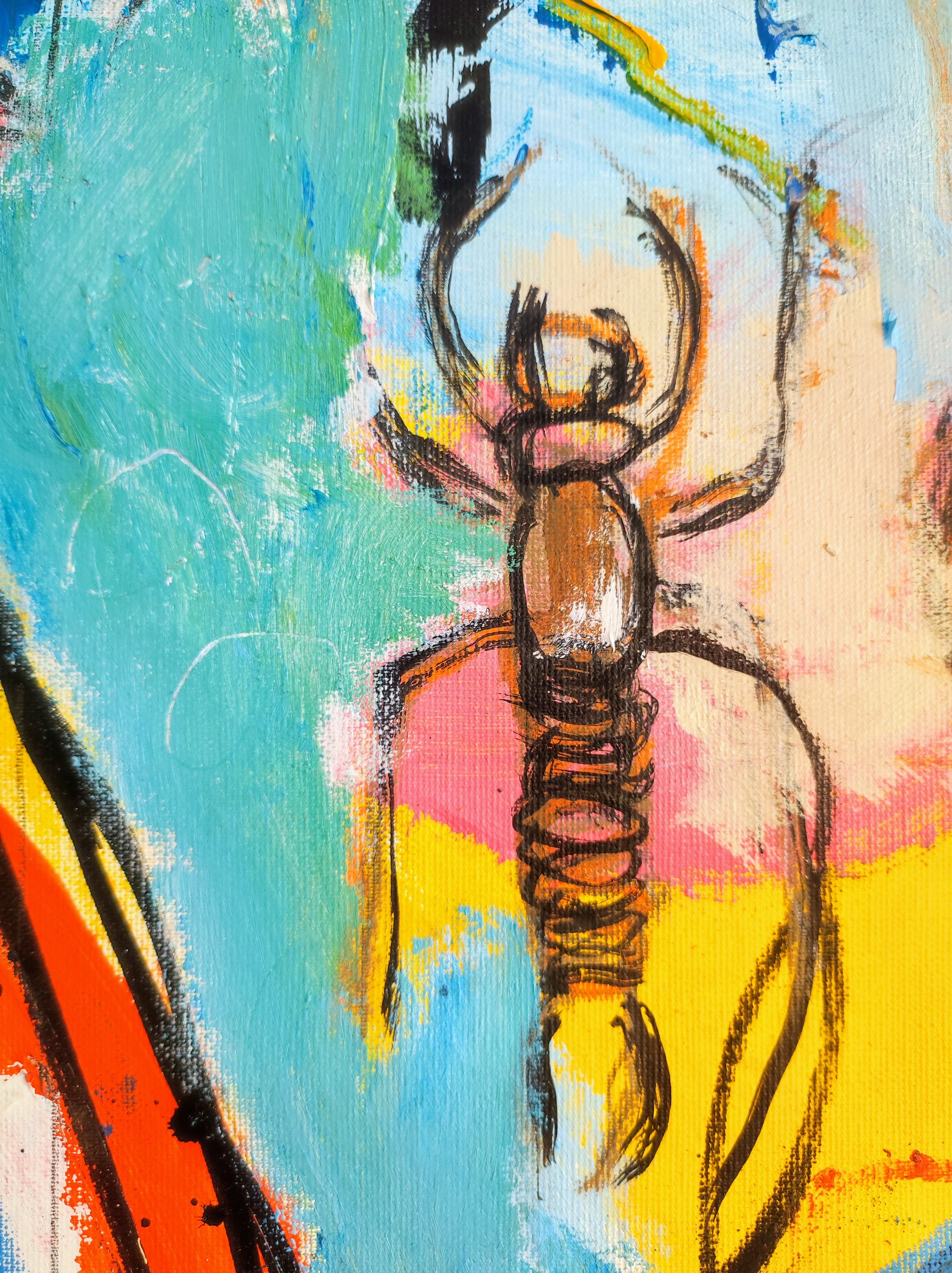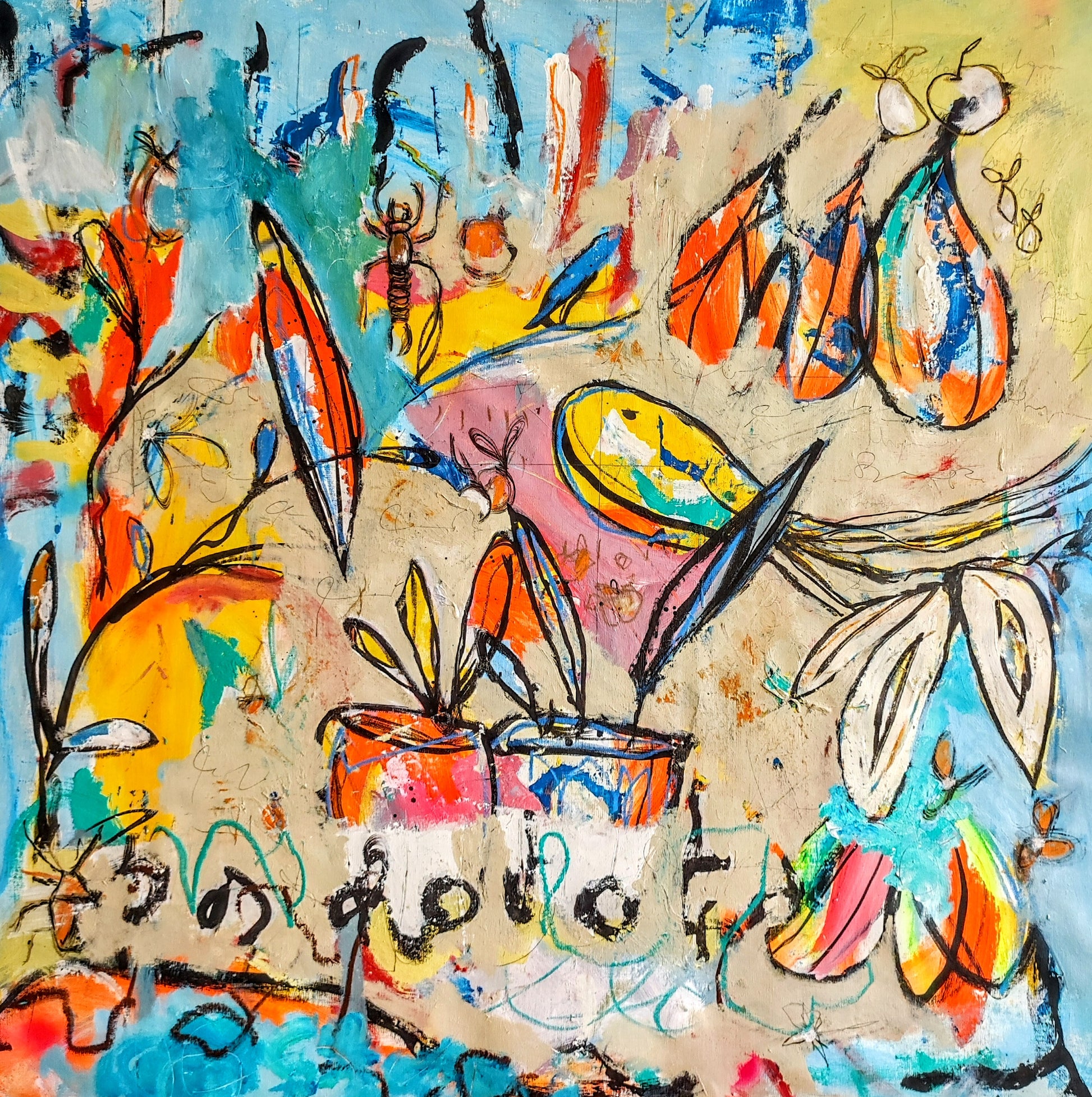 Técnica: acrílico, gesso, tinta china, pastel, ceras, lápiz.