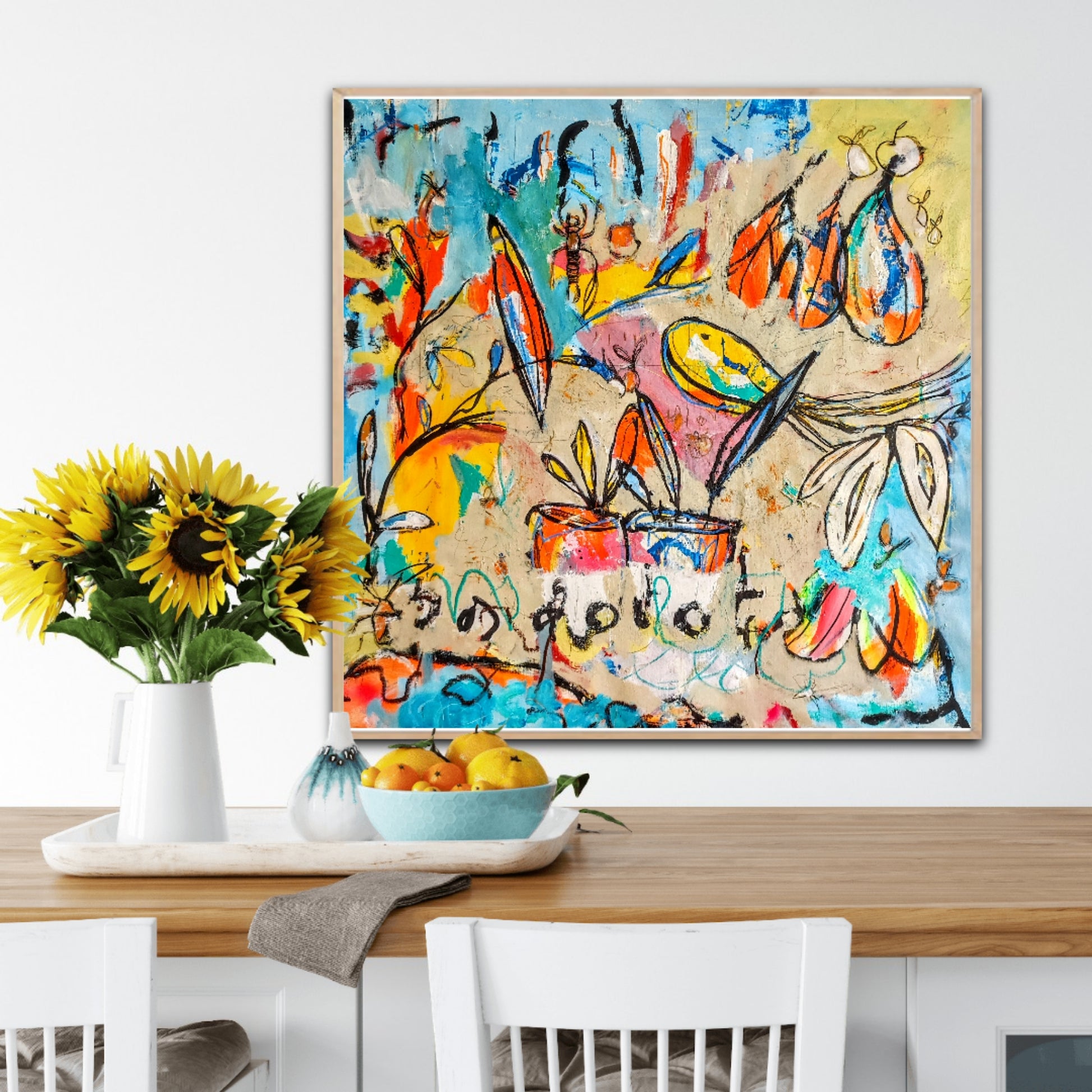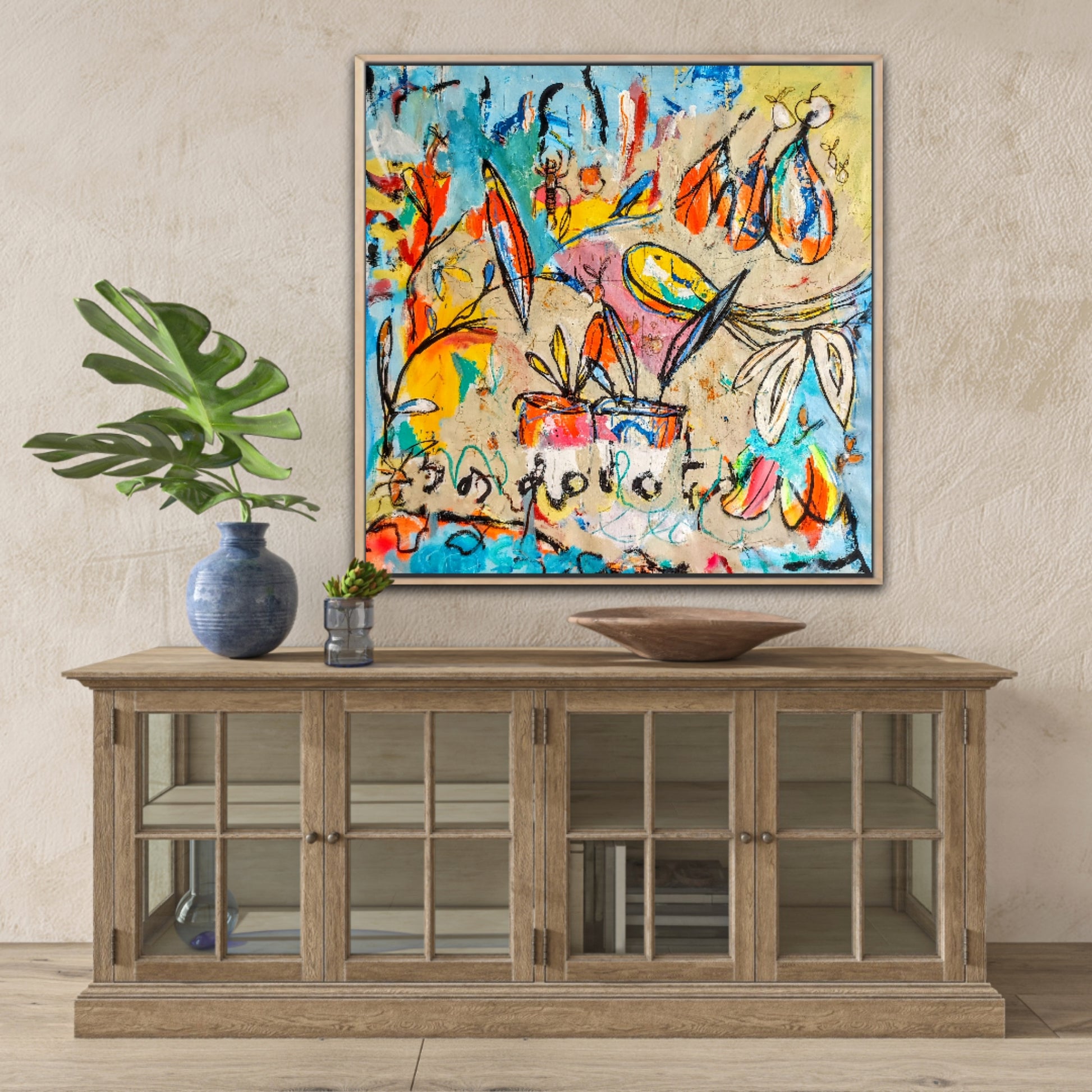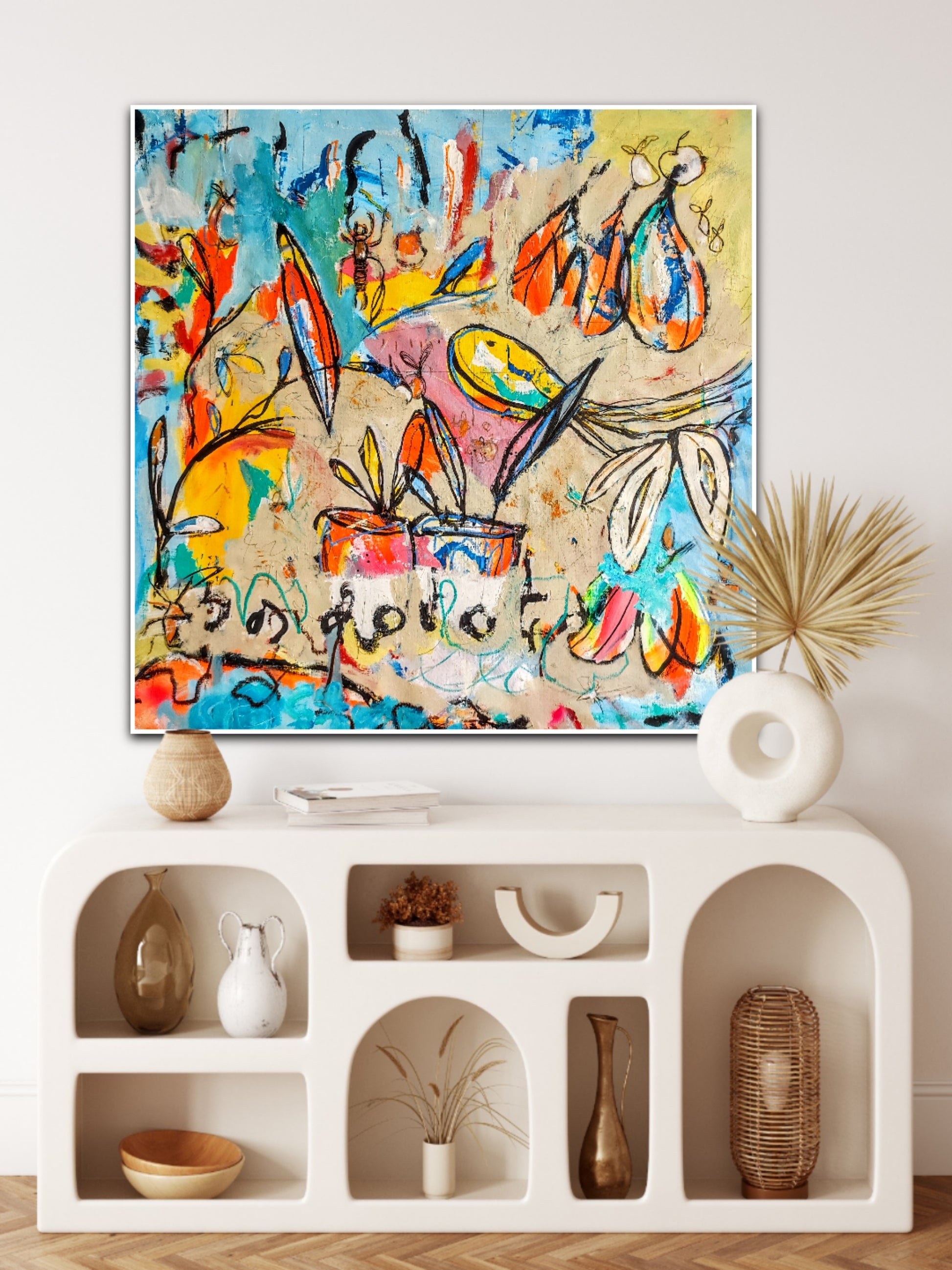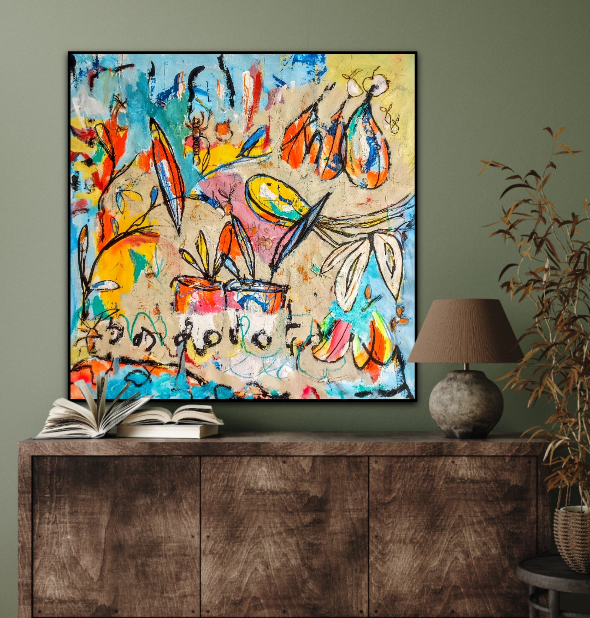 Técnica: acrílico, gesso, tinta china, pastel, ceras, lápiz.