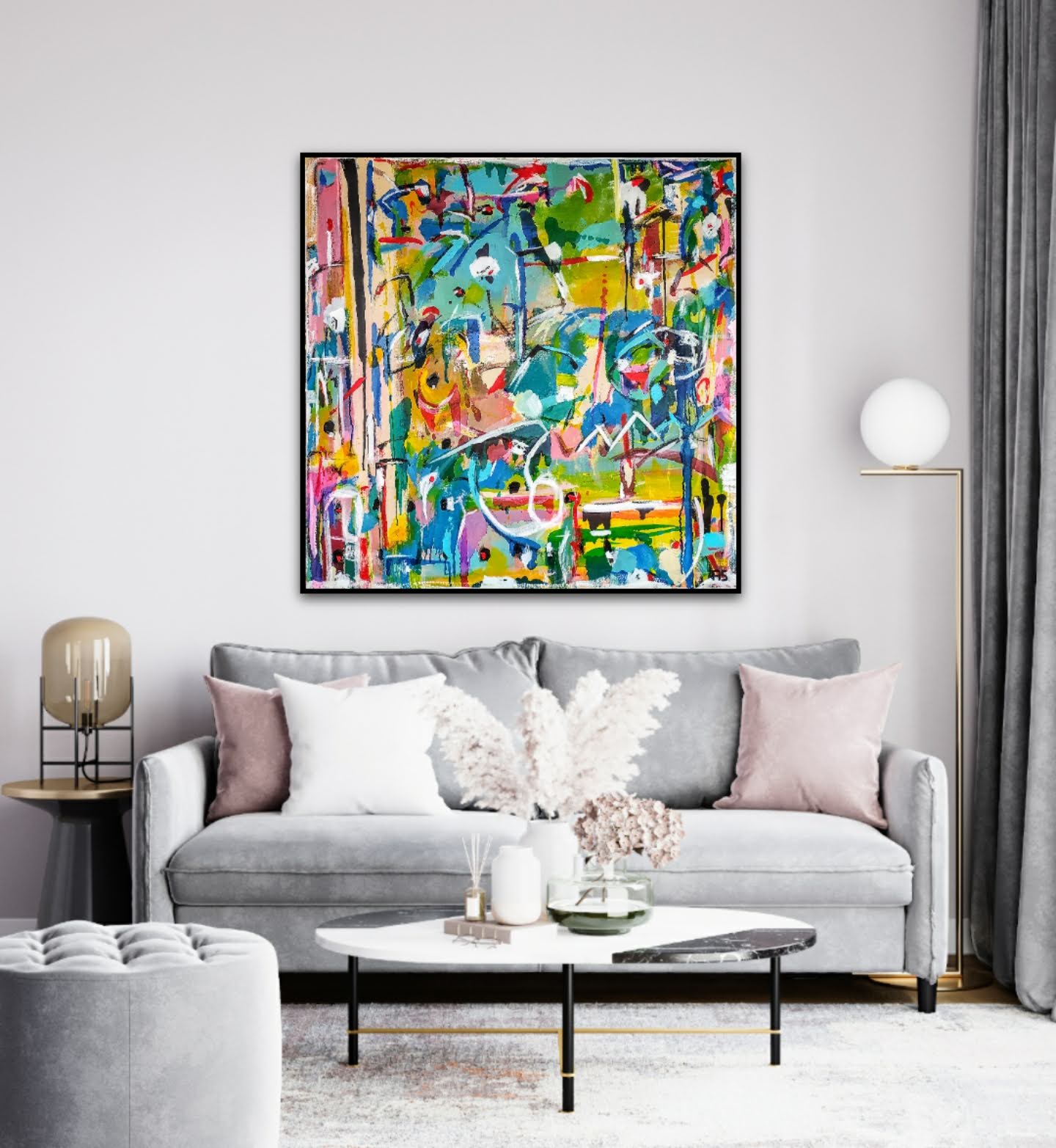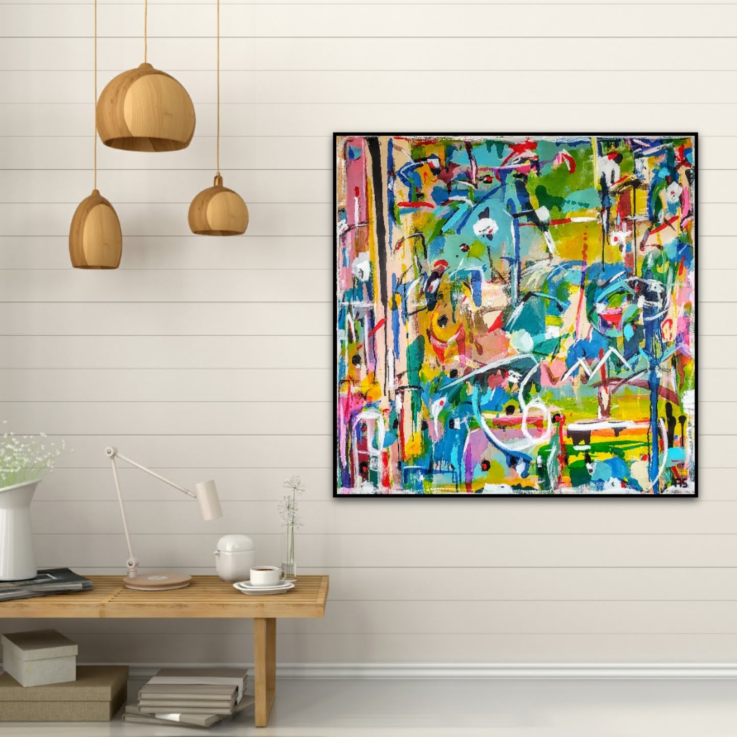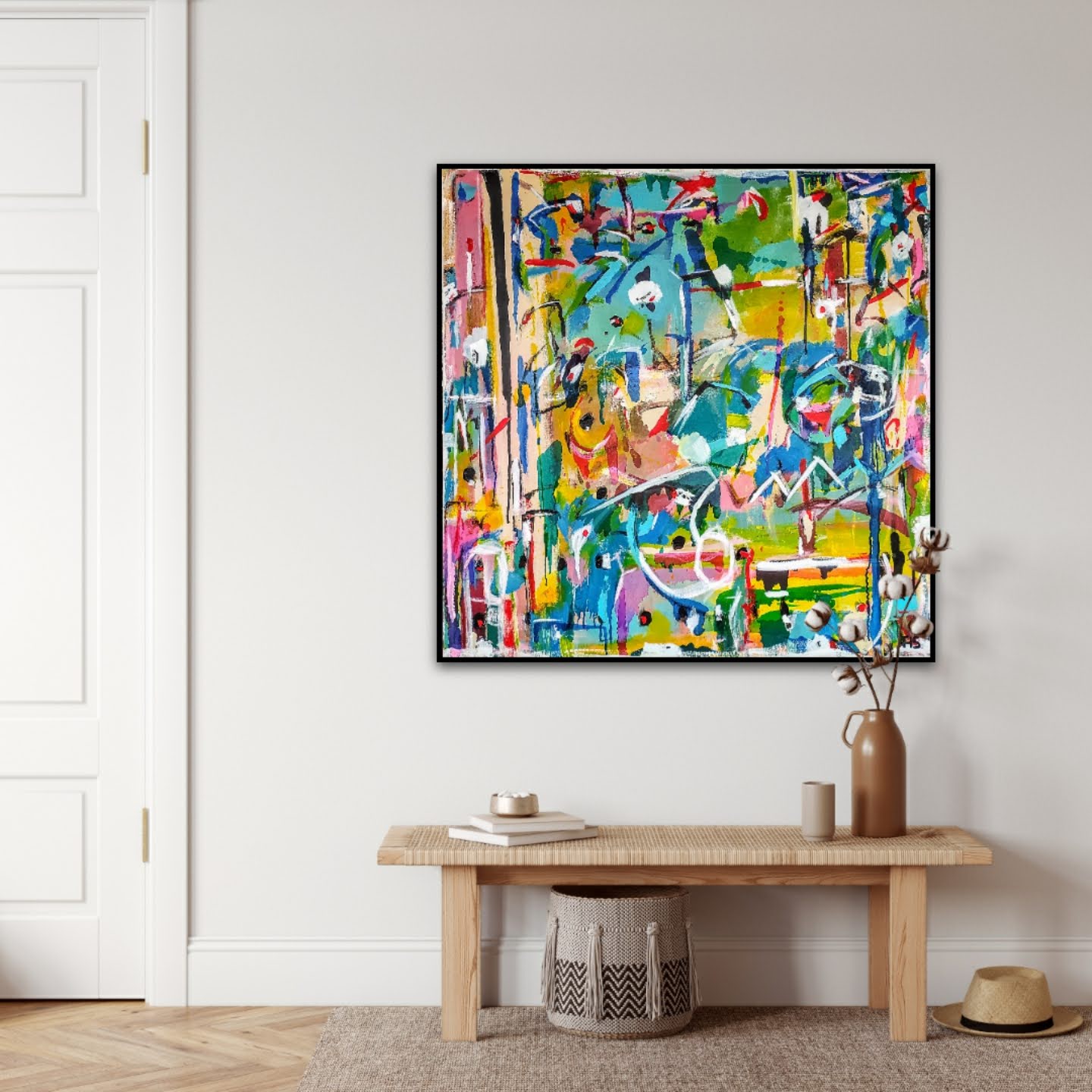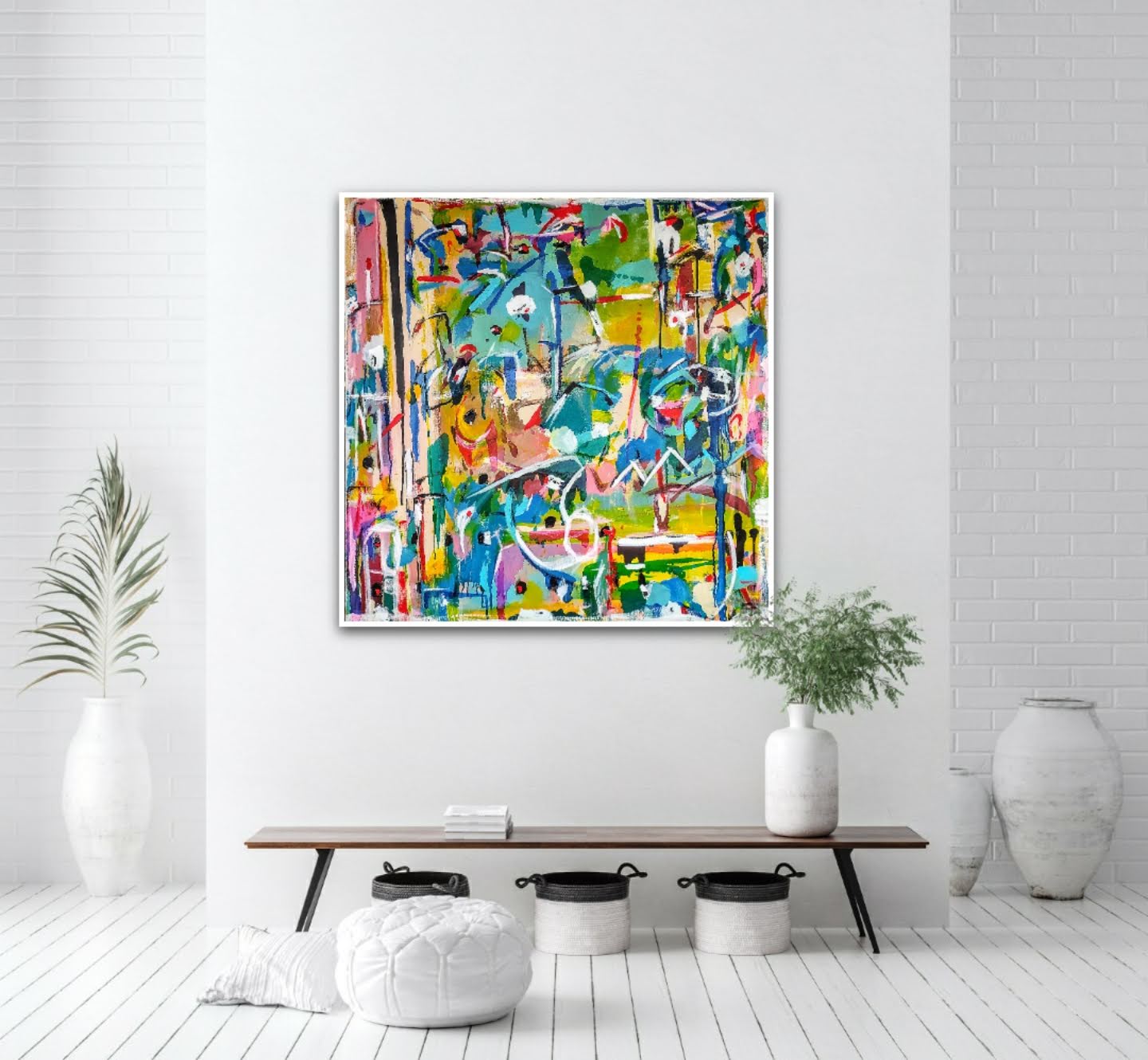Cuadro trabajado desde la improvisación libre. Action painting, inicio del verano 2021. Versiones de Summertime (Miles Davis, Janis Joplin, Chet Baker, The Zombies, Billie Holiday...)