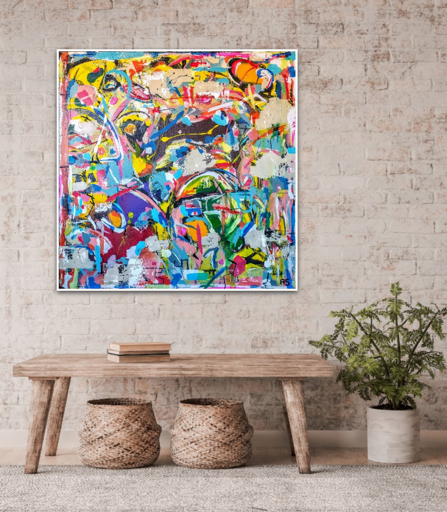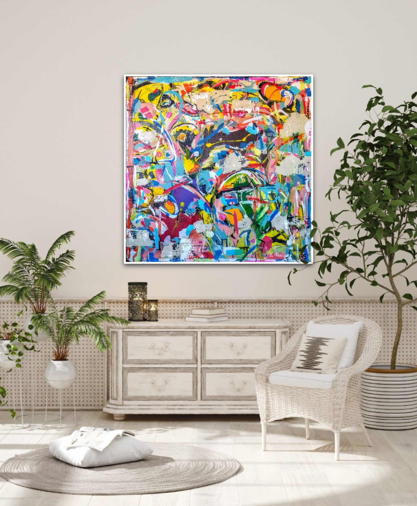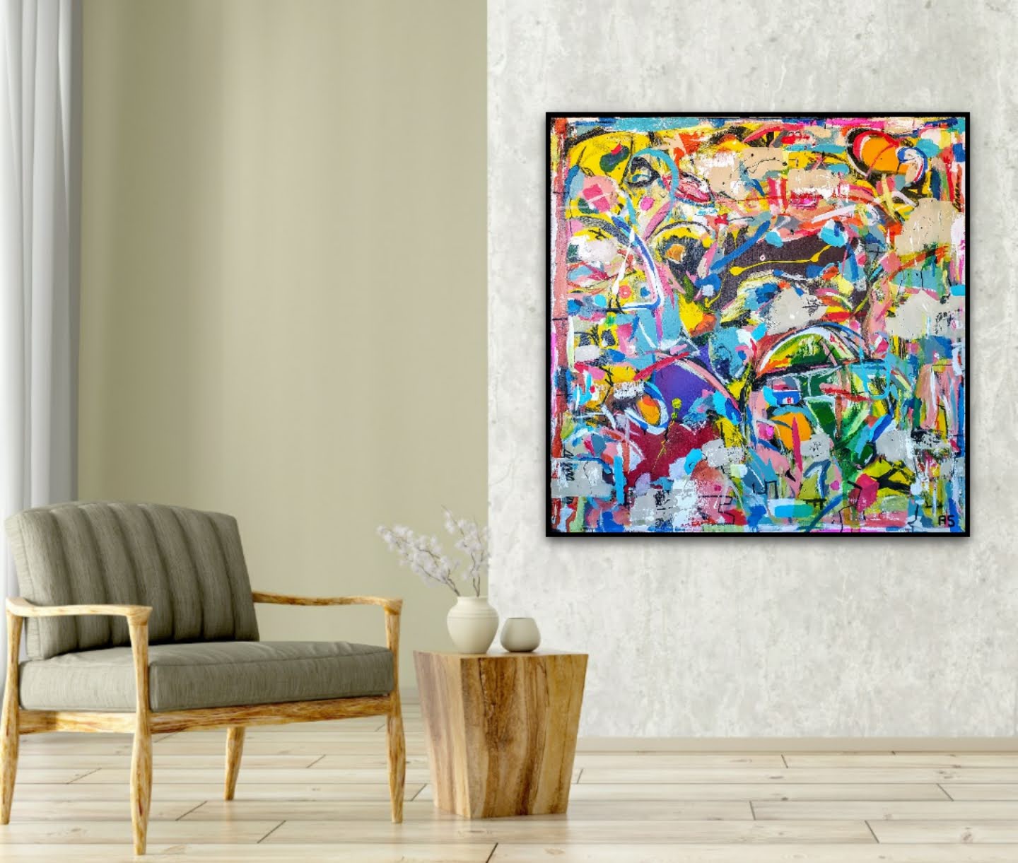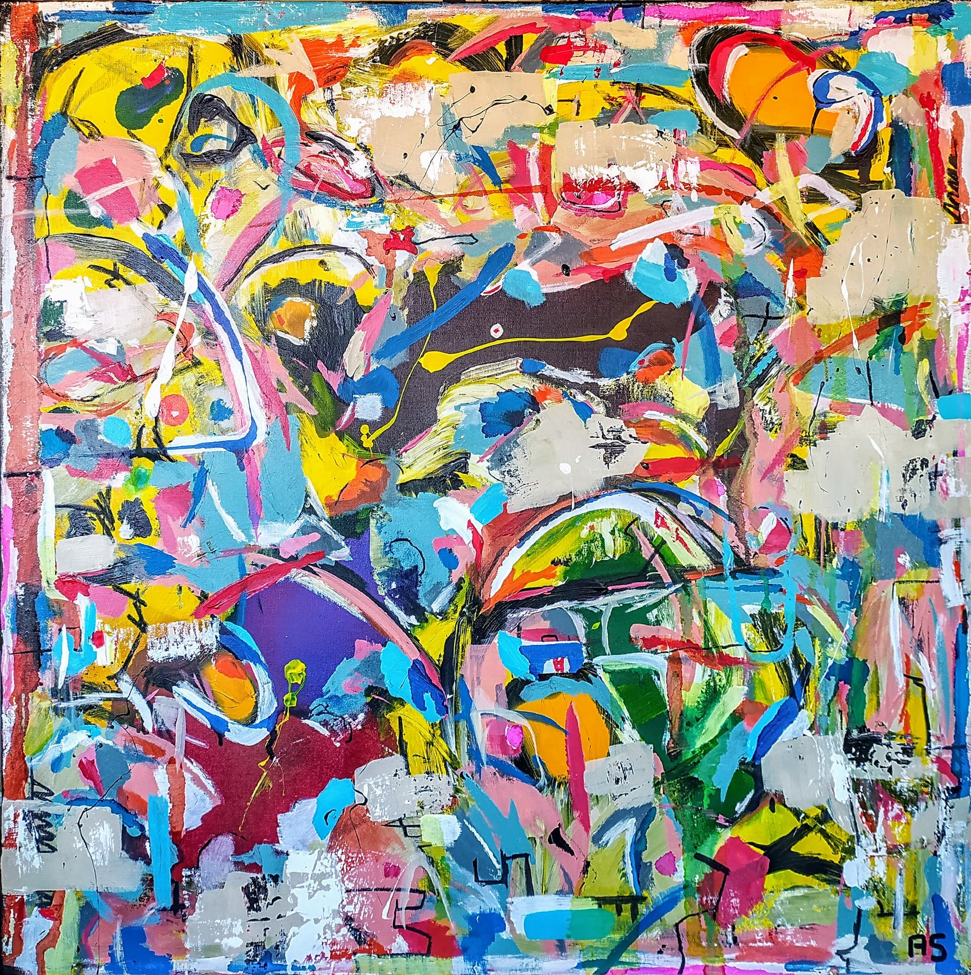 Cuadro trabajado desde la improvisación libre. Action painting, inicio del verano 2021. Versiones de Summertime (Miles Davis, Janis Joplin, Chet Baker, The Zombies, Billie Holiday...)
