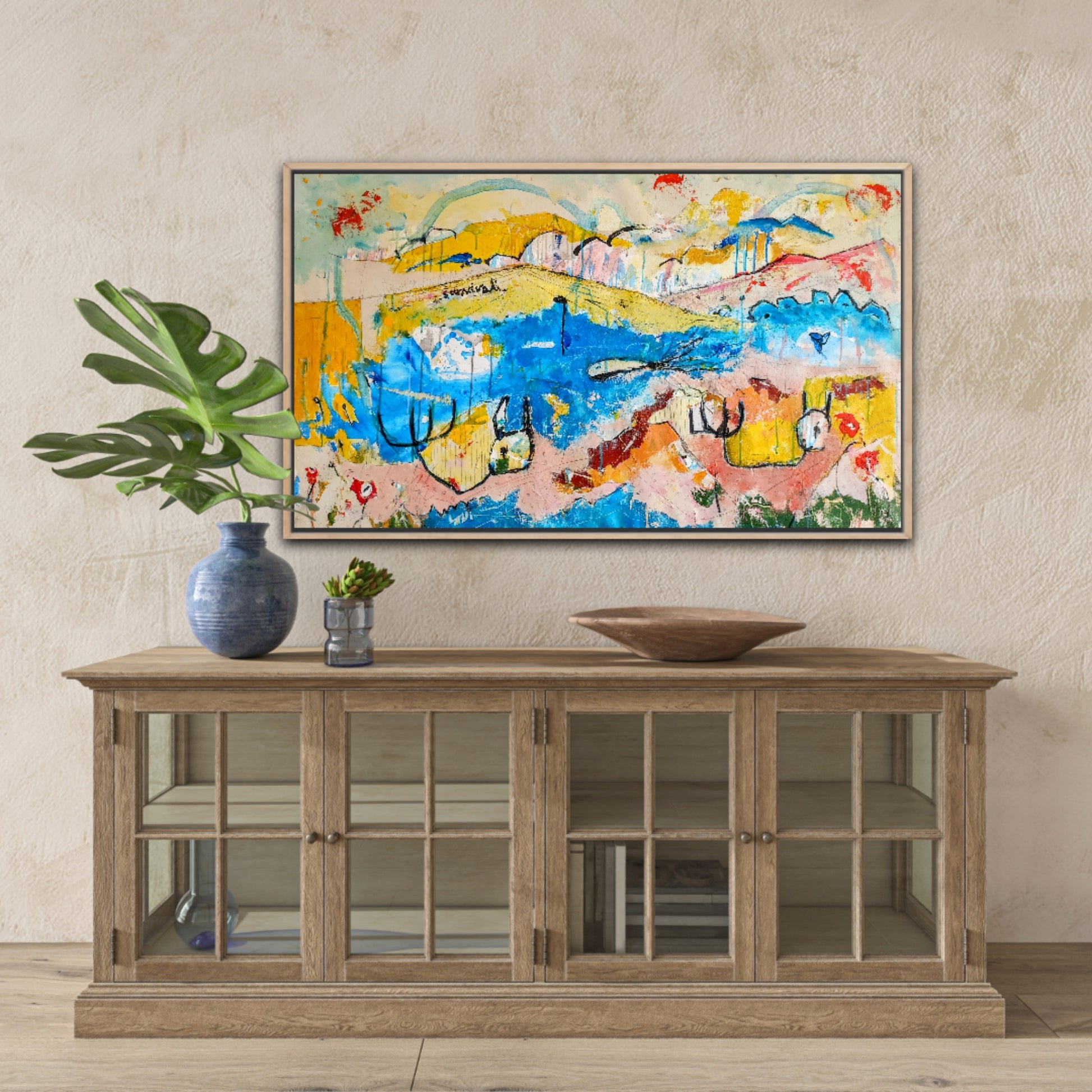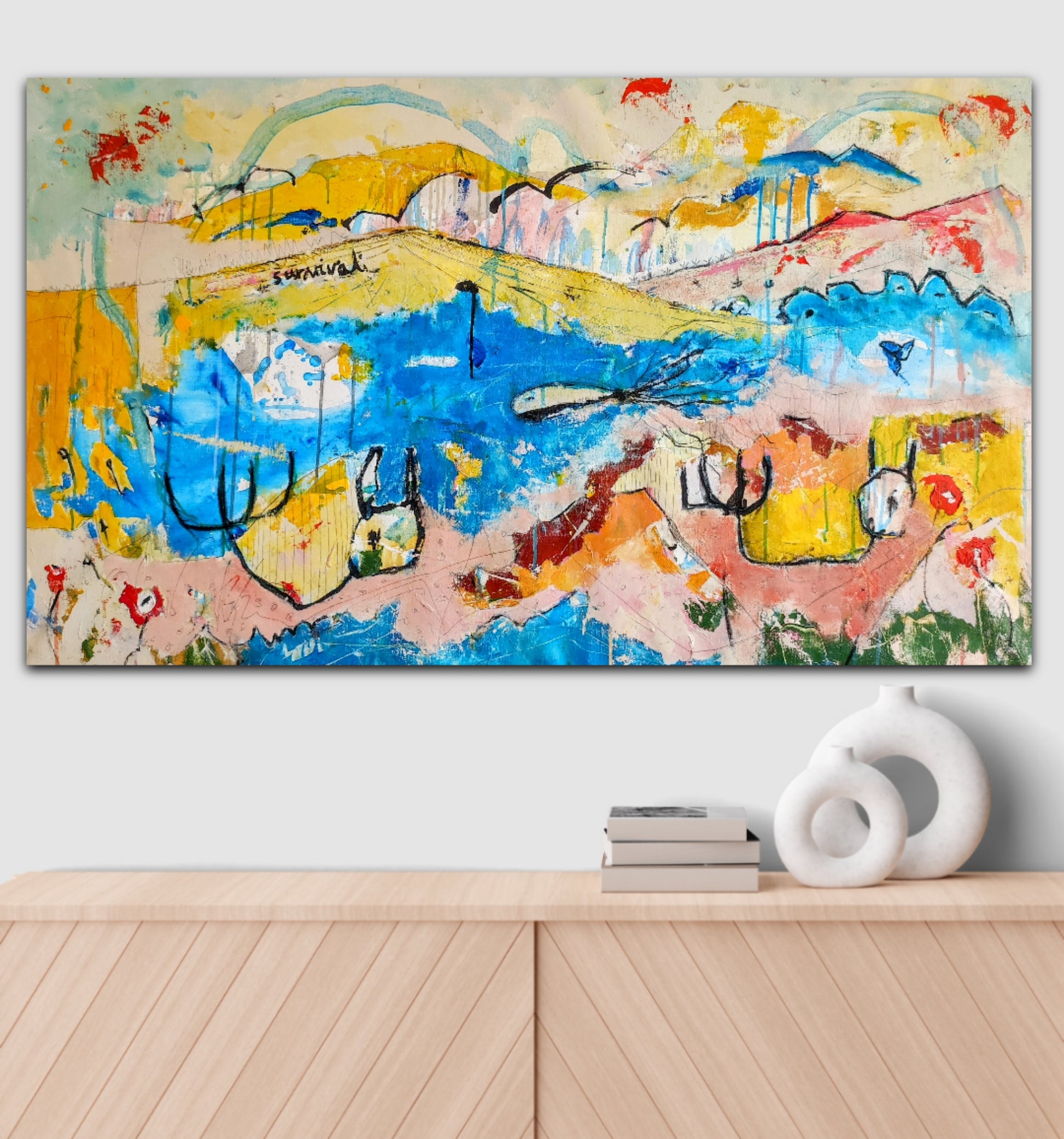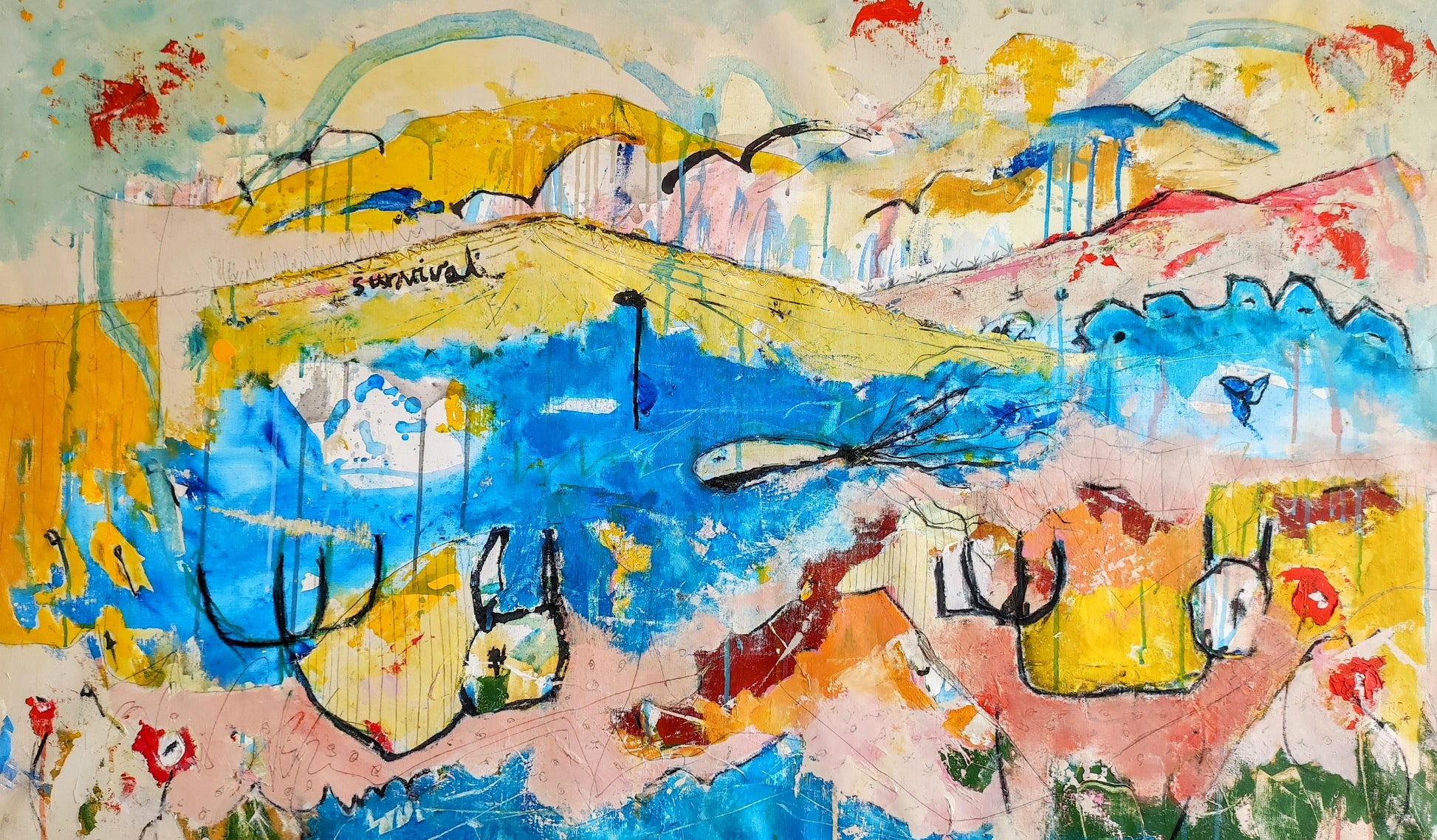 Técnica: acrílico, tinta china, ceras, carboncillo y lápiz.