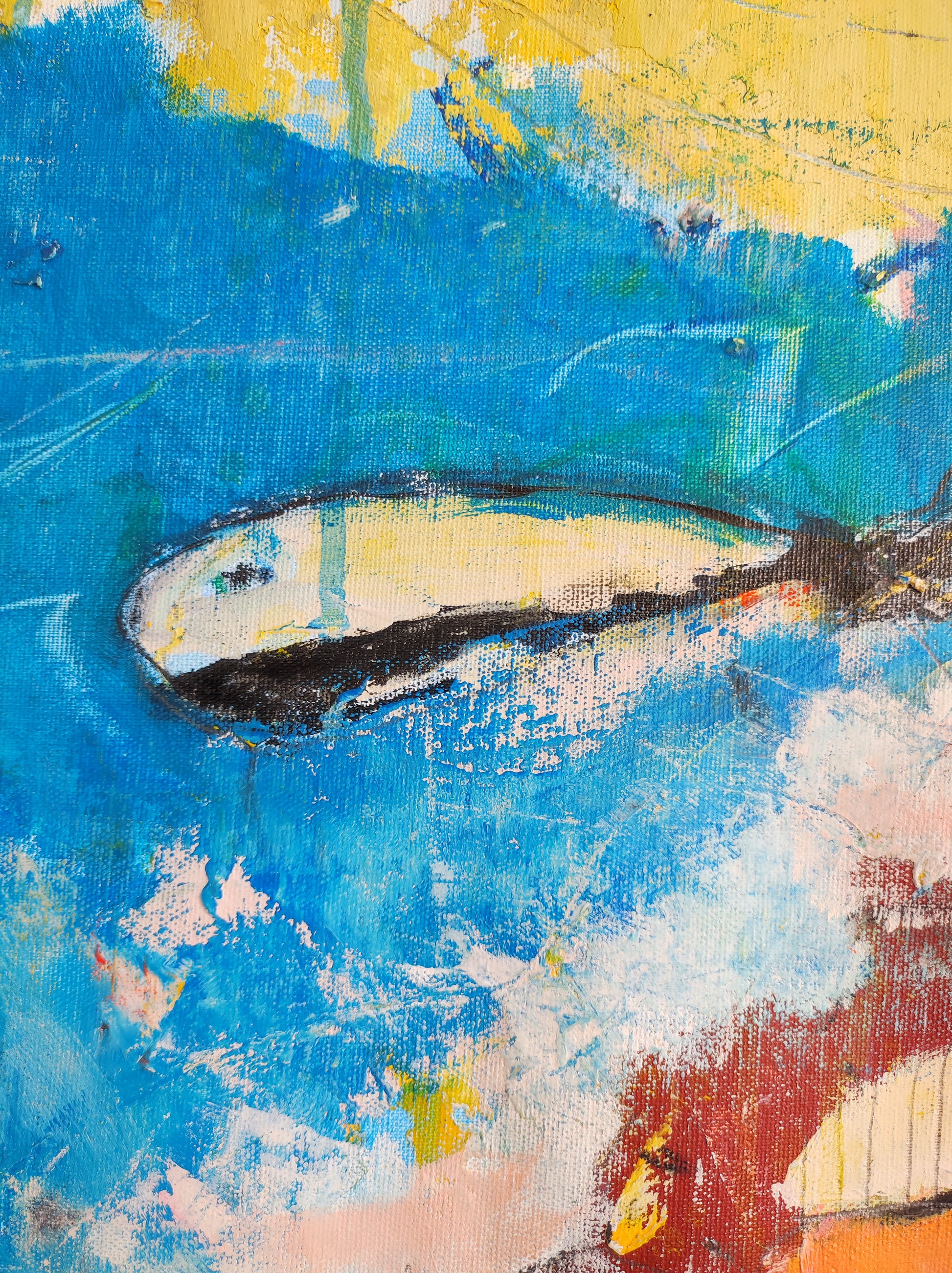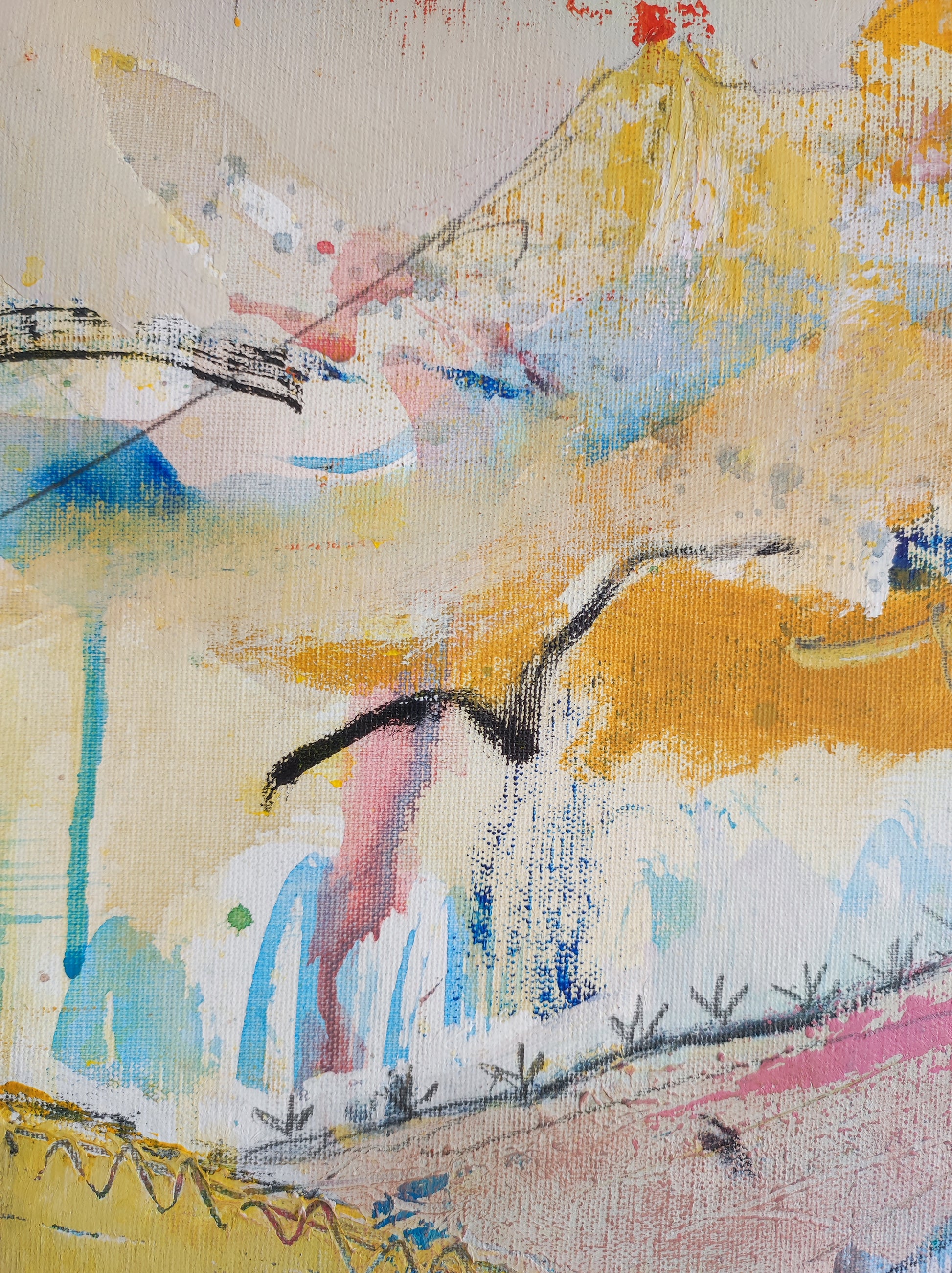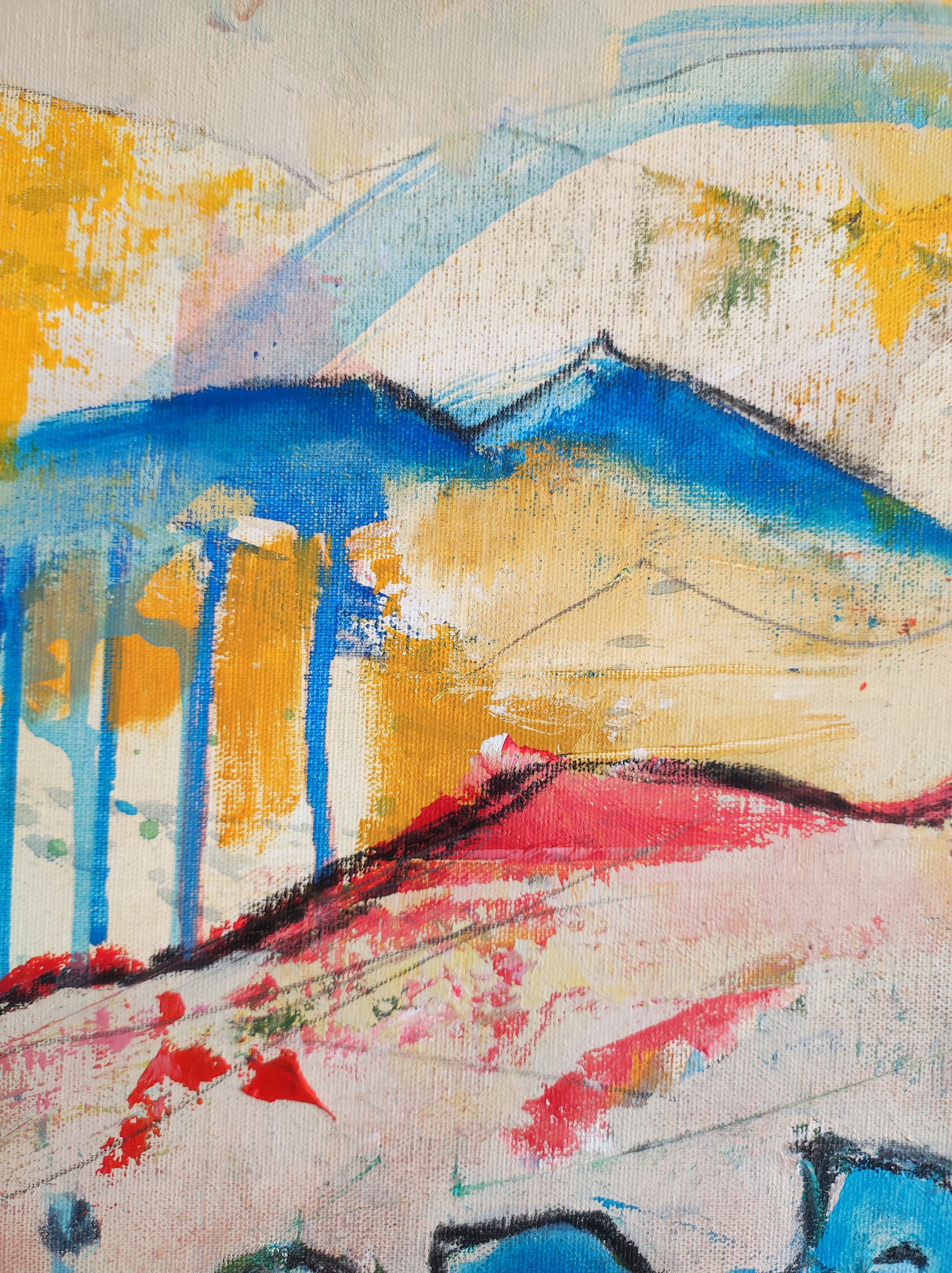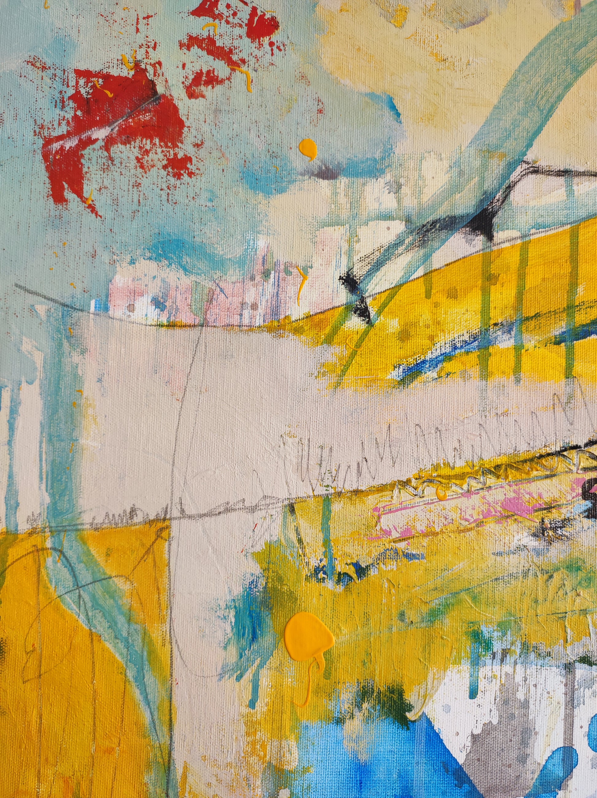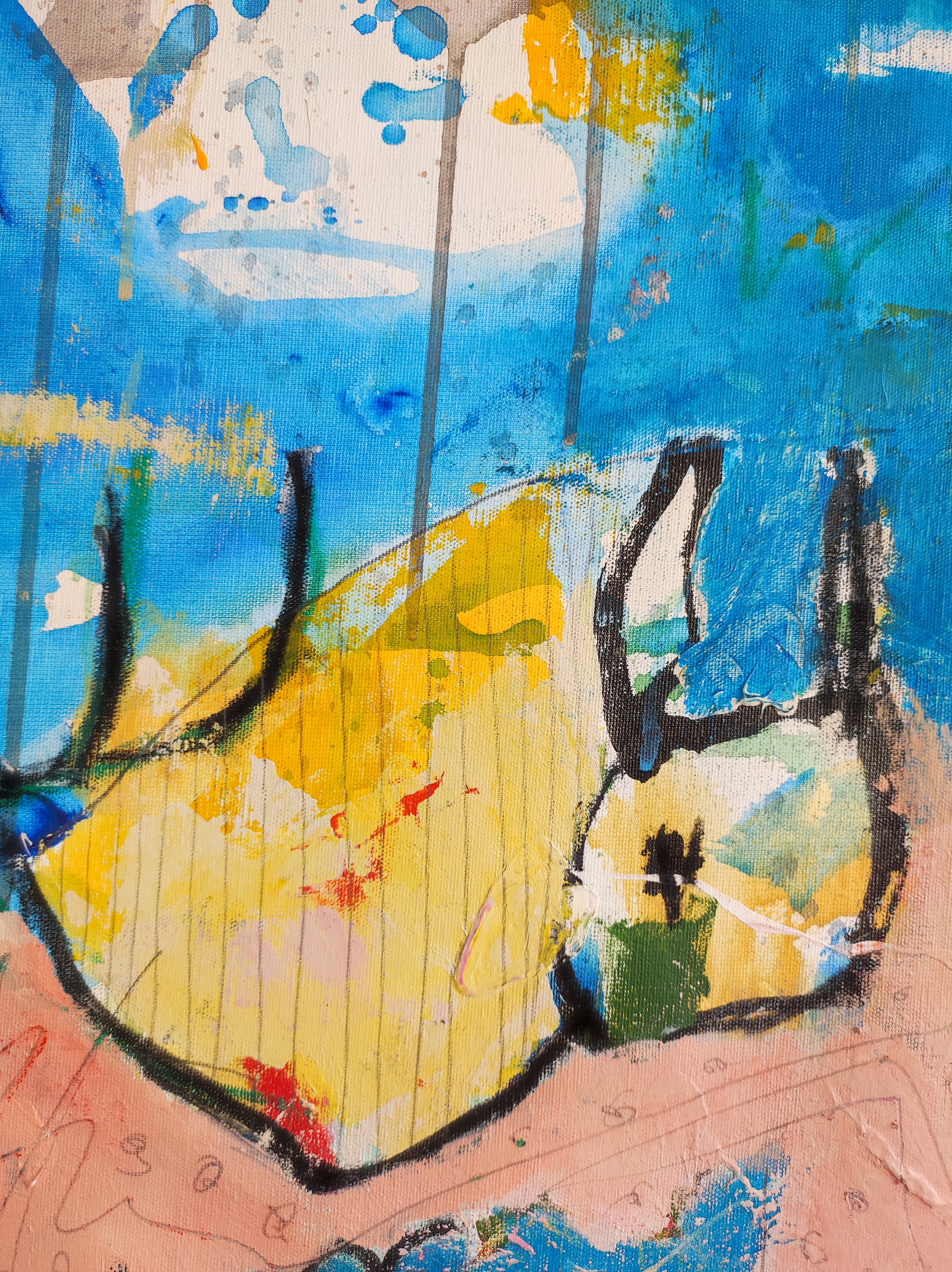 Cuadro trabajado desde la improvisación libre. Action painting en silencio, con los sonidos del estudio