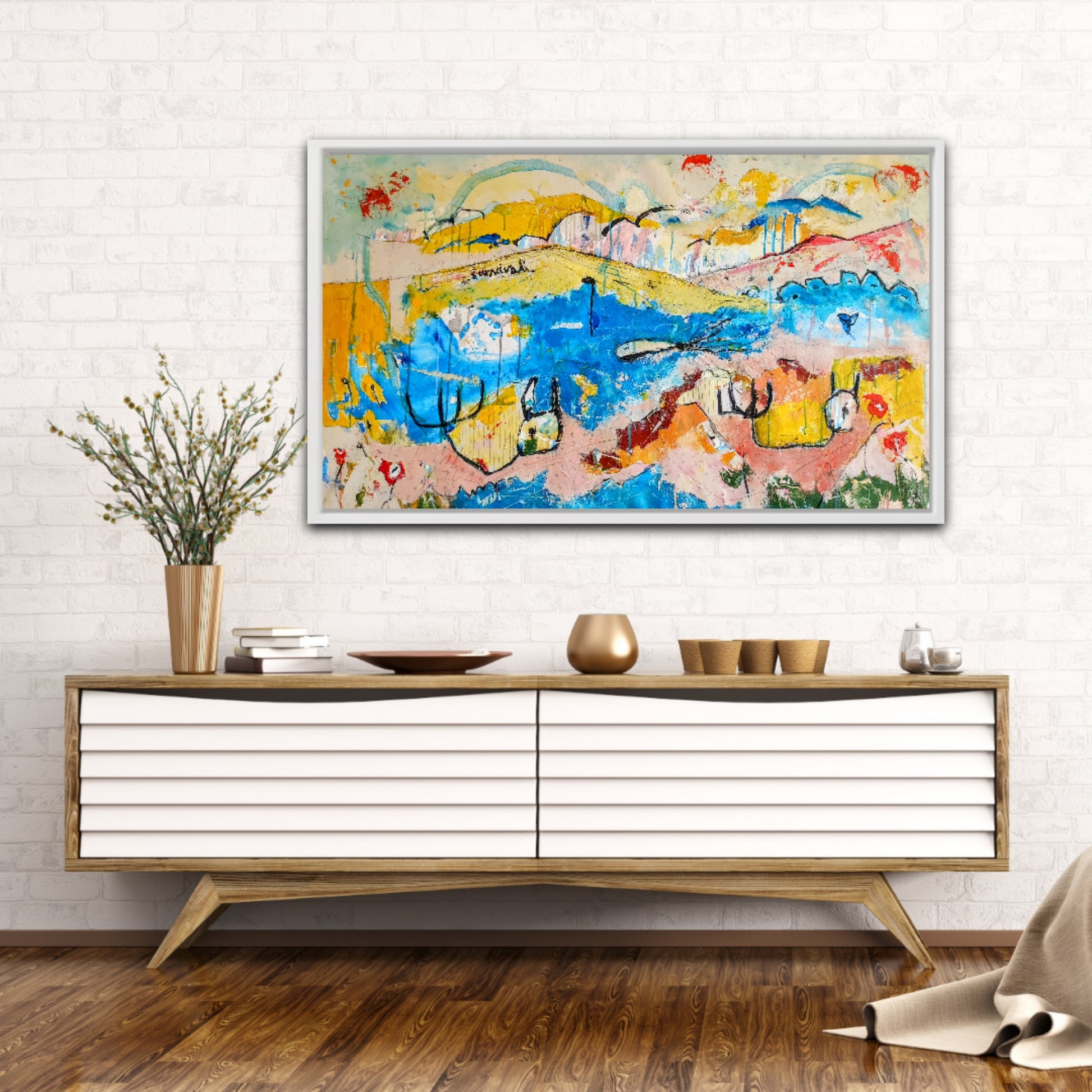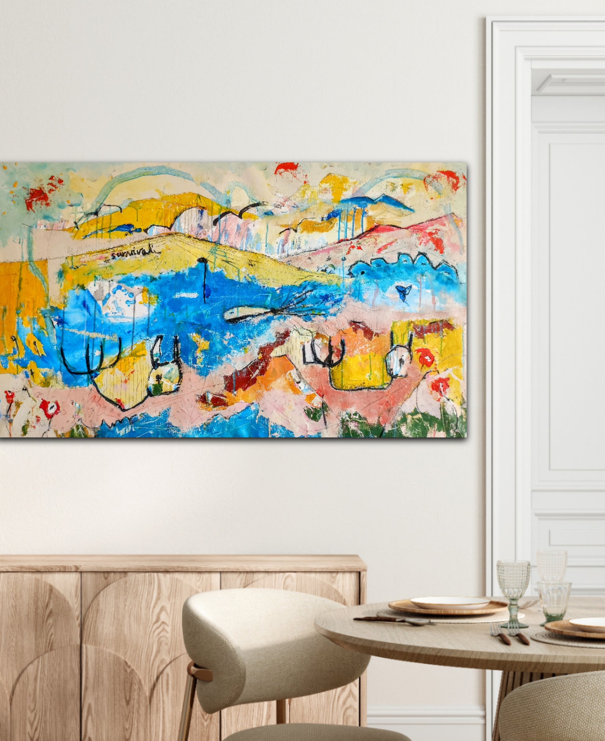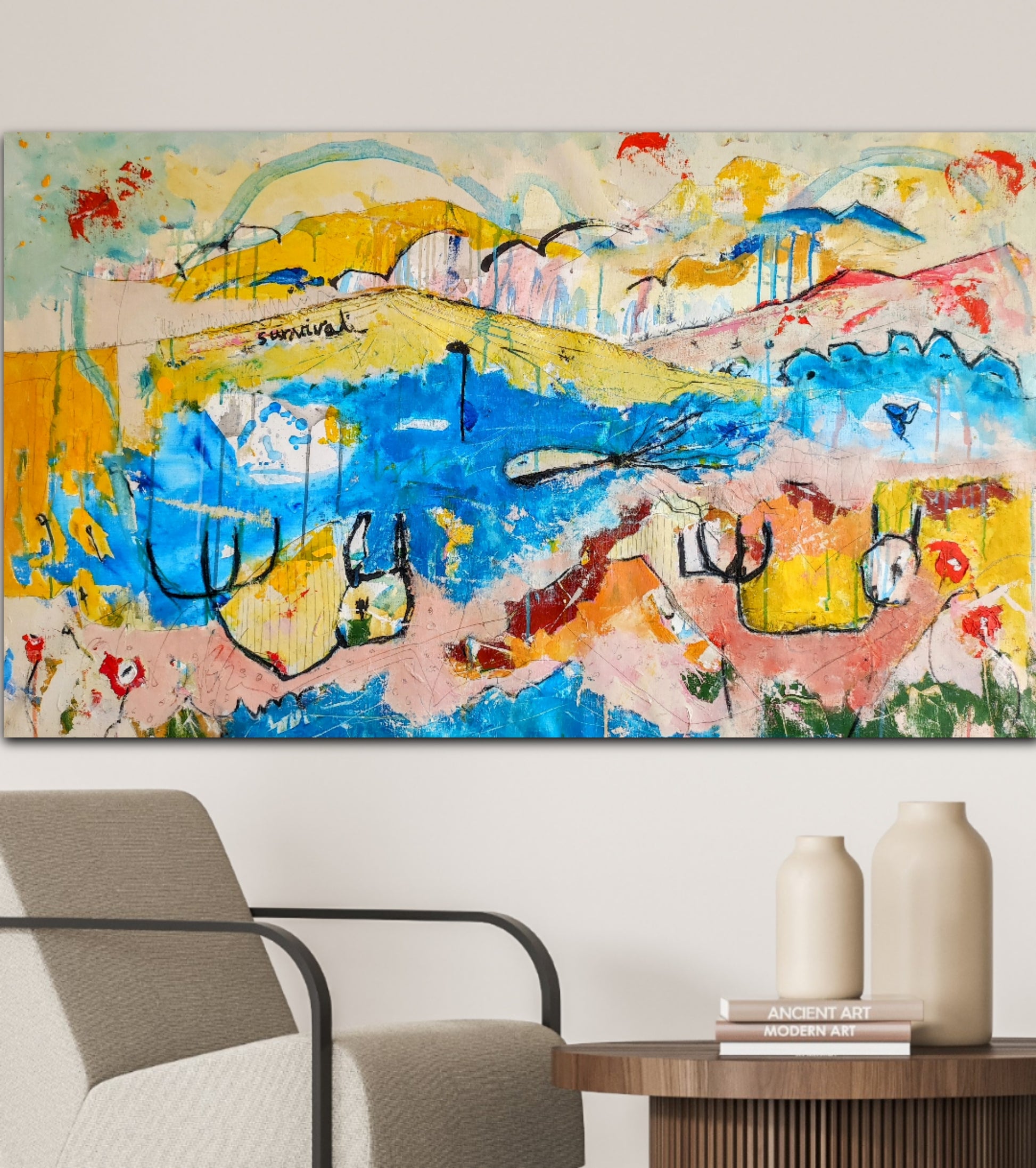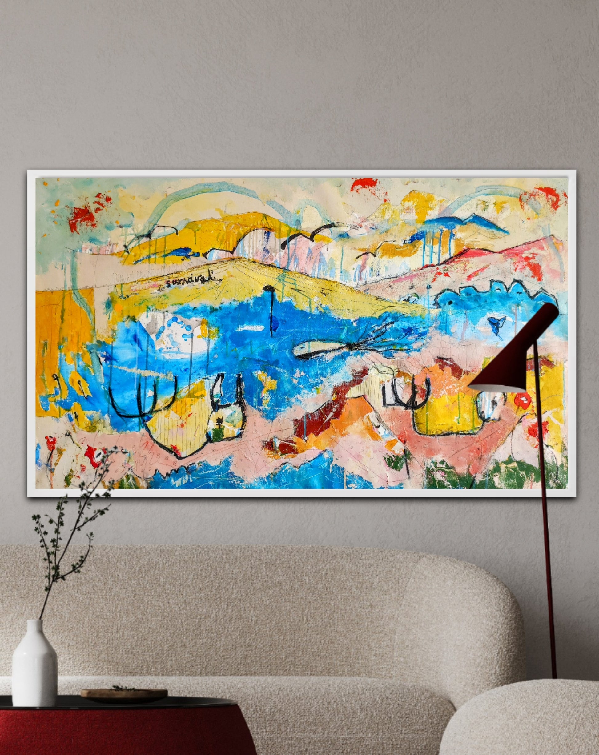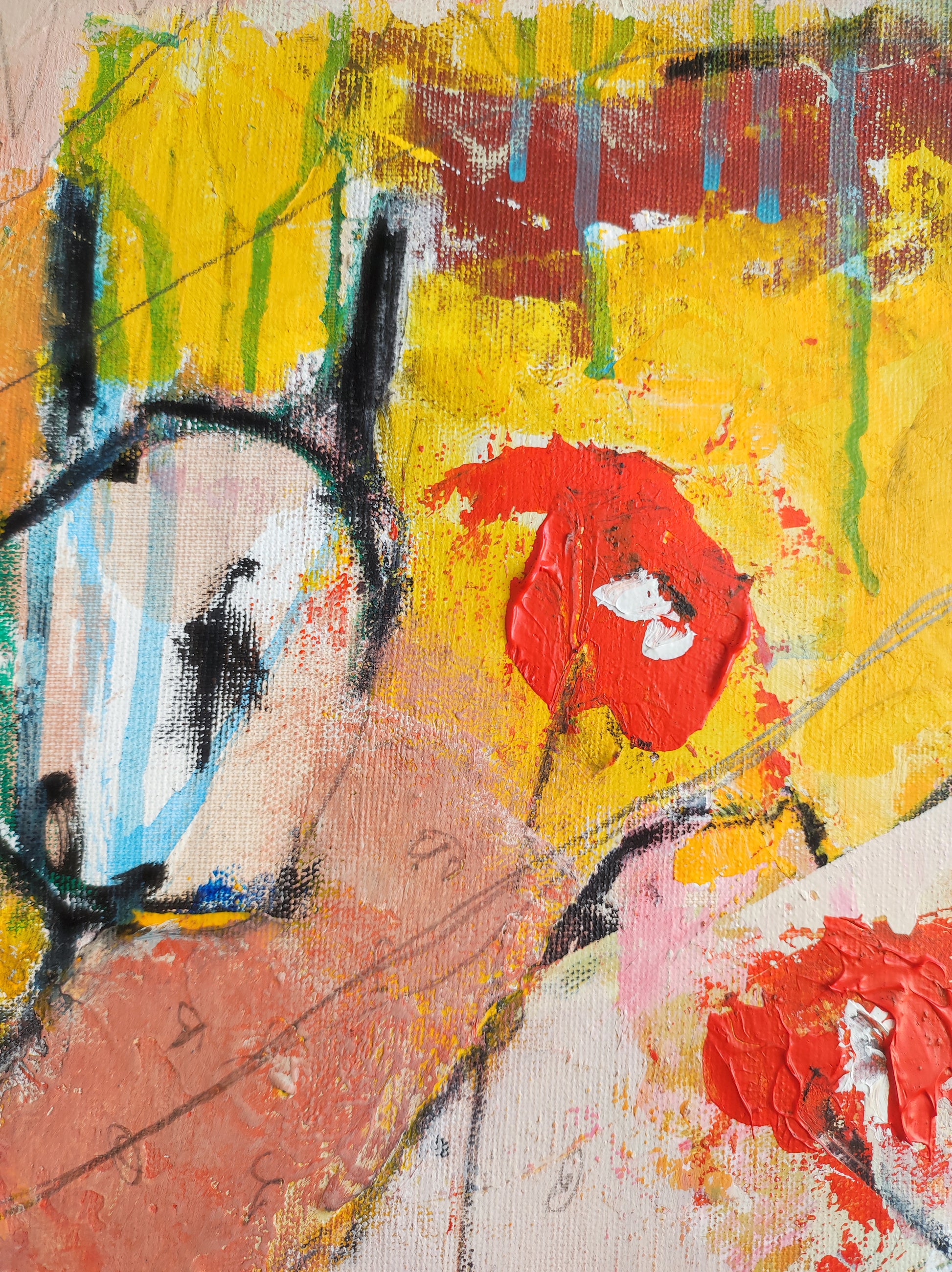 Cuadro trabajado desde la improvisación libre. Action painting en silencio, con los sonidos del estudio