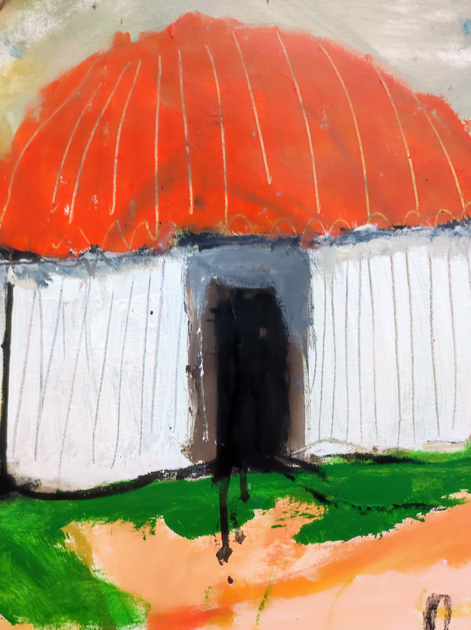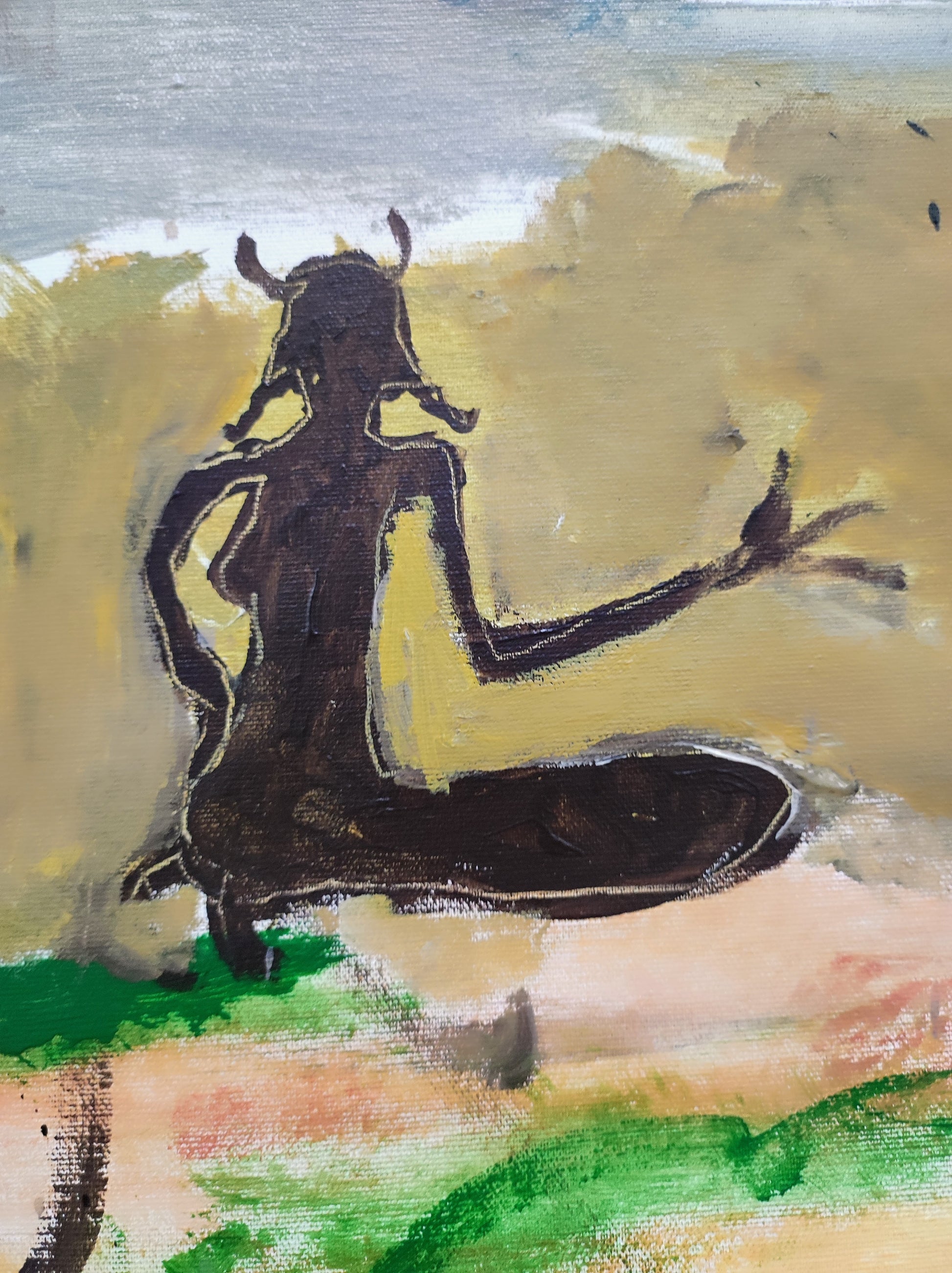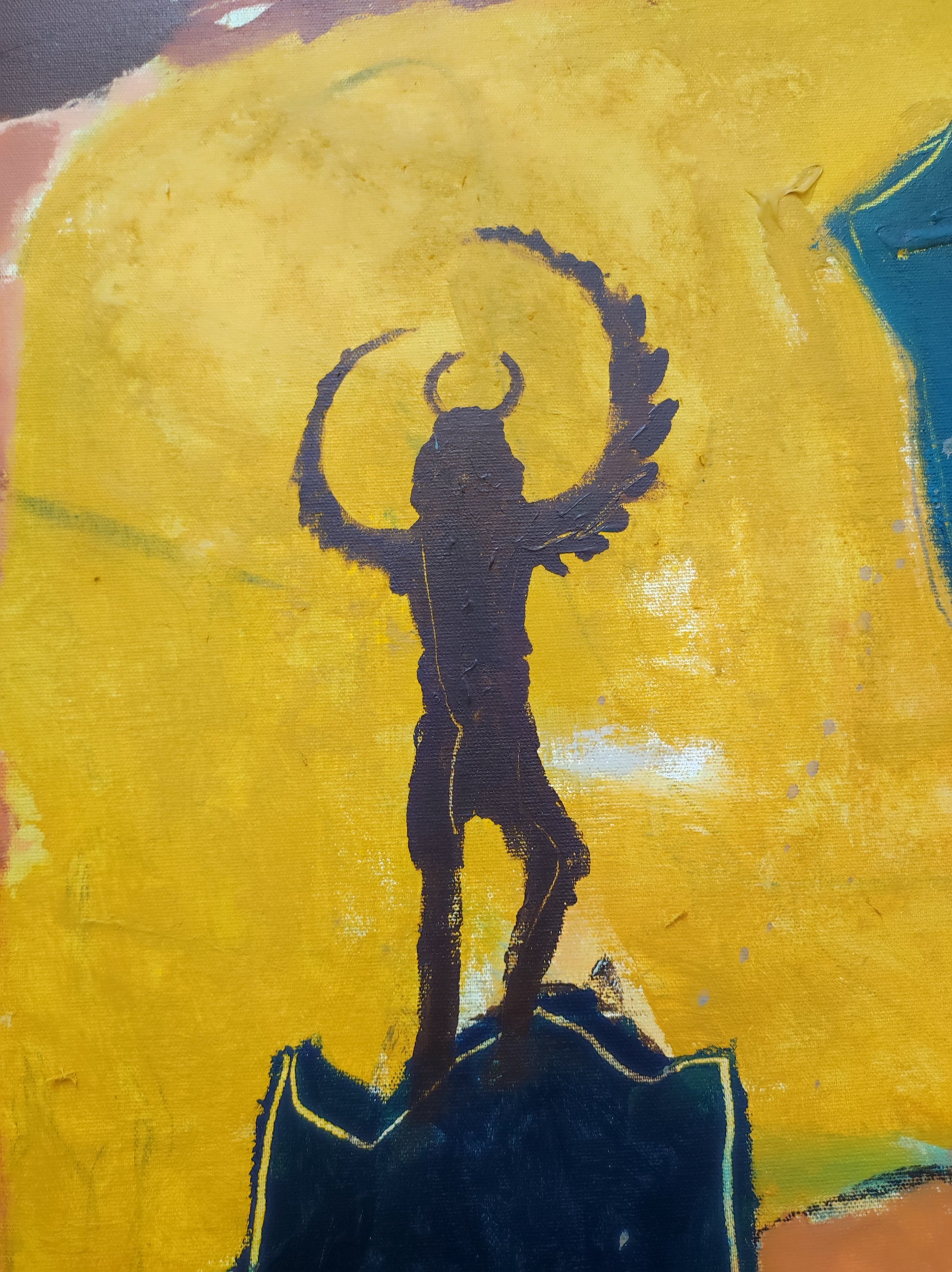 Técnica: acrílico, pigmentos, lápiz, gesso y carboncillo.