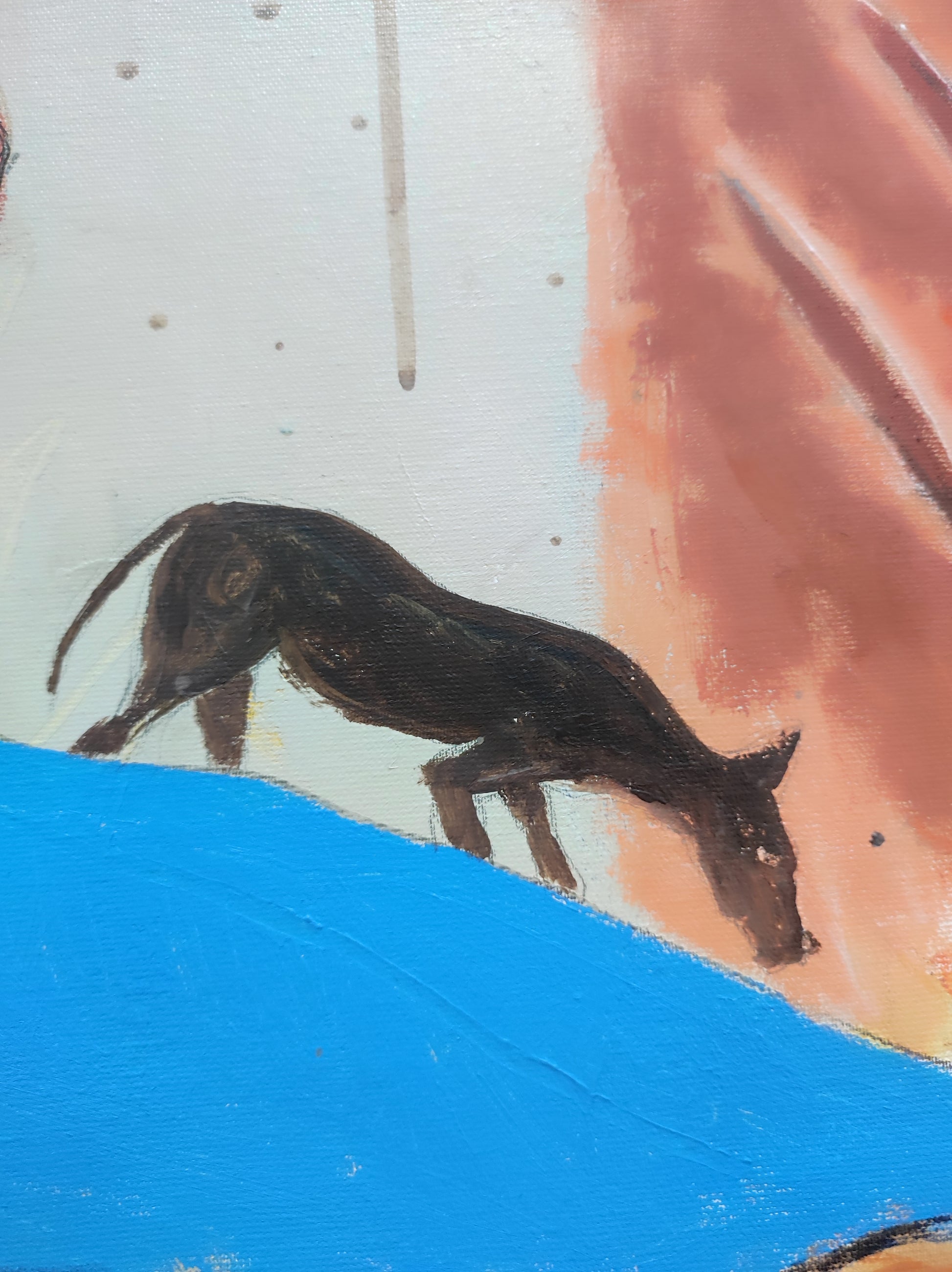 Cuadro trabajado desde la improvisación libre. Action painting con música de Cage The Elephant.