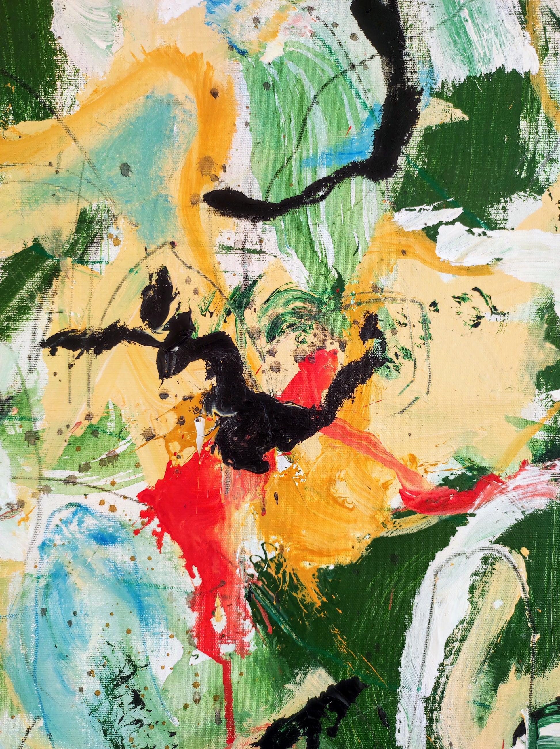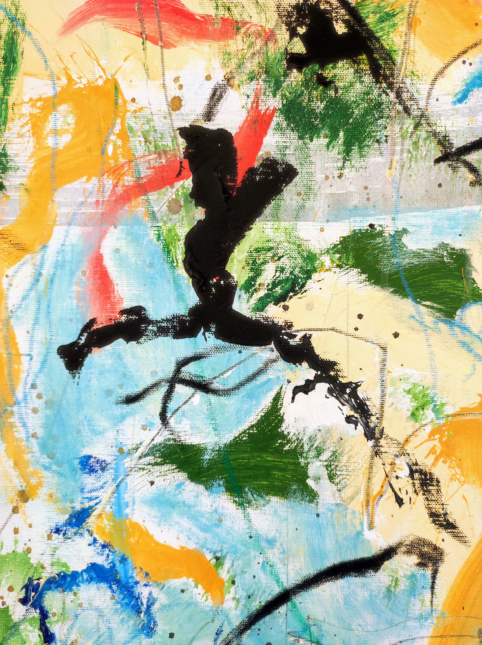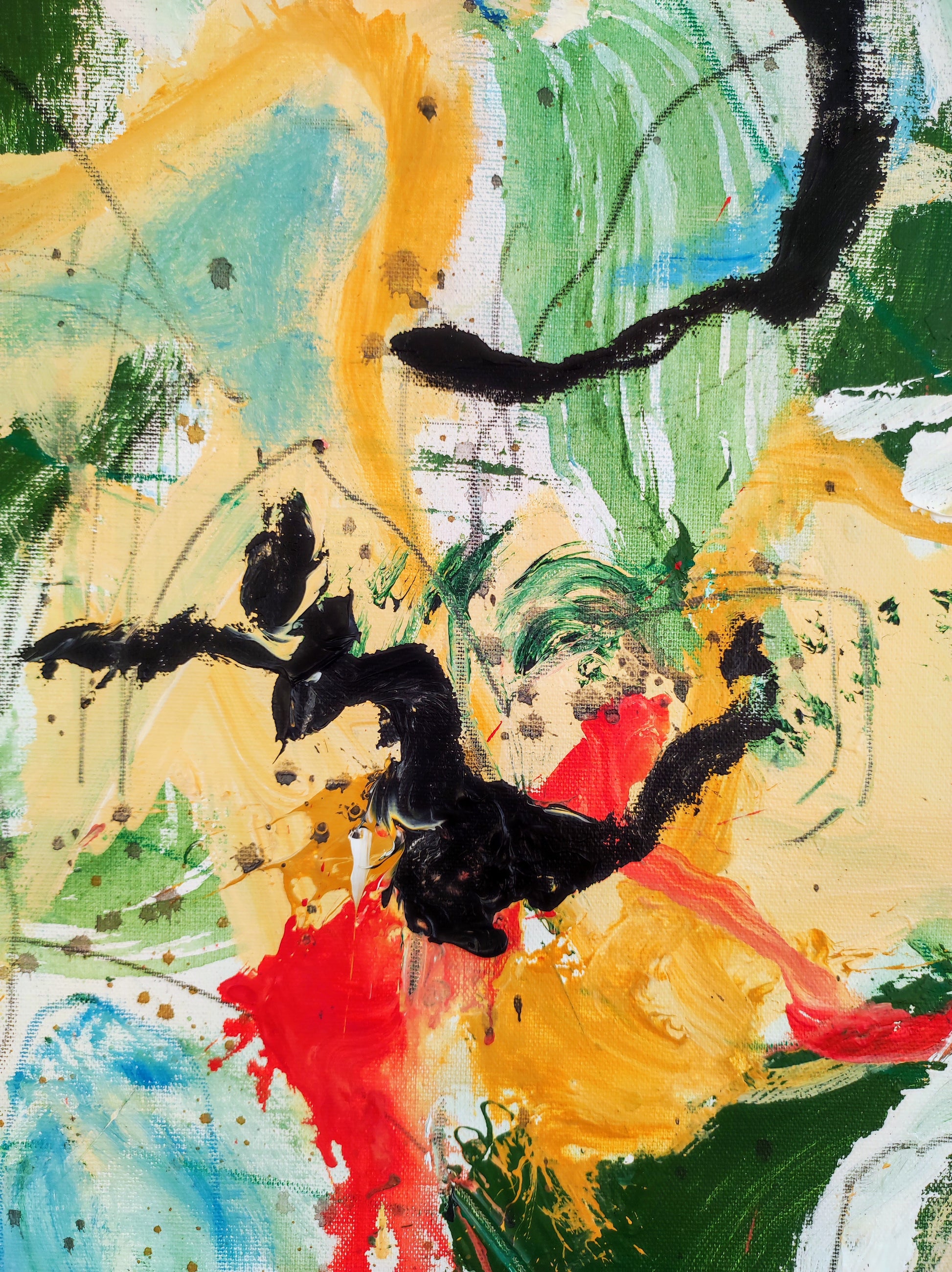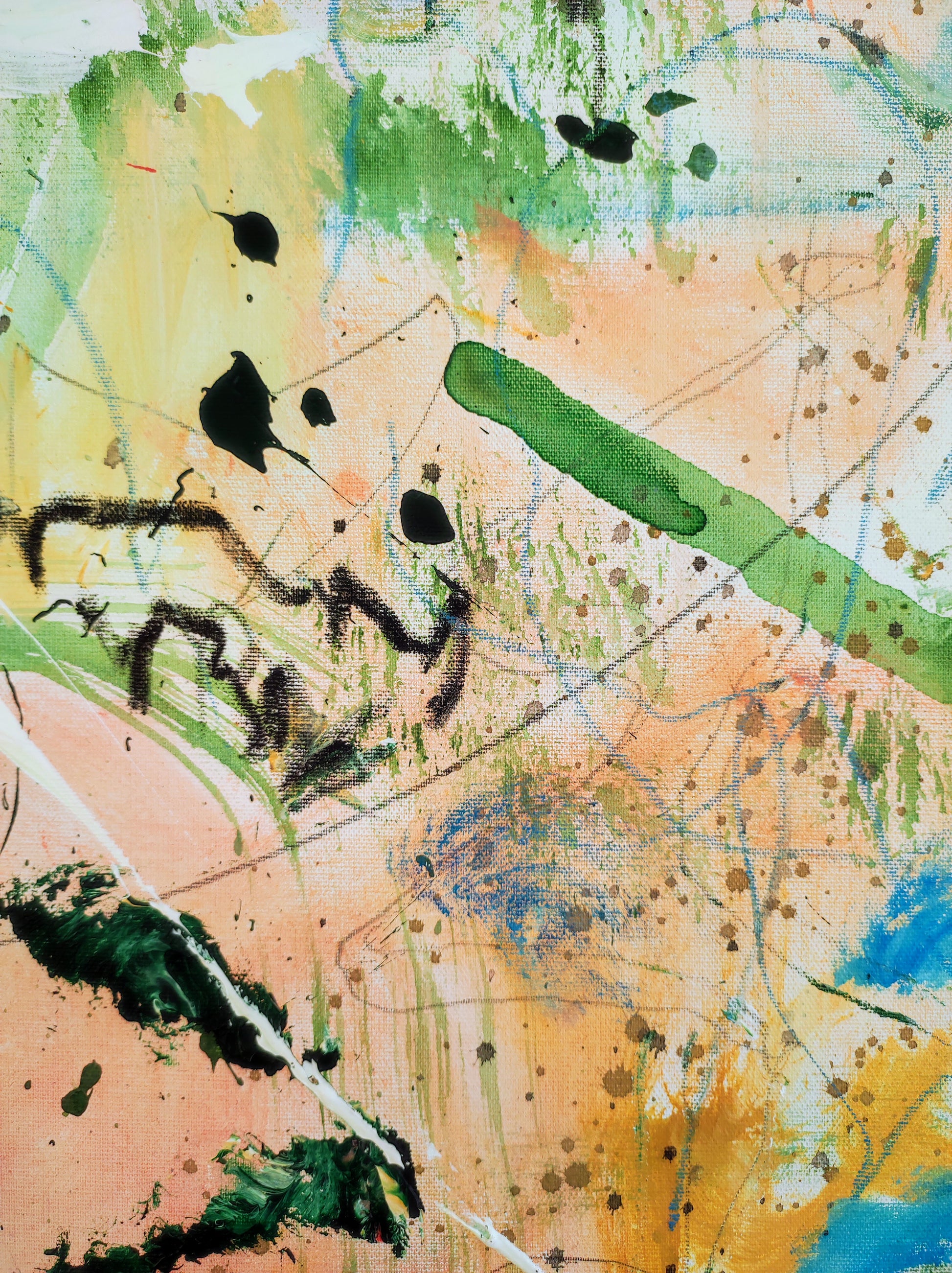 Cuadro trabajado desde la improvisación libre. Action painting en silencio con los sonidos del estudio.