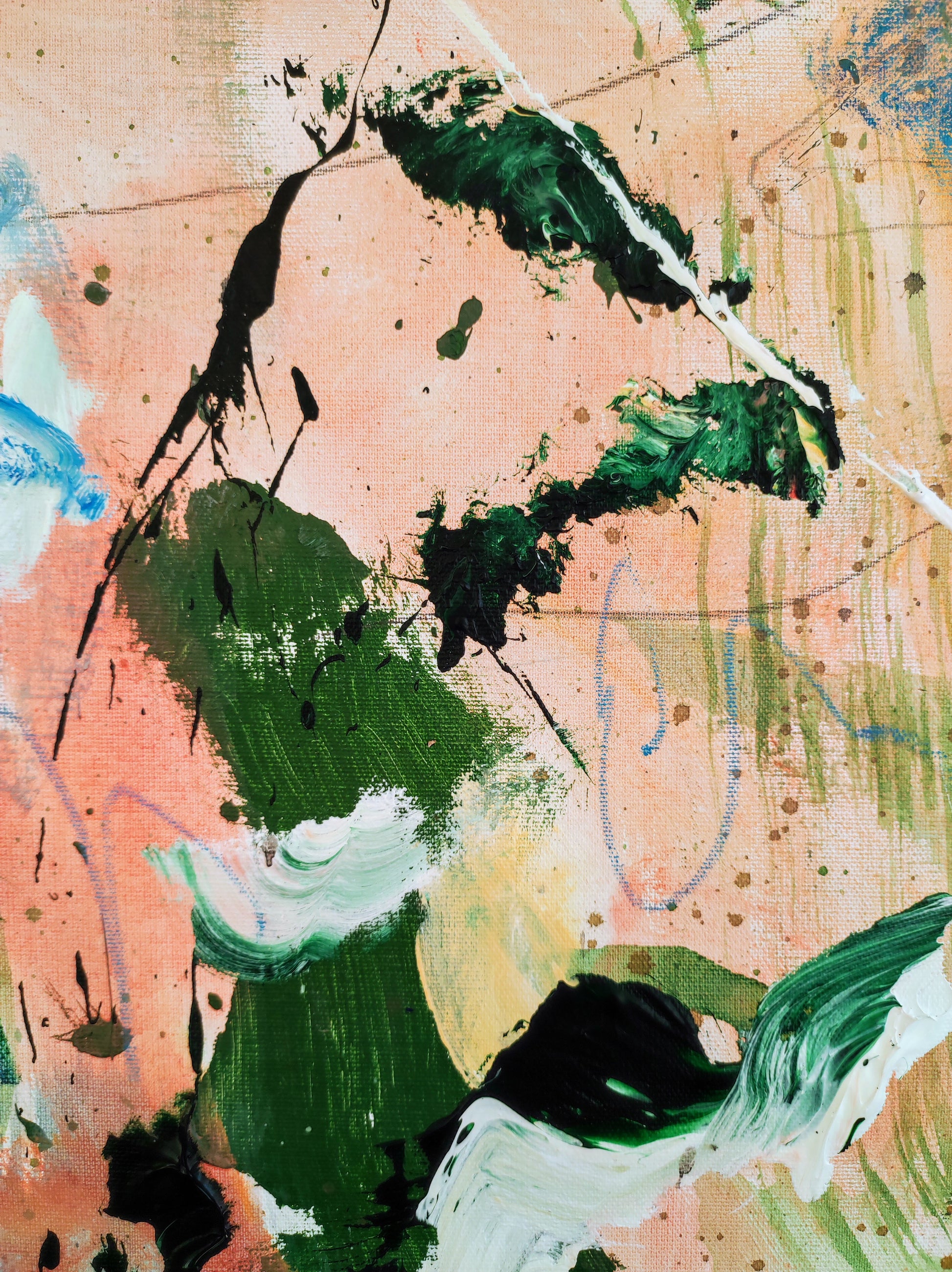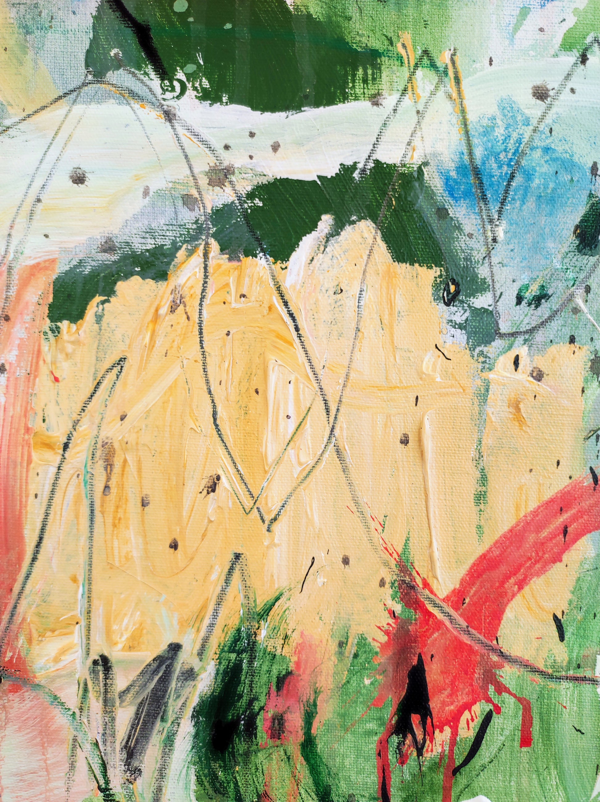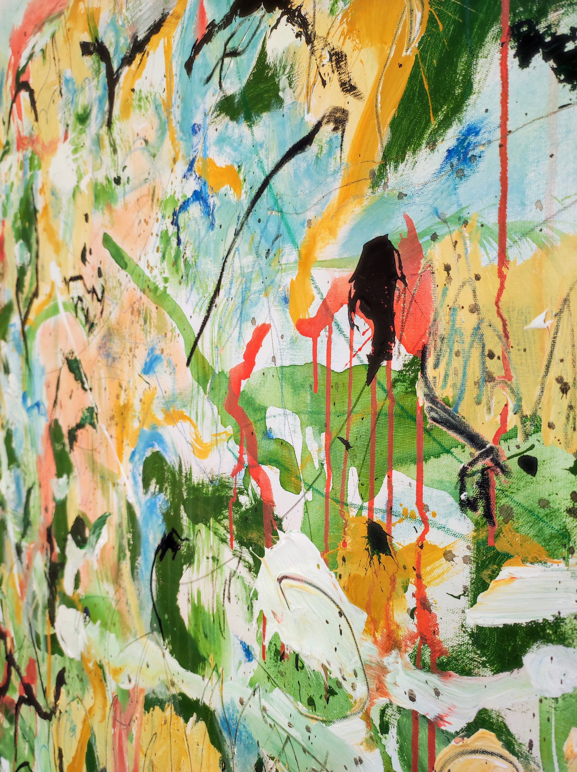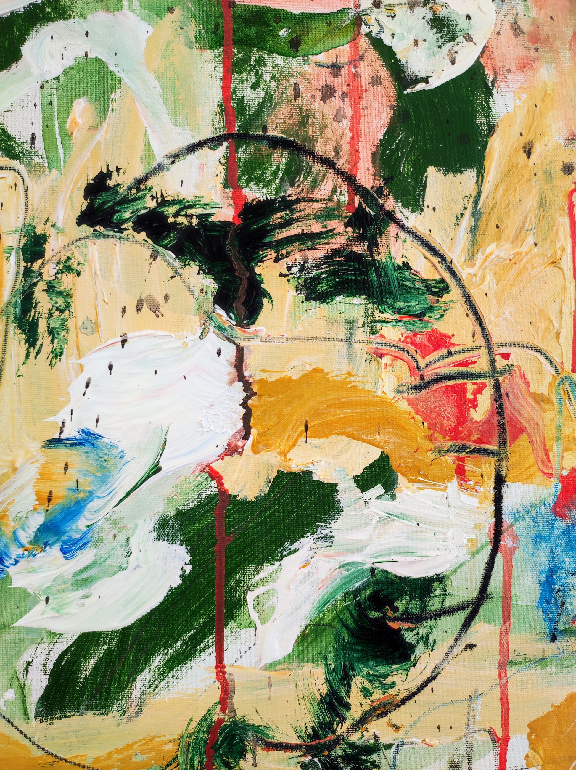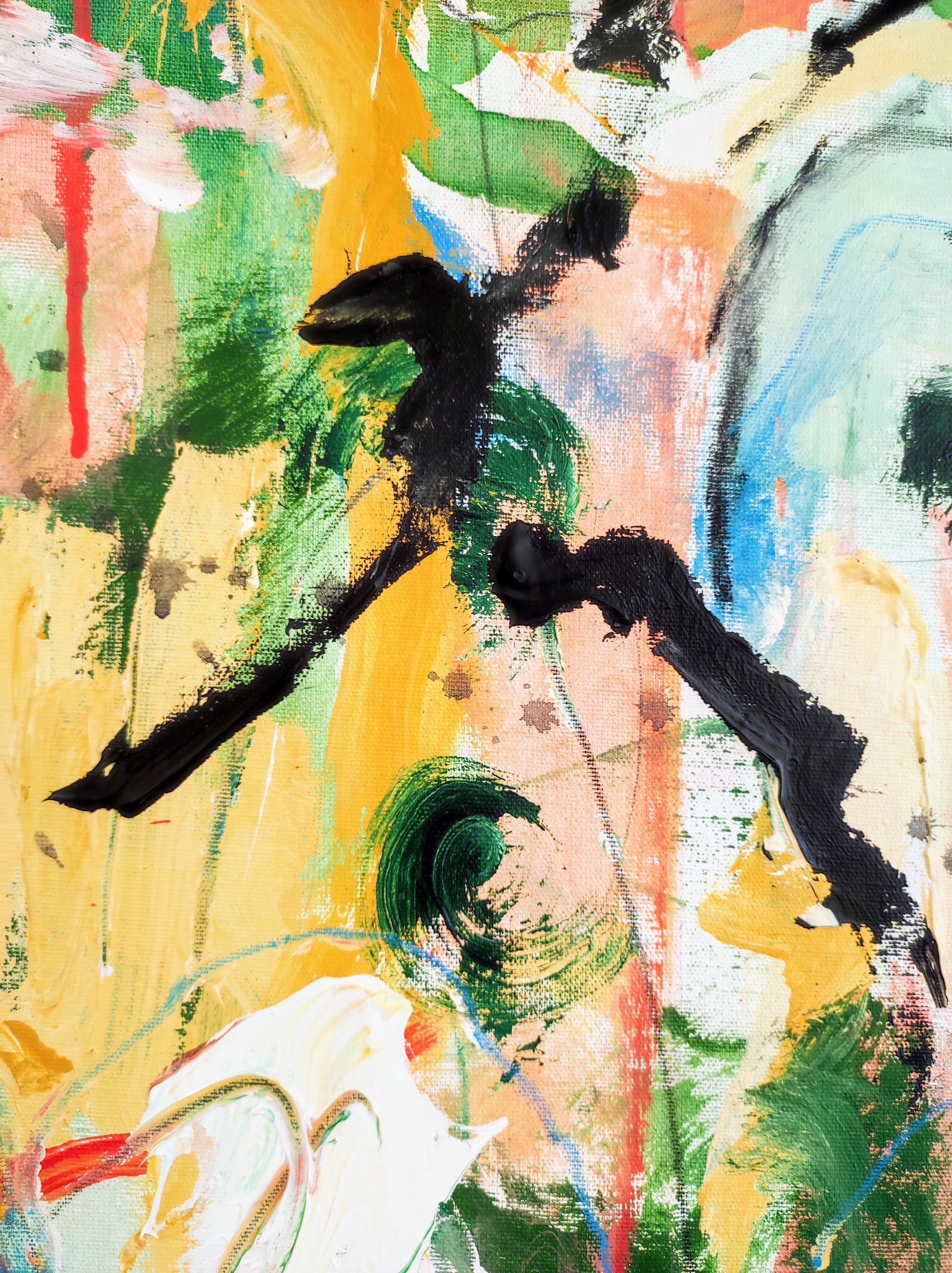 Cuadro trabajado desde la improvisación libre. Action painting en silencio con los sonidos del estudio.