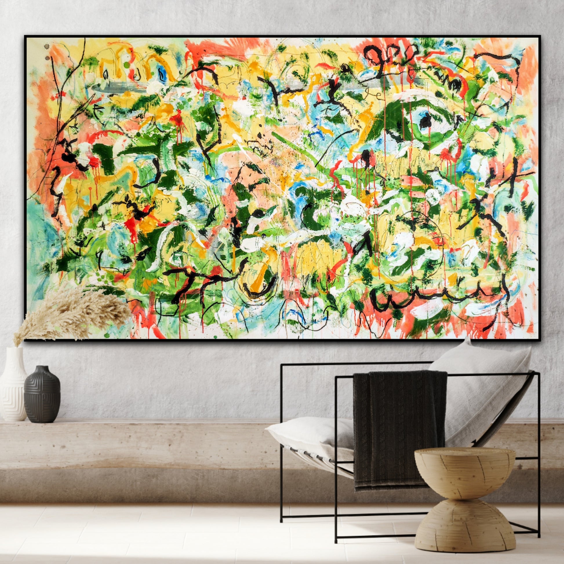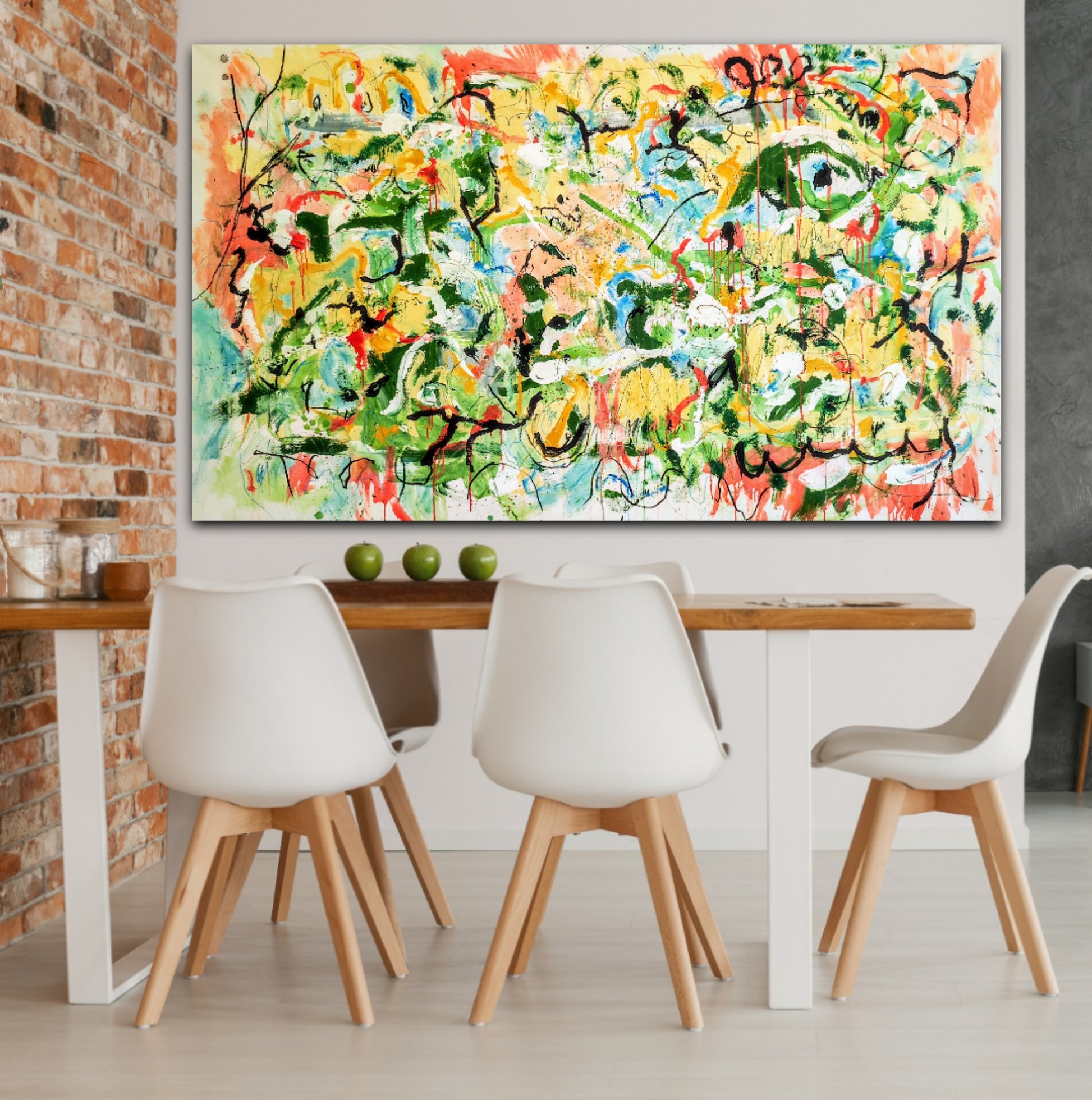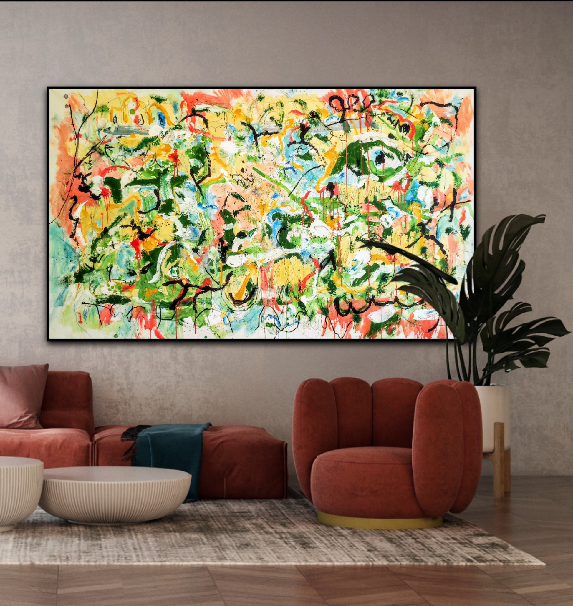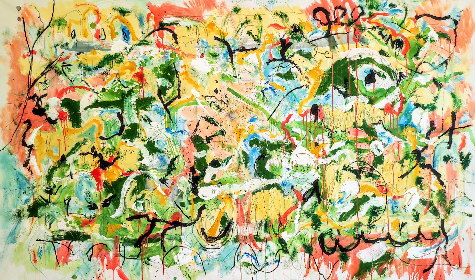 Cuadro trabajado desde la improvisación libre. Action painting en silencio con los sonidos del estudio.