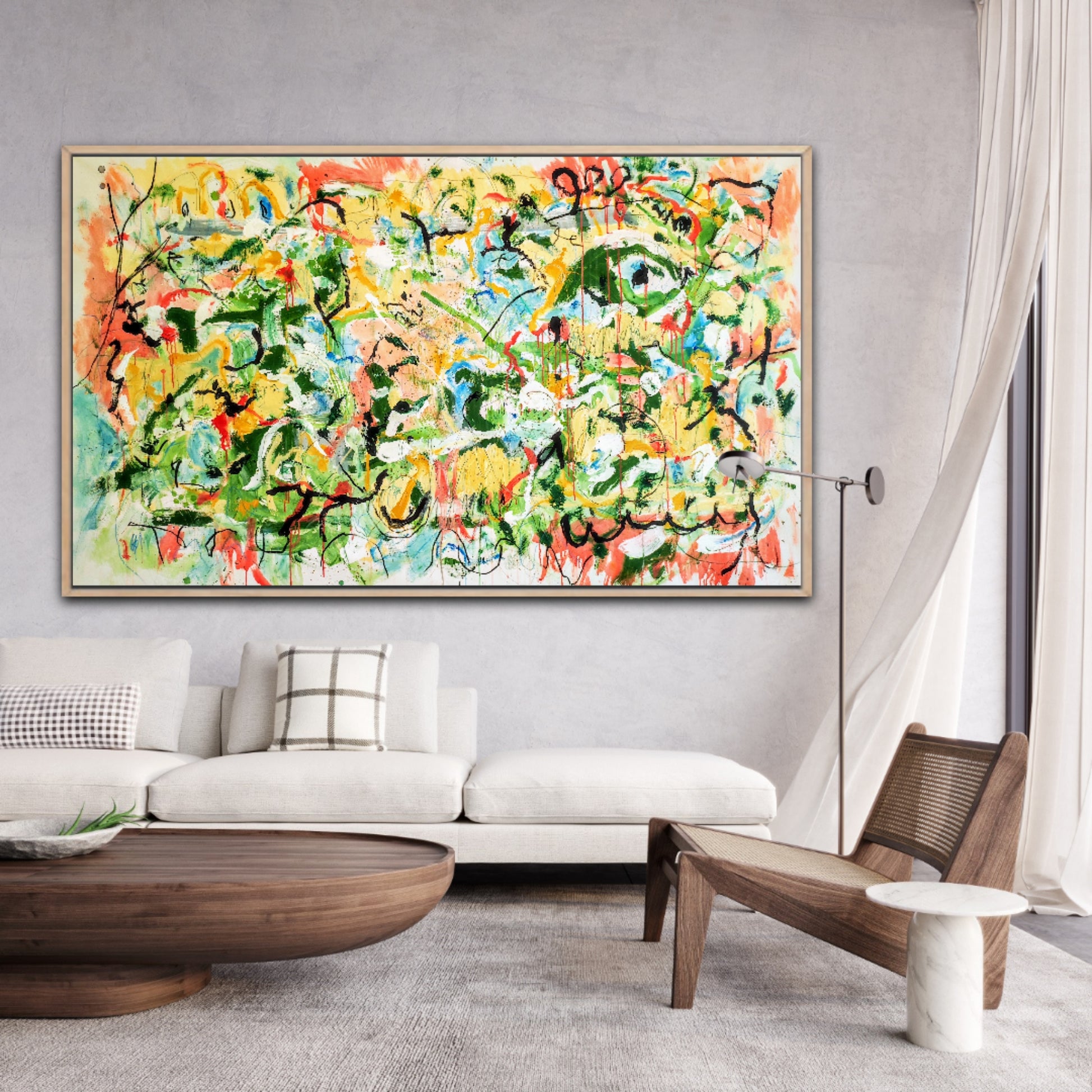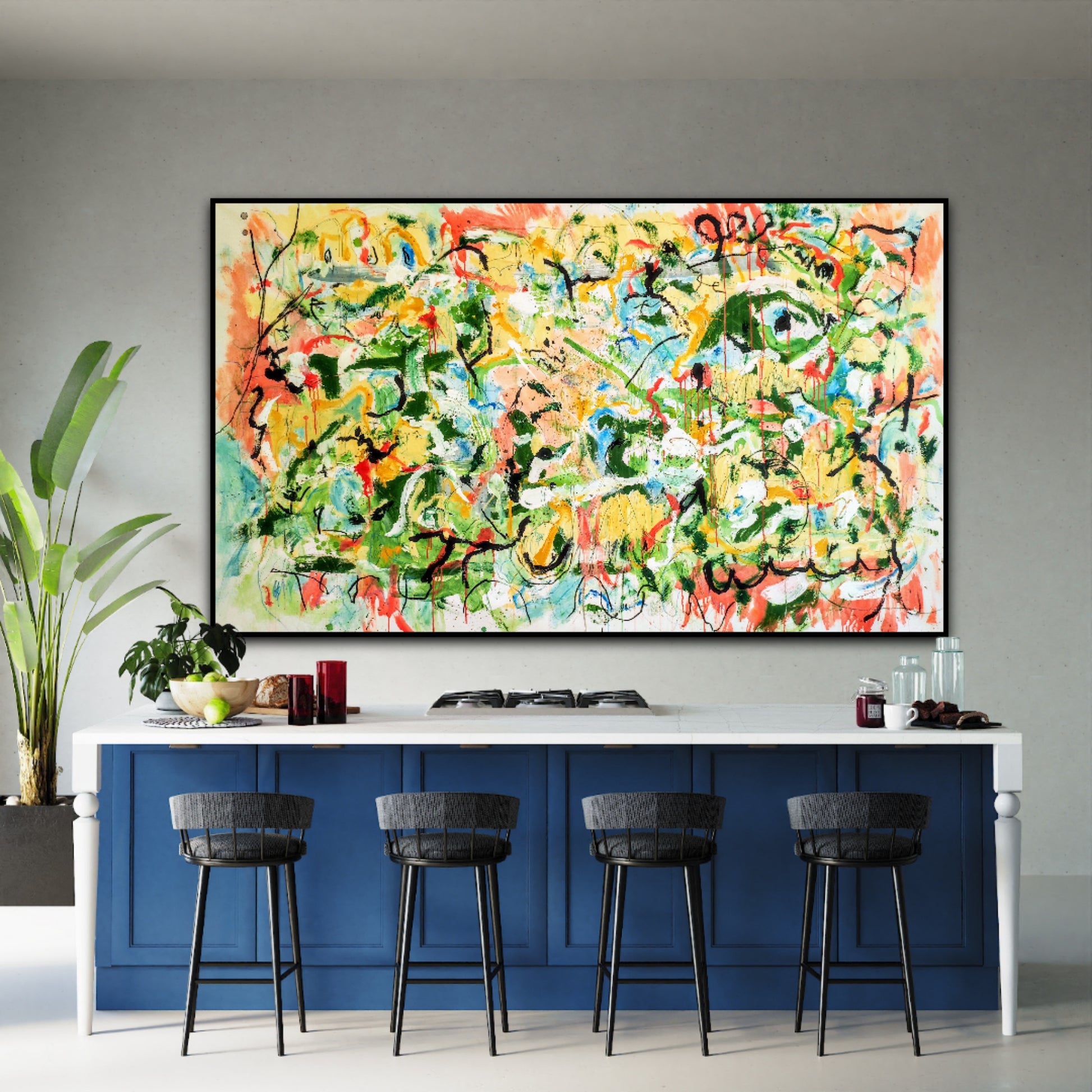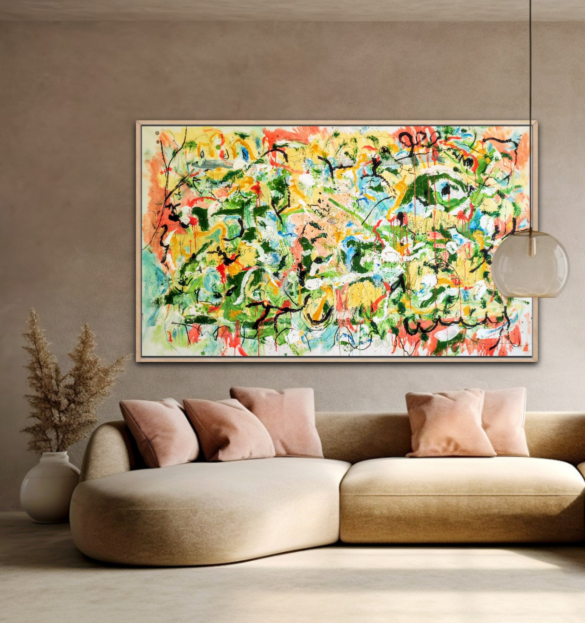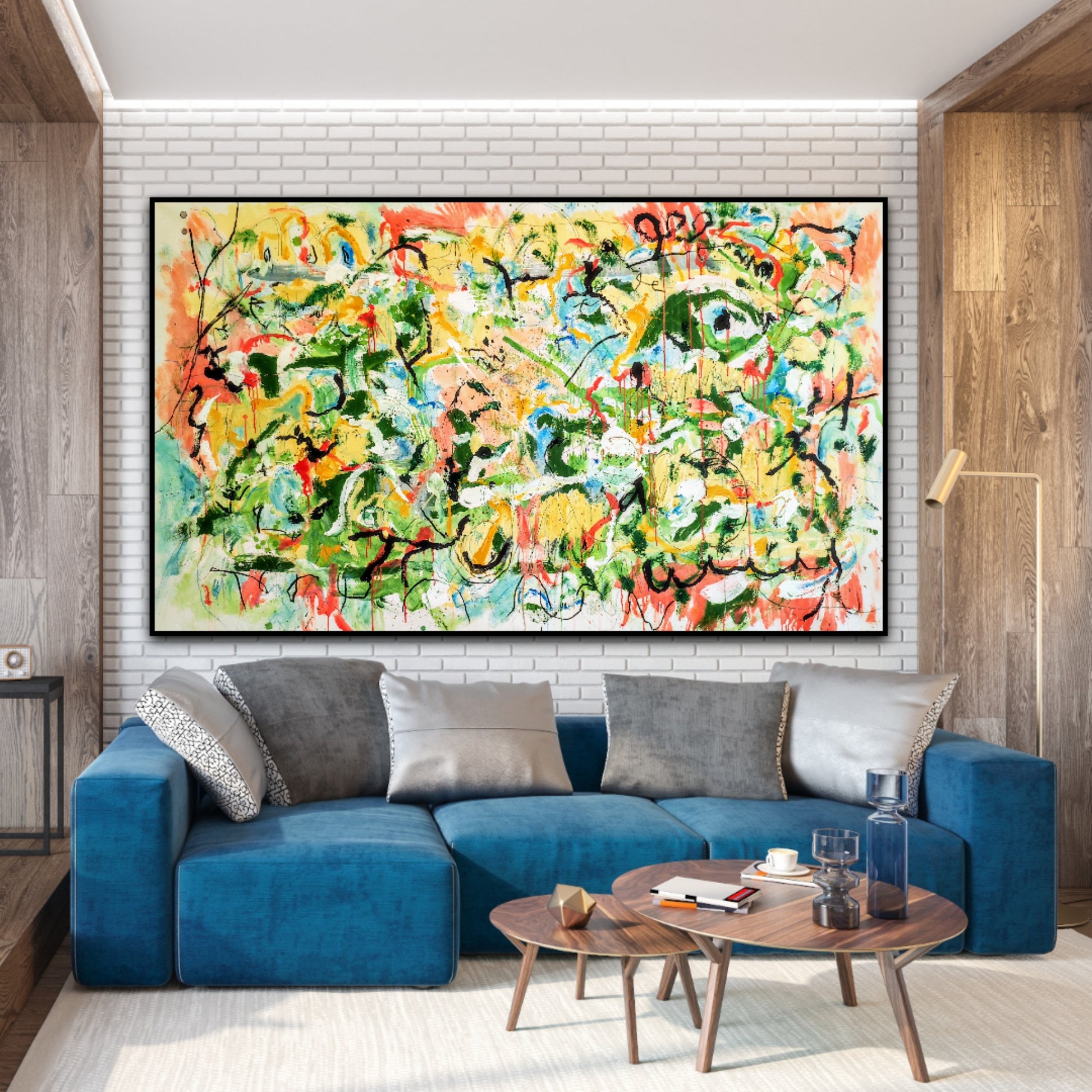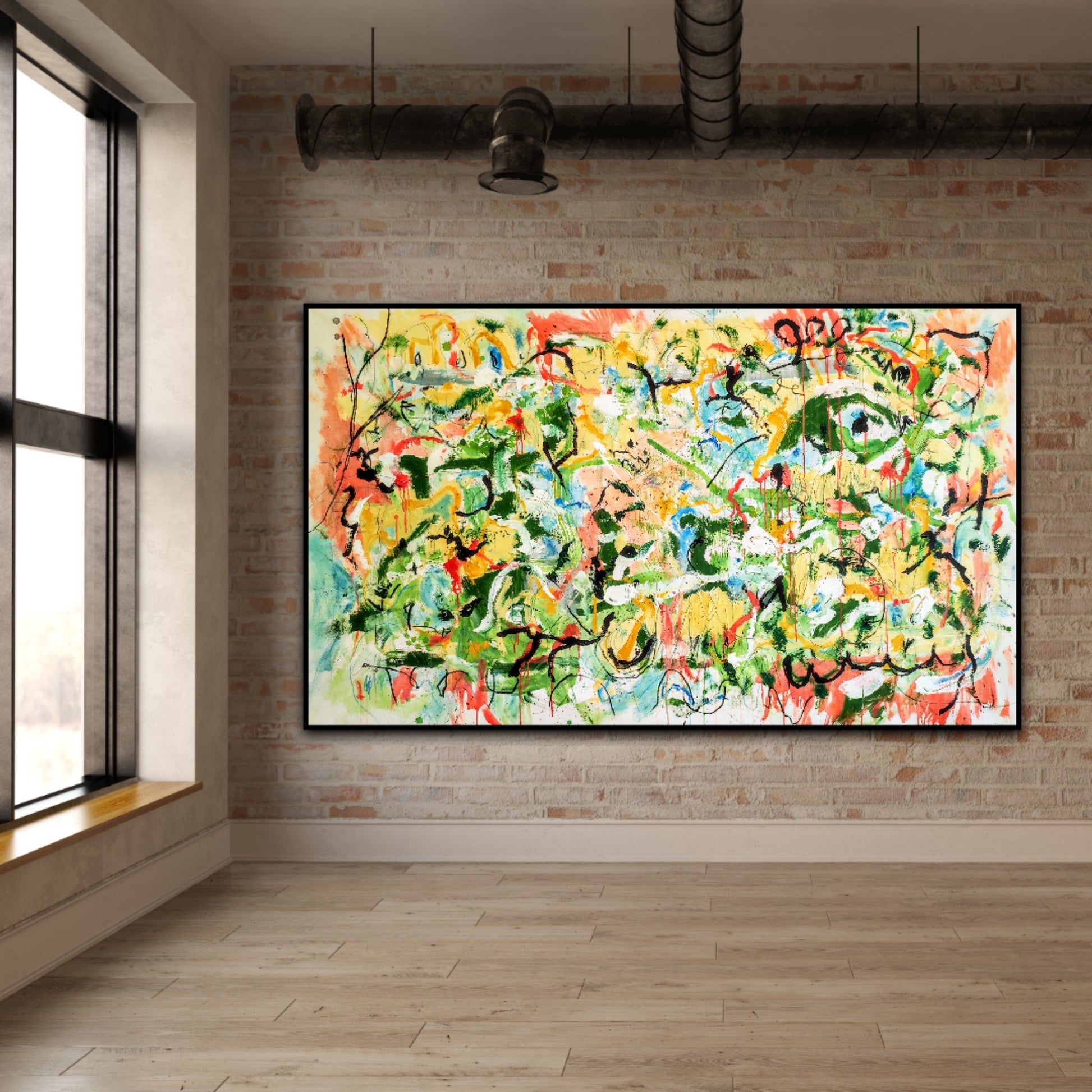 Cuadro trabajado desde la improvisación libre. Action painting en silencio con los sonidos del estudio.
