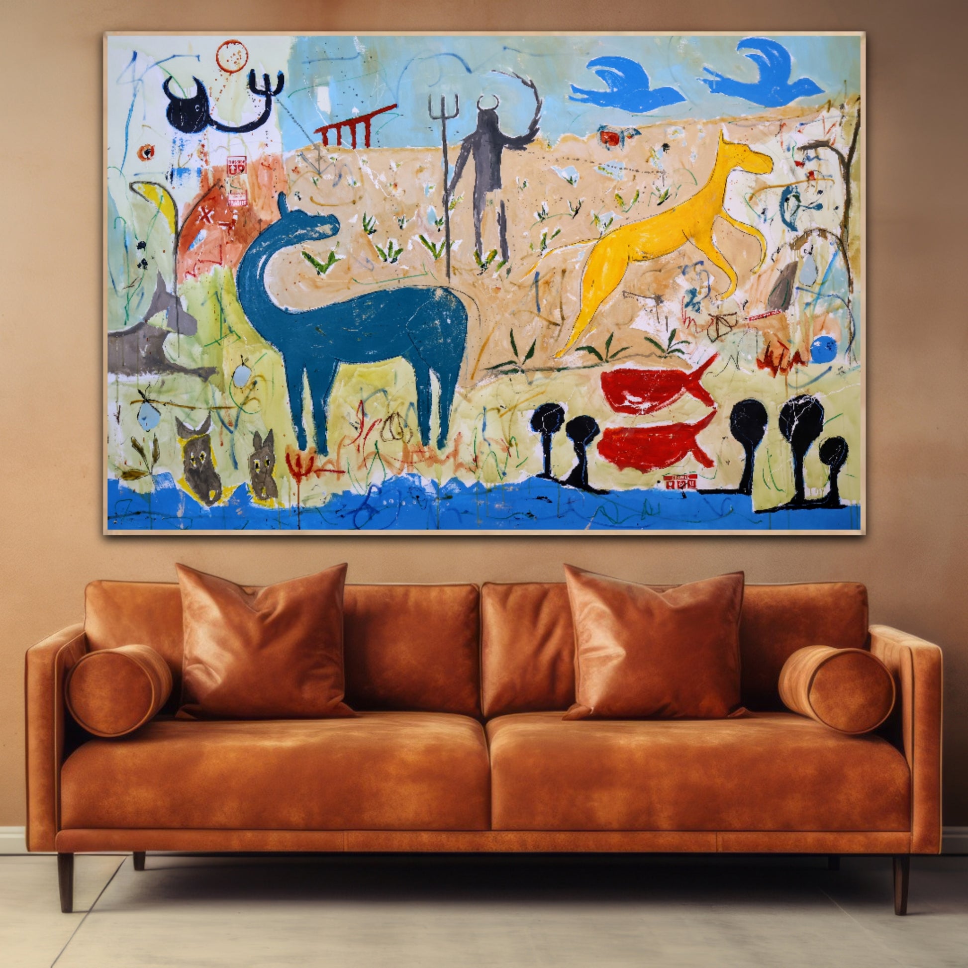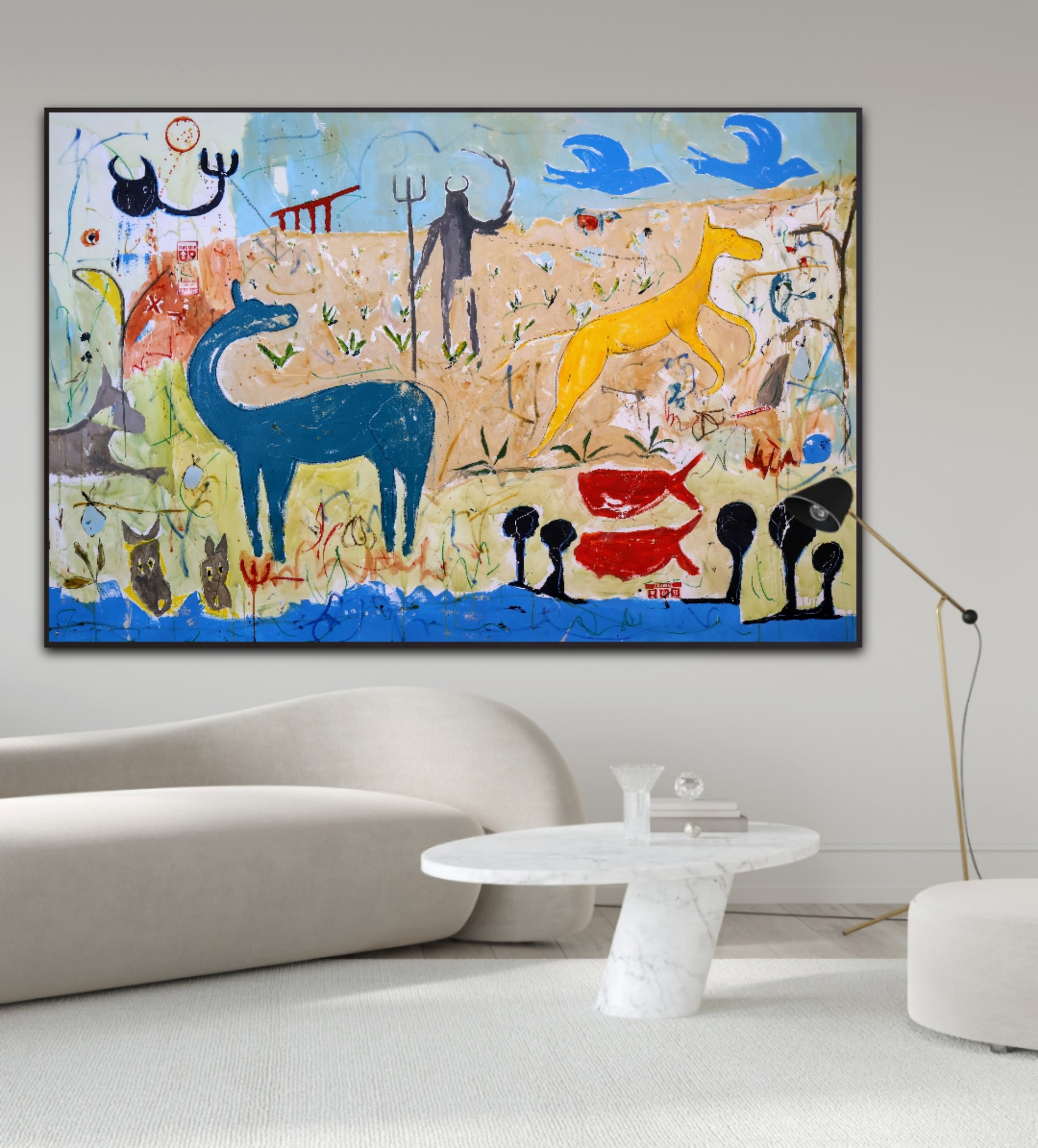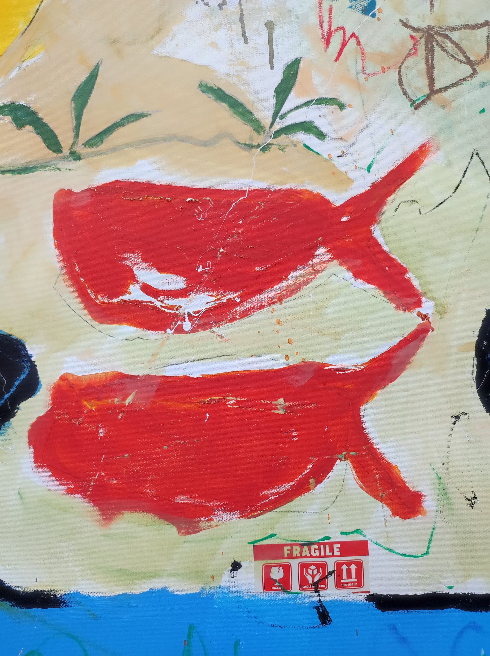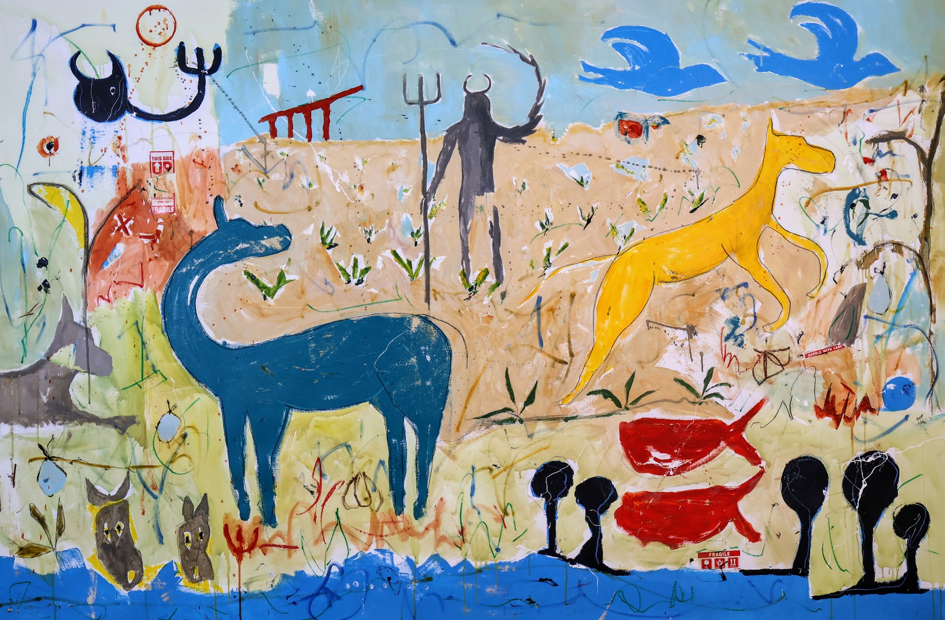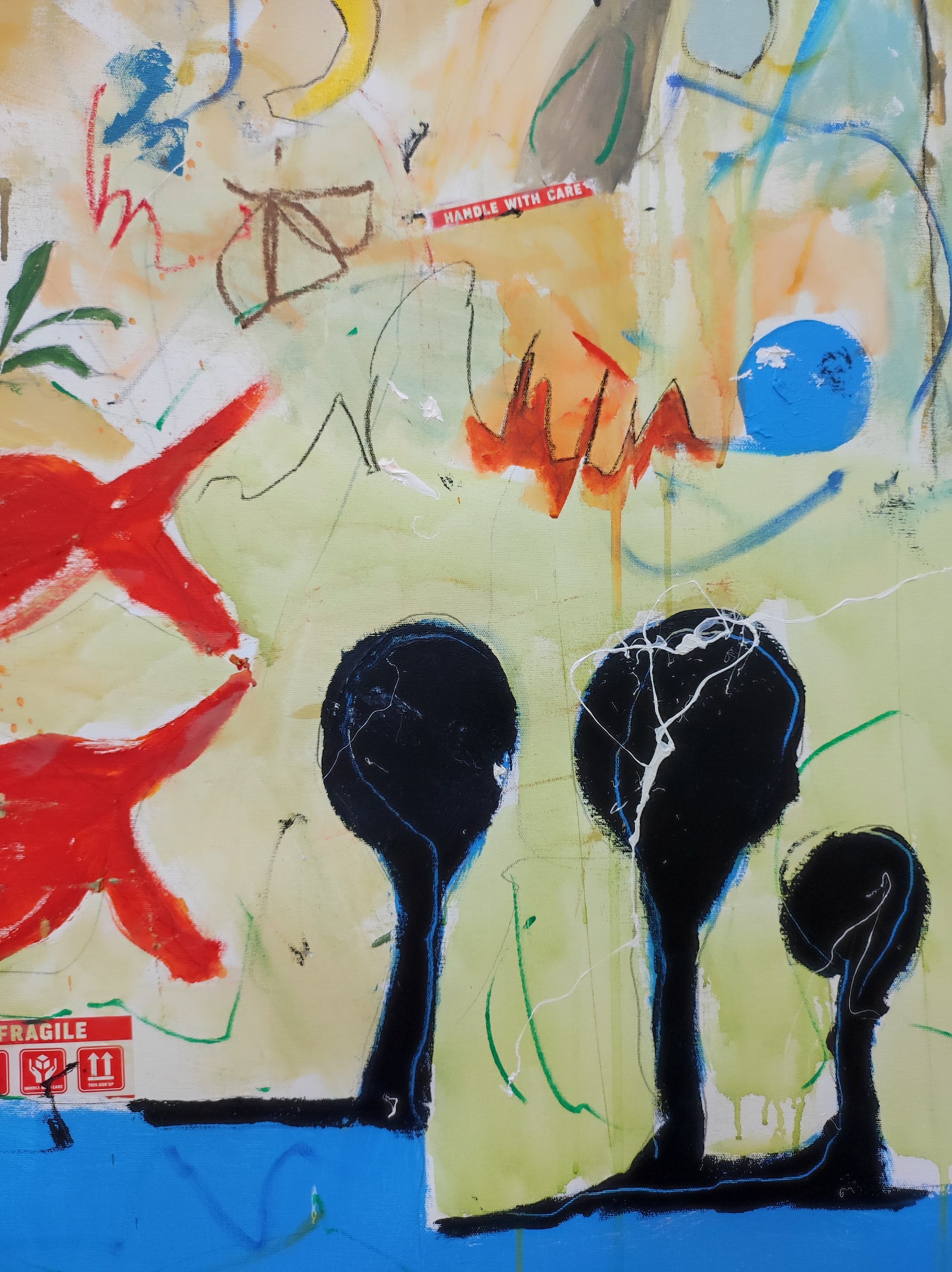 Técnica: acrílico, pigmentos, lápiz, gesso y adhesivos.