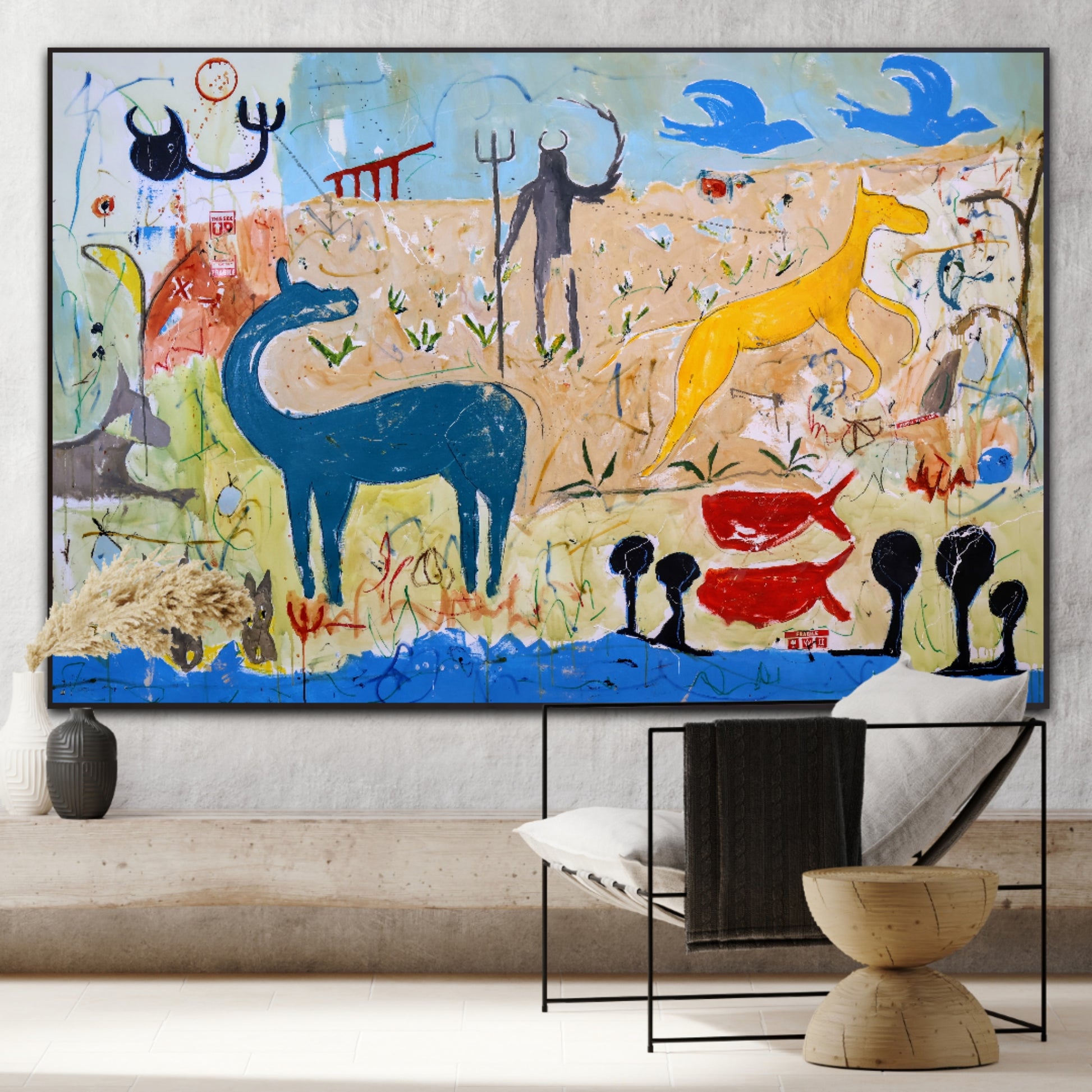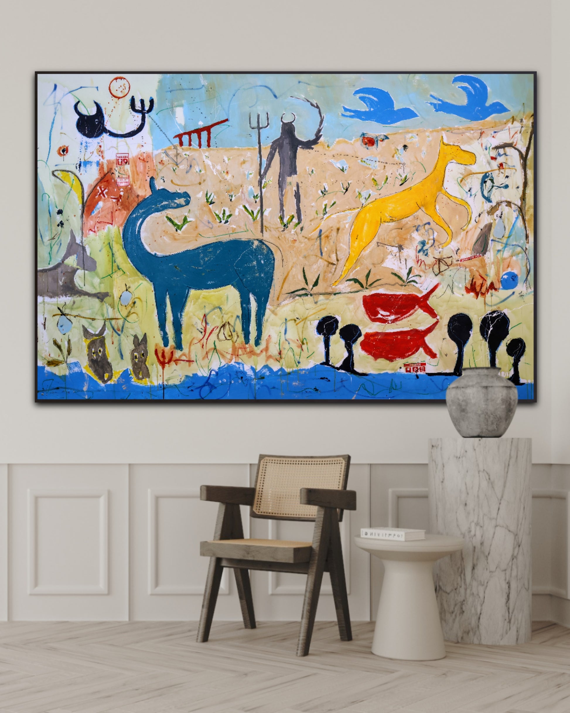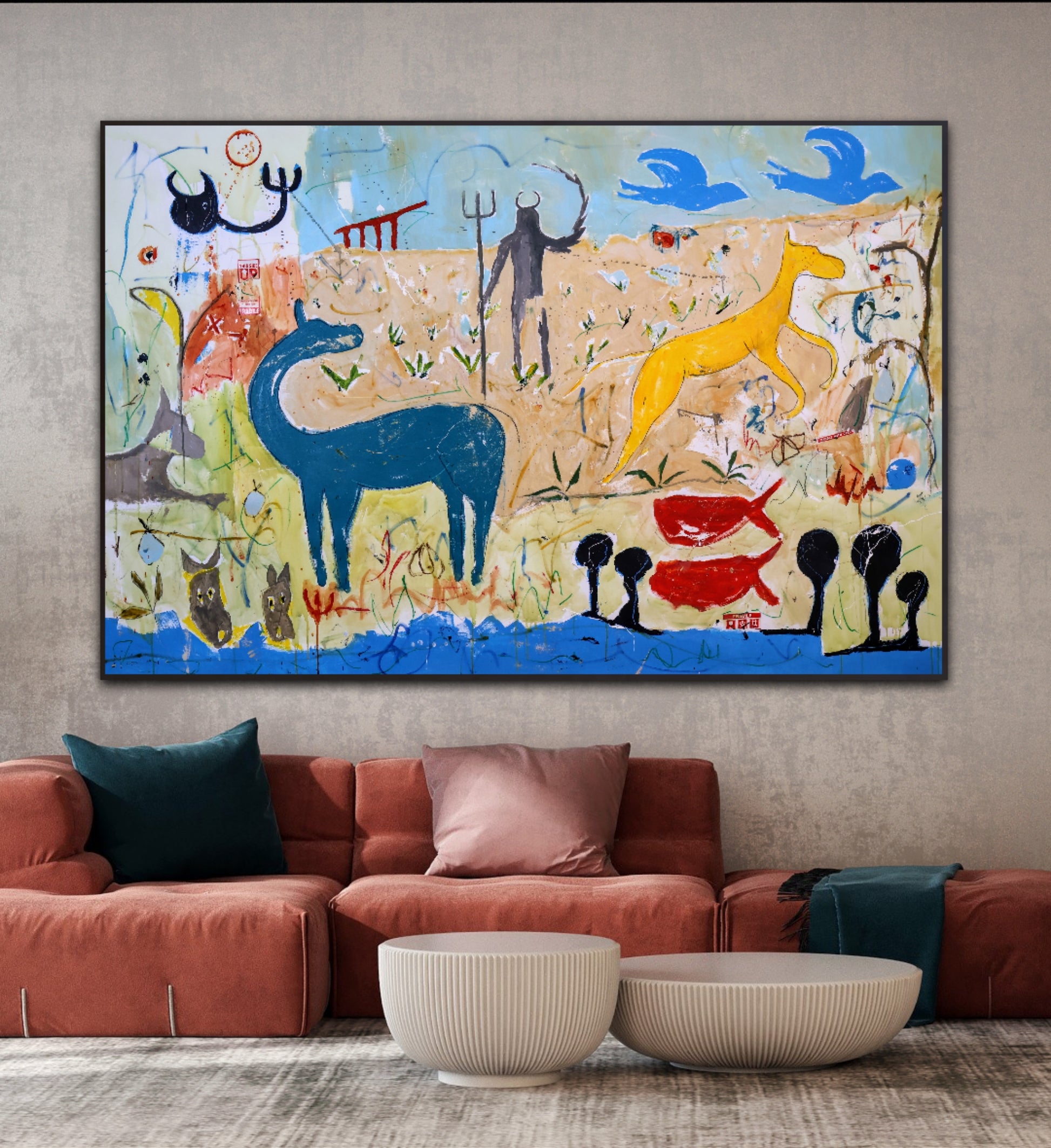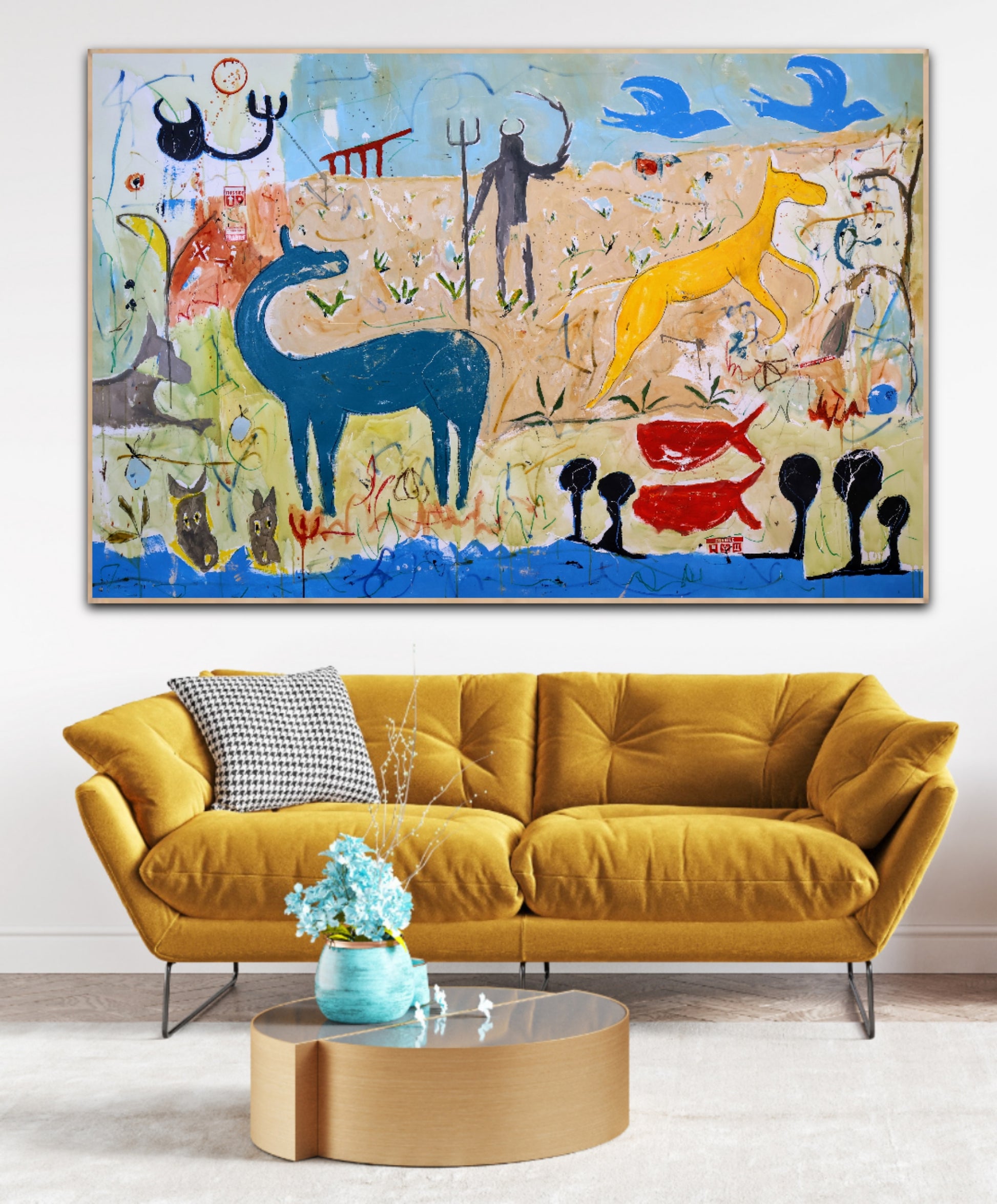 Técnica: acrílico, pigmentos, lápiz, gesso y adhesivos.