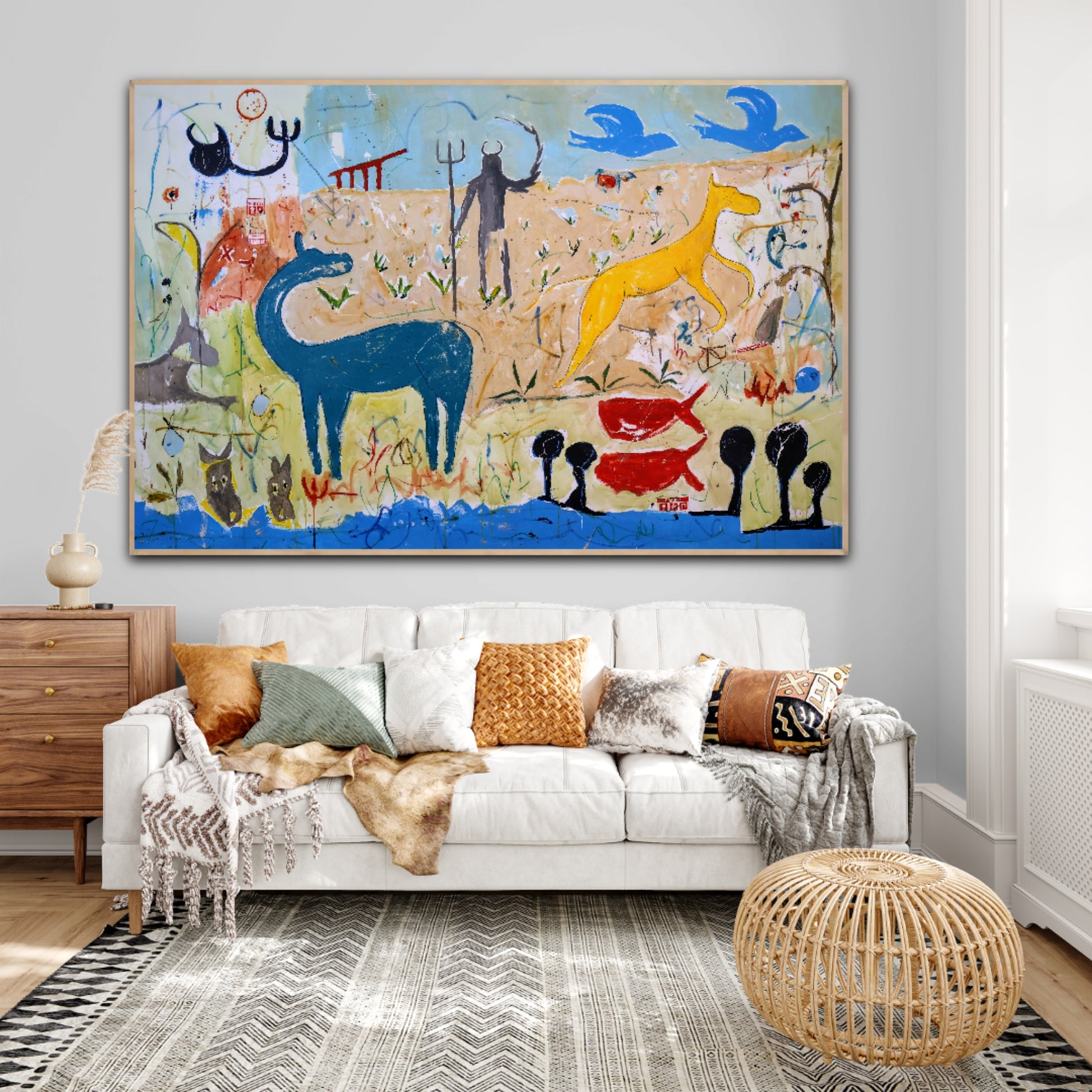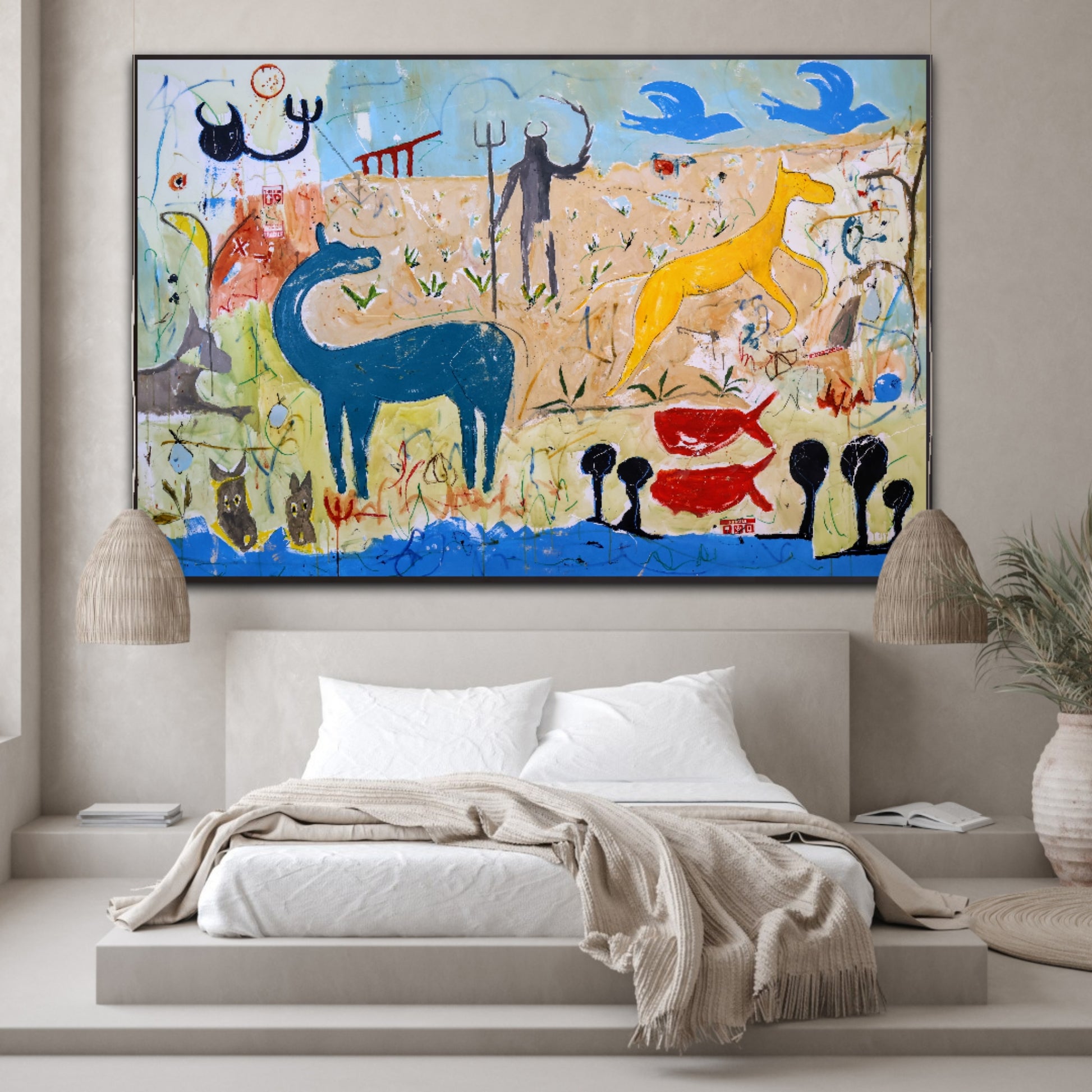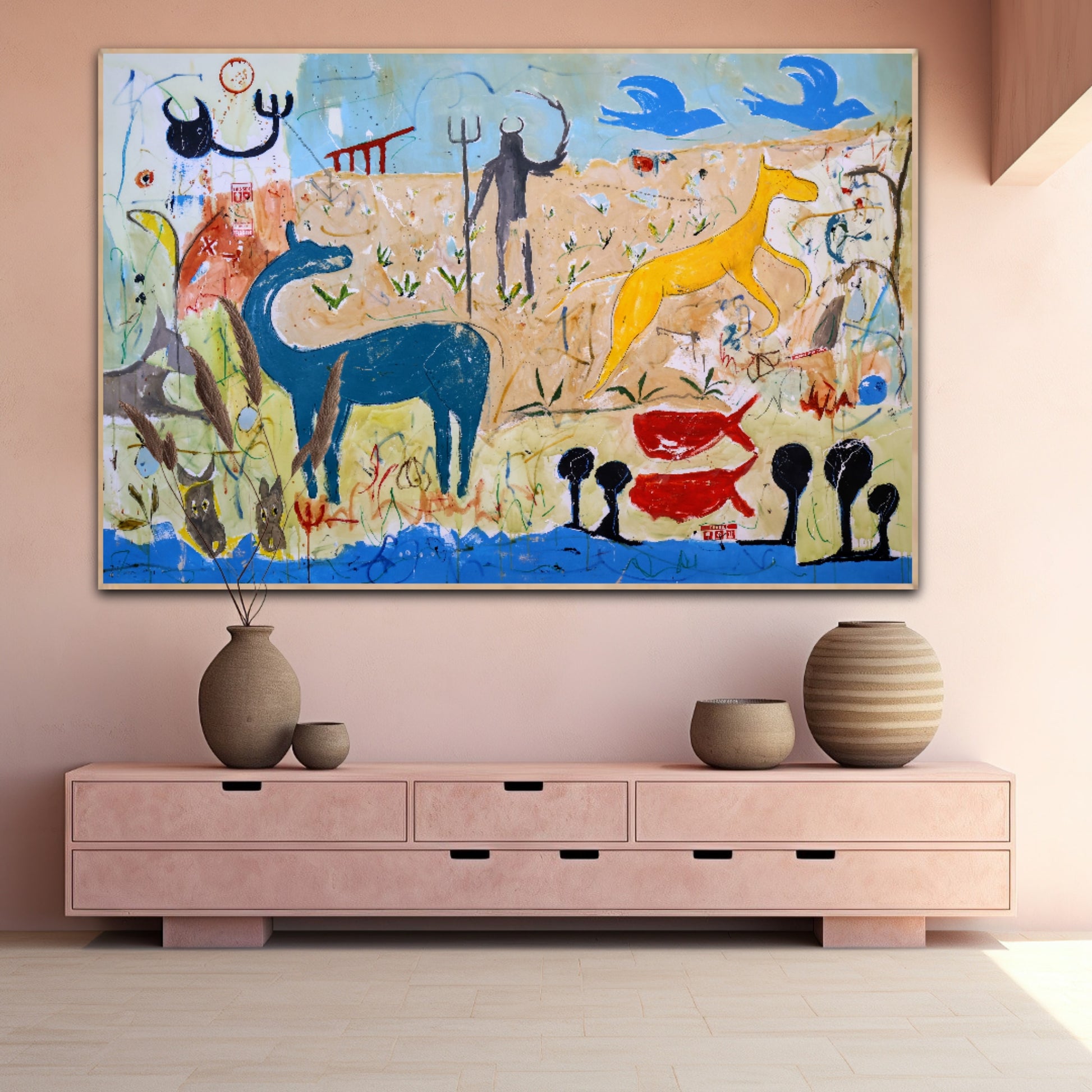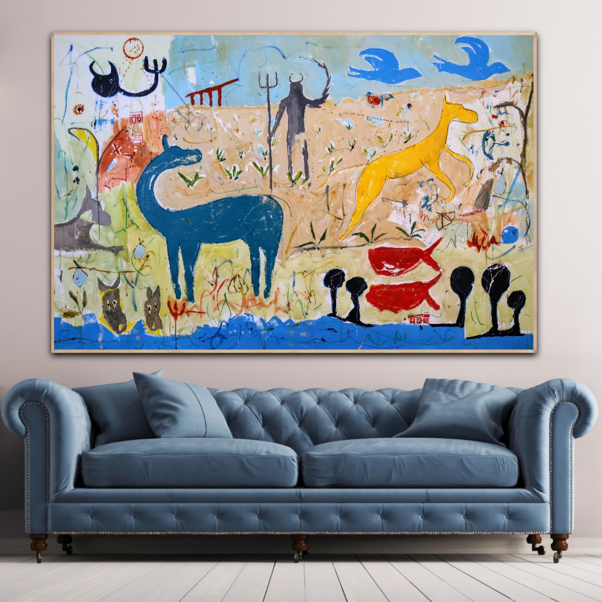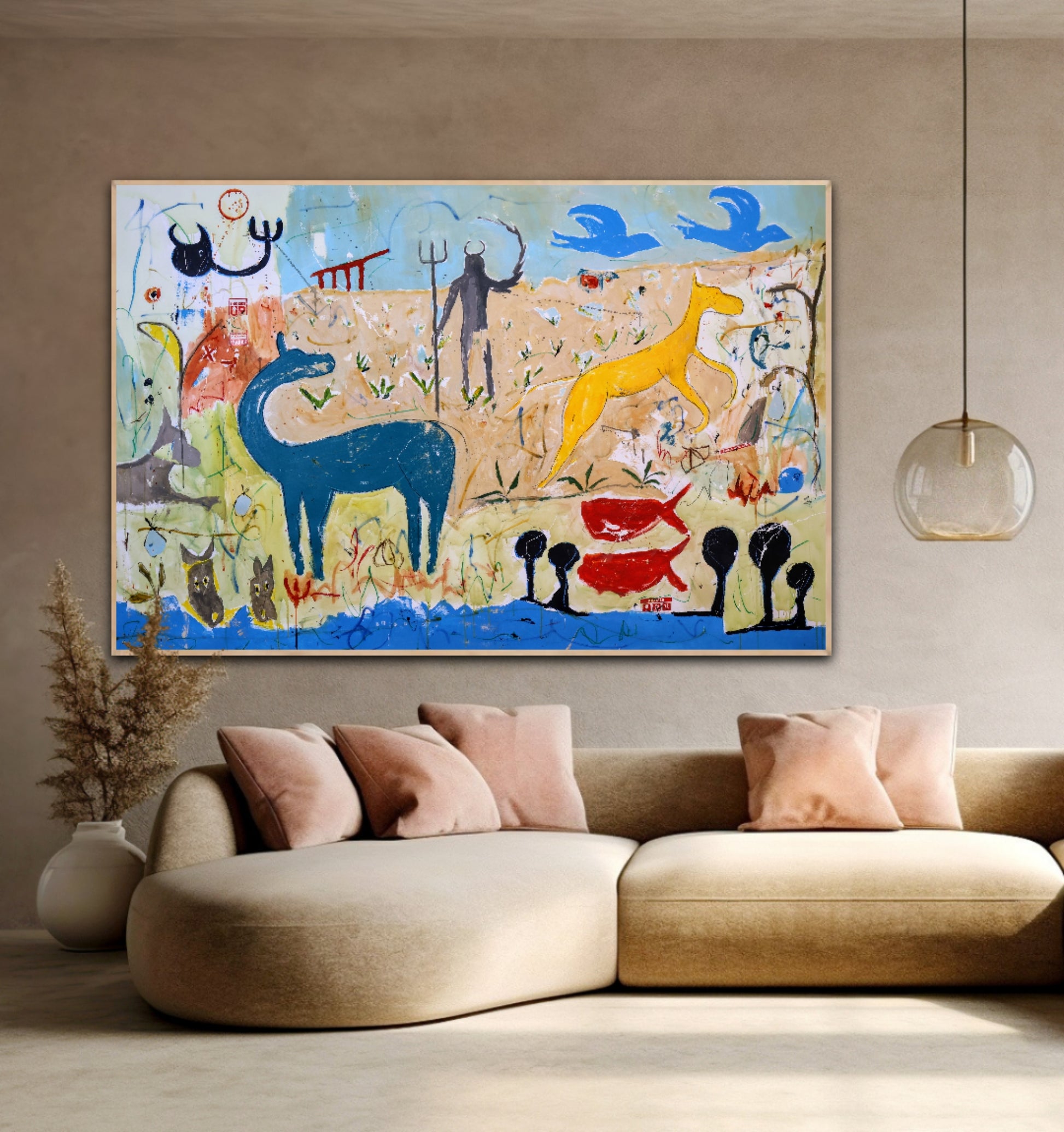 Técnica: acrílico, pigmentos, lápiz, gesso y adhesivos.