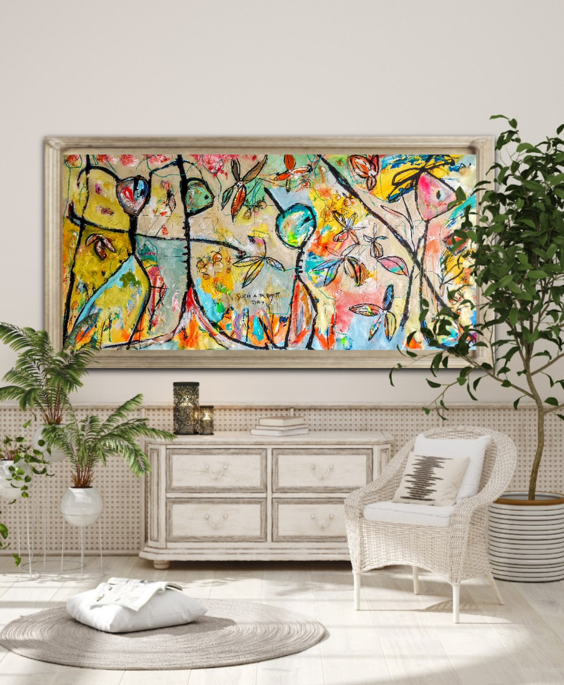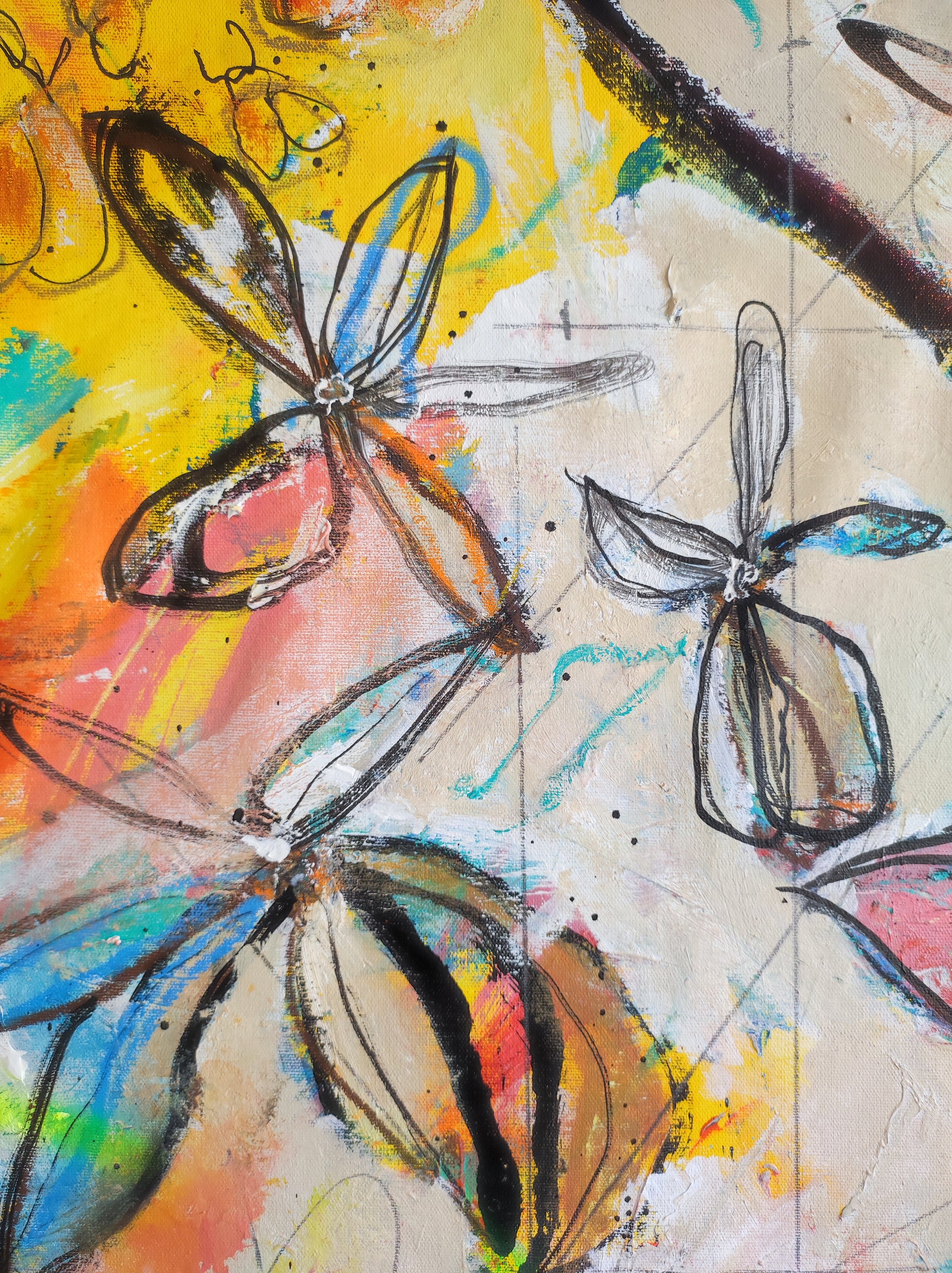 Técnica: mixed media: acrílico, tinta china, gesso, ceras y carboncillo.