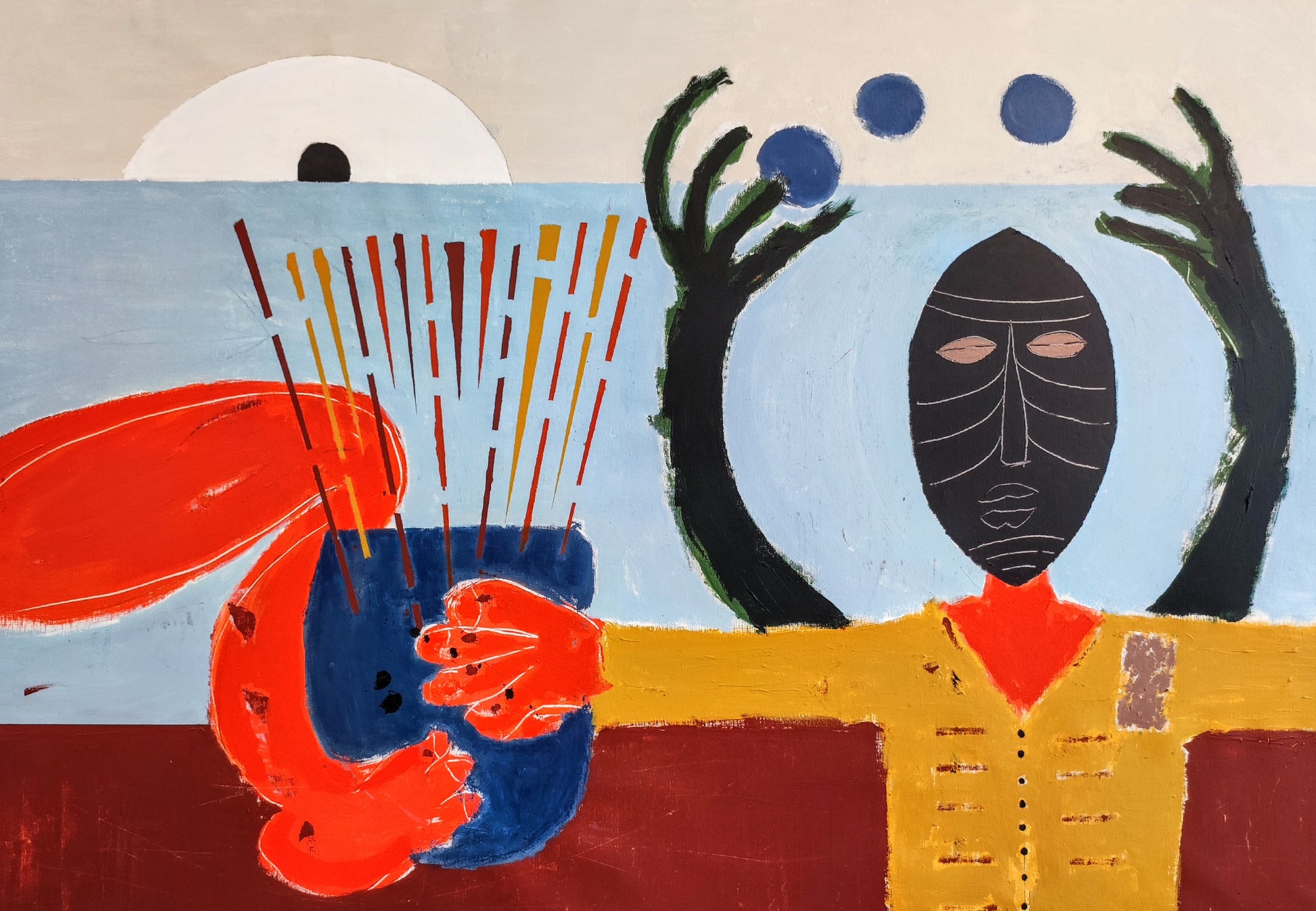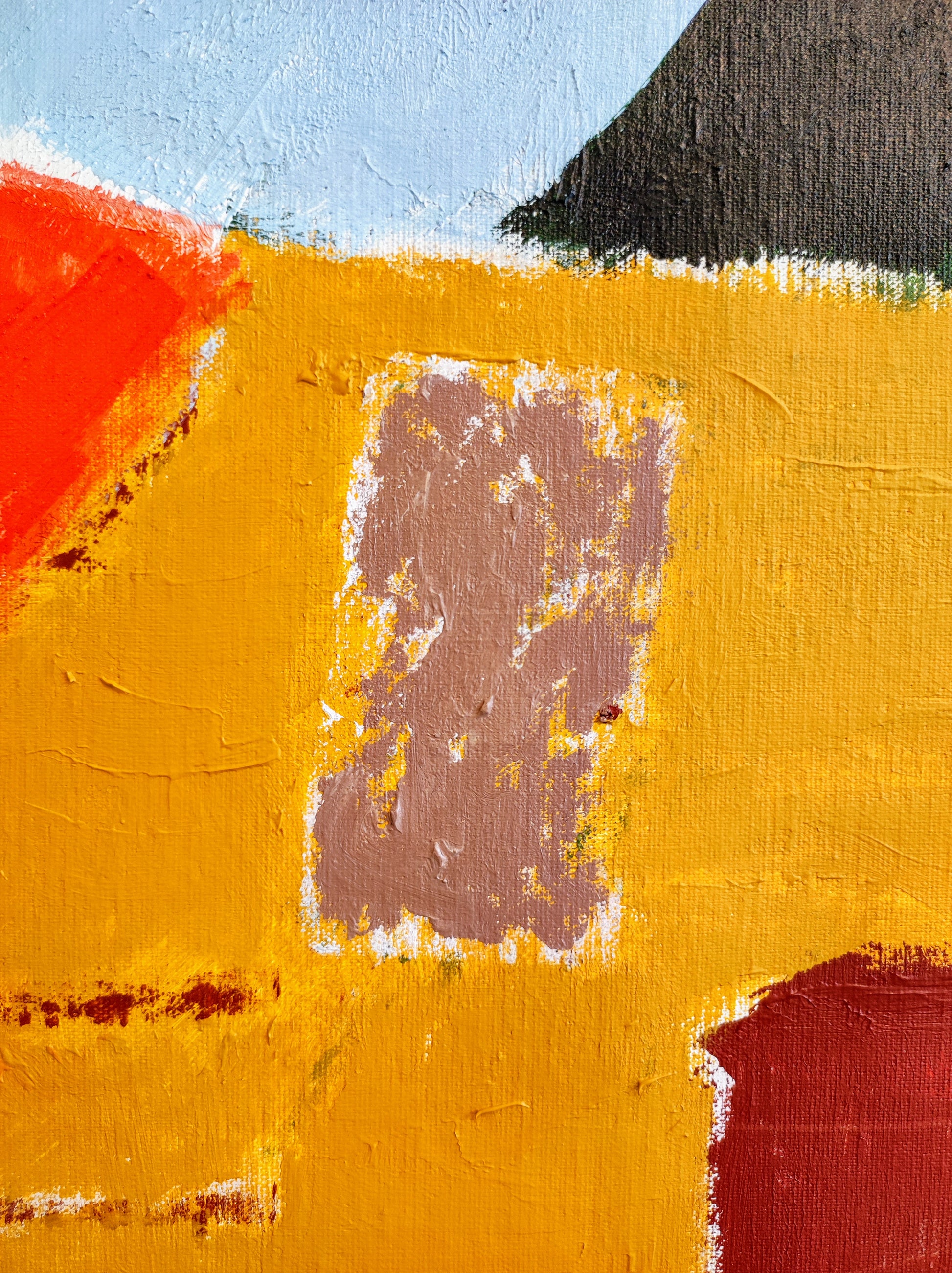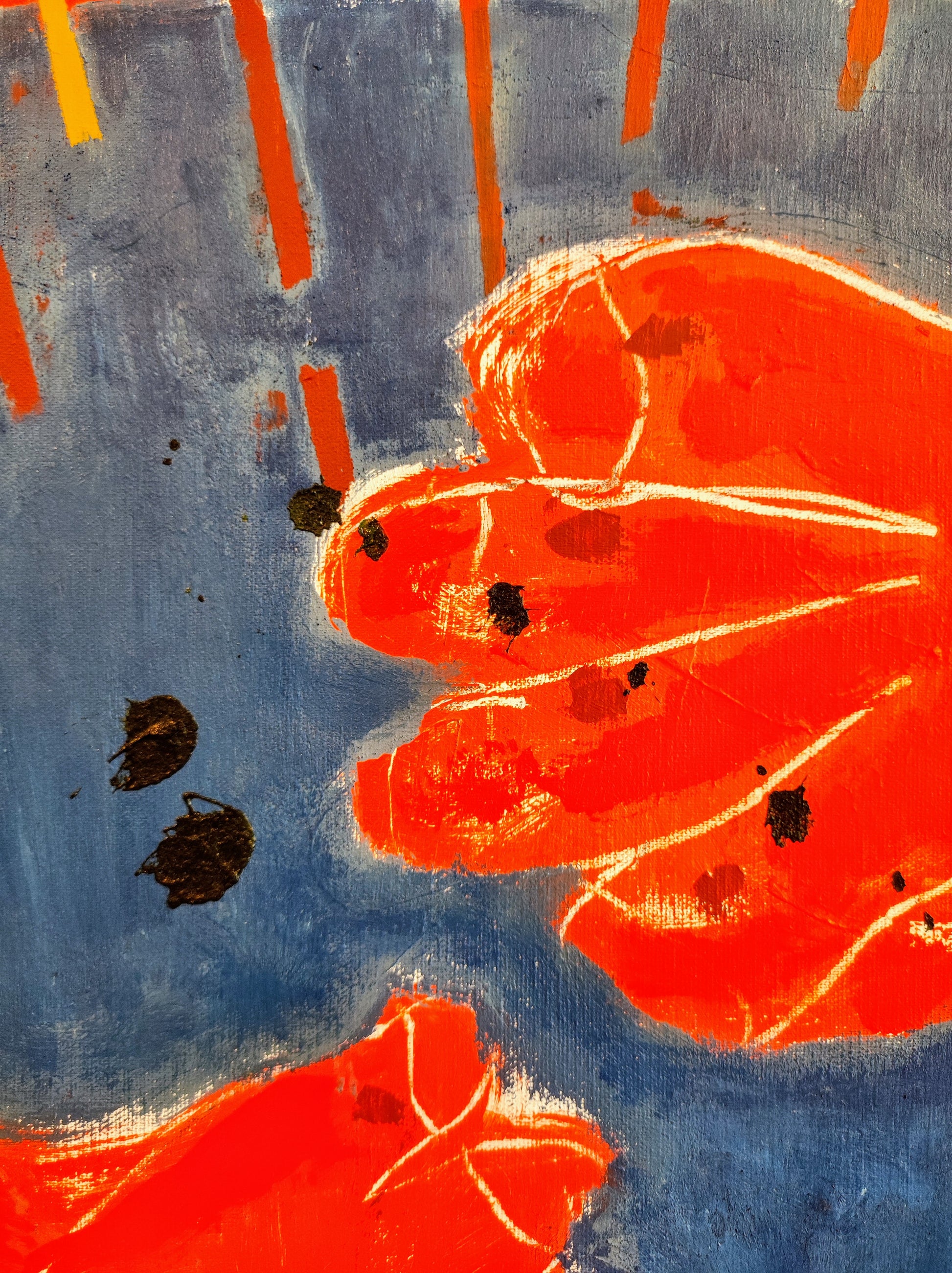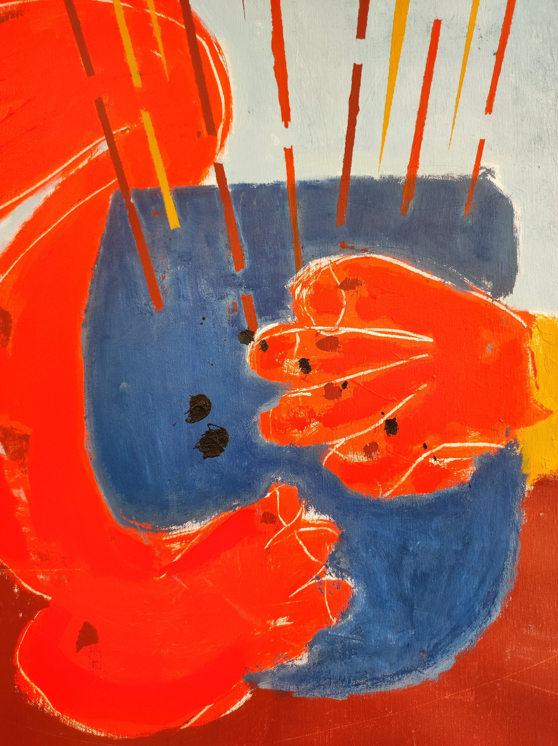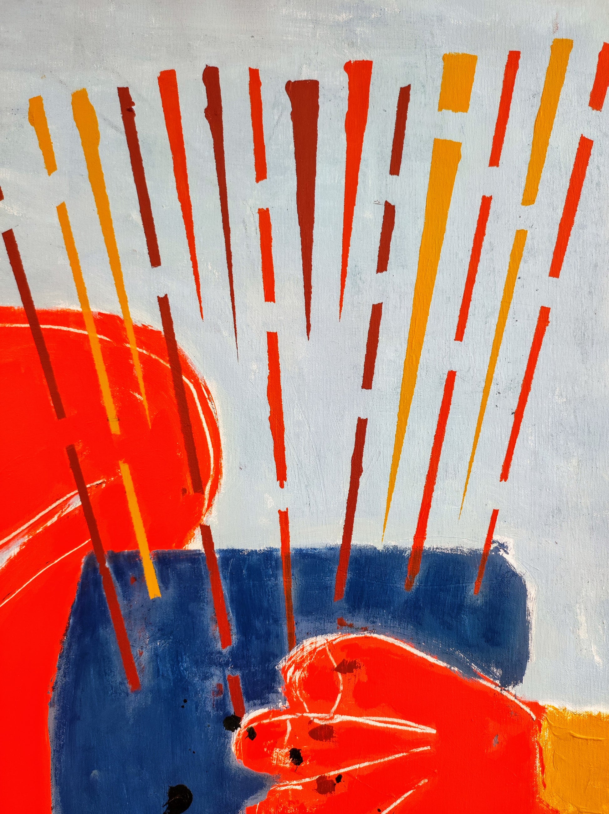 Pintura gestual, intuitiva, que deja que las cosas pasen y se apoya sobre lo que aparece. Aprovechando el accidente y aceptando las consecuencias.