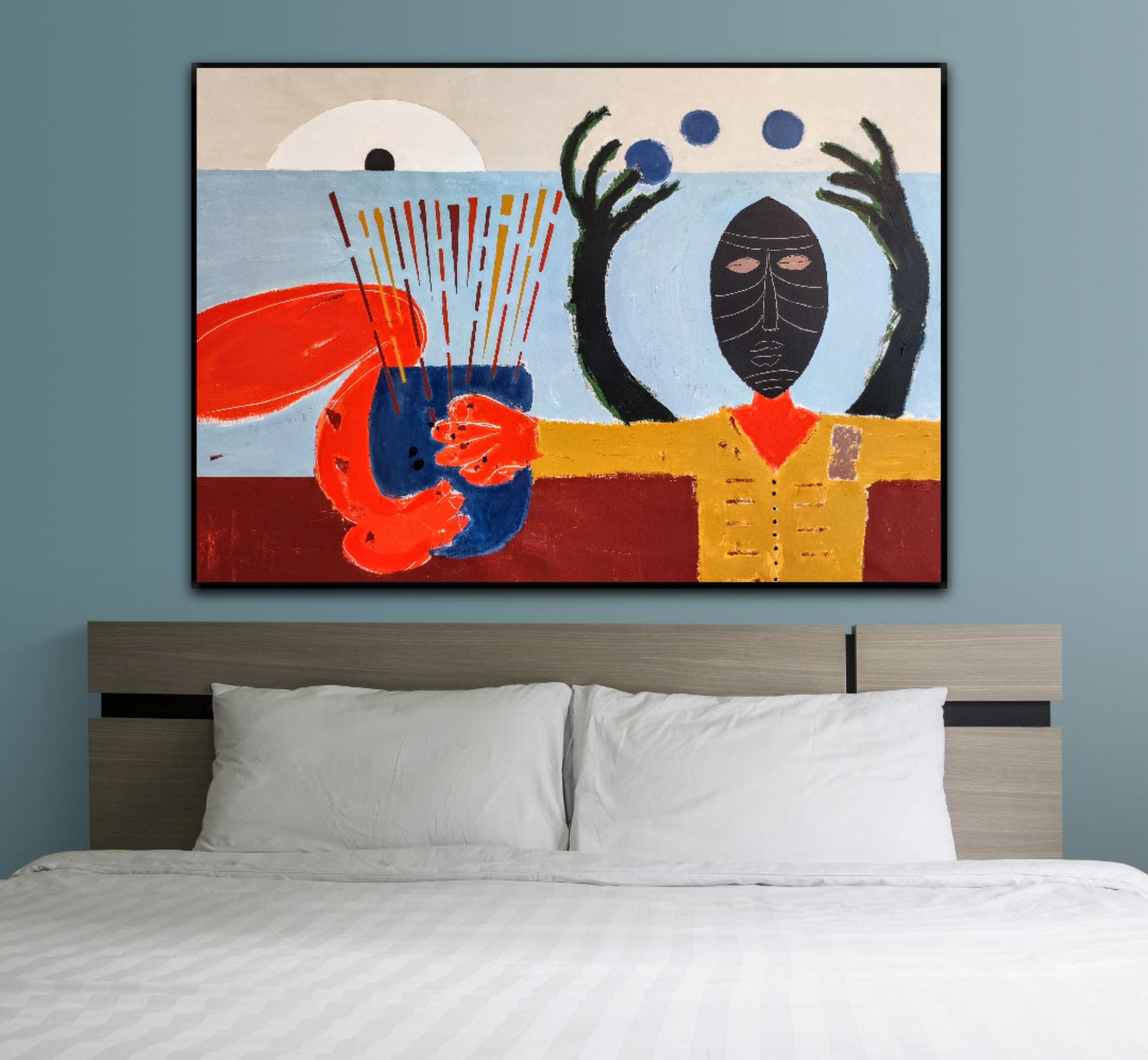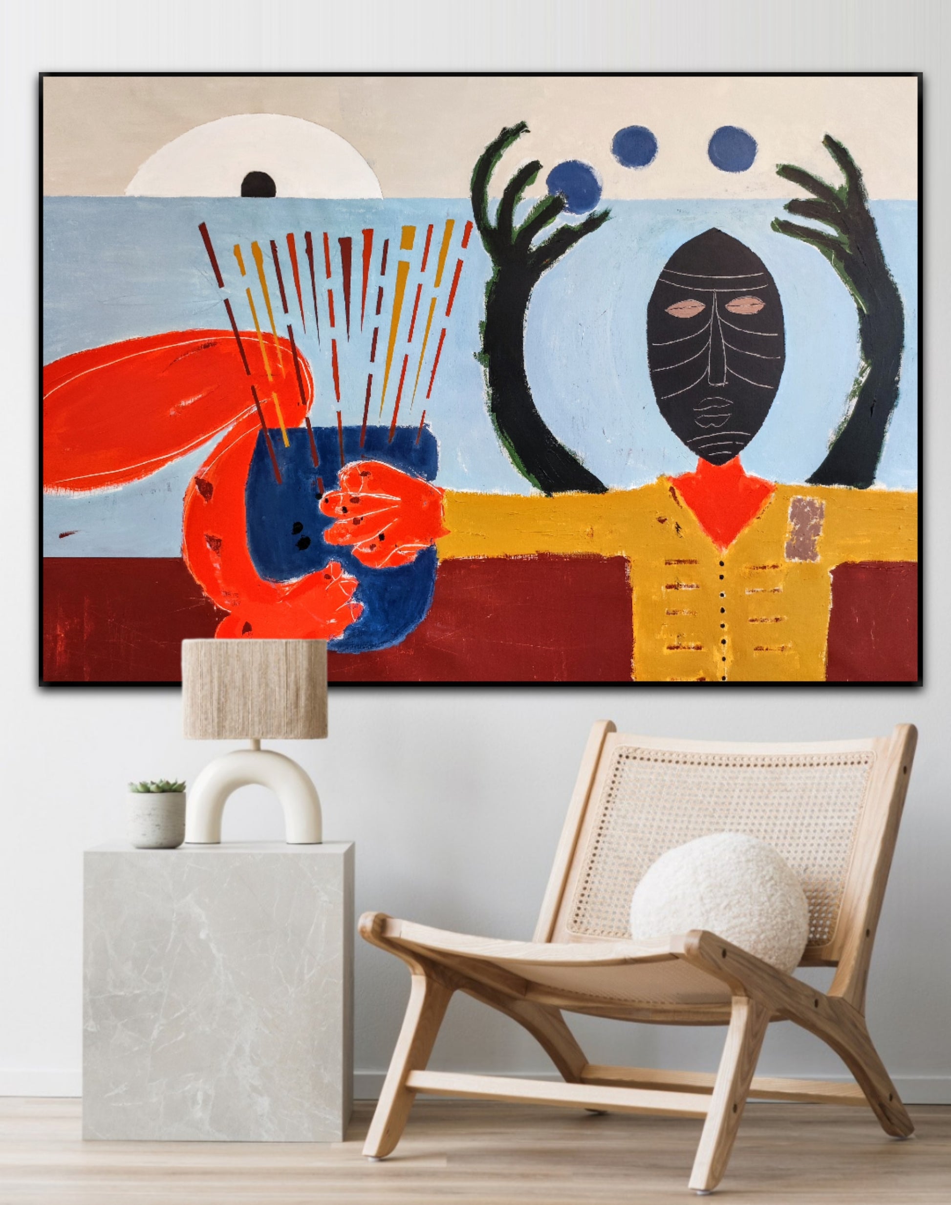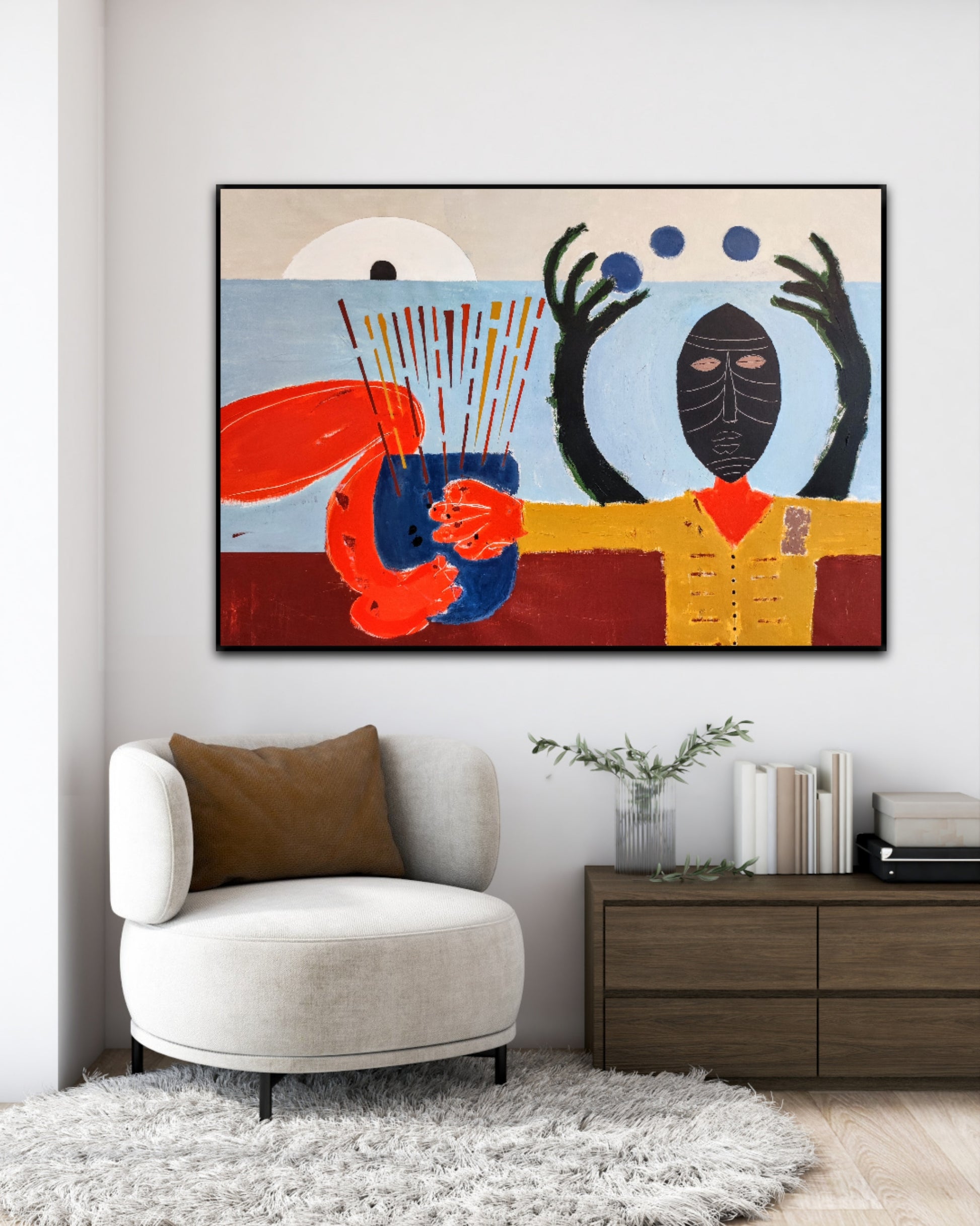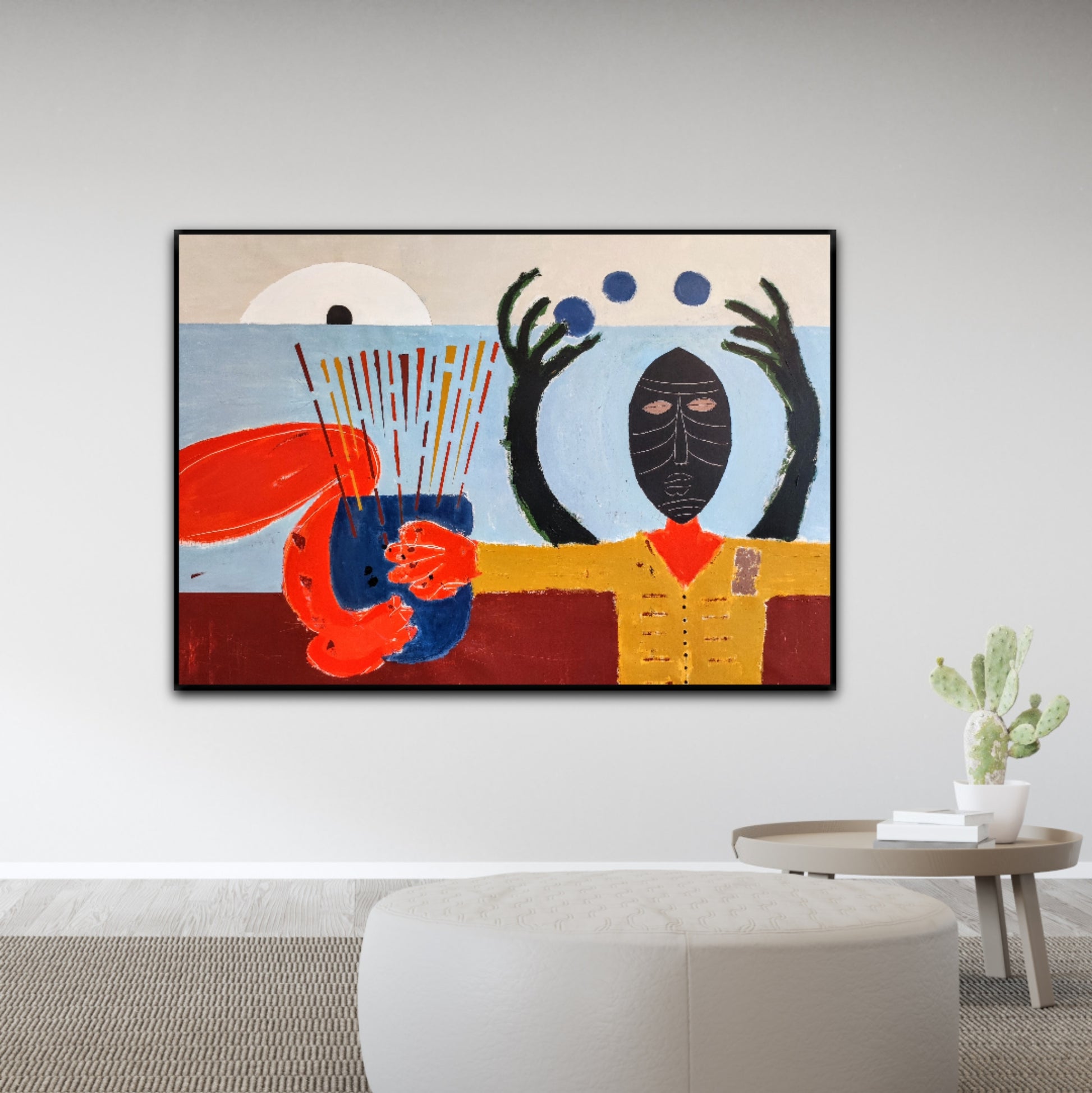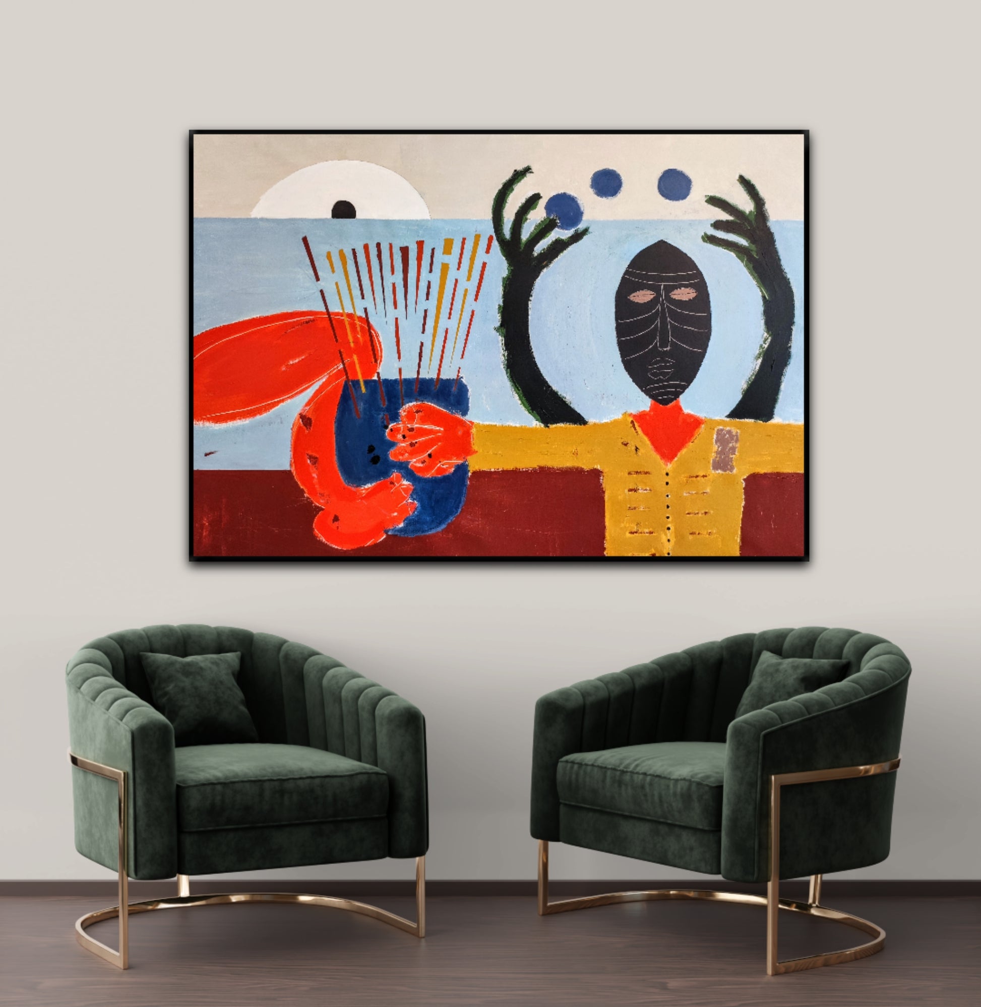 Pintura gestual, intuitiva, que deja que las cosas pasen y se apoya sobre lo que aparece. Aprovechando el accidente y aceptando las consecuencias.