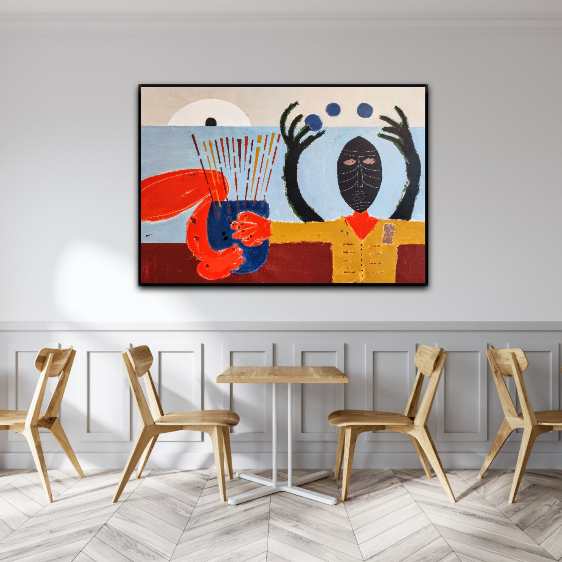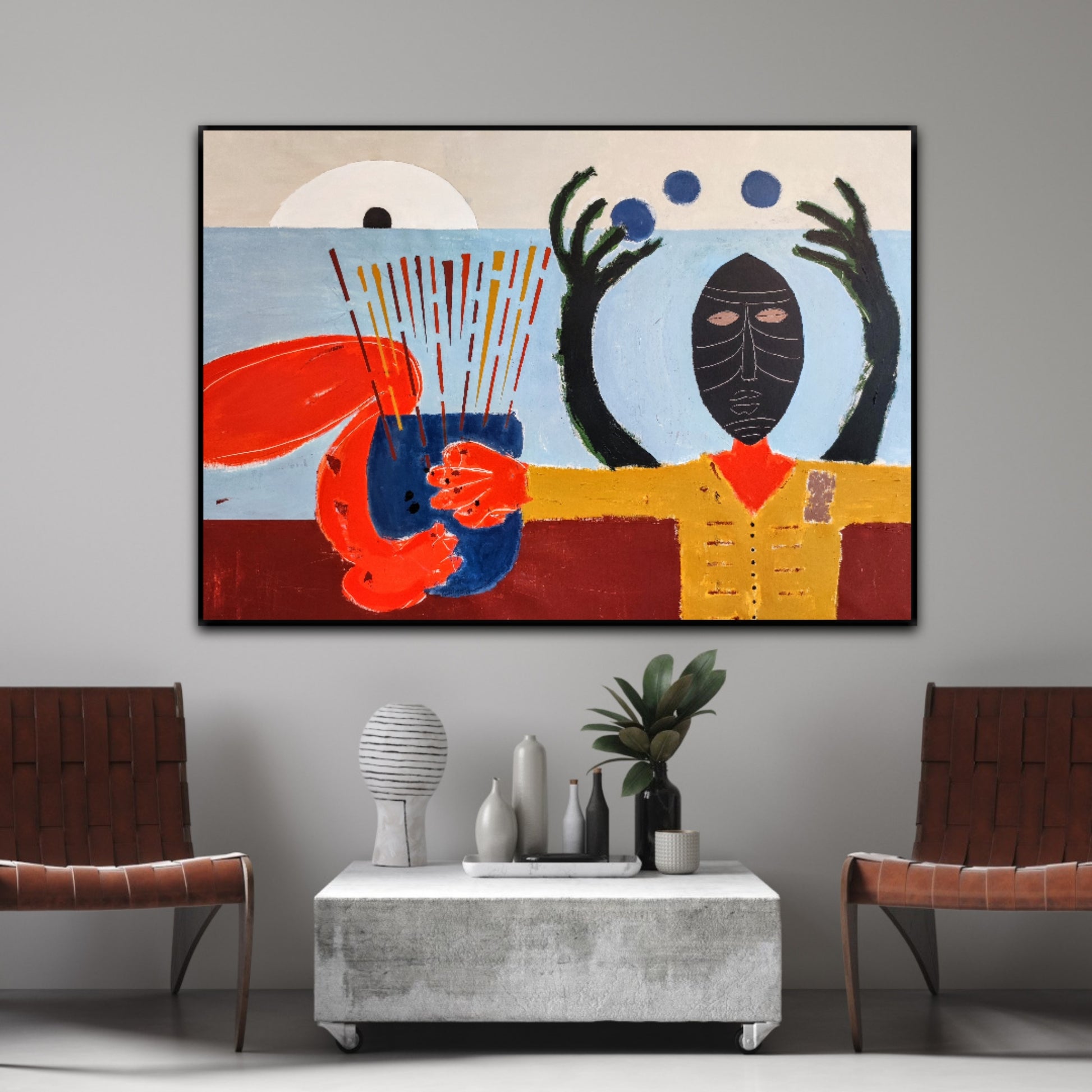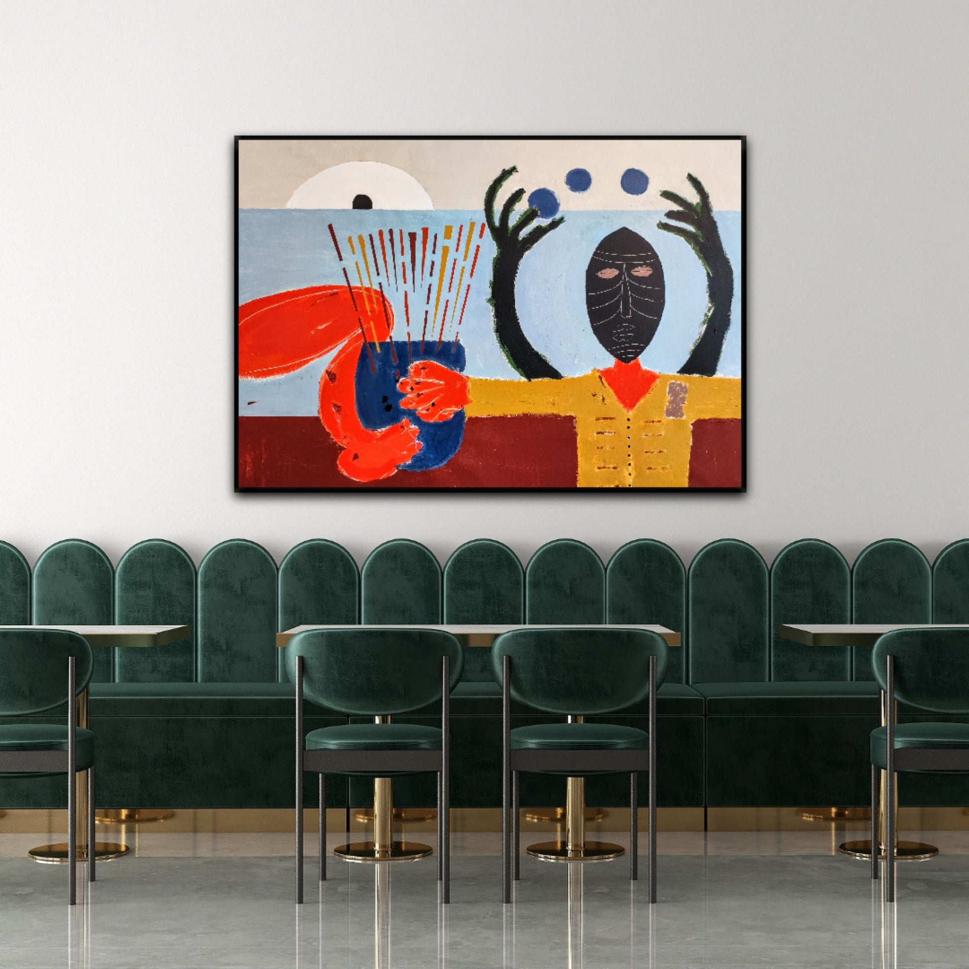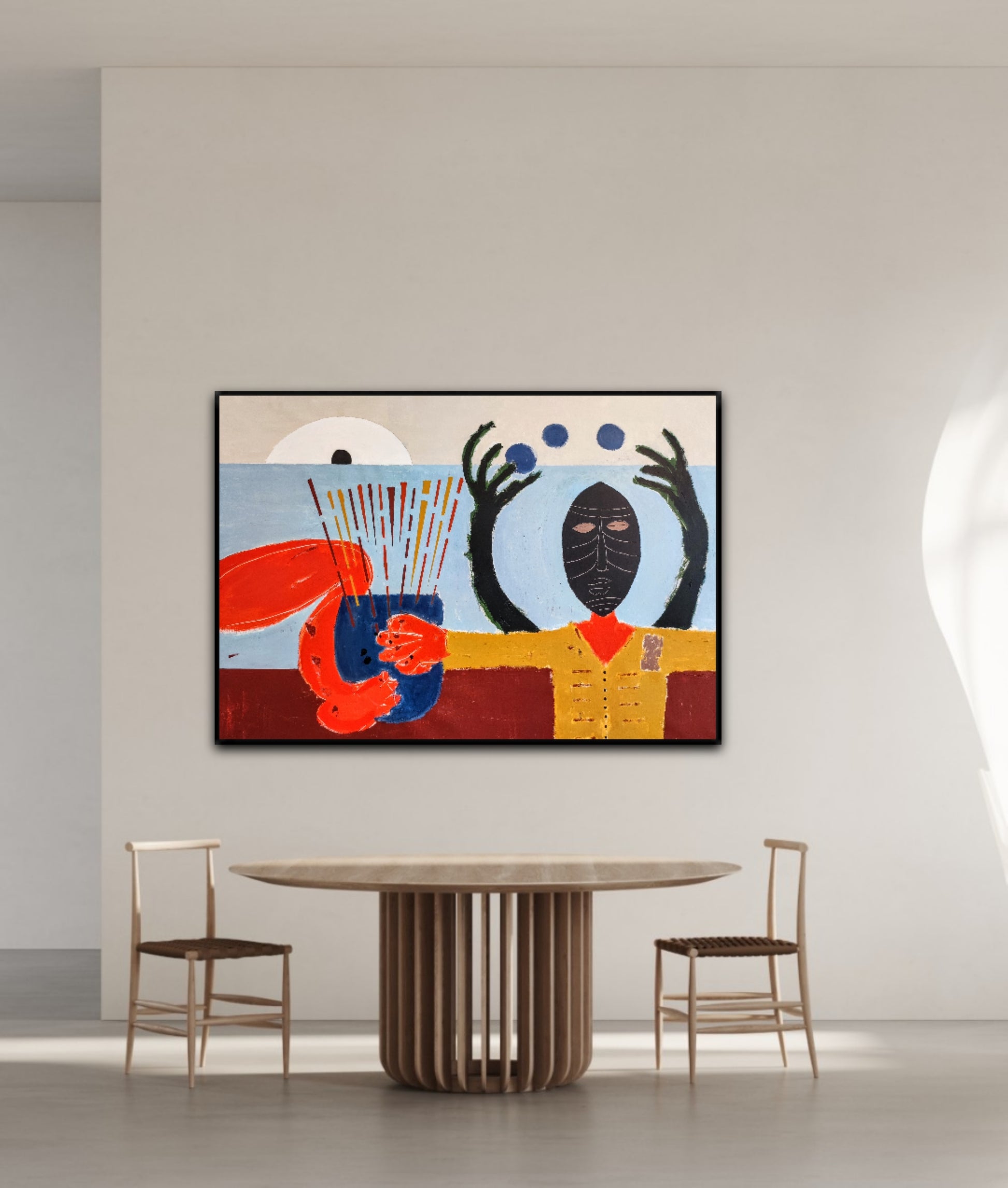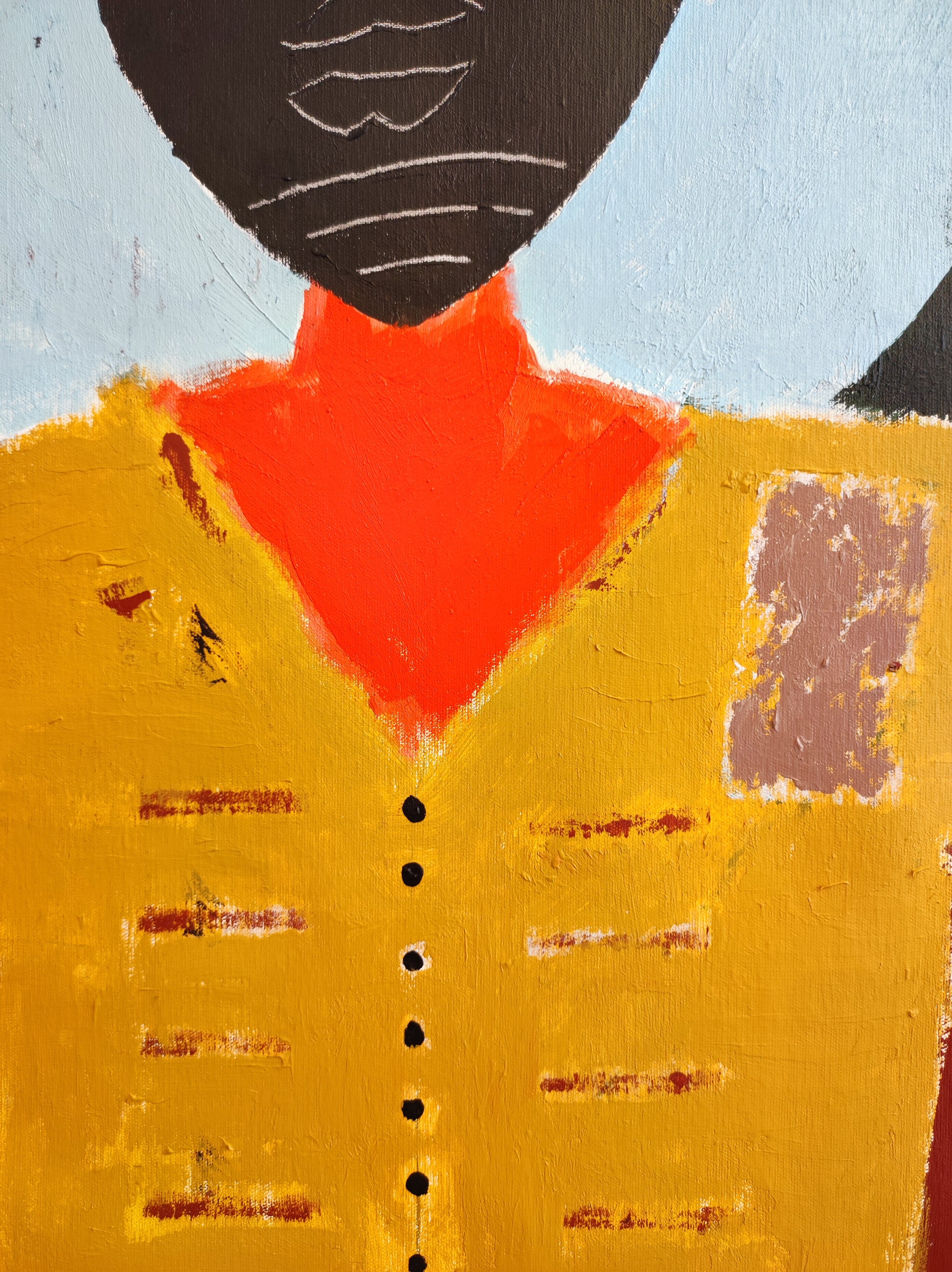 Pintura gestual, intuitiva, que deja que las cosas pasen y se apoya sobre lo que aparece. Aprovechando el accidente y aceptando las consecuencias.