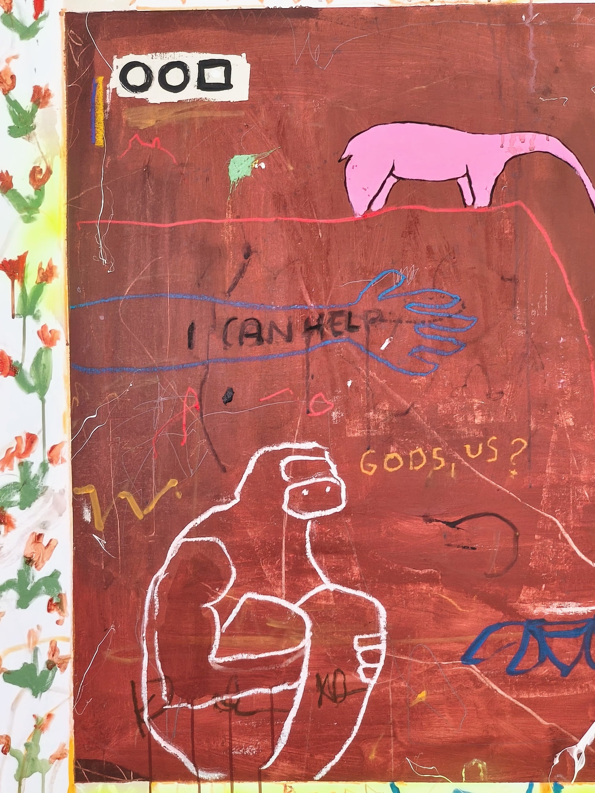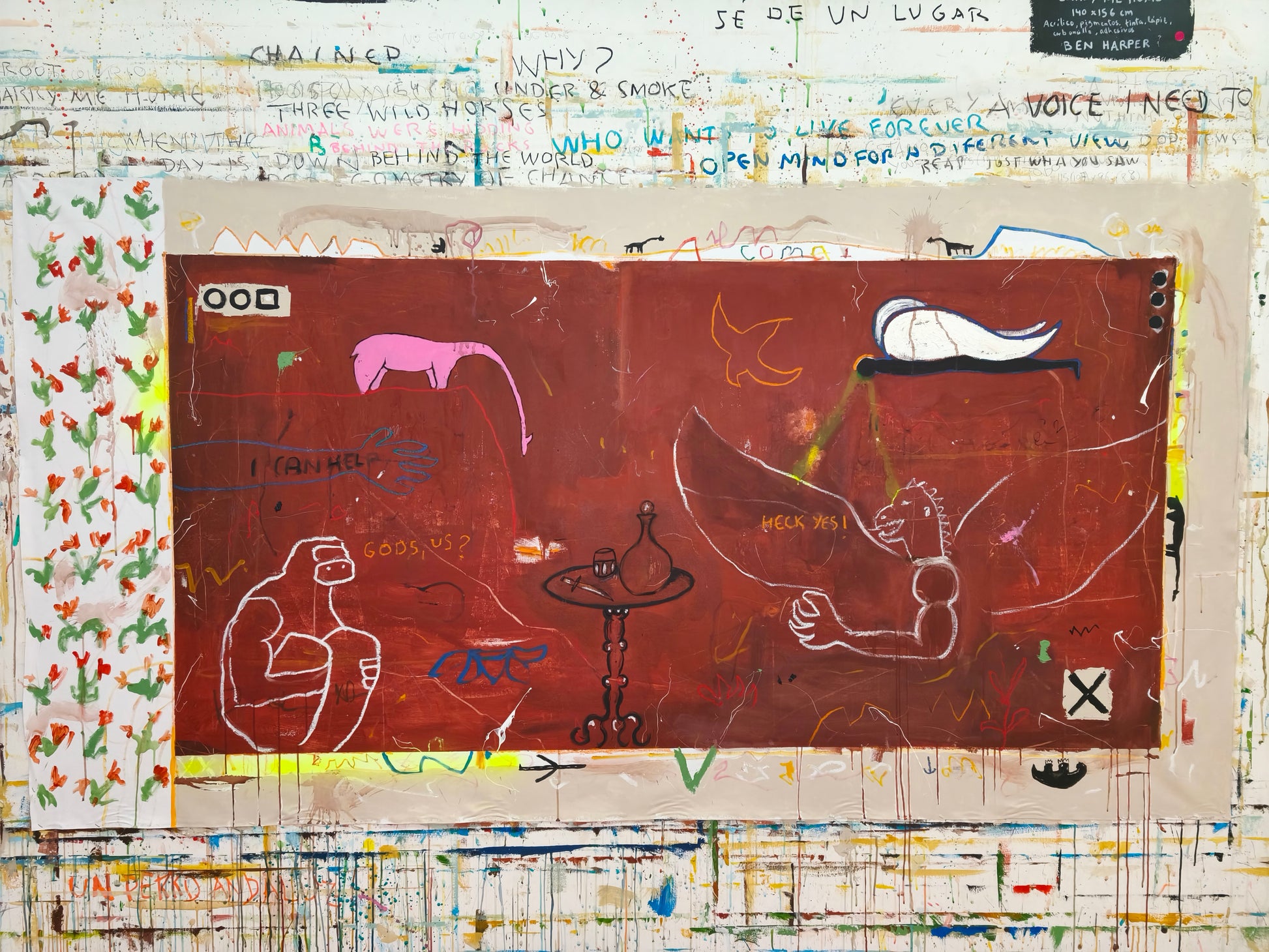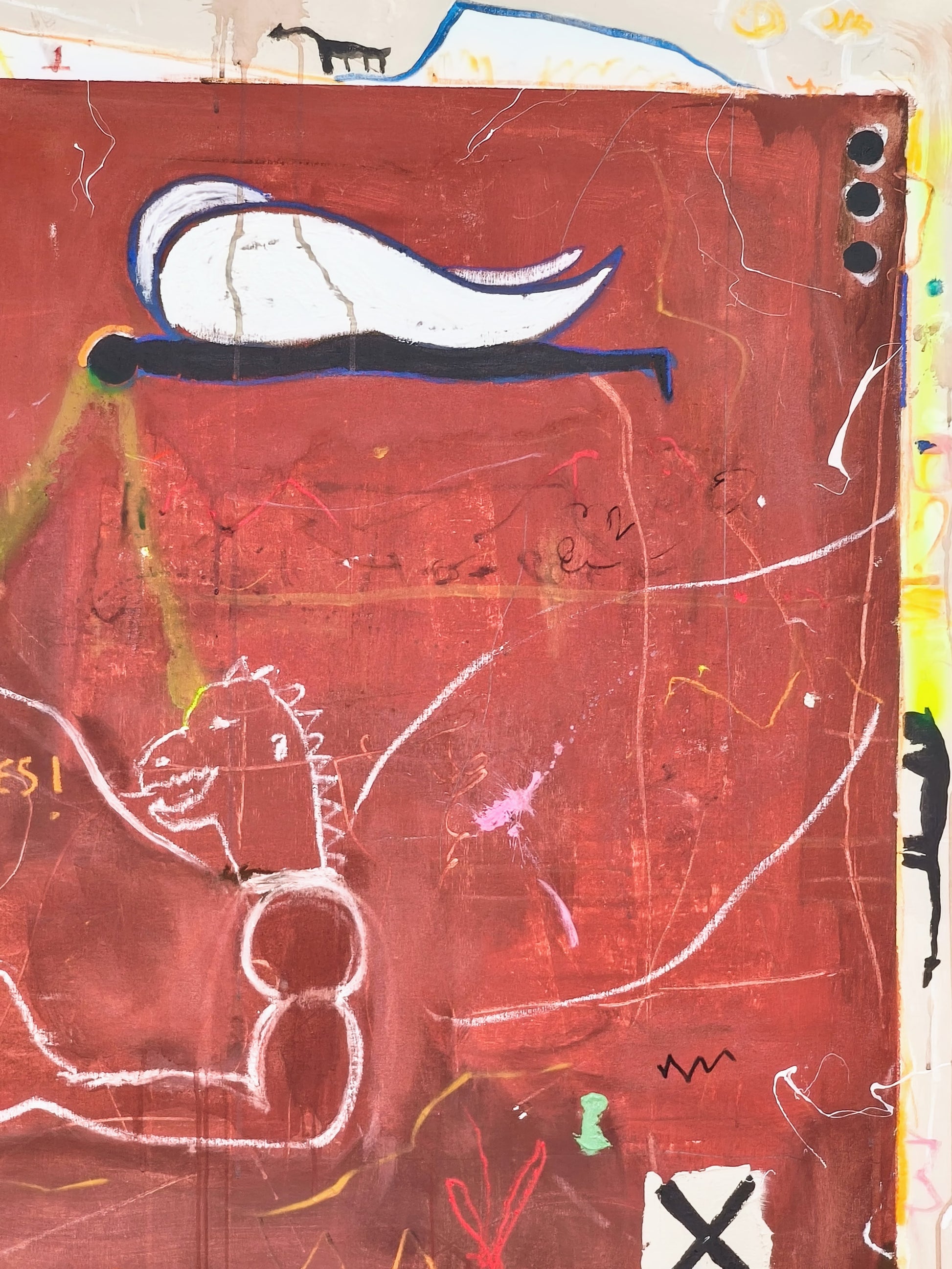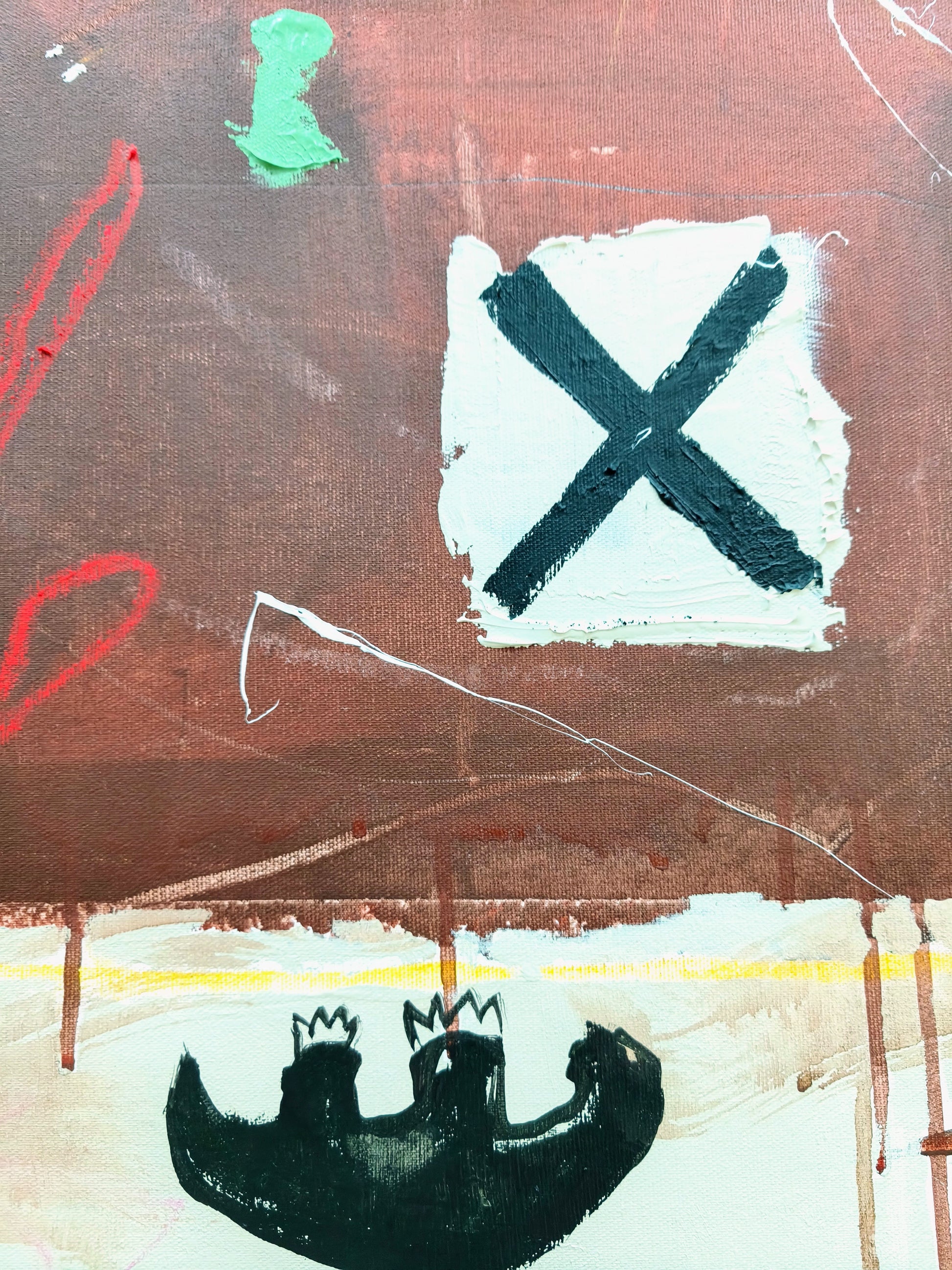 Técnica: acrílico, pigmentos, lápiz, carboncillo, gesso, stick oil.