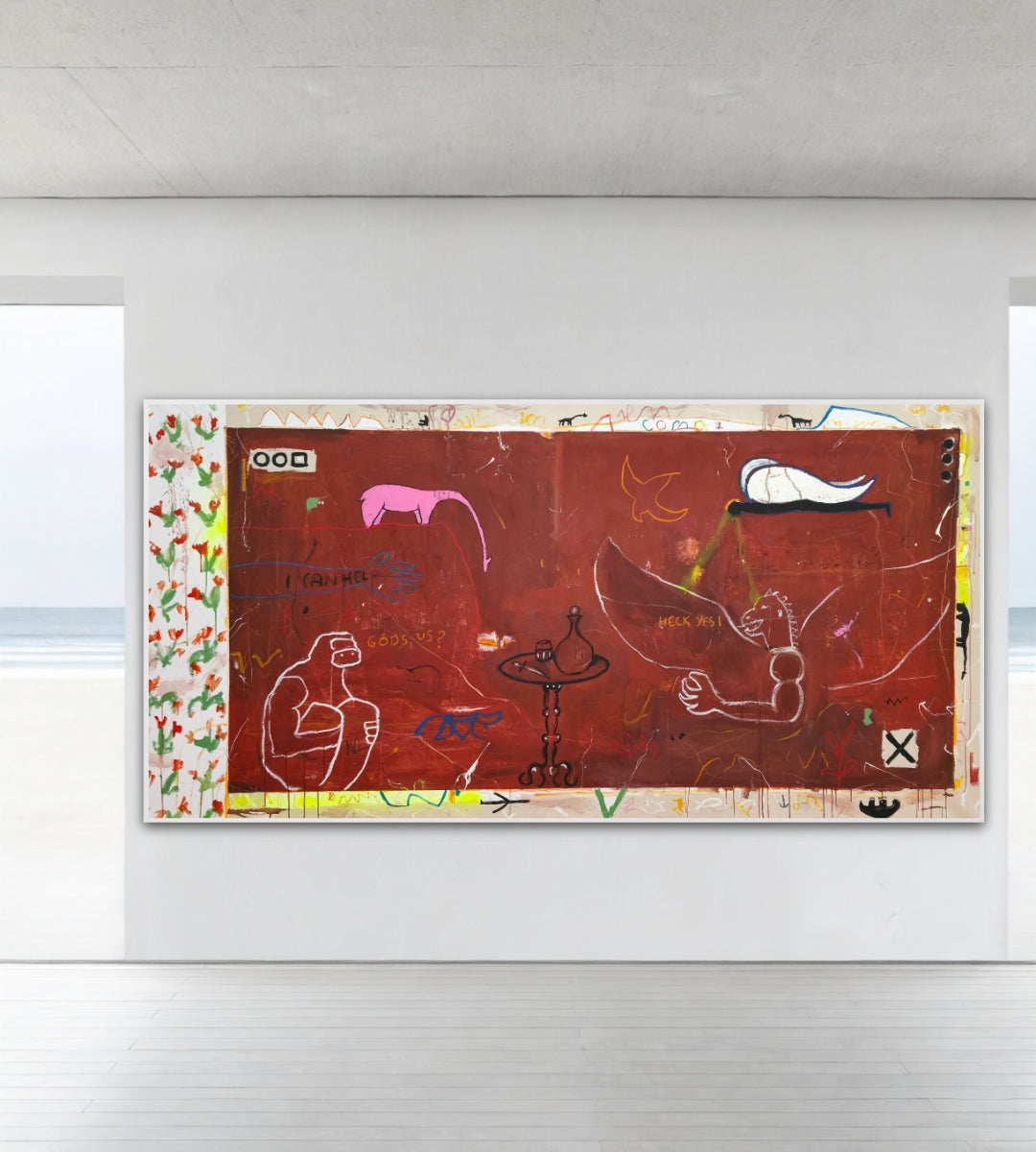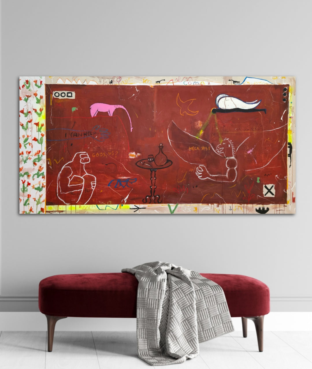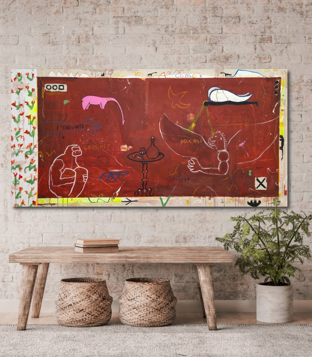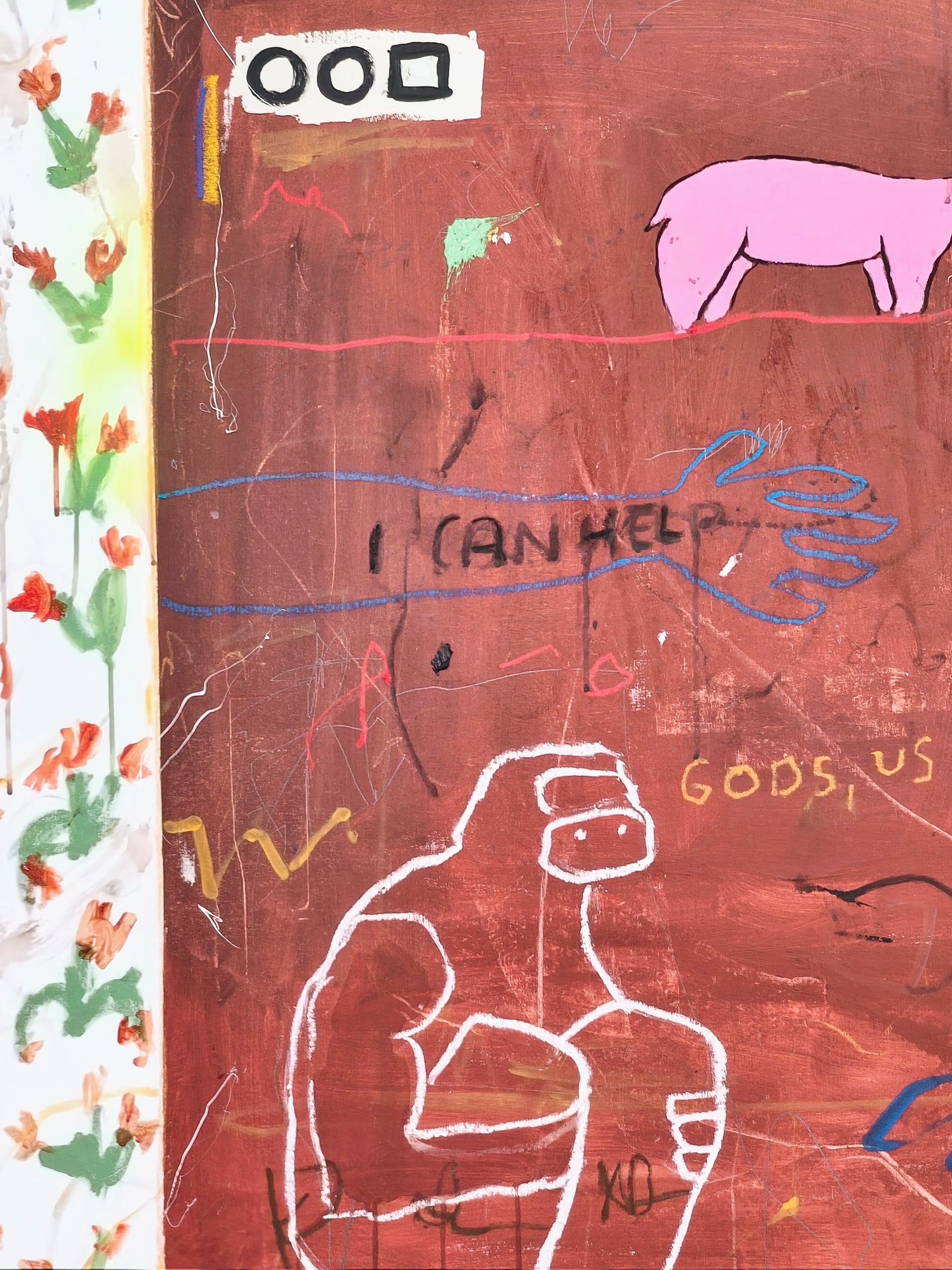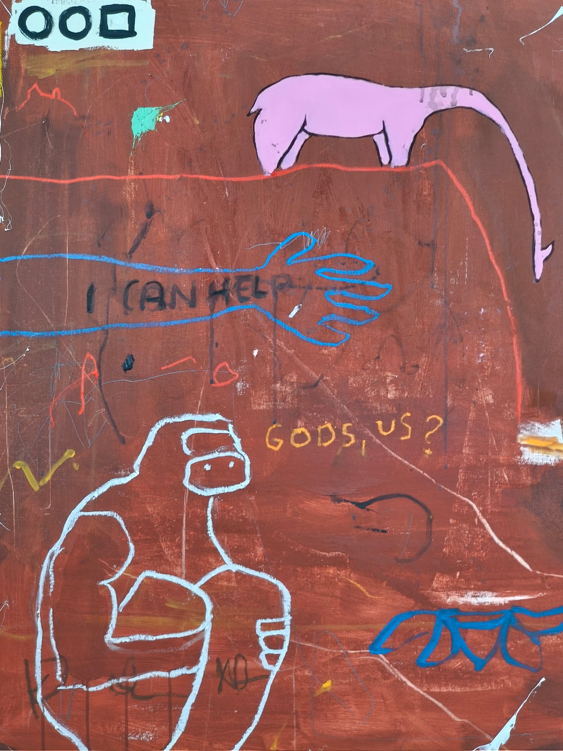 Técnica: acrílico, pigmentos, lápiz, carboncillo, gesso, stick oil.