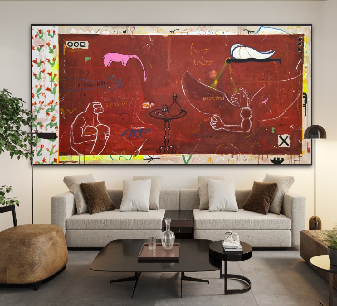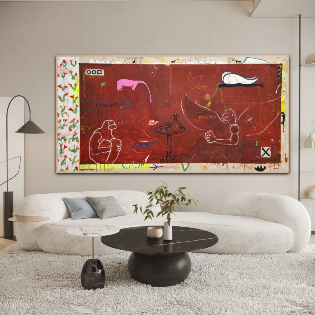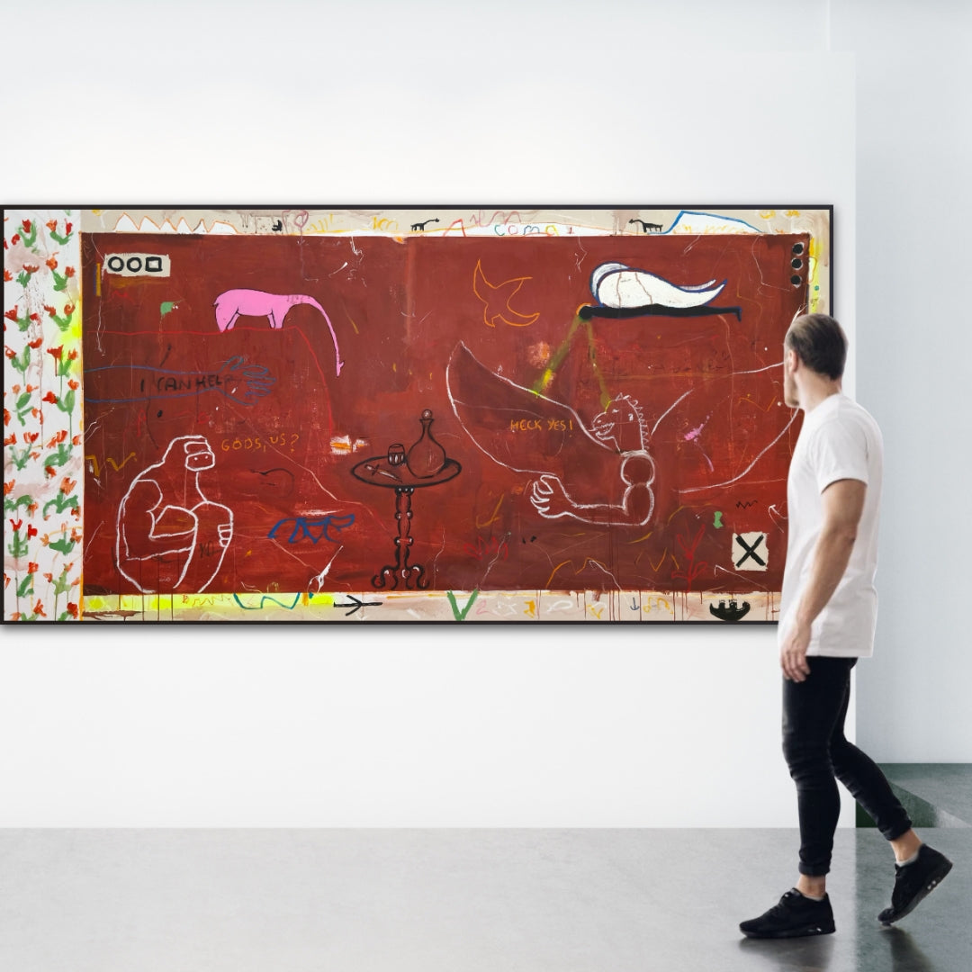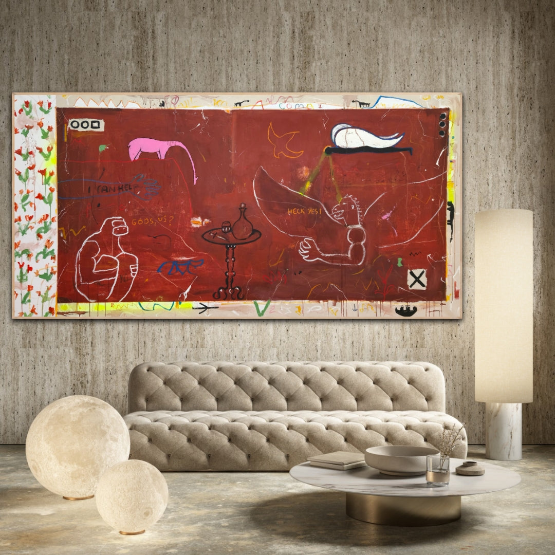 Técnica: acrílico, pigmentos, lápiz, carboncillo, gesso, stick oil.