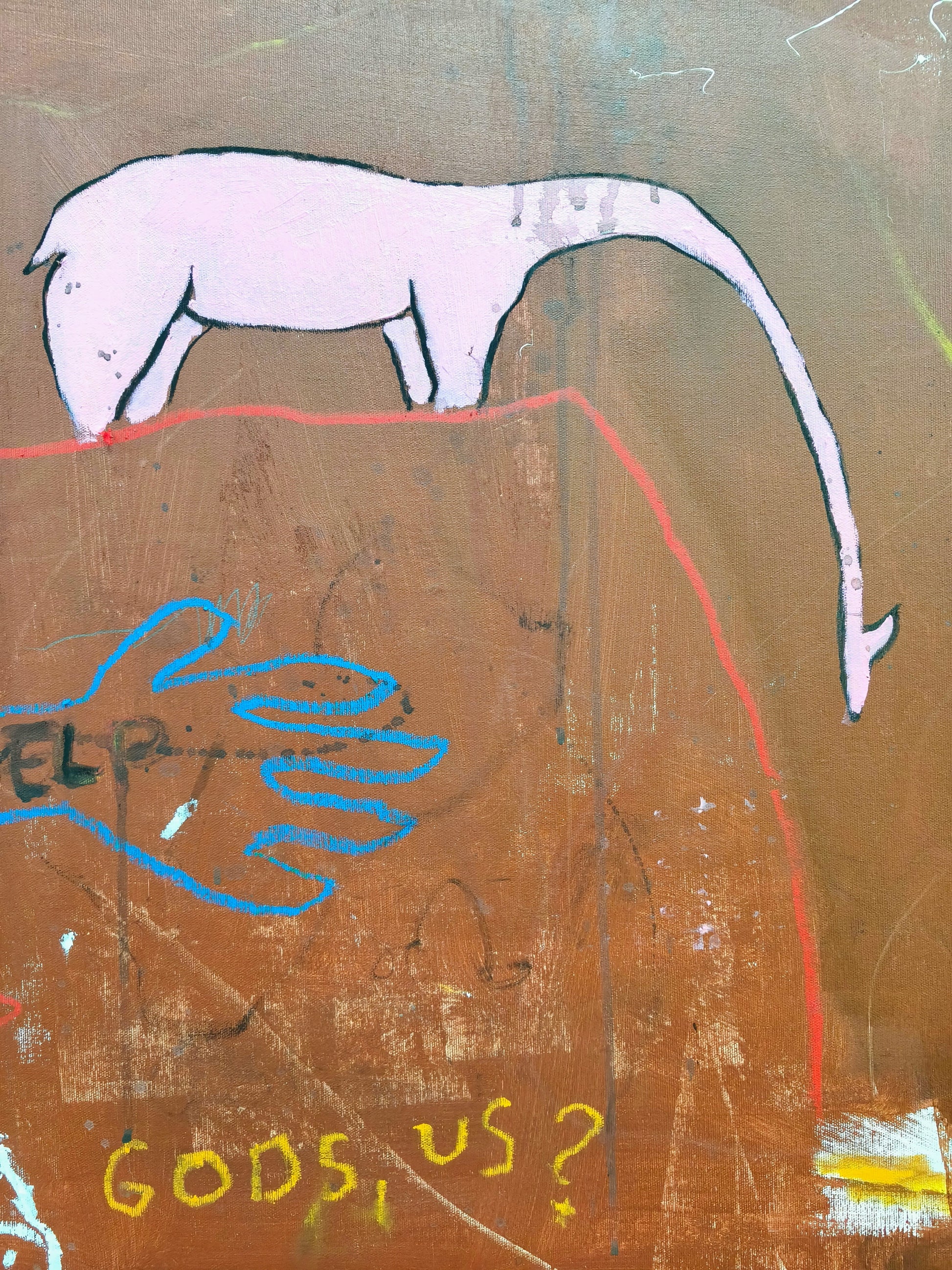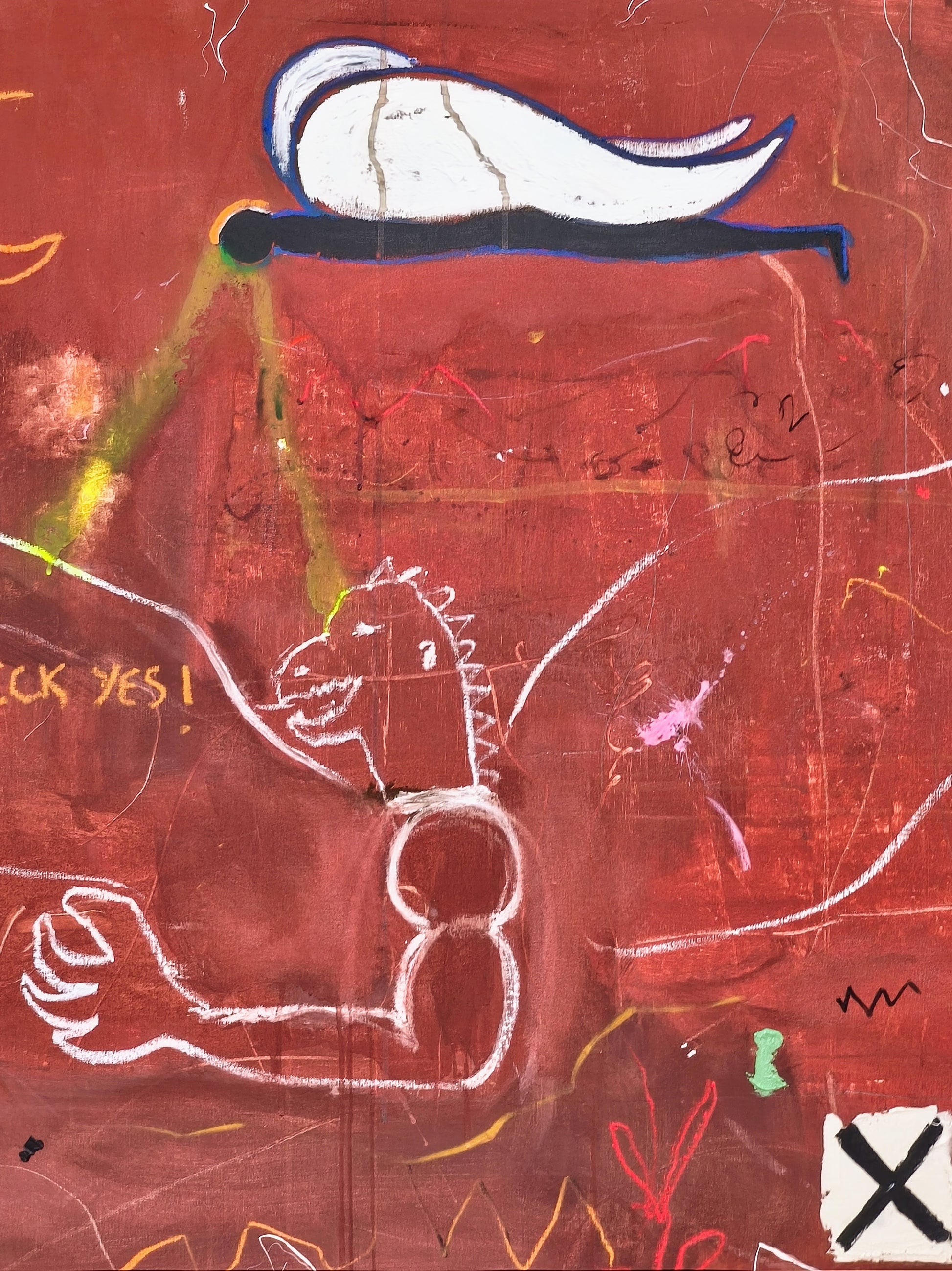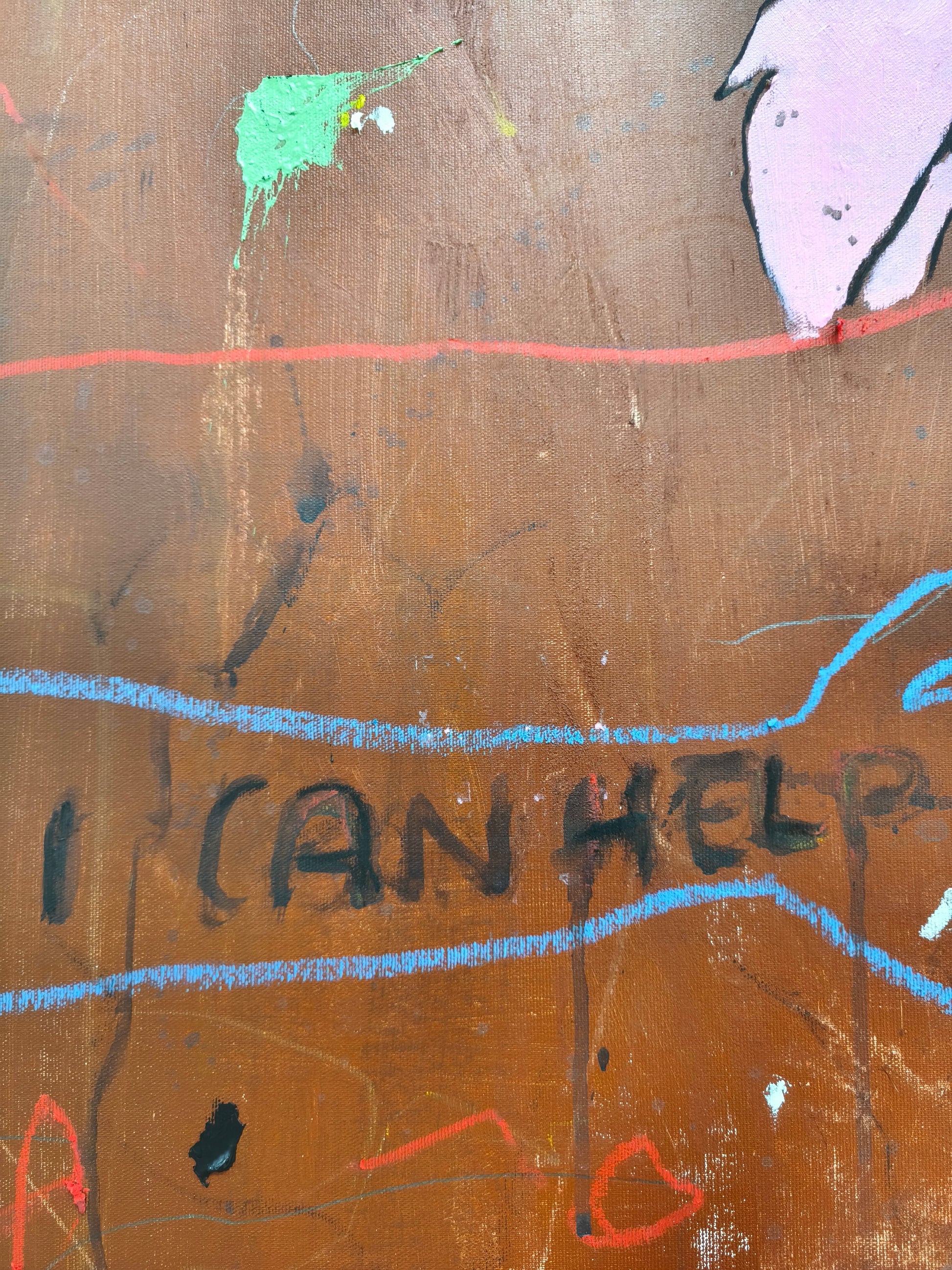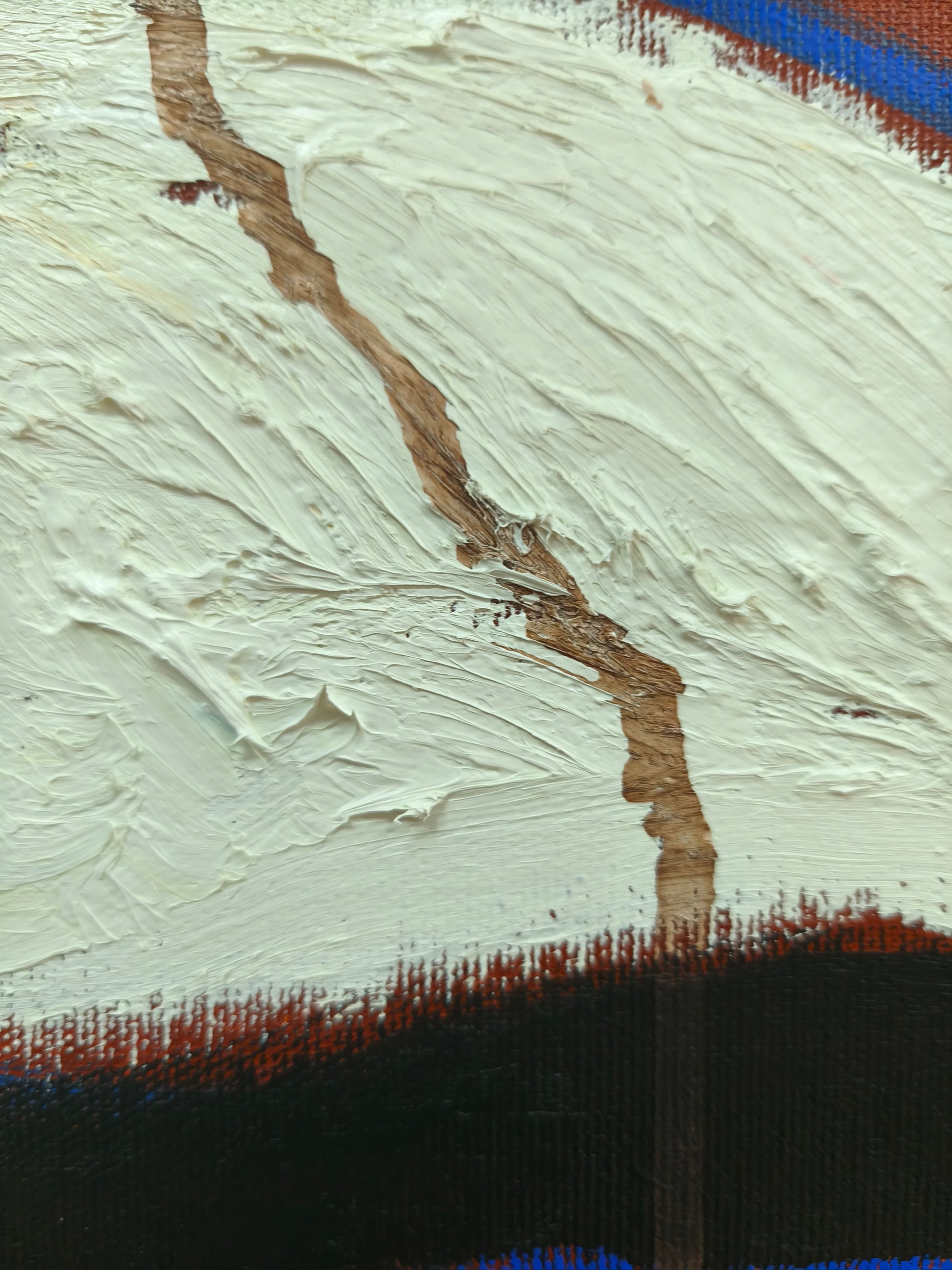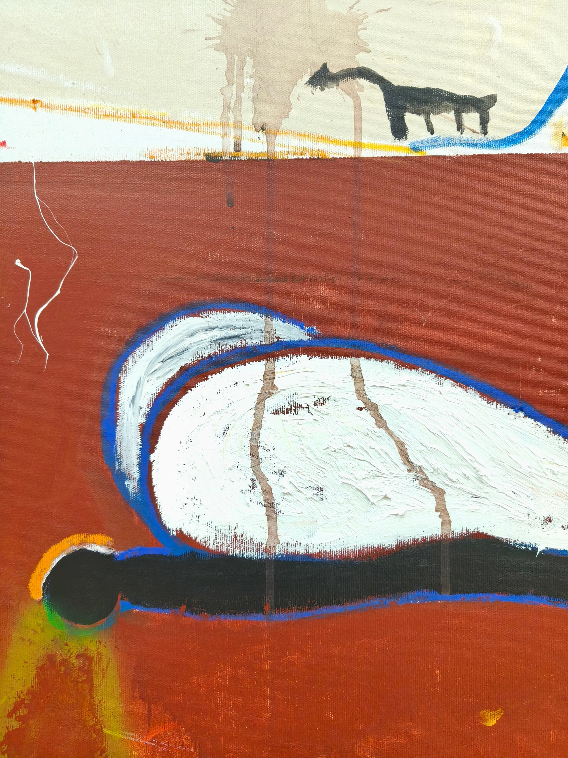 Pintura gestual, intuitiva, que deja que las cosas pasen y se apoya sobre lo que aparece. Aprovechando el accidente y aceptando las consecuencias.