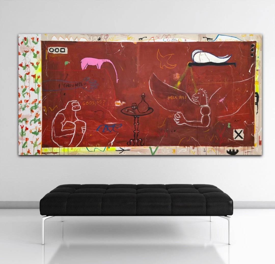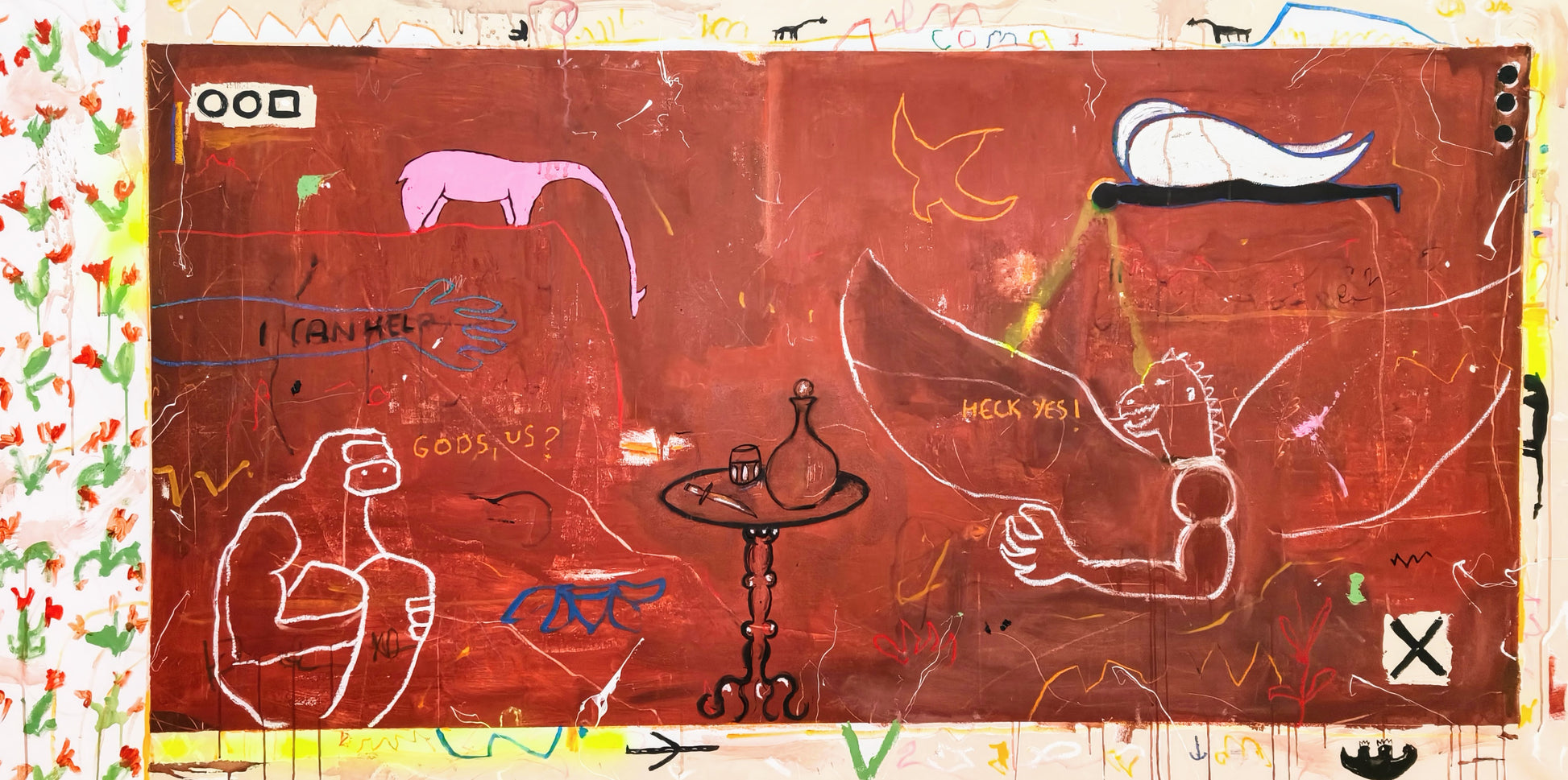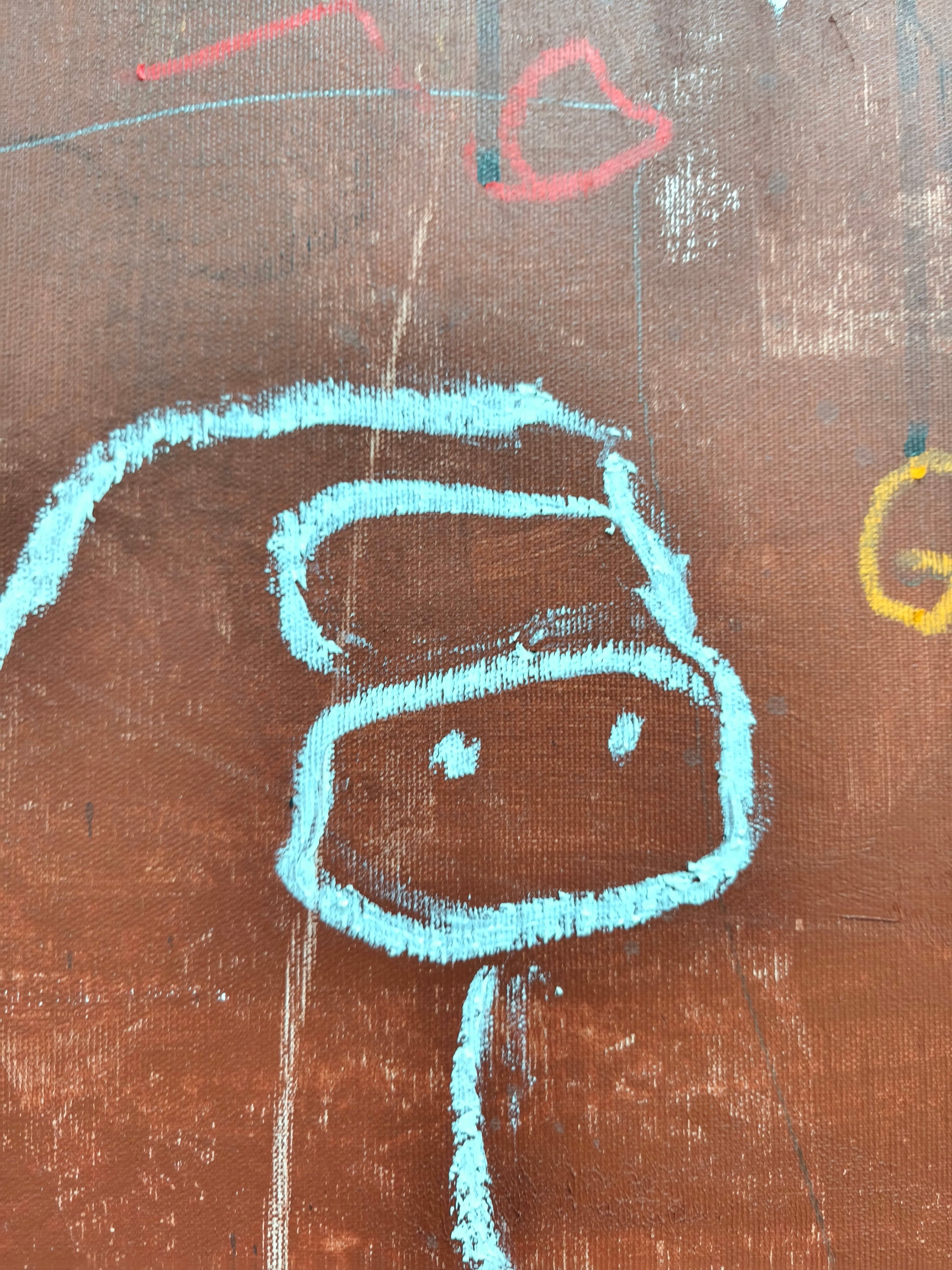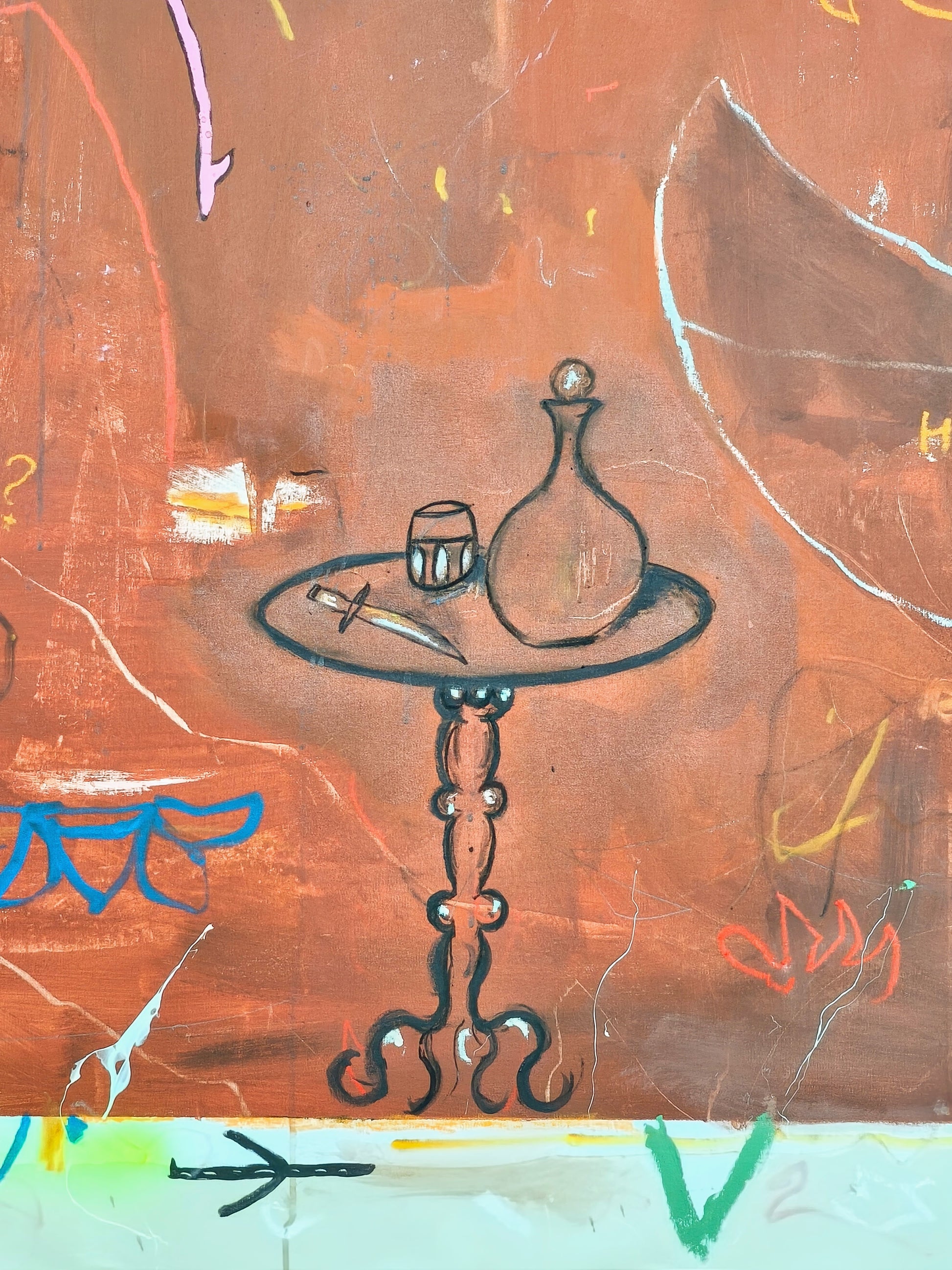 Pintura gestual, intuitiva, que deja que las cosas pasen y se apoya sobre lo que aparece. Aprovechando el accidente y aceptando las consecuencias.