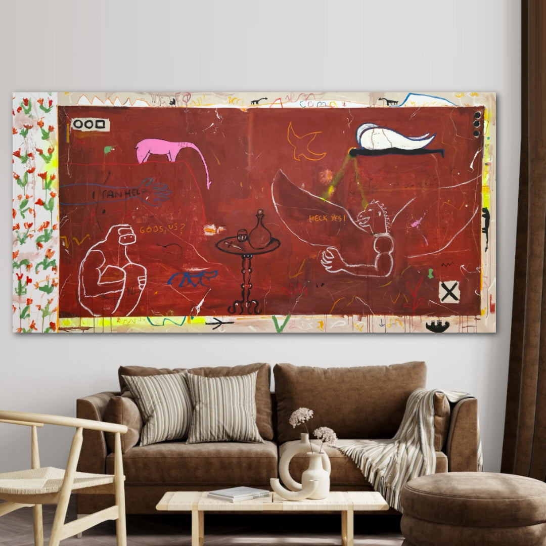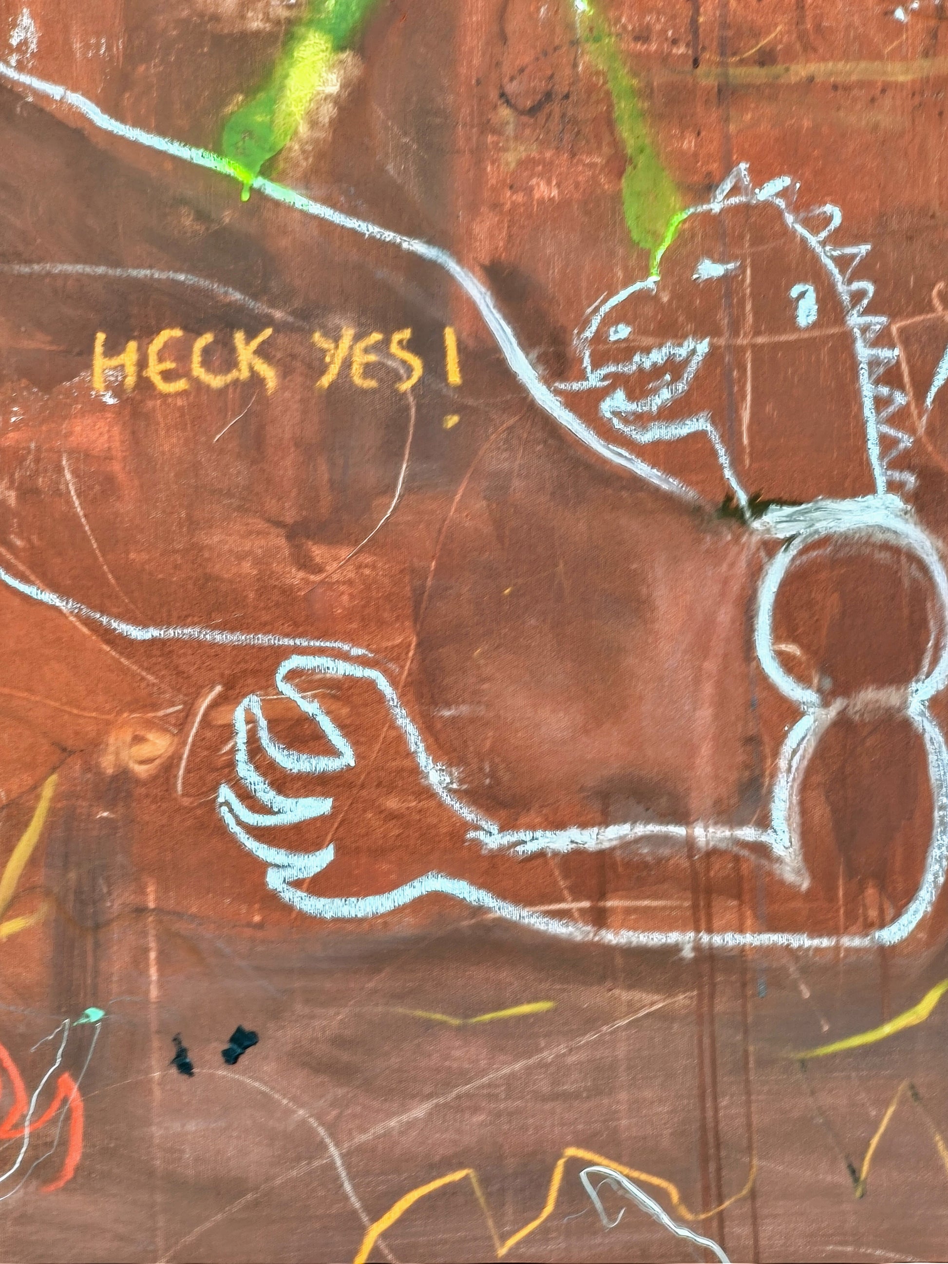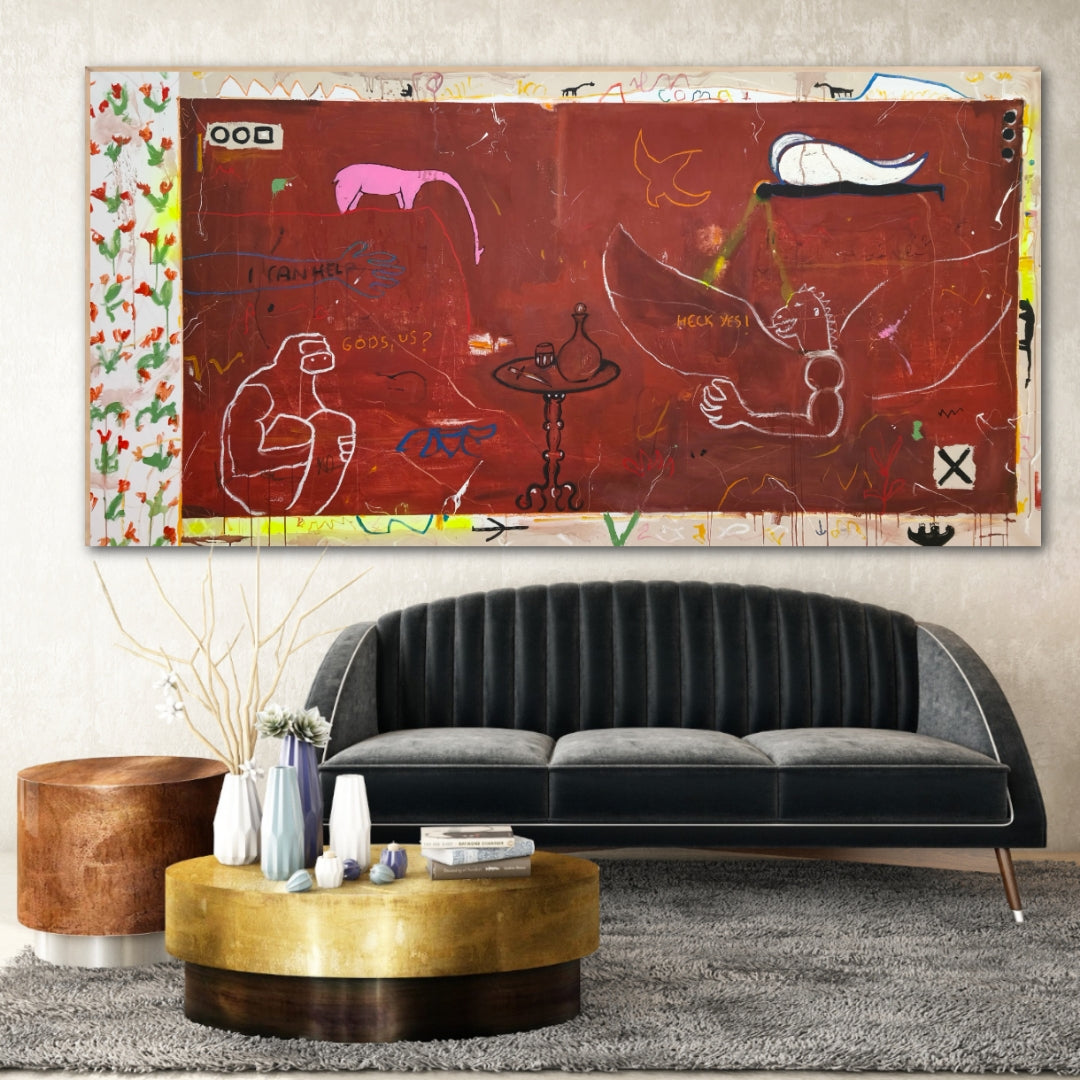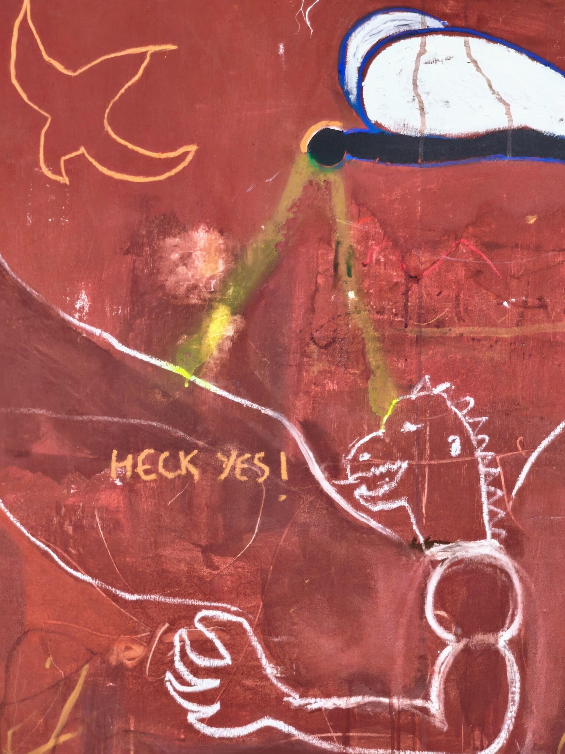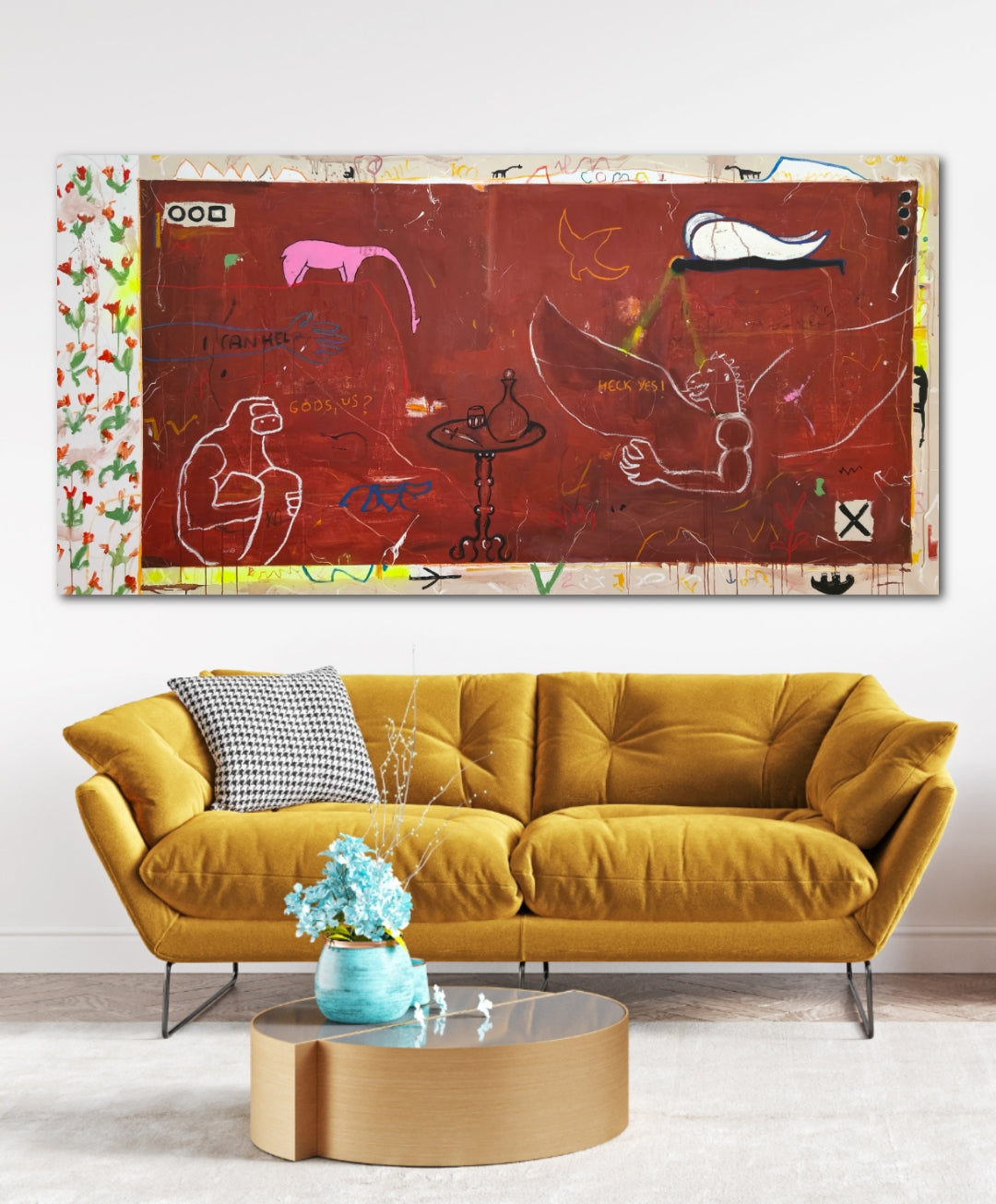 Pintura gestual, intuitiva, que deja que las cosas pasen y se apoya sobre lo que aparece. Aprovechando el accidente y aceptando las consecuencias.