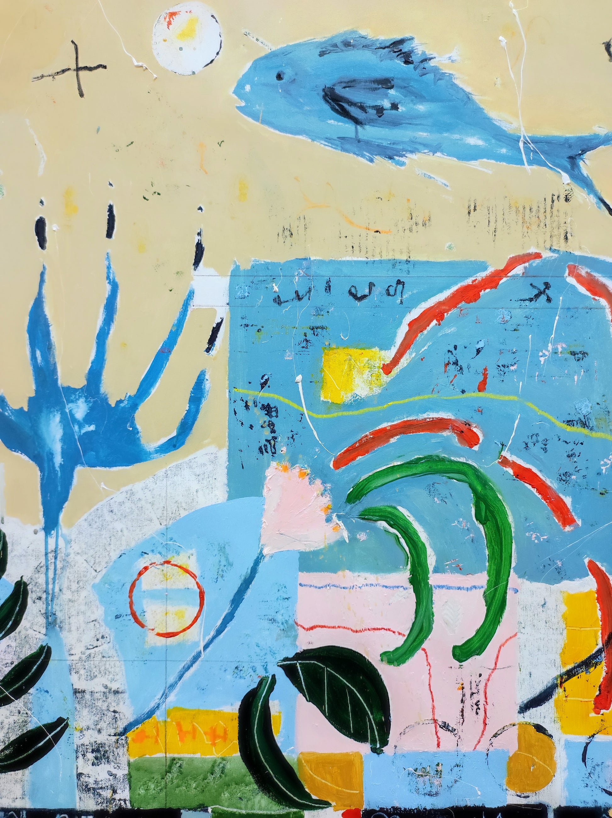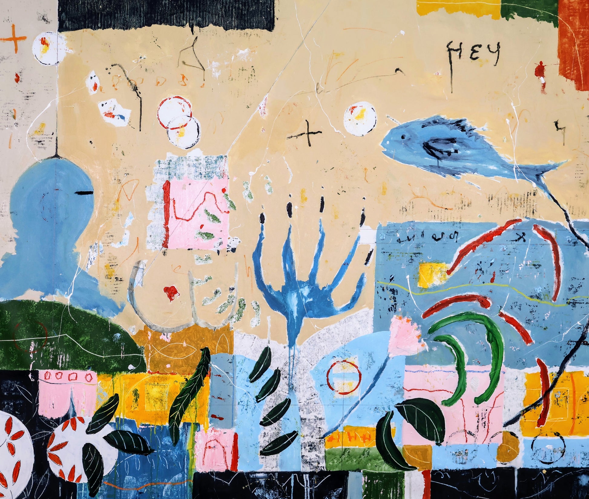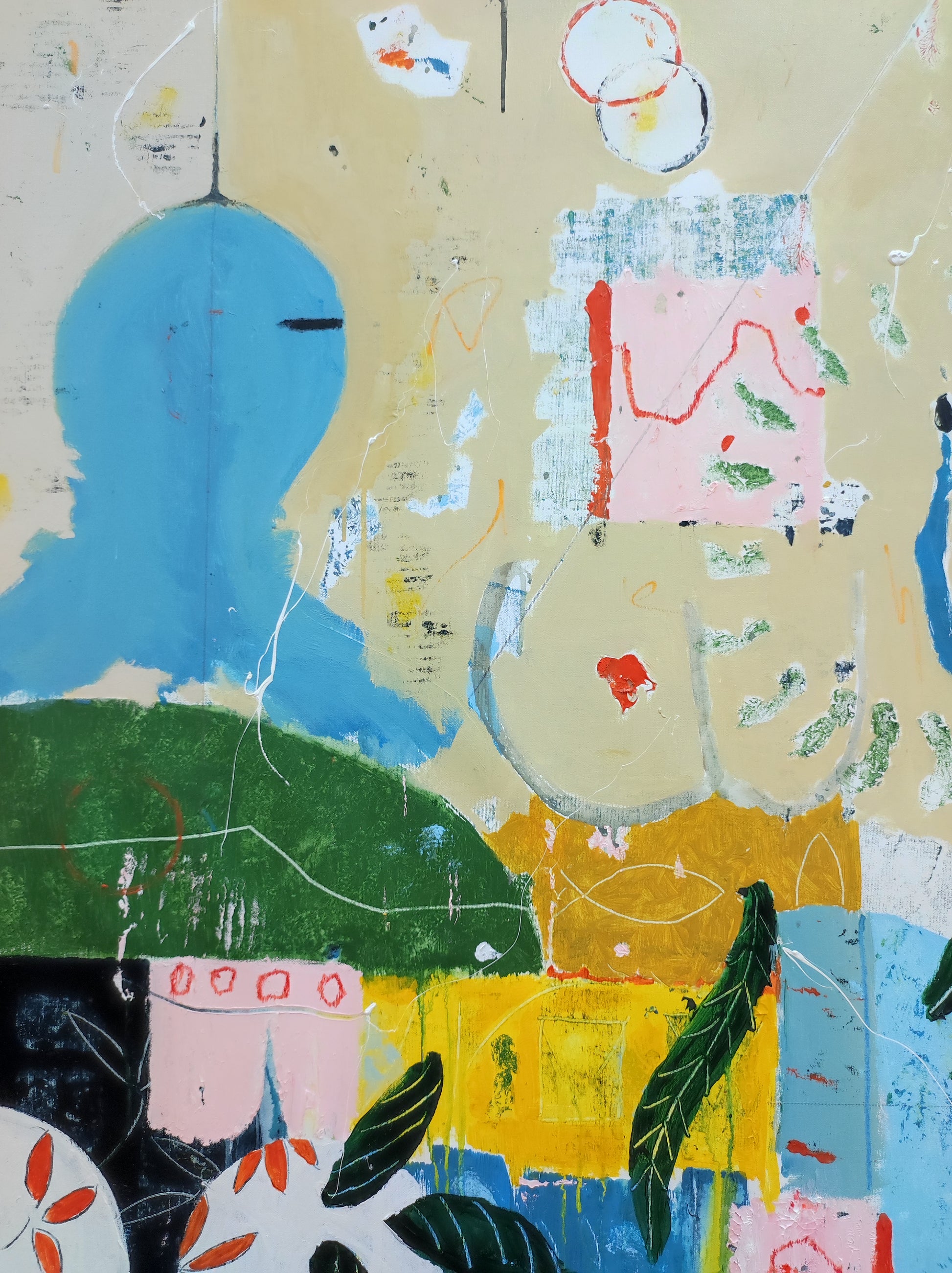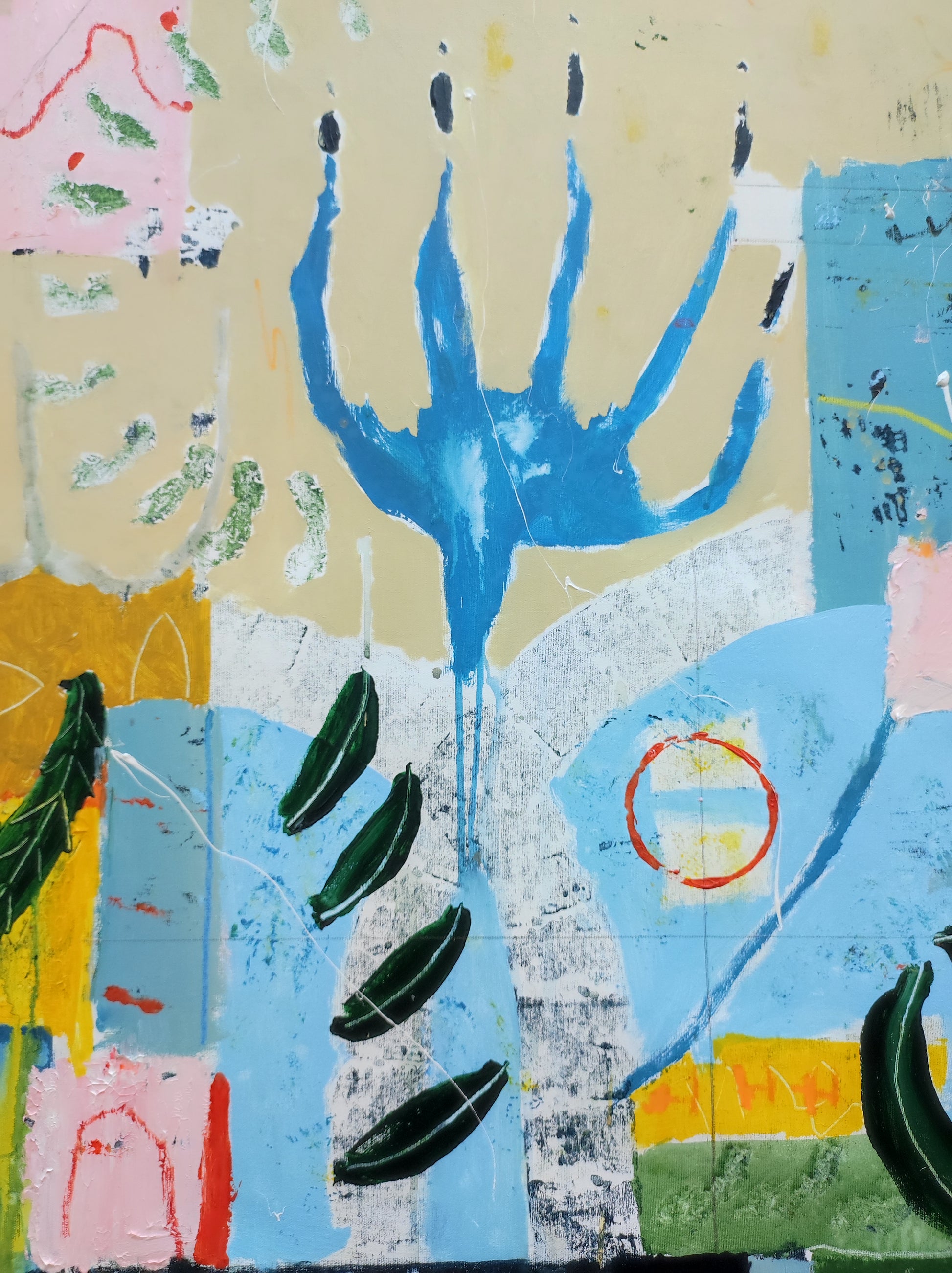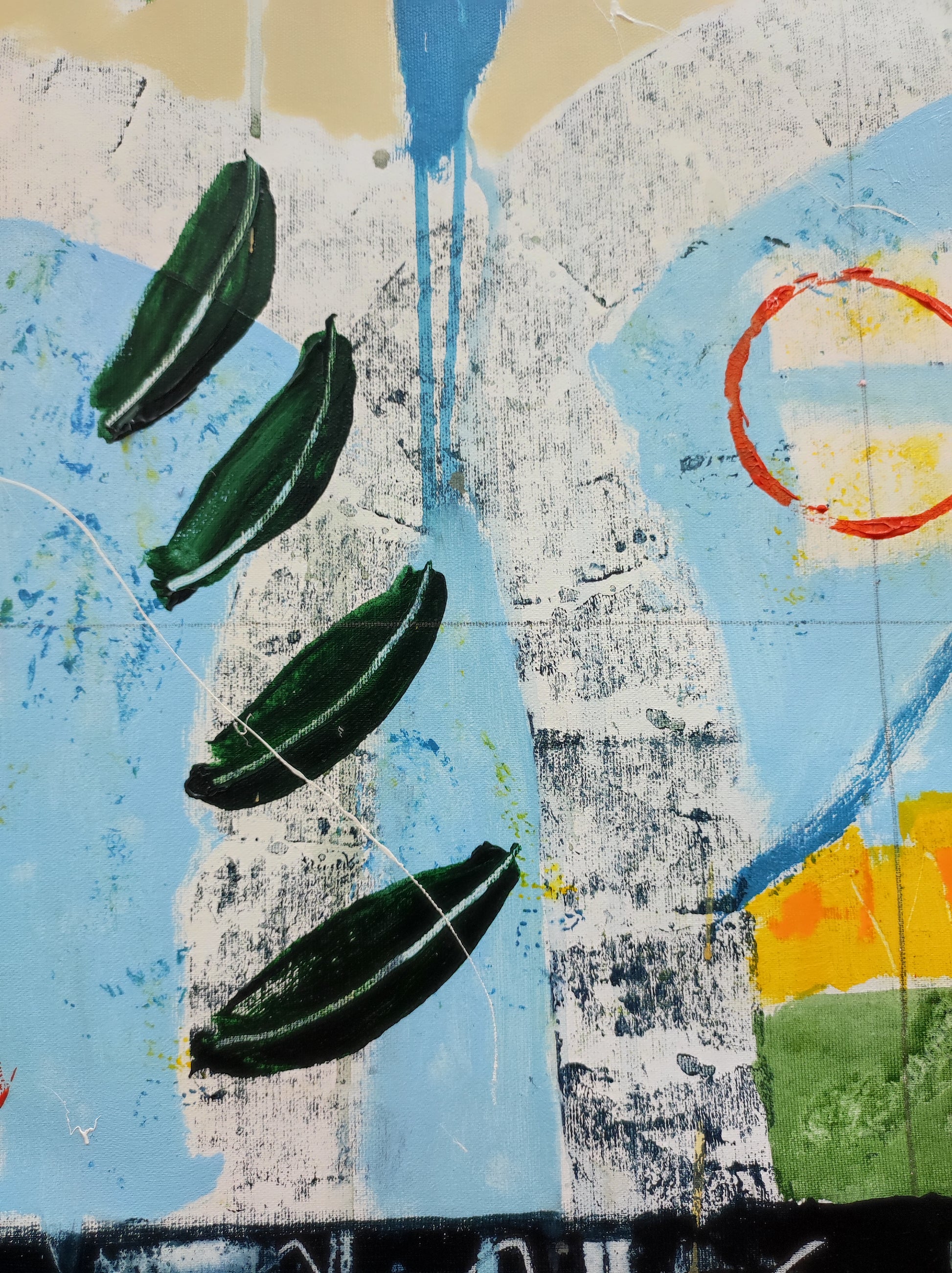 Técnica: acrílico, pigmentos, lápiz, carboncillo y gesso.