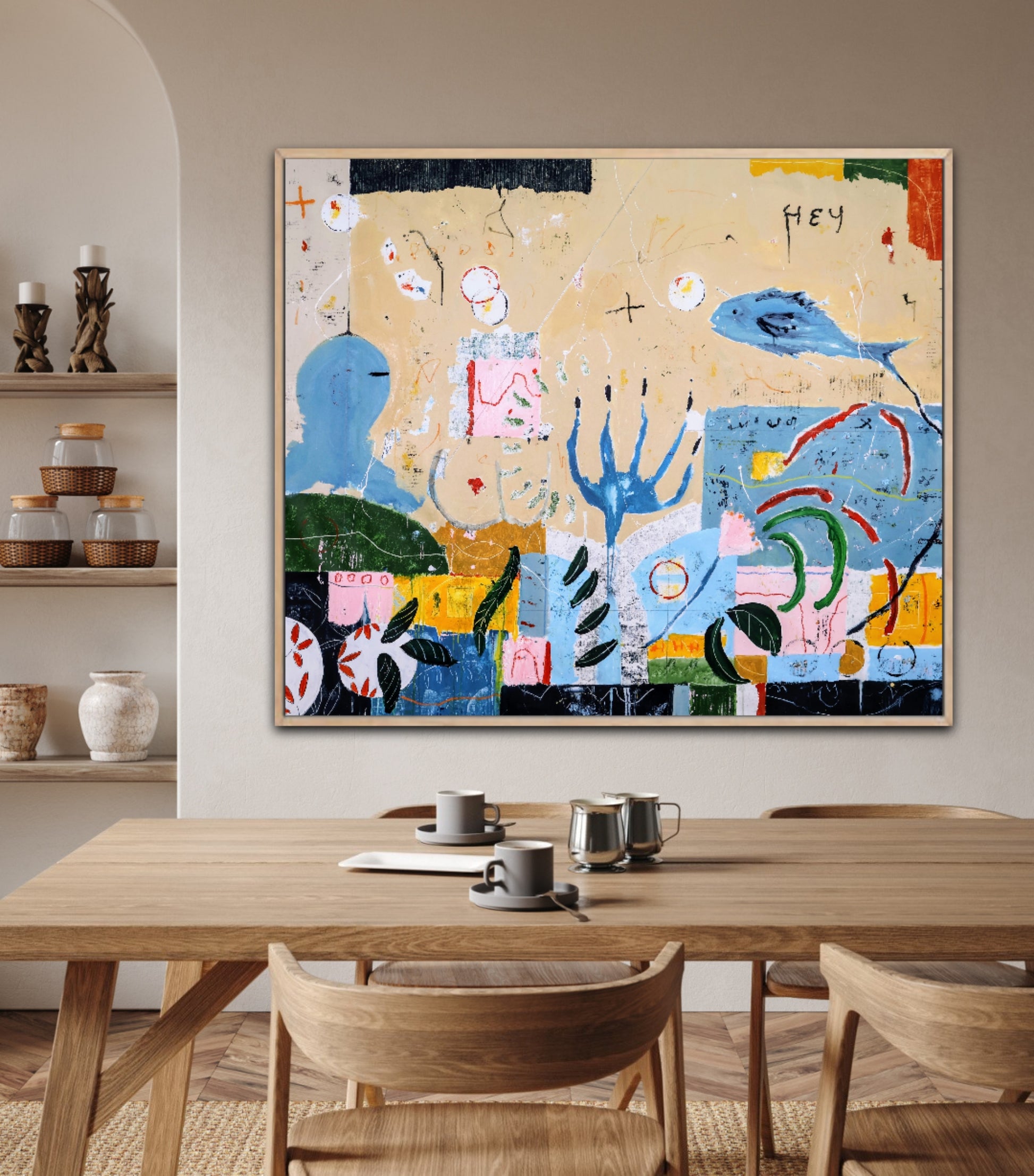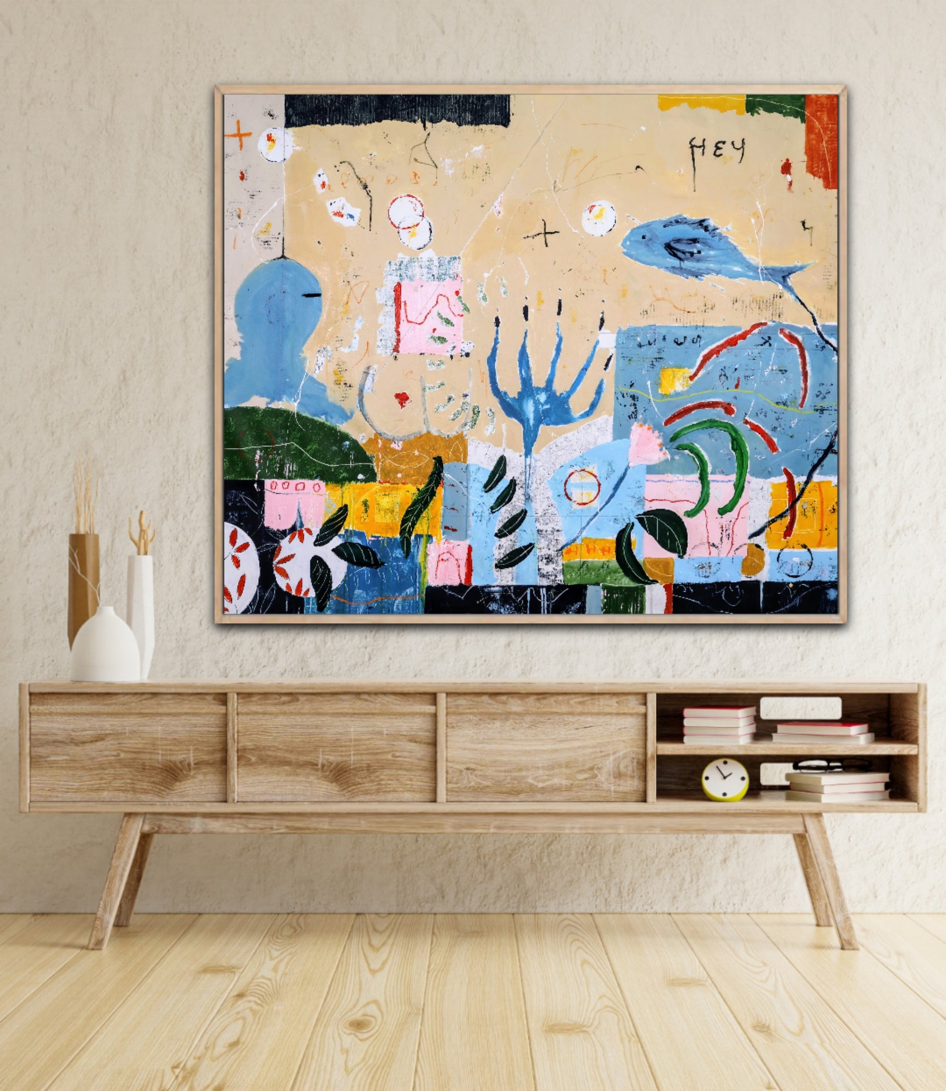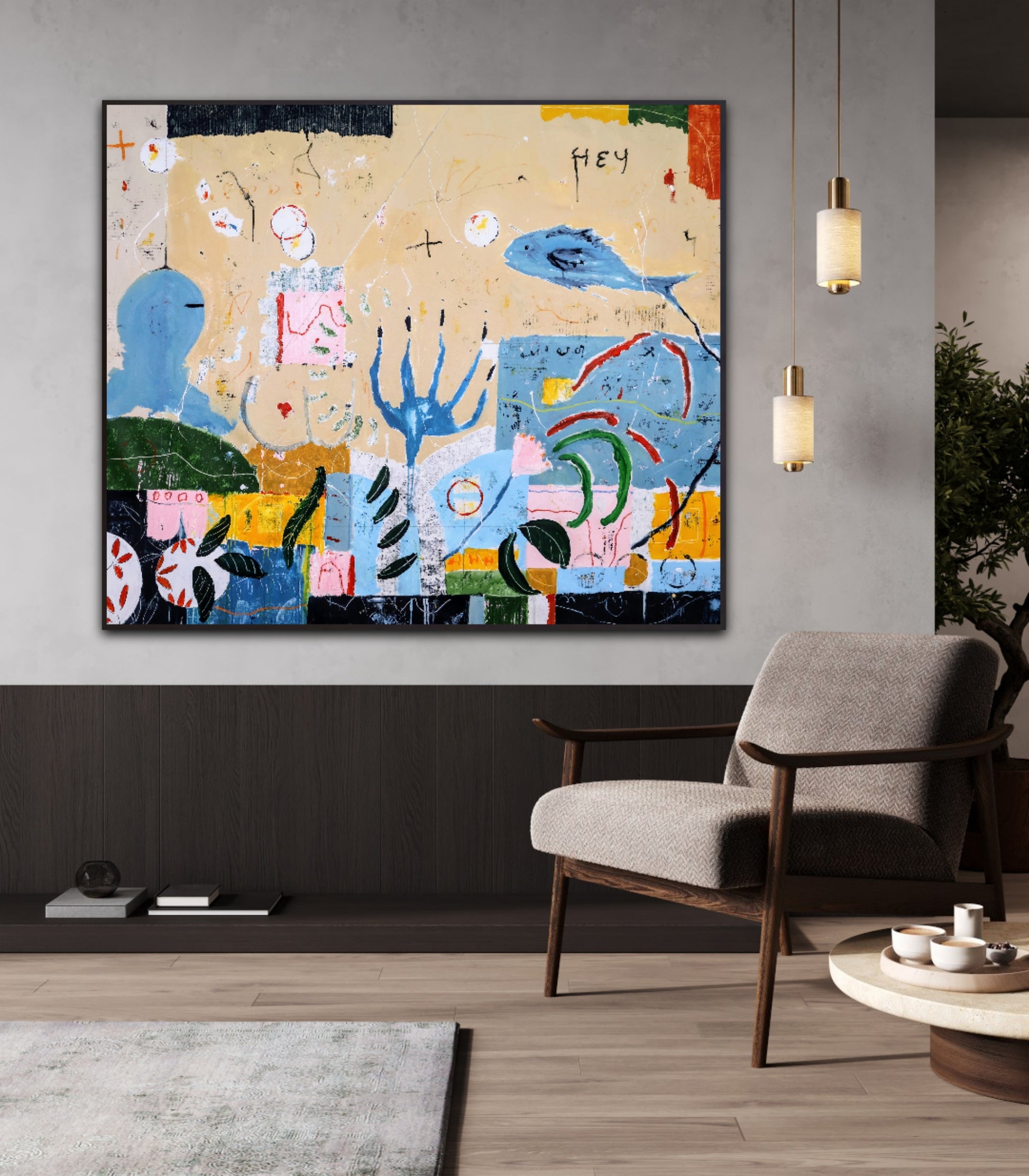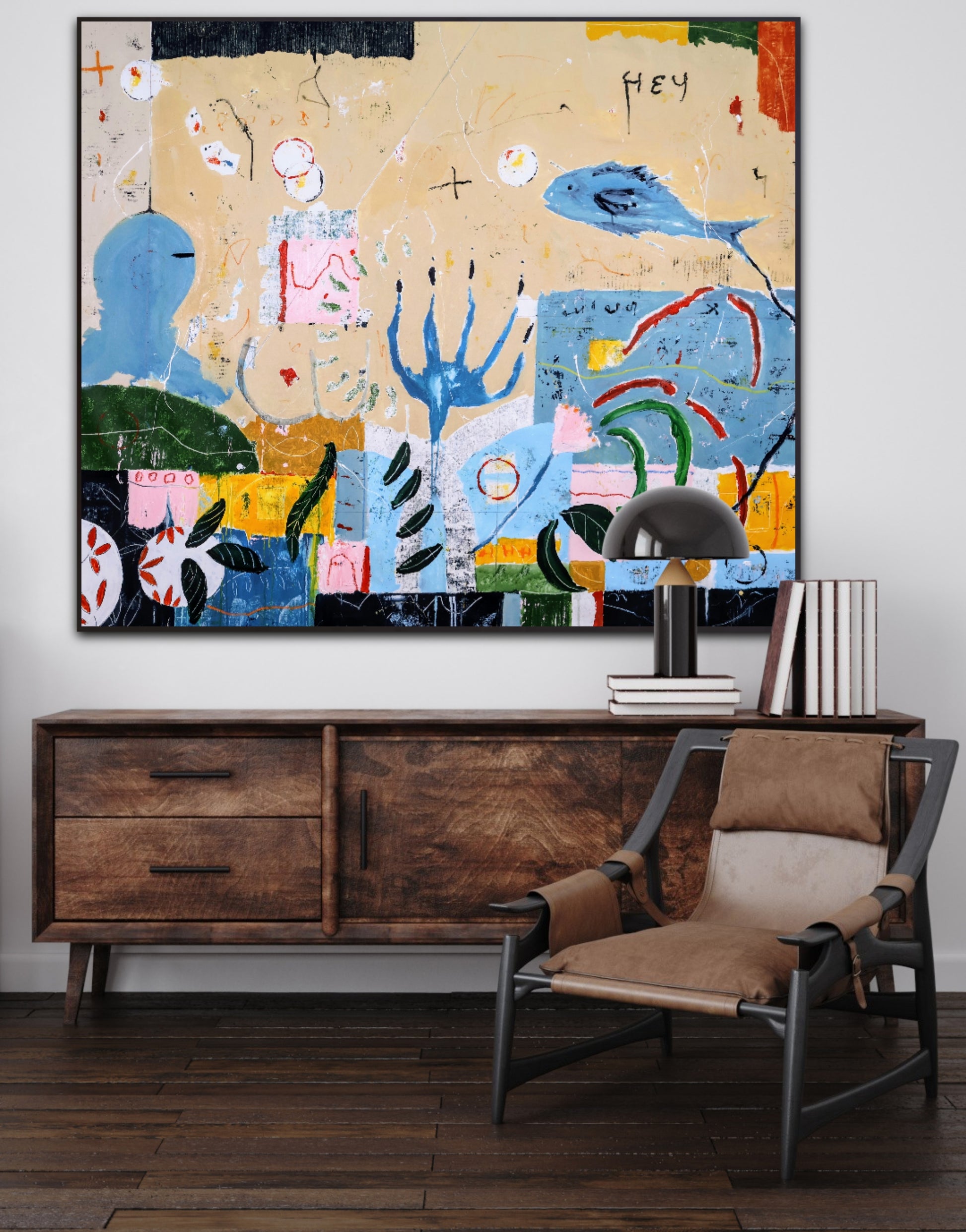 Técnica: acrílico, pigmentos, lápiz, carboncillo y gesso.