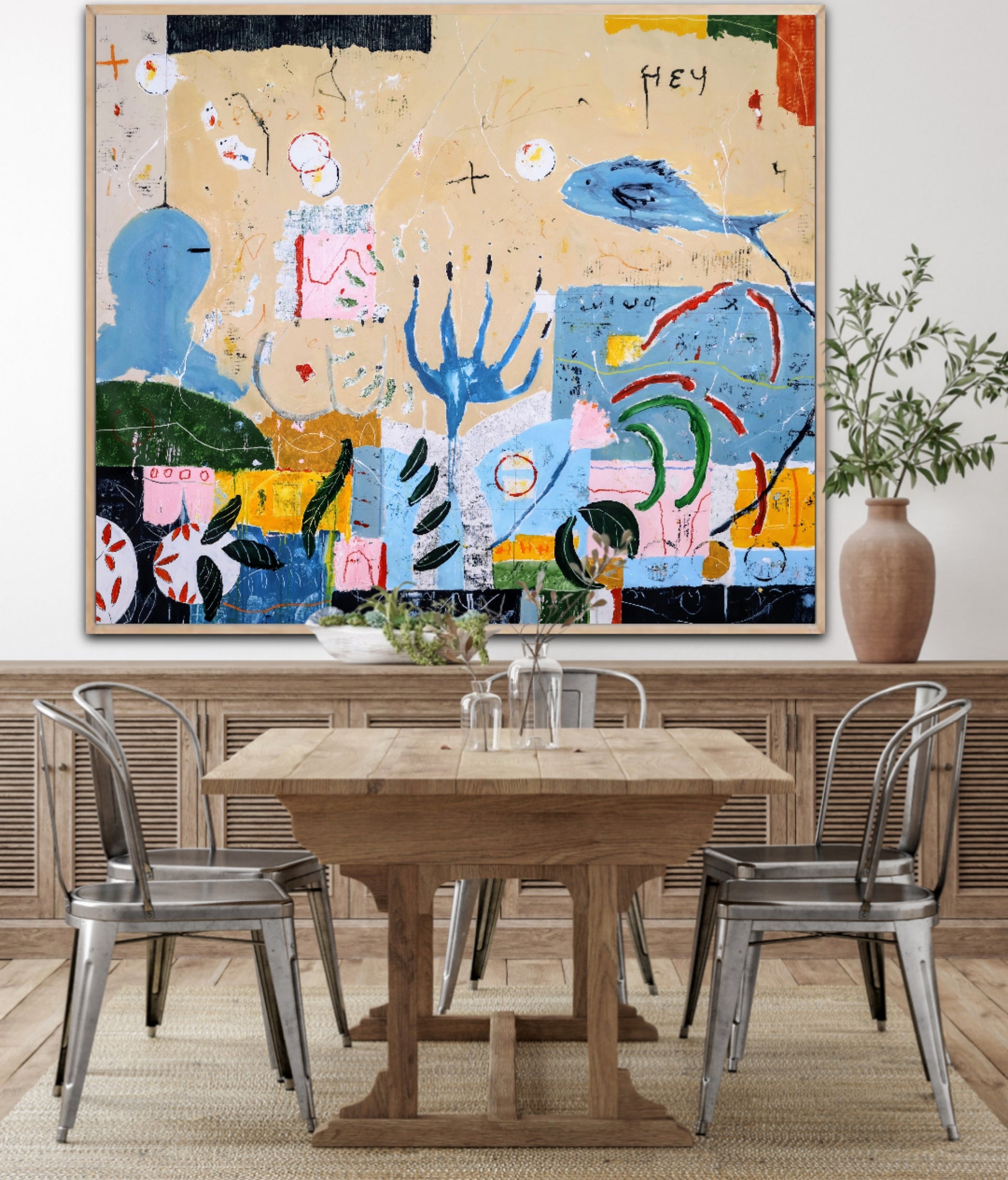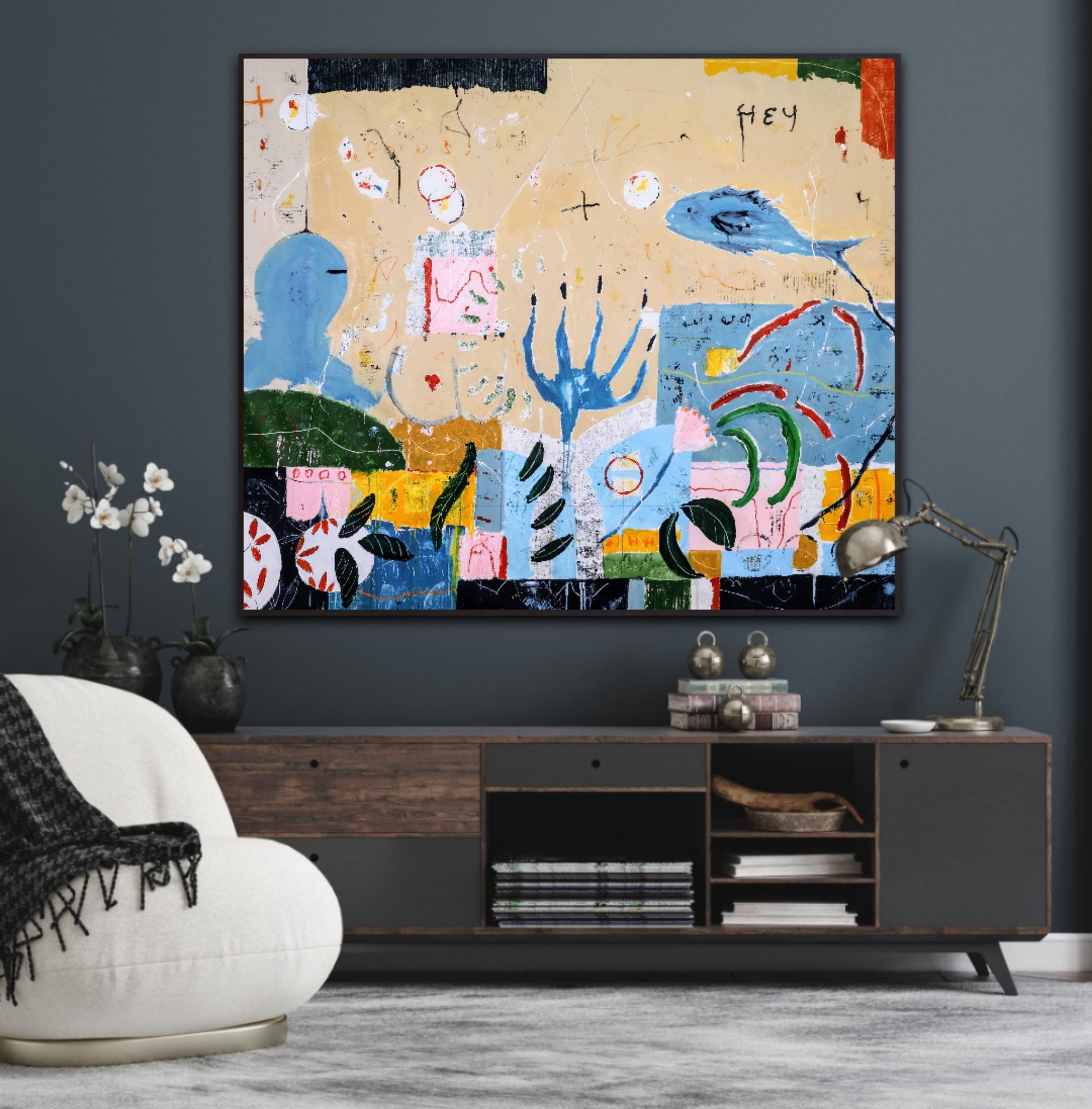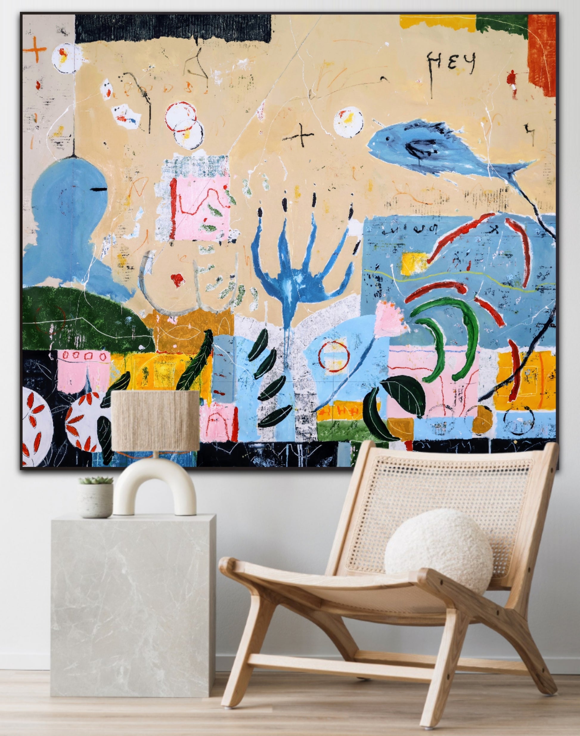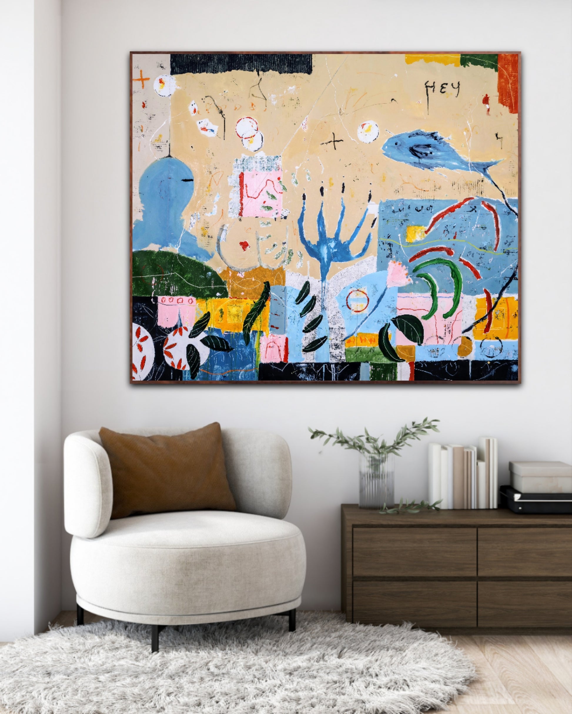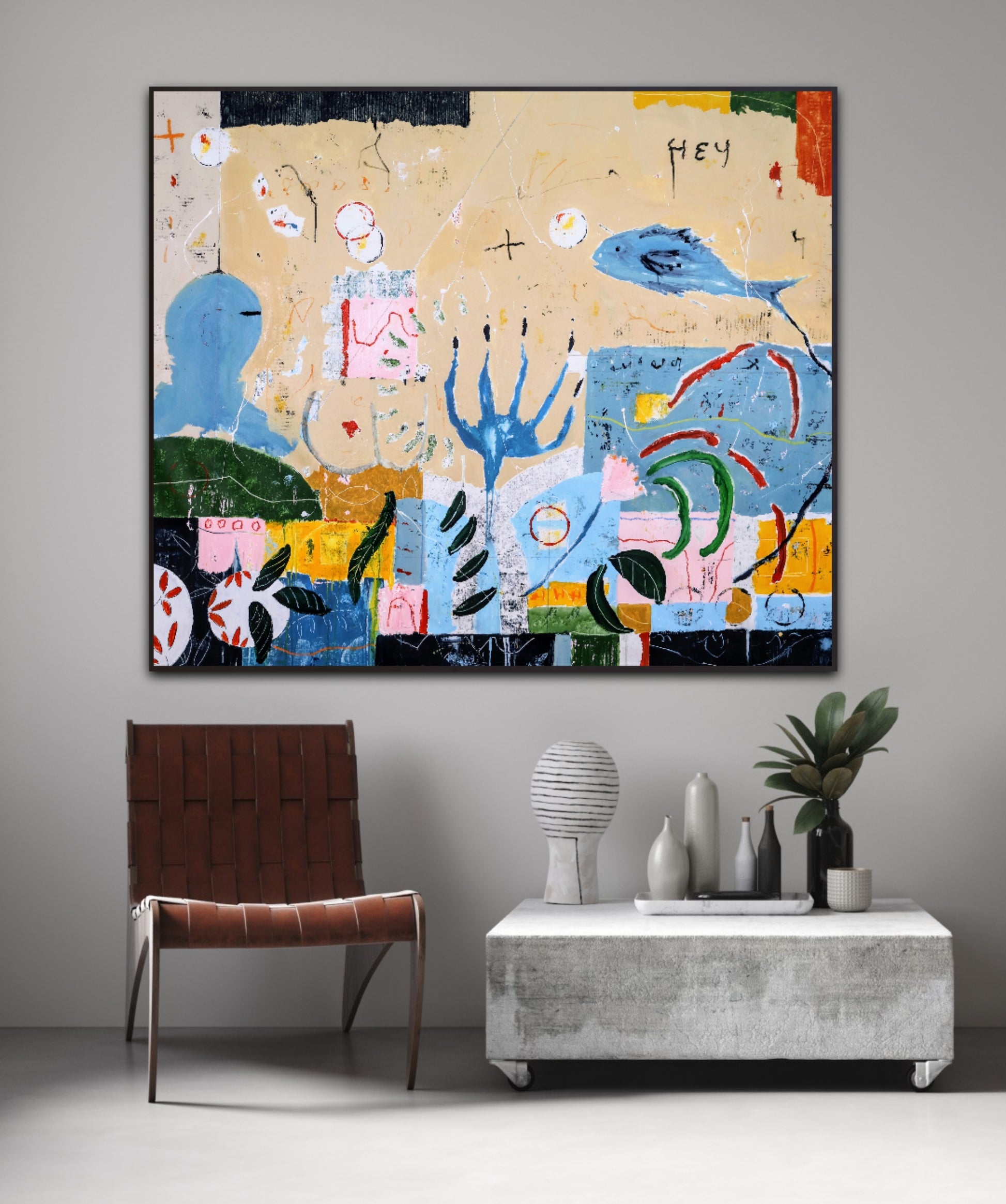 Técnica: acrílico, pigmentos, lápiz, carboncillo y gesso.