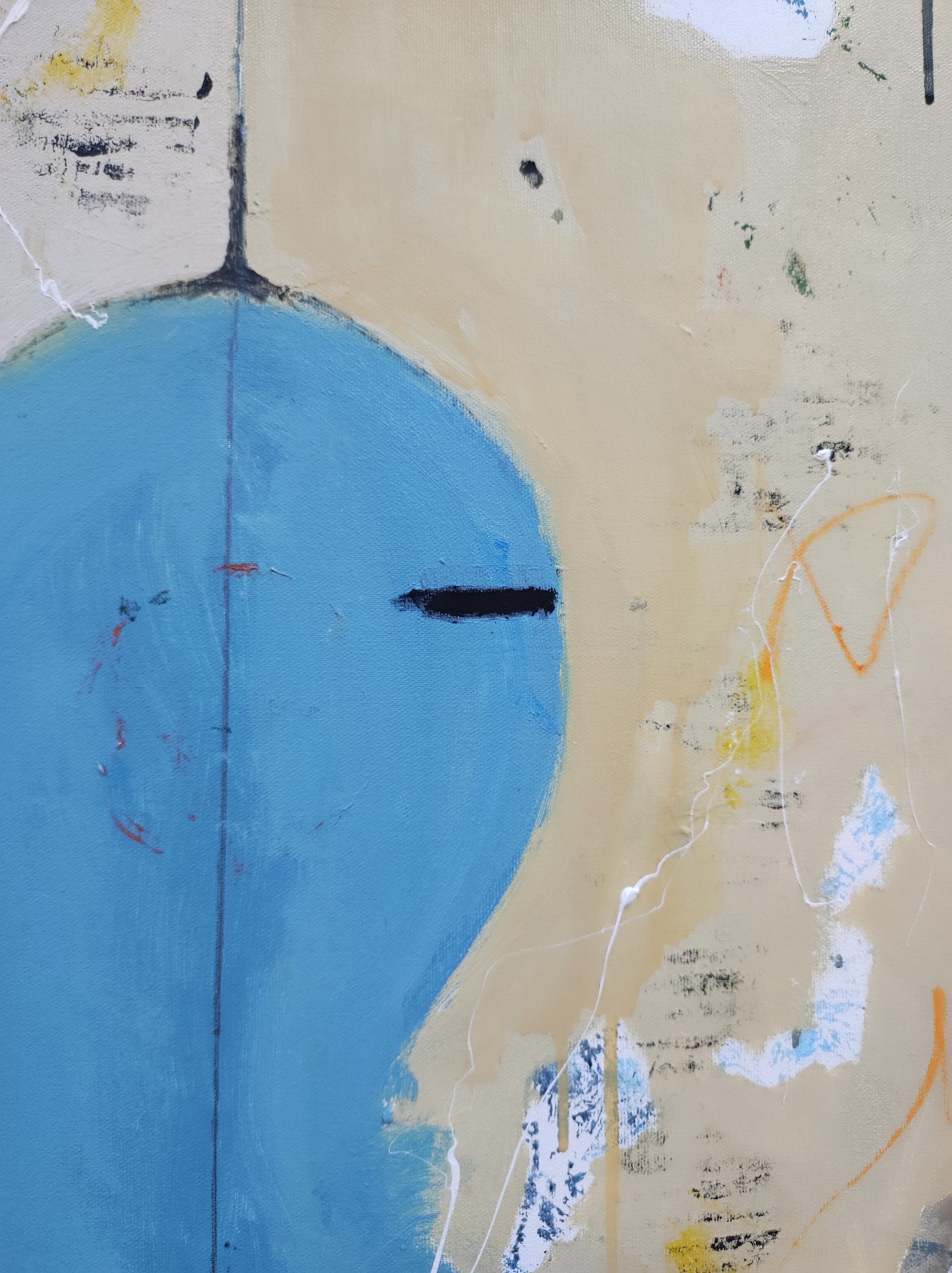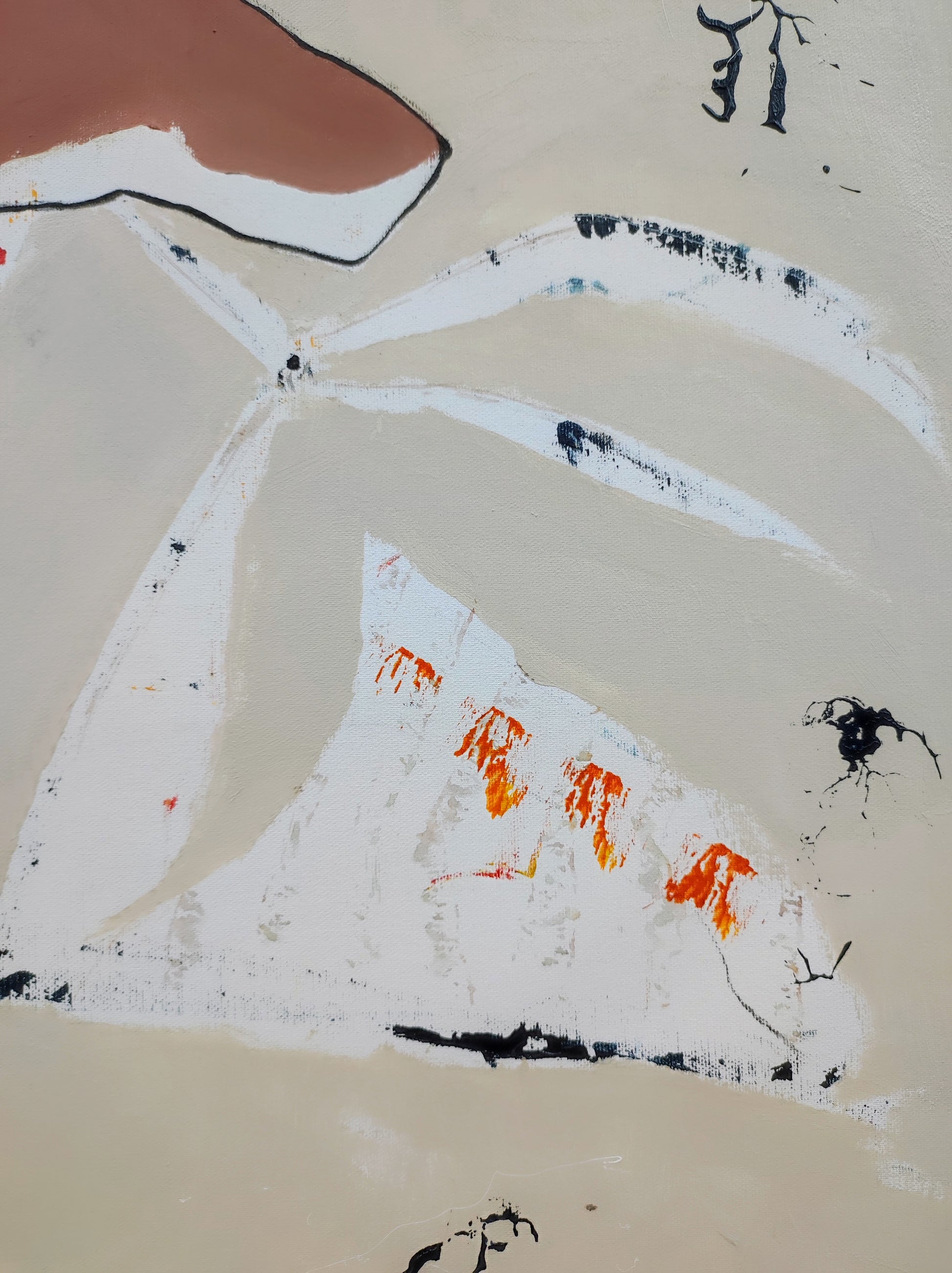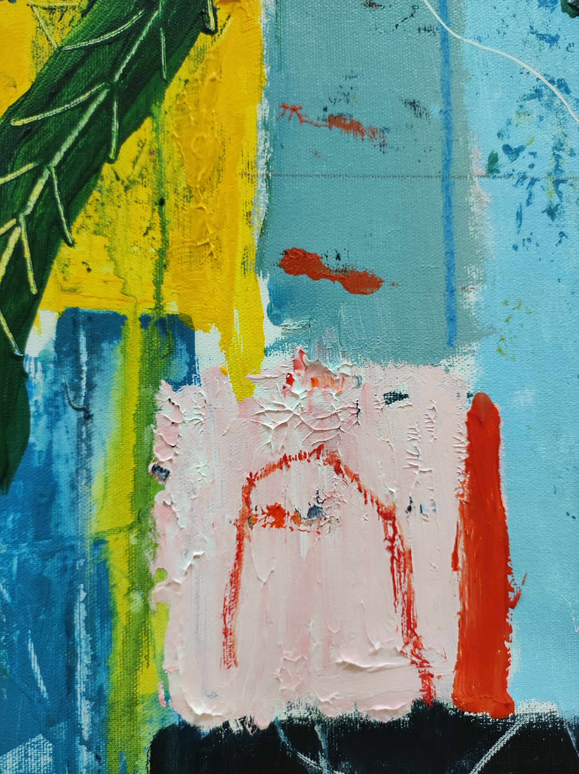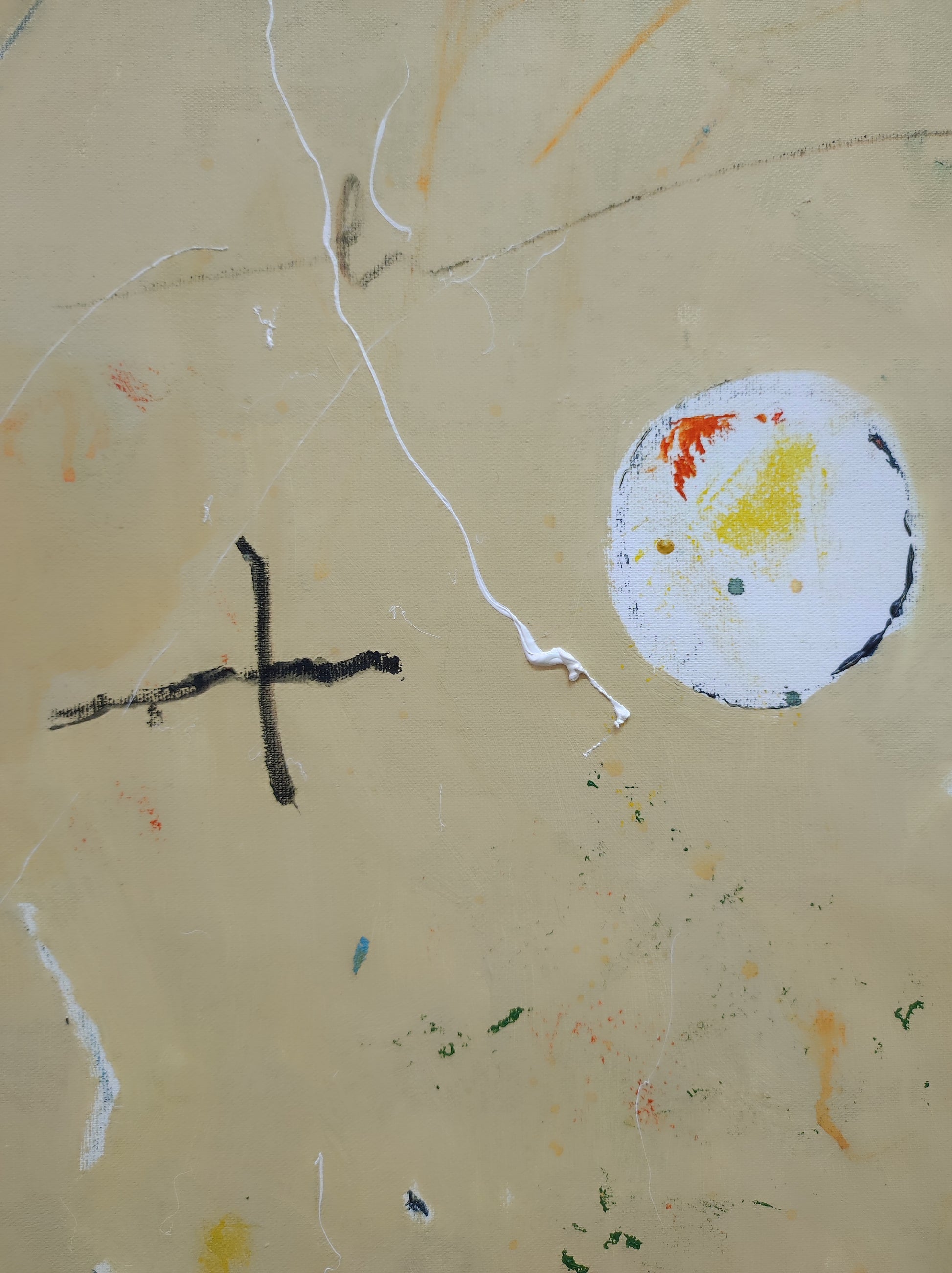 Pintura gestual, intuitiva, que deja que las cosas pasen y se apoya sobre lo que aparece. Aprovechando el accidente y aceptando las consecuencias.
