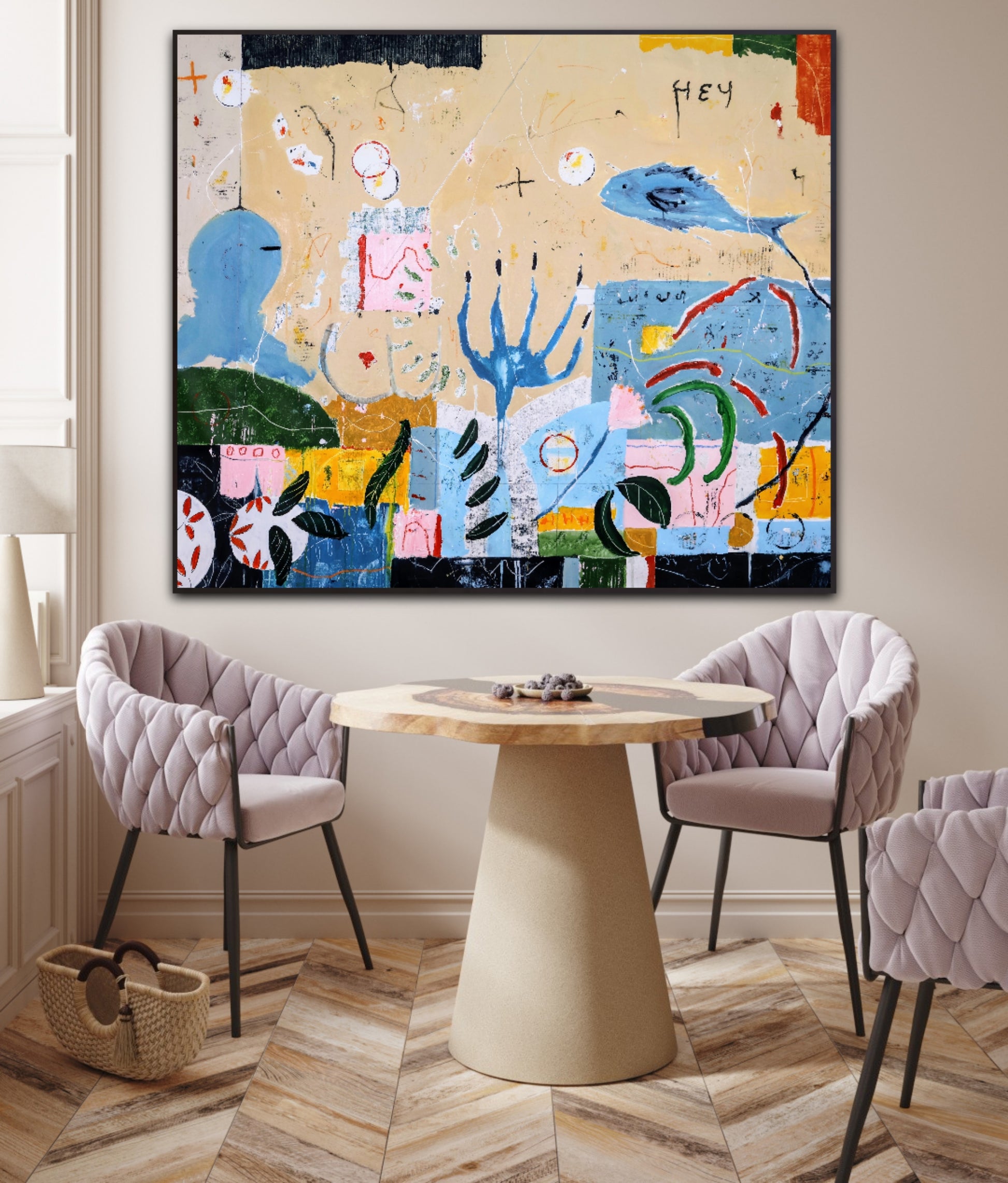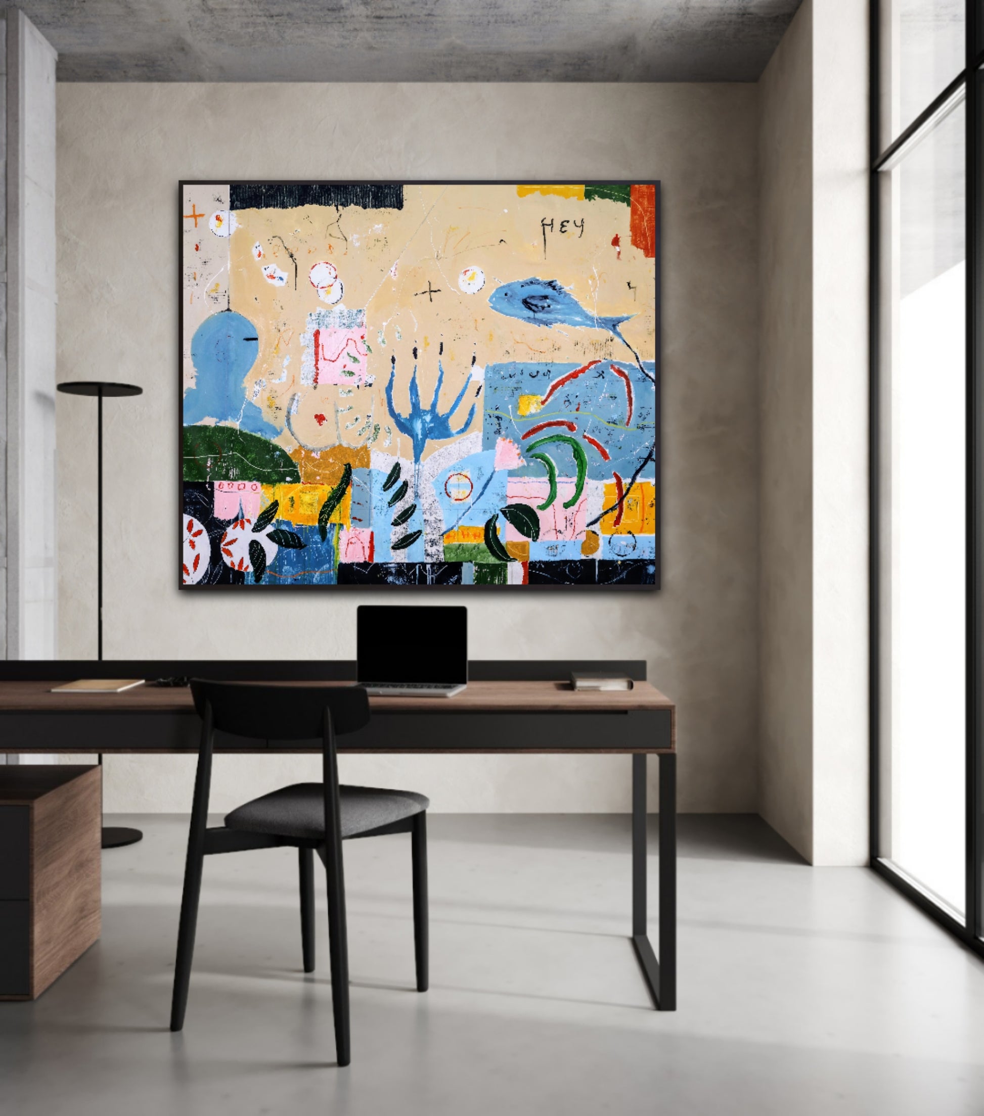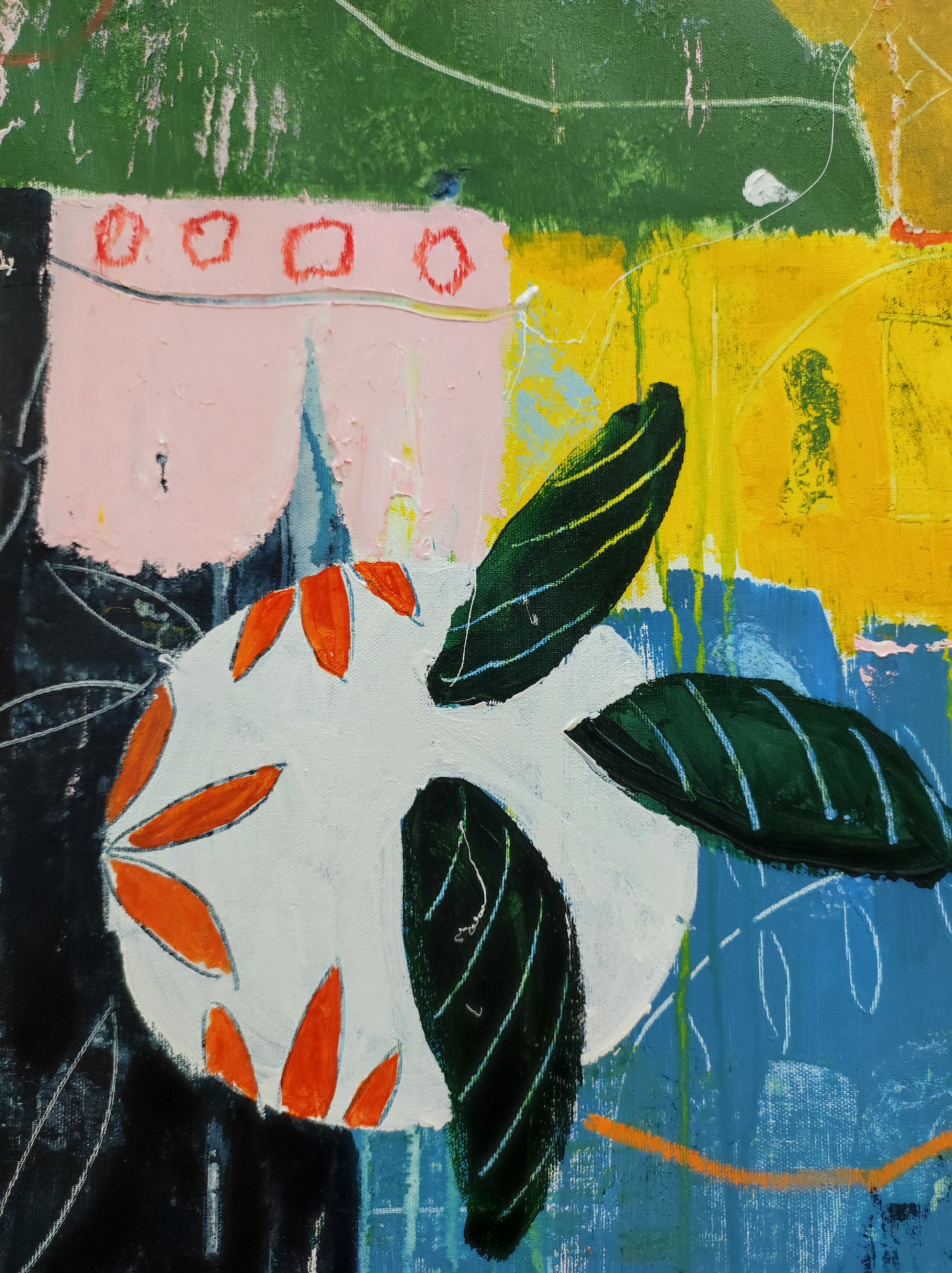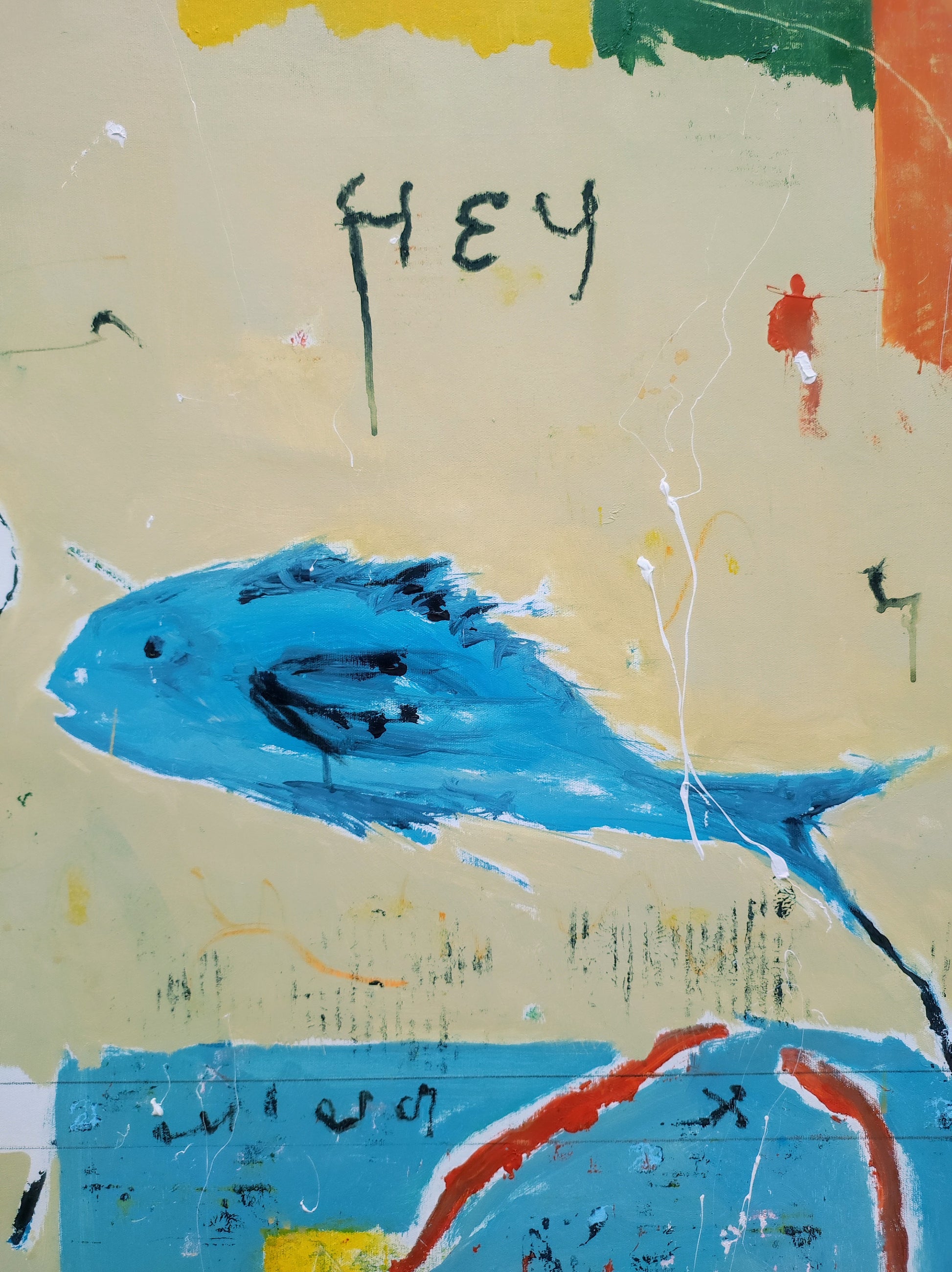 Pintura gestual, intuitiva, que deja que las cosas pasen y se apoya sobre lo que aparece. Aprovechando el accidente y aceptando las consecuencias.