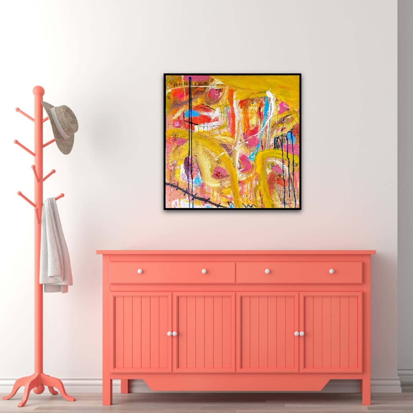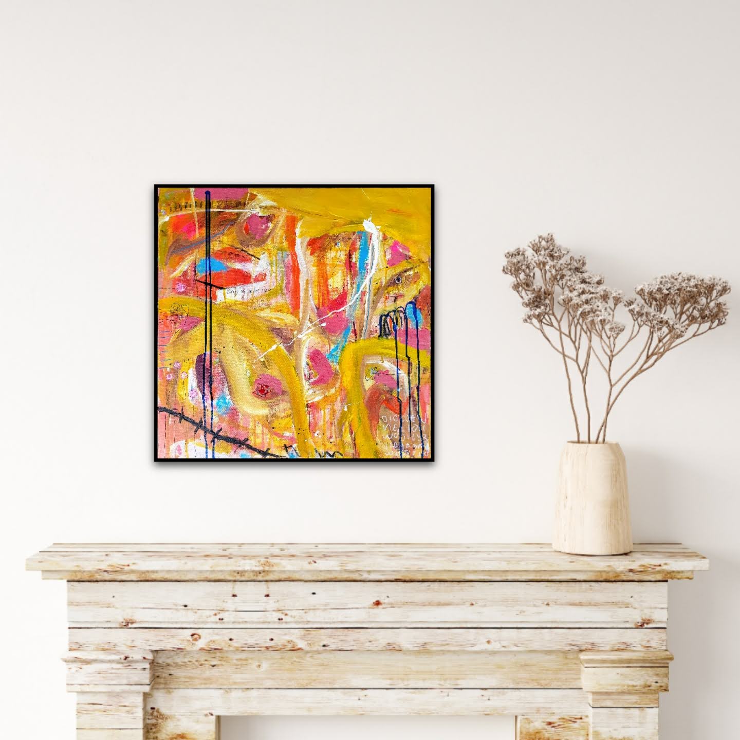 Técnica: mixed media: acrílico, pintura en spray, carboncillo, ceras y tintas al alcohol.
