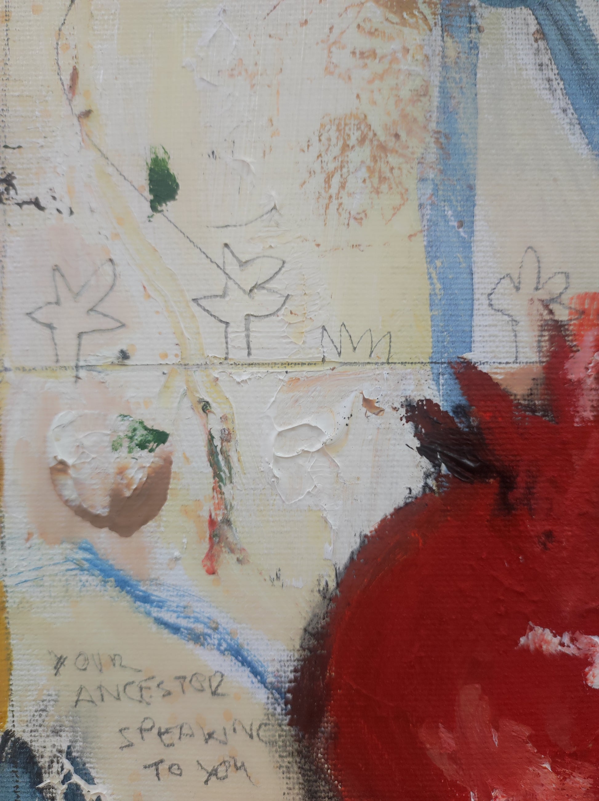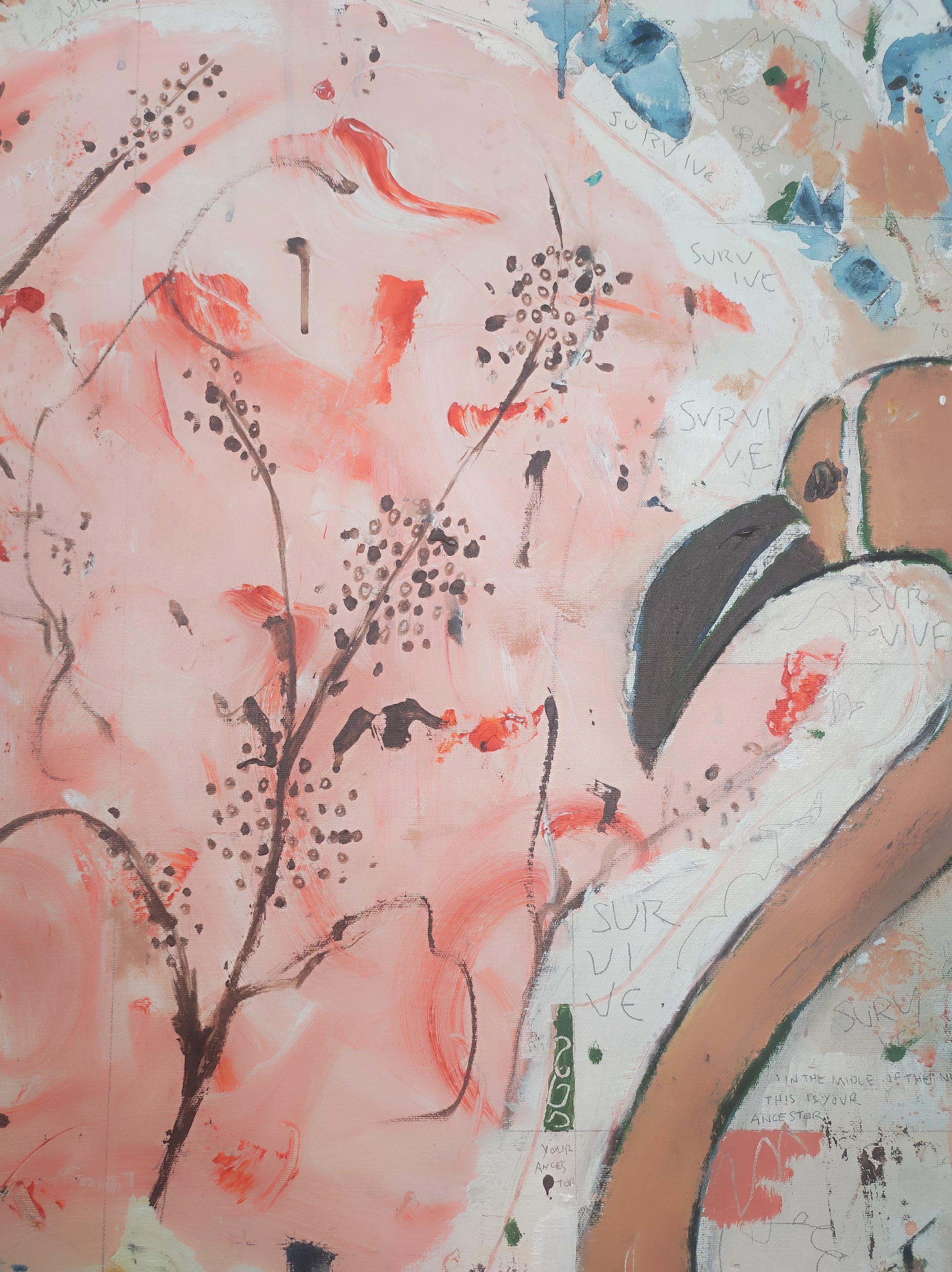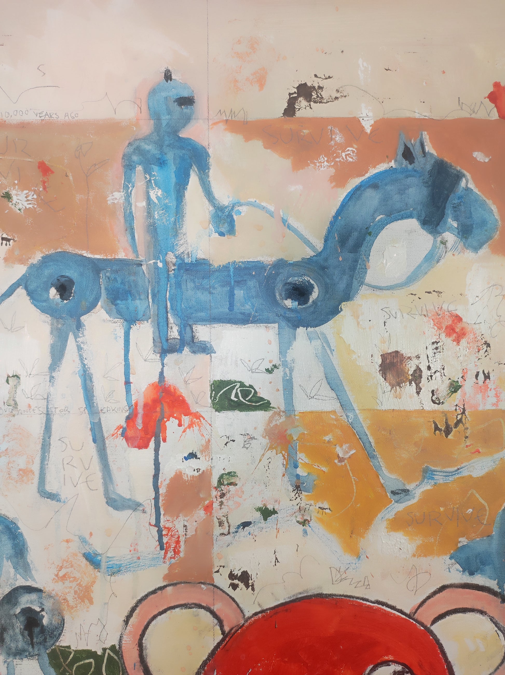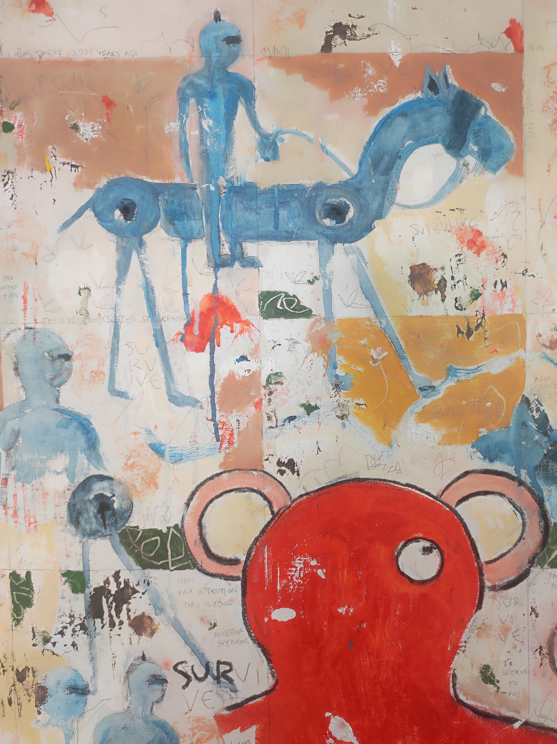 Técnica: acrílico, pigmentos, lápiz, carboncillo, tinta china y gesso.