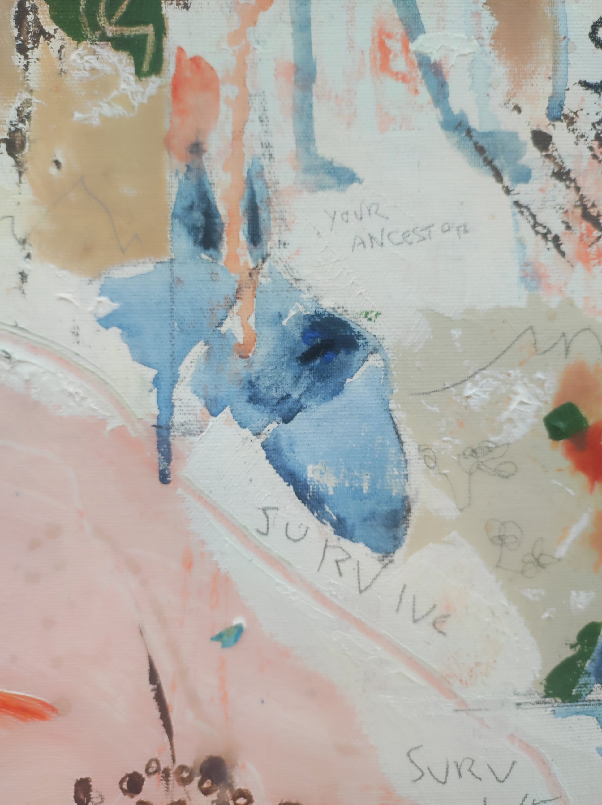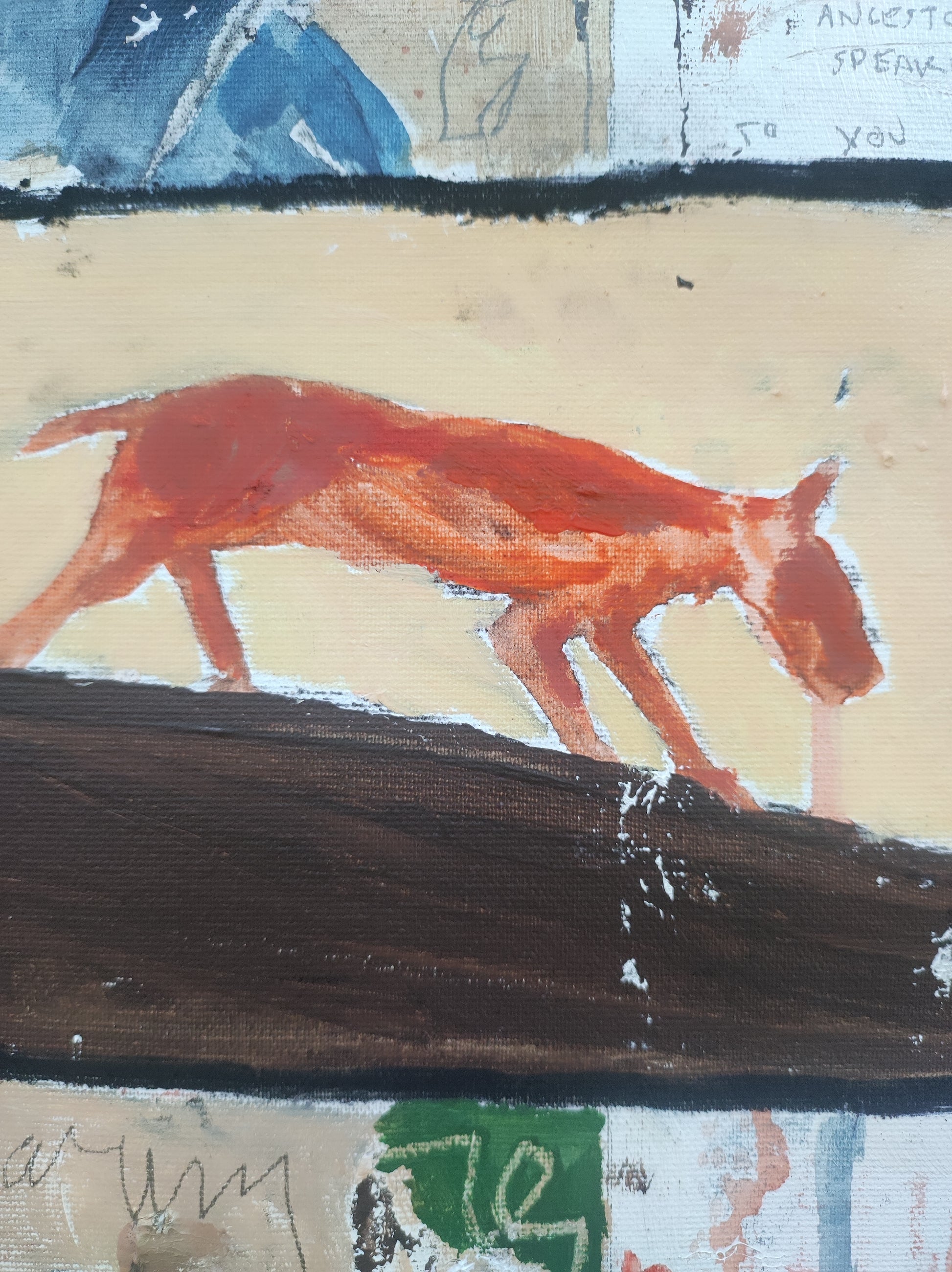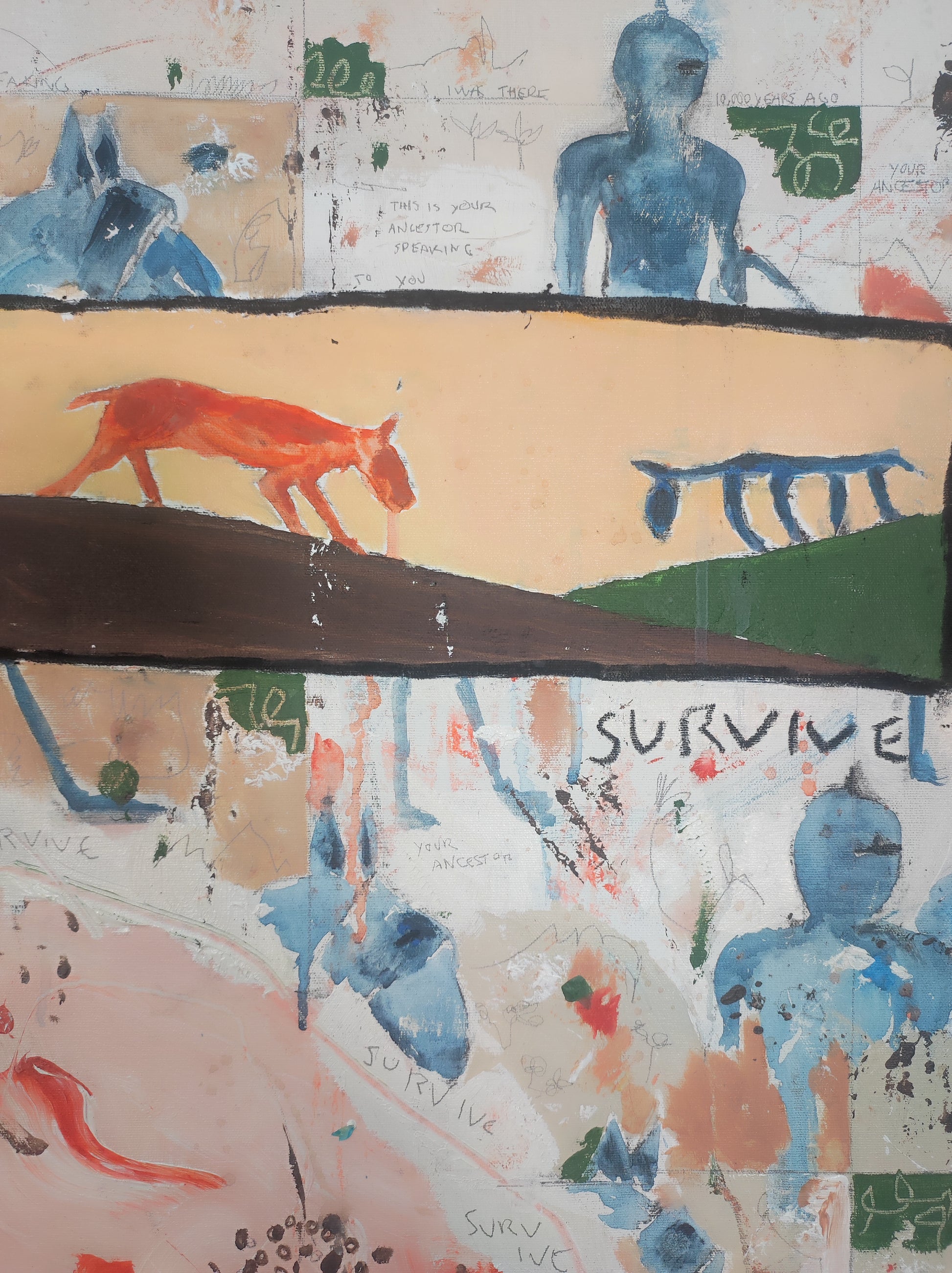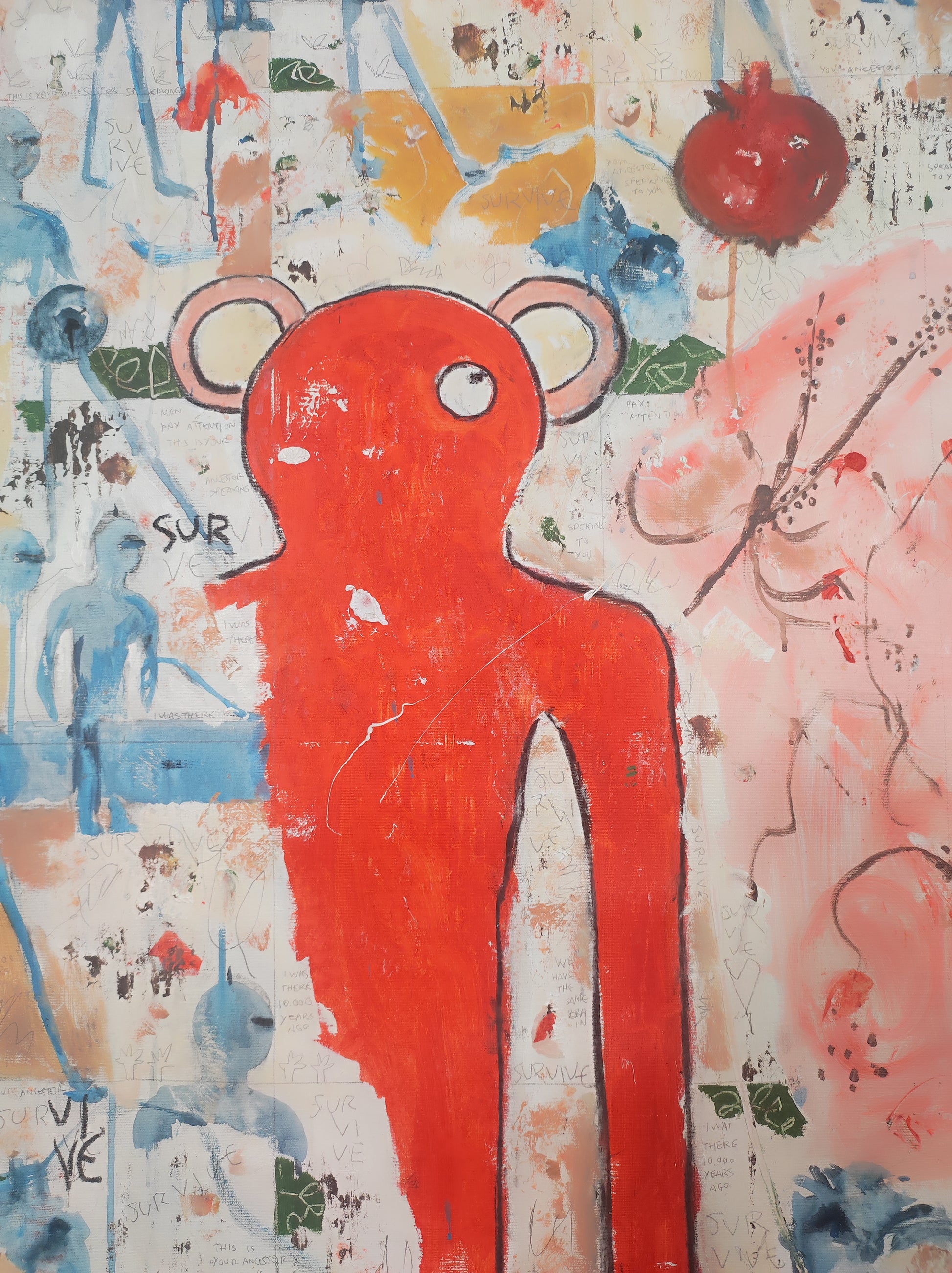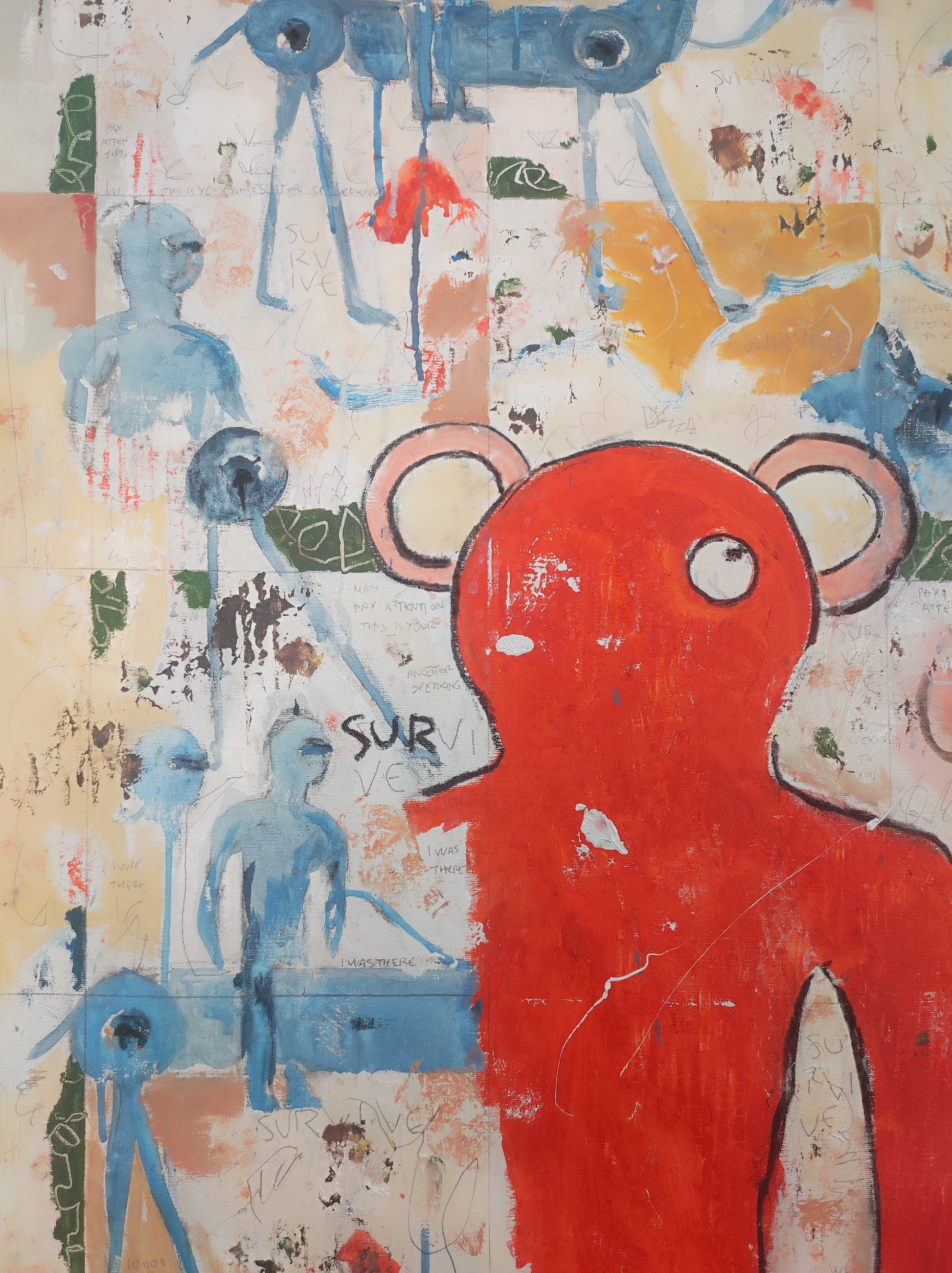 Técnica: acrílico, pigmentos, lápiz, carboncillo, tinta china y gesso.